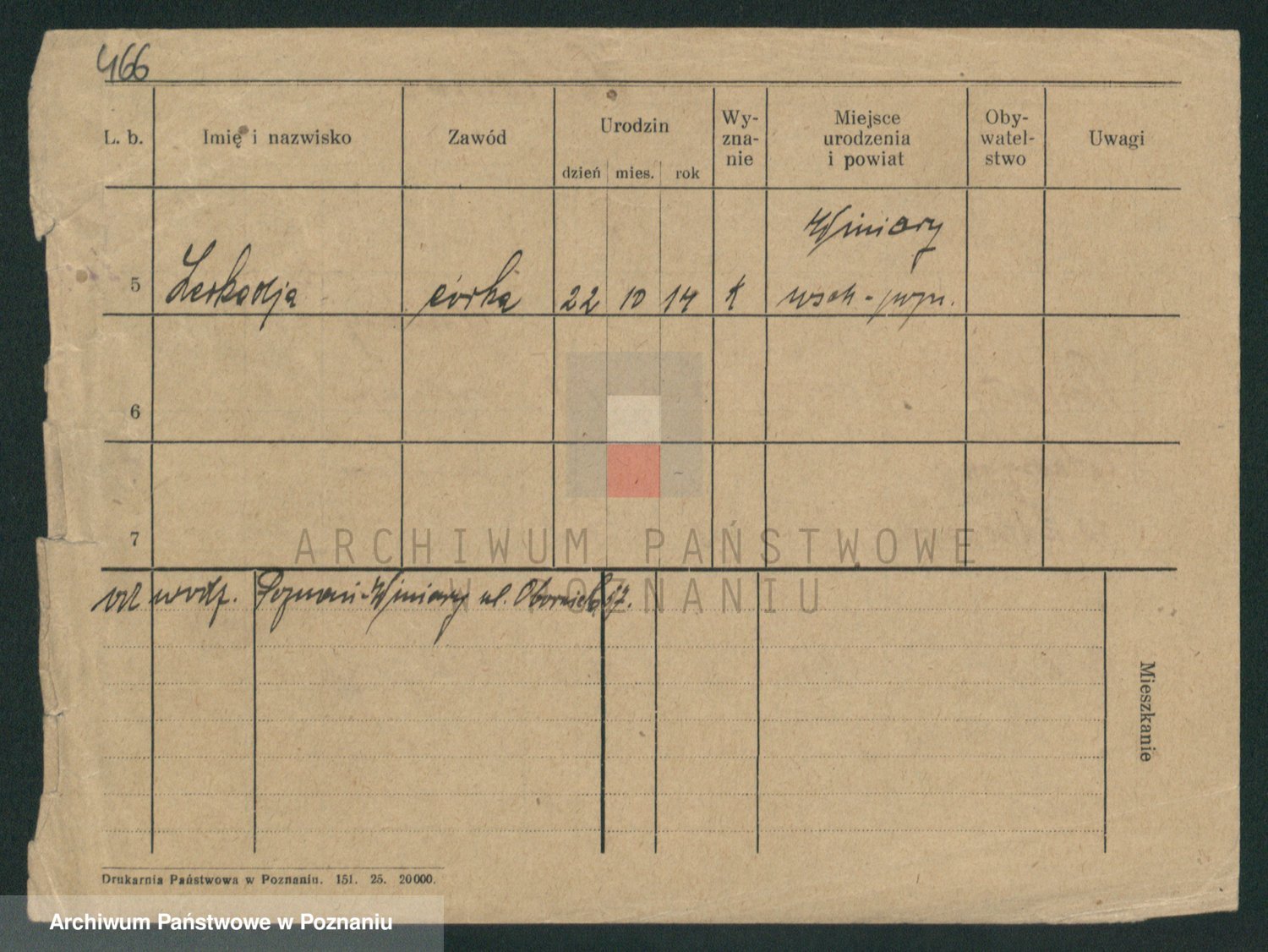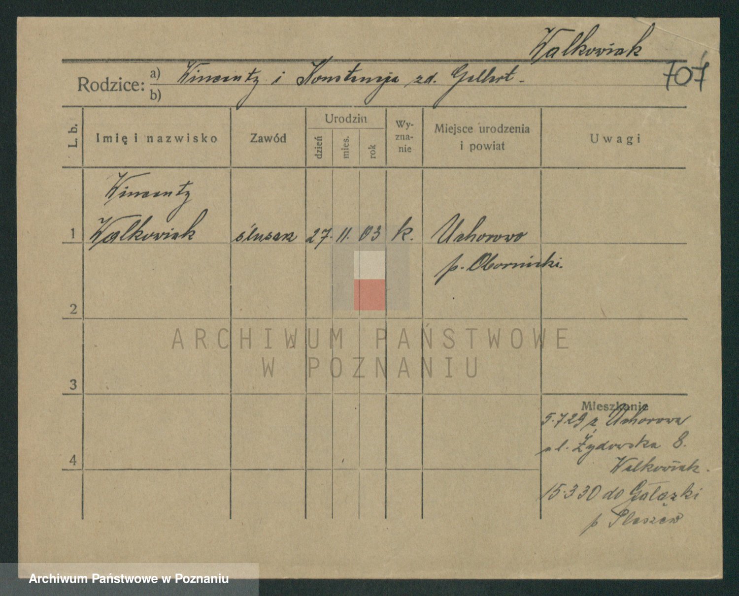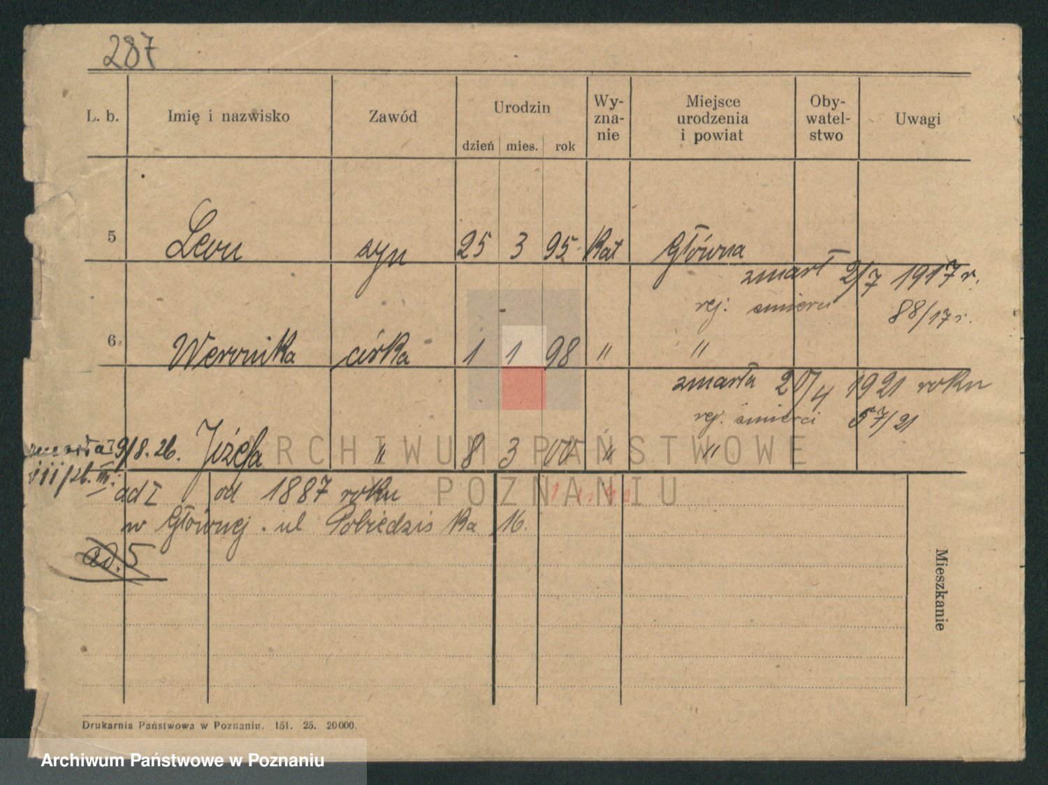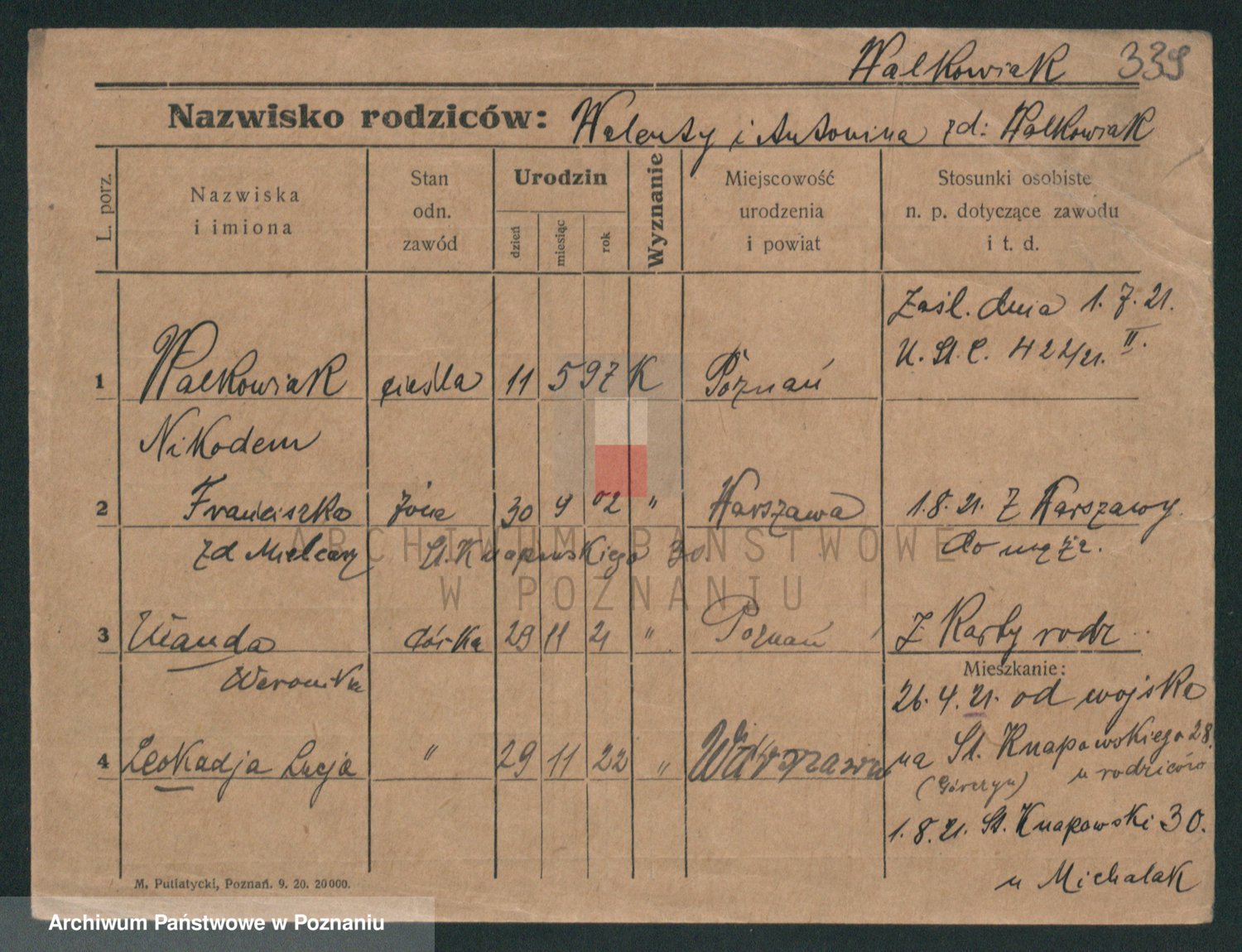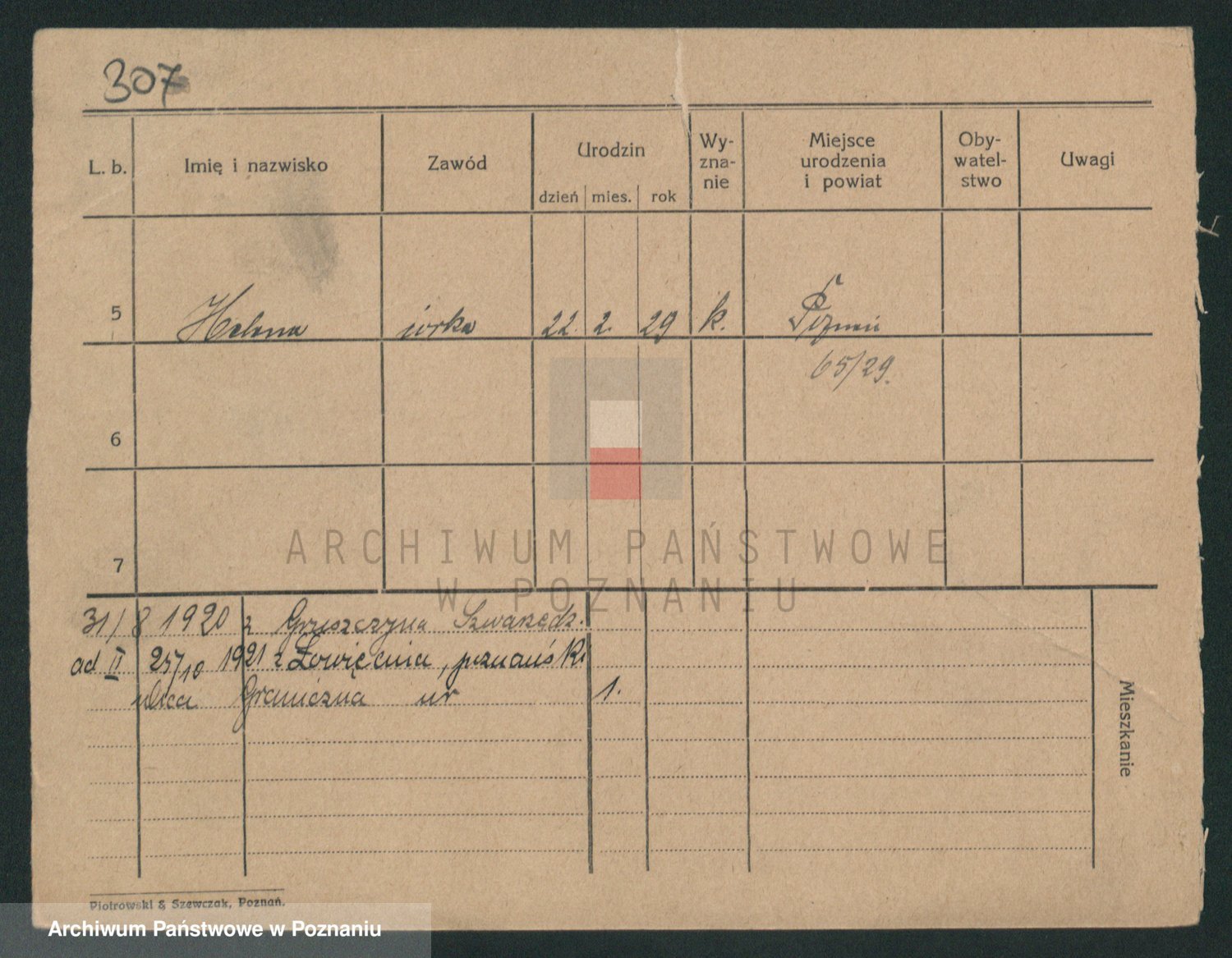 Podgląd karty osobowej dostępny jest po kliknięciu na nazwisko lub ikonkę karty. Można dokonywać powiększenia (ikony na górze) lub przechodzić między kolejnymi skanami (strzałki po bokach).