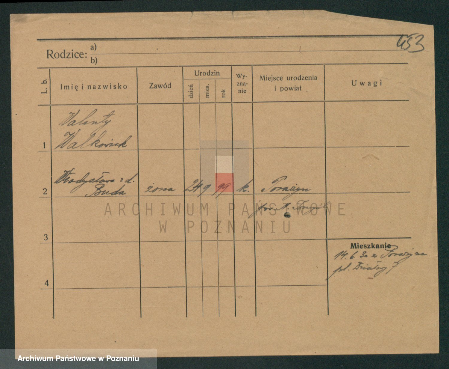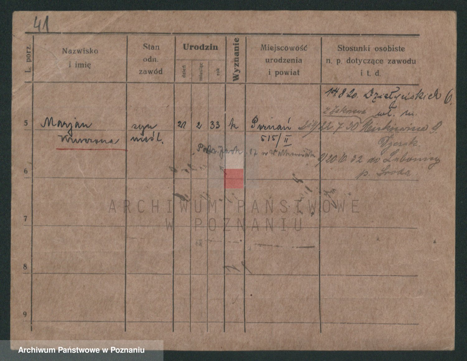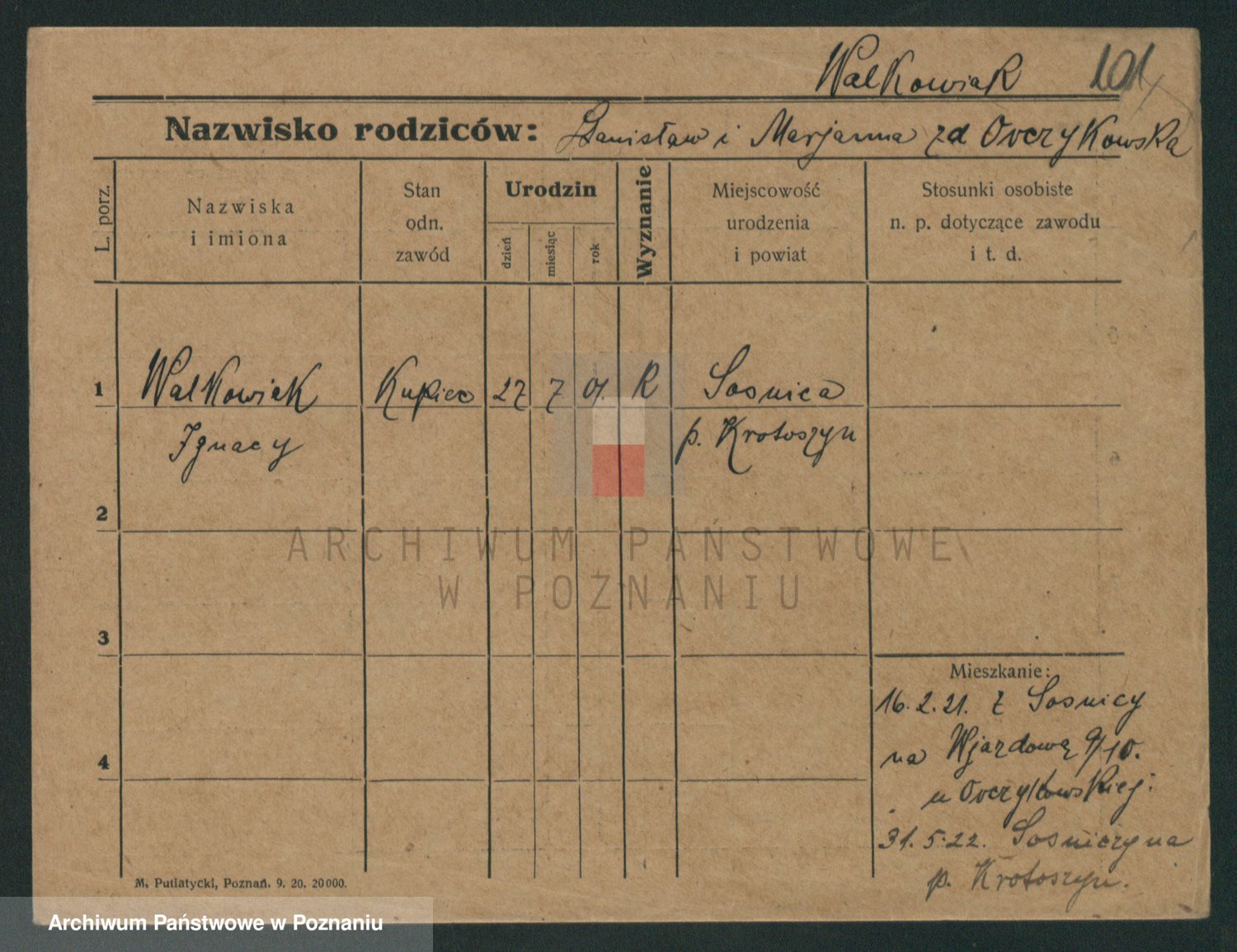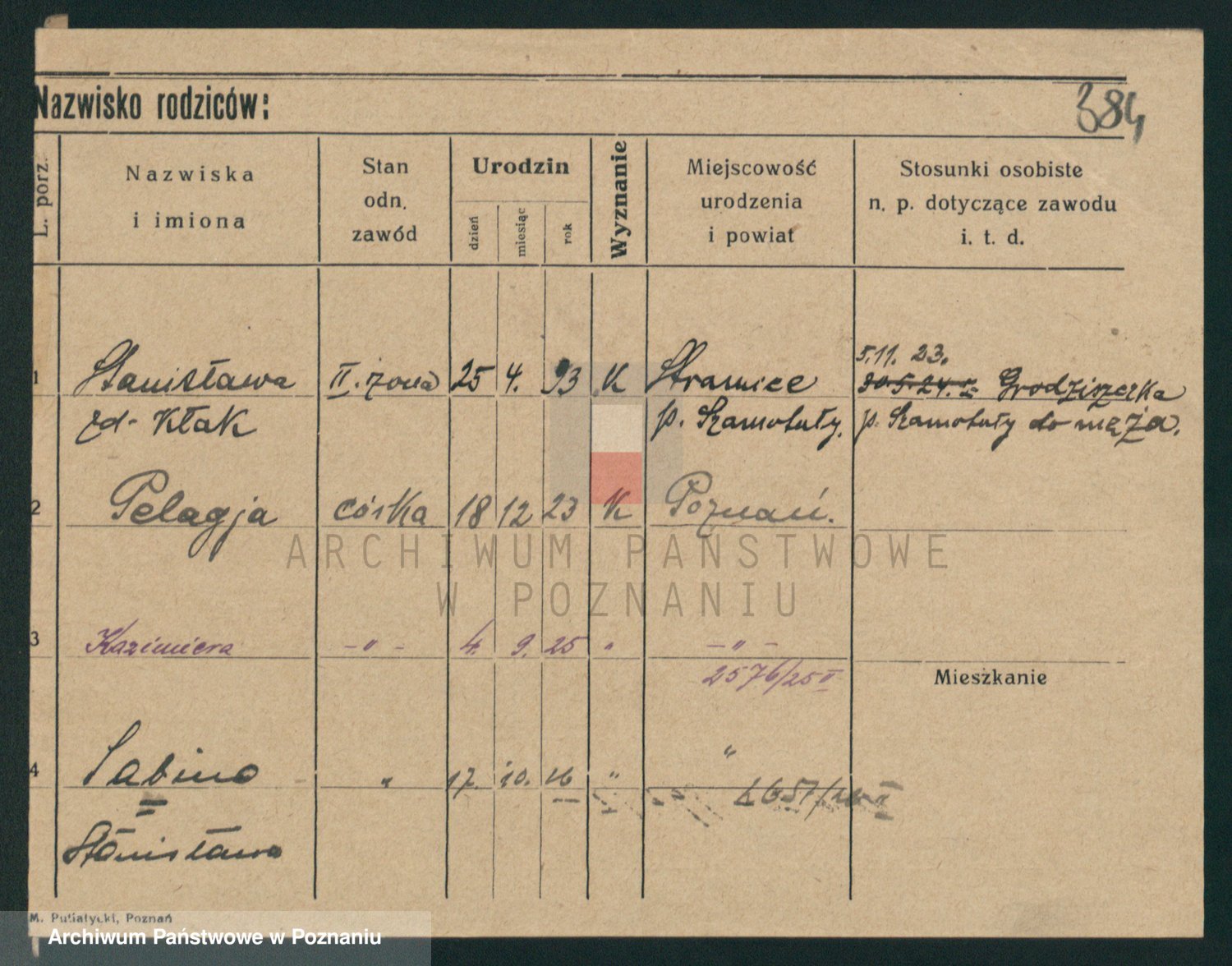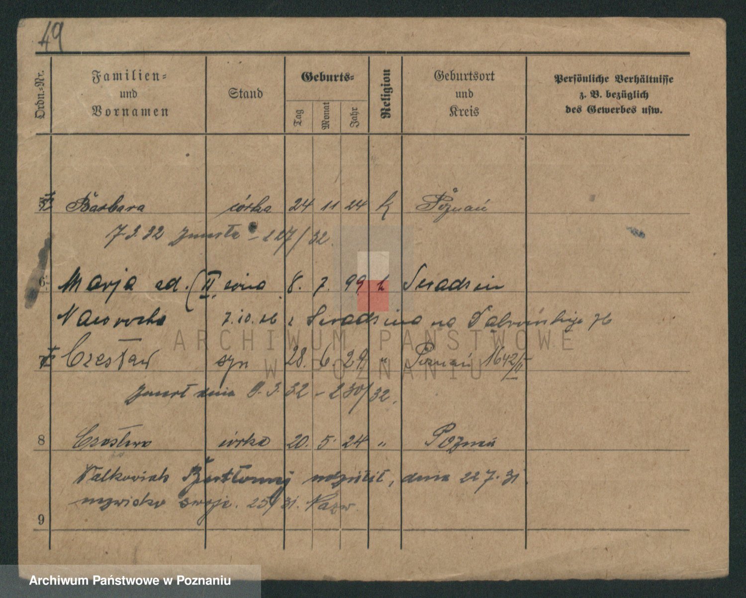Podgląd karty osobowej dostępny jest po kliknięciu na nazwisko lub ikonkę karty. Można dokonywać powiększenia (ikony na górze) lub przechodzić między kolejnymi skanami (strzałki po bokach).
