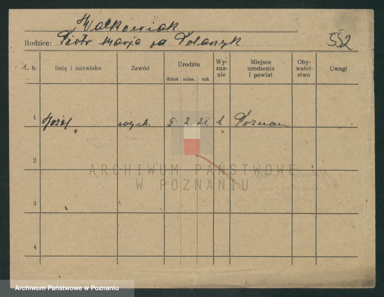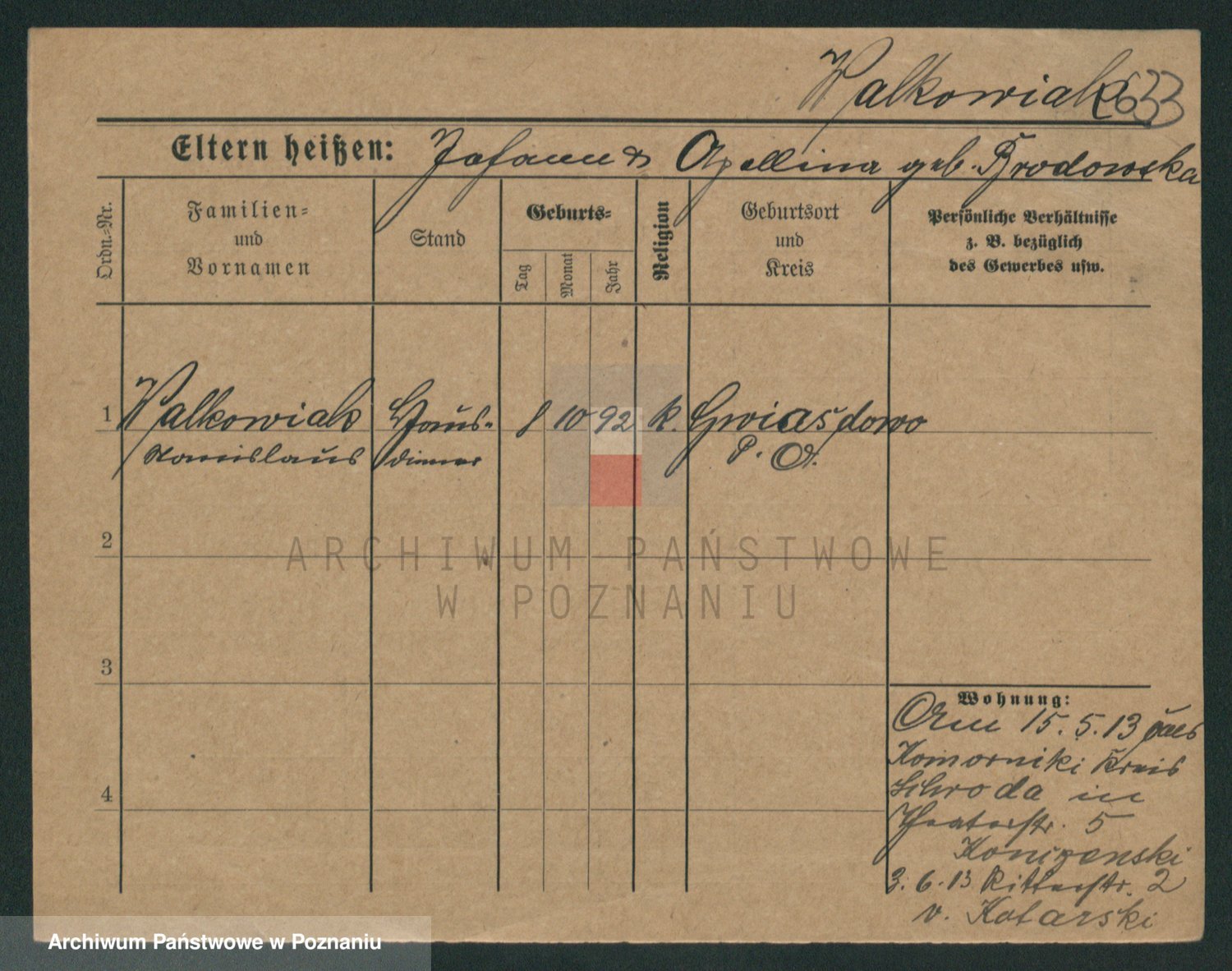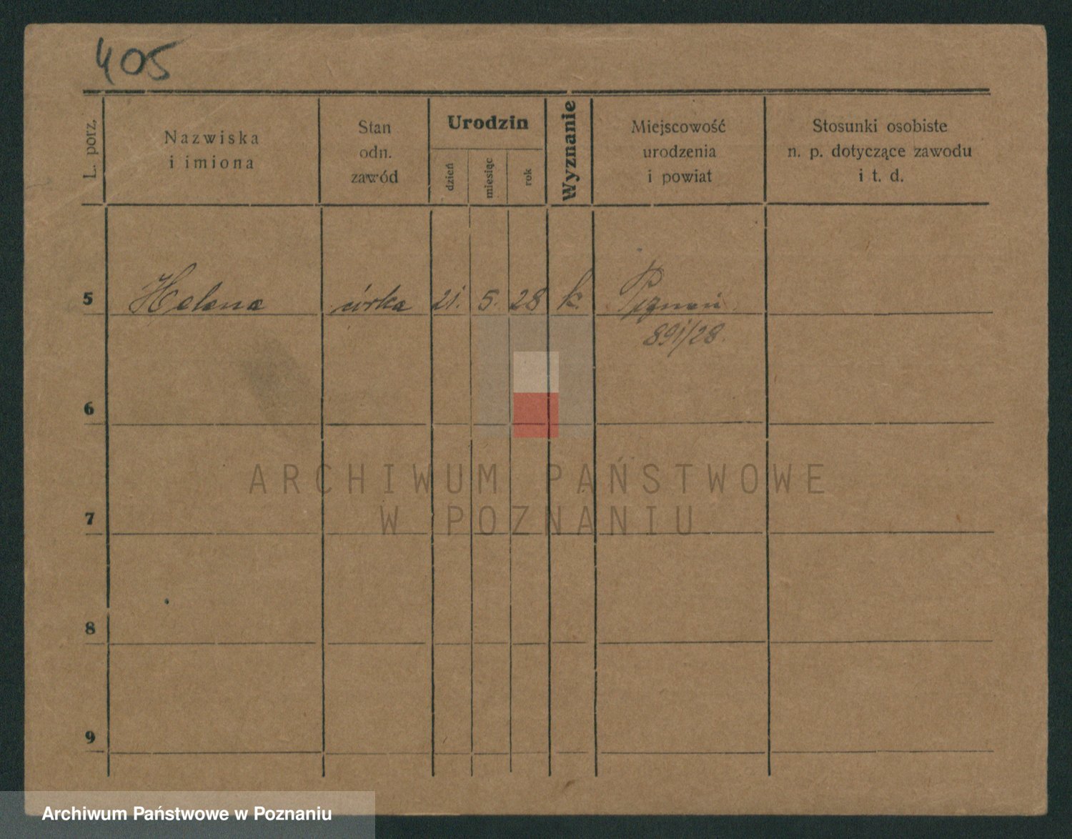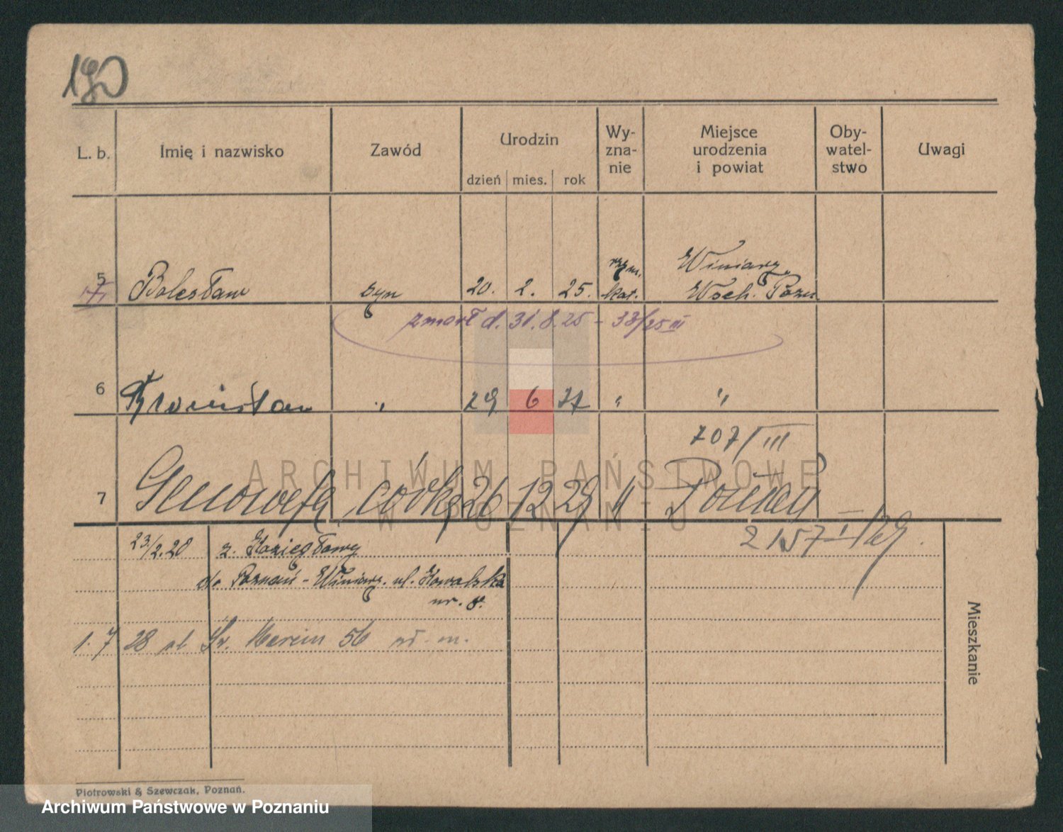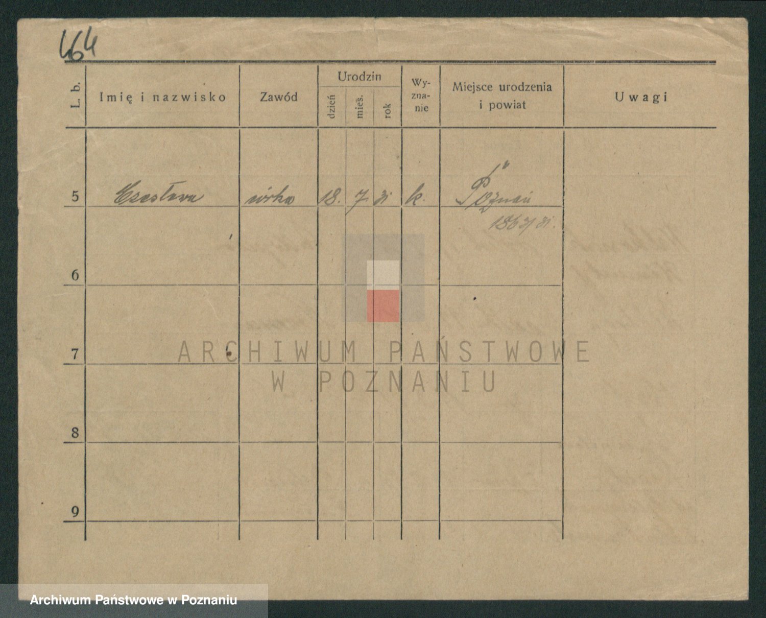 Podgląd karty osobowej dostępny jest po kliknięciu na nazwisko lub ikonkę karty. Można dokonywać powiększenia (ikony na górze) lub przechodzić między kolejnymi skanami (strzałki po bokach).