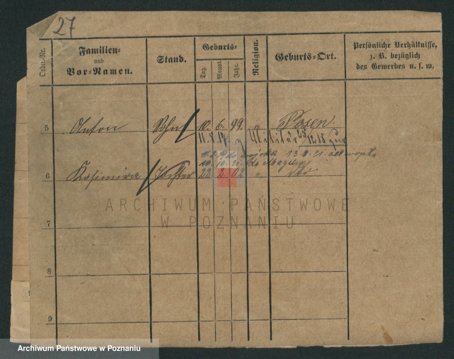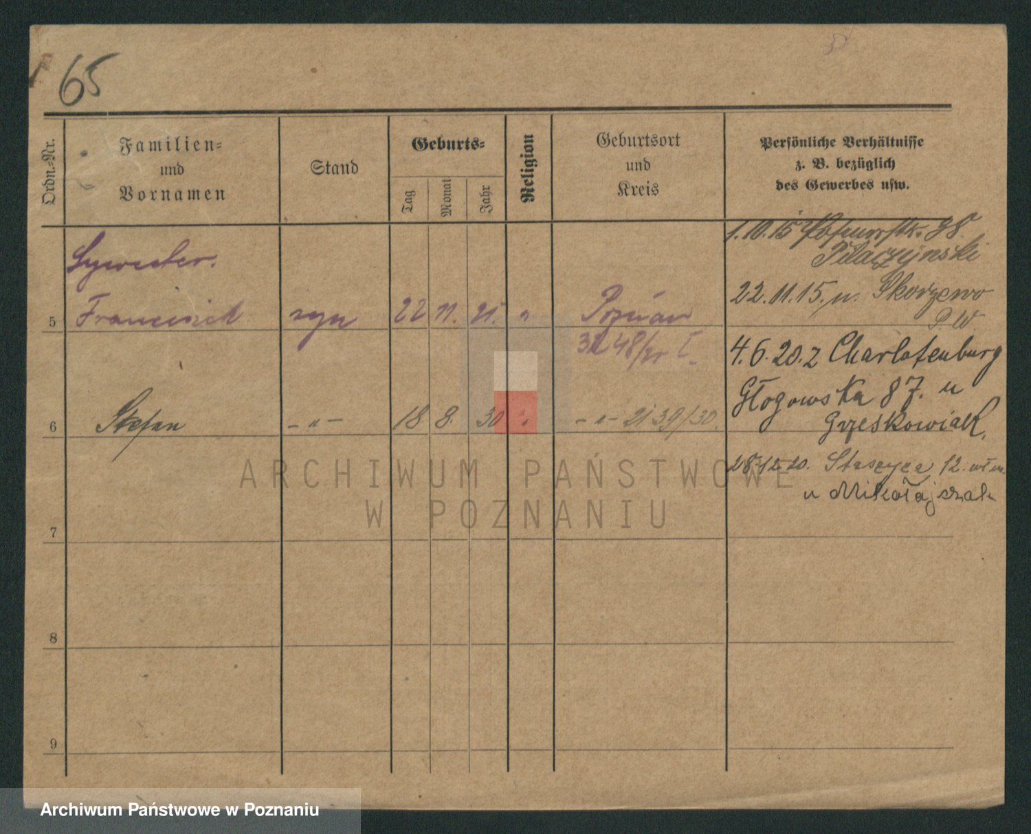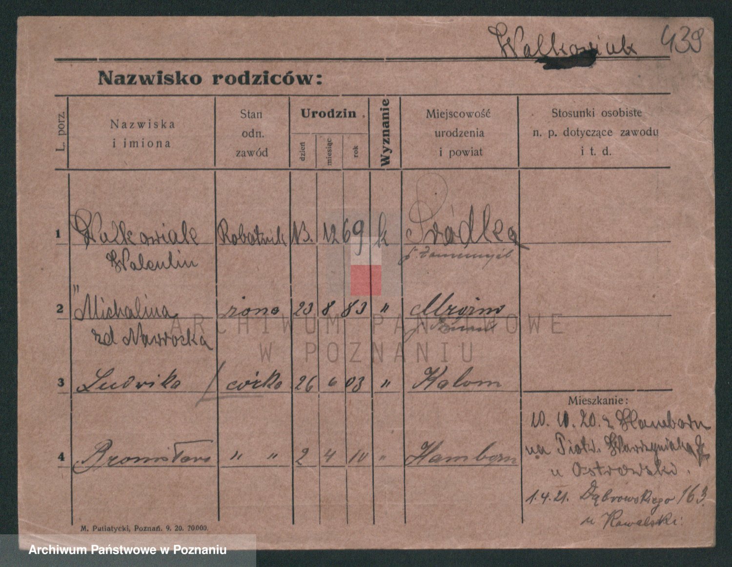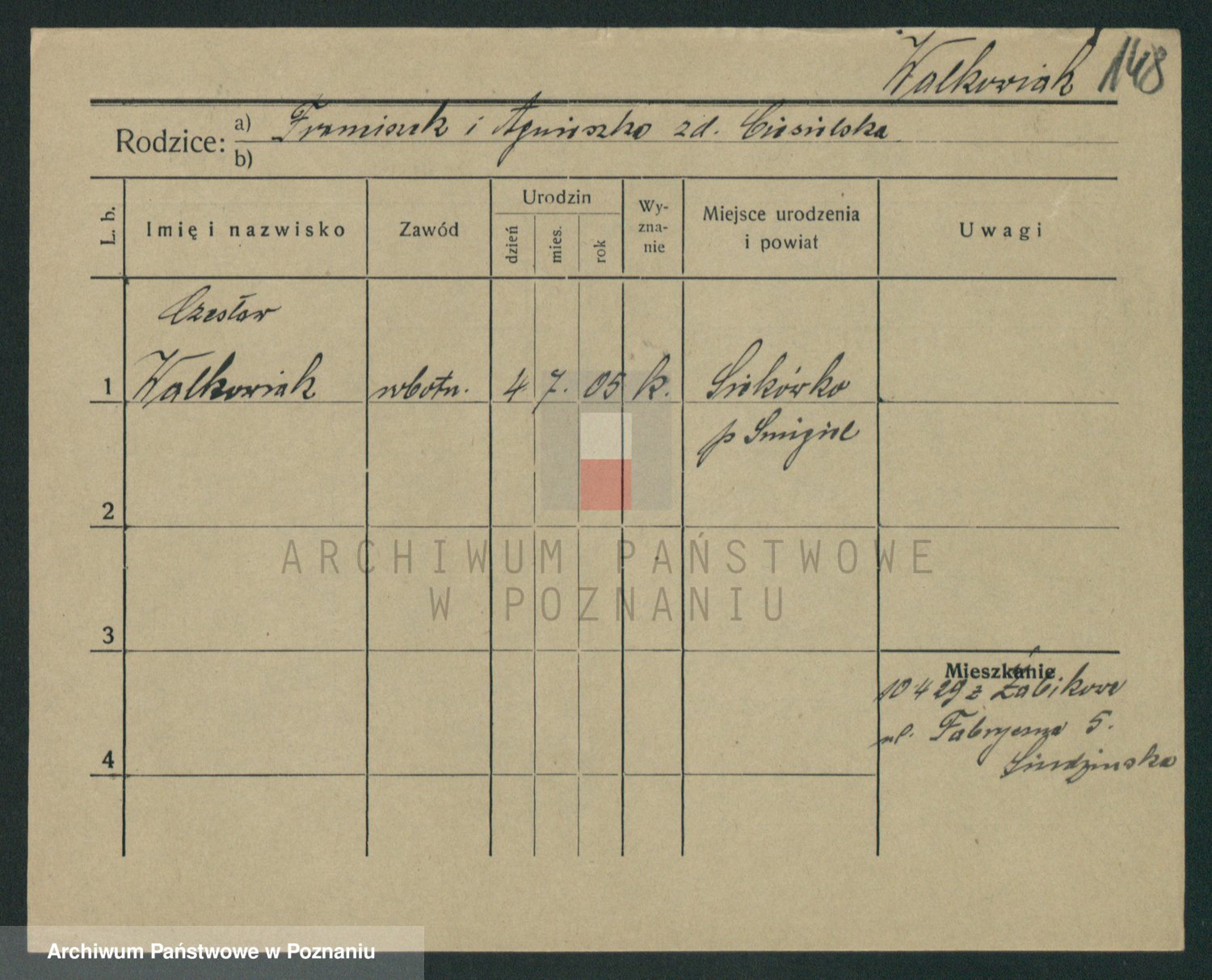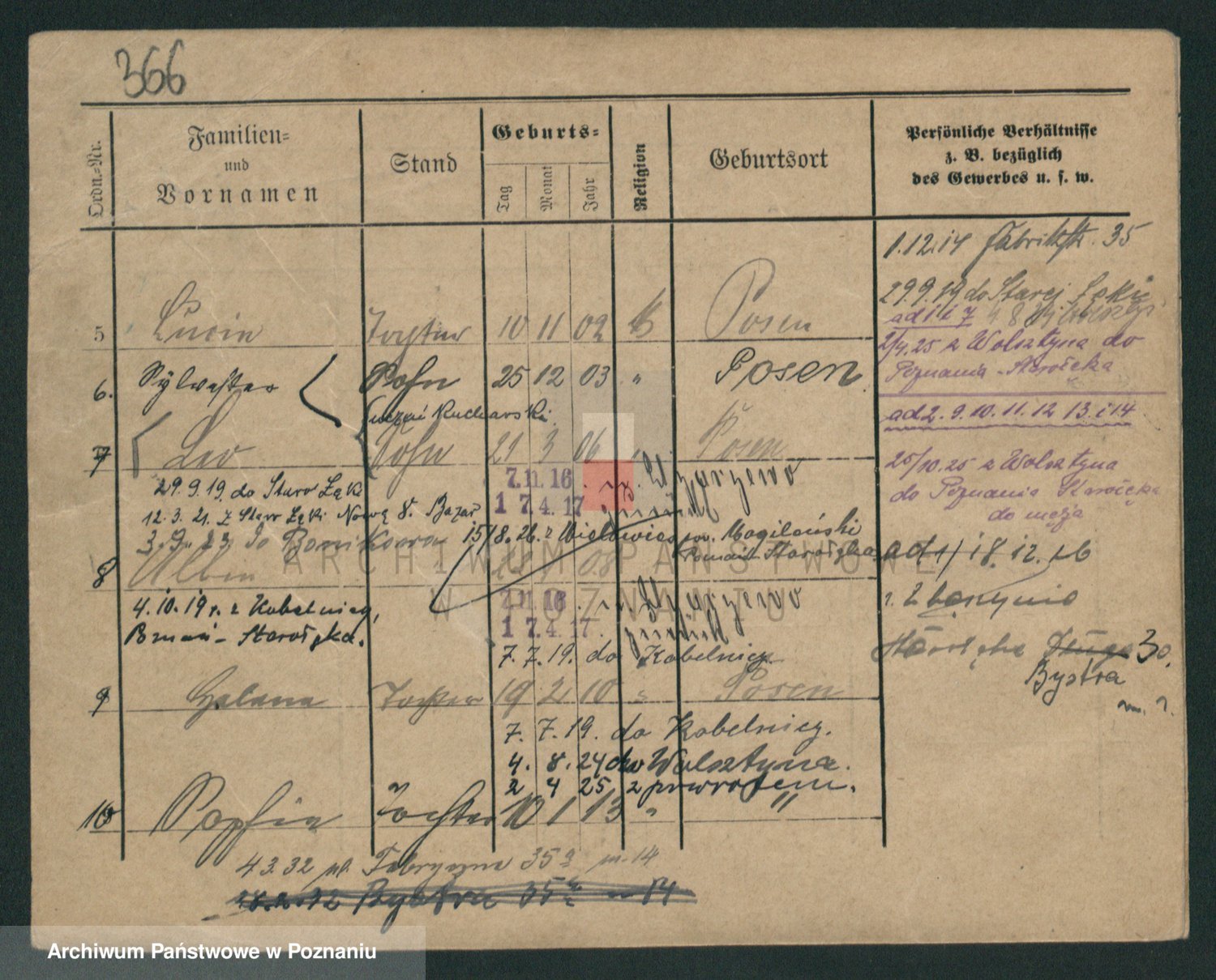 Podgląd karty osobowej dostępny jest po kliknięciu na nazwisko lub ikonkę karty. Można dokonywać powiększenia (ikony na górze) lub przechodzić między kolejnymi skanami (strzałki po bokach).
