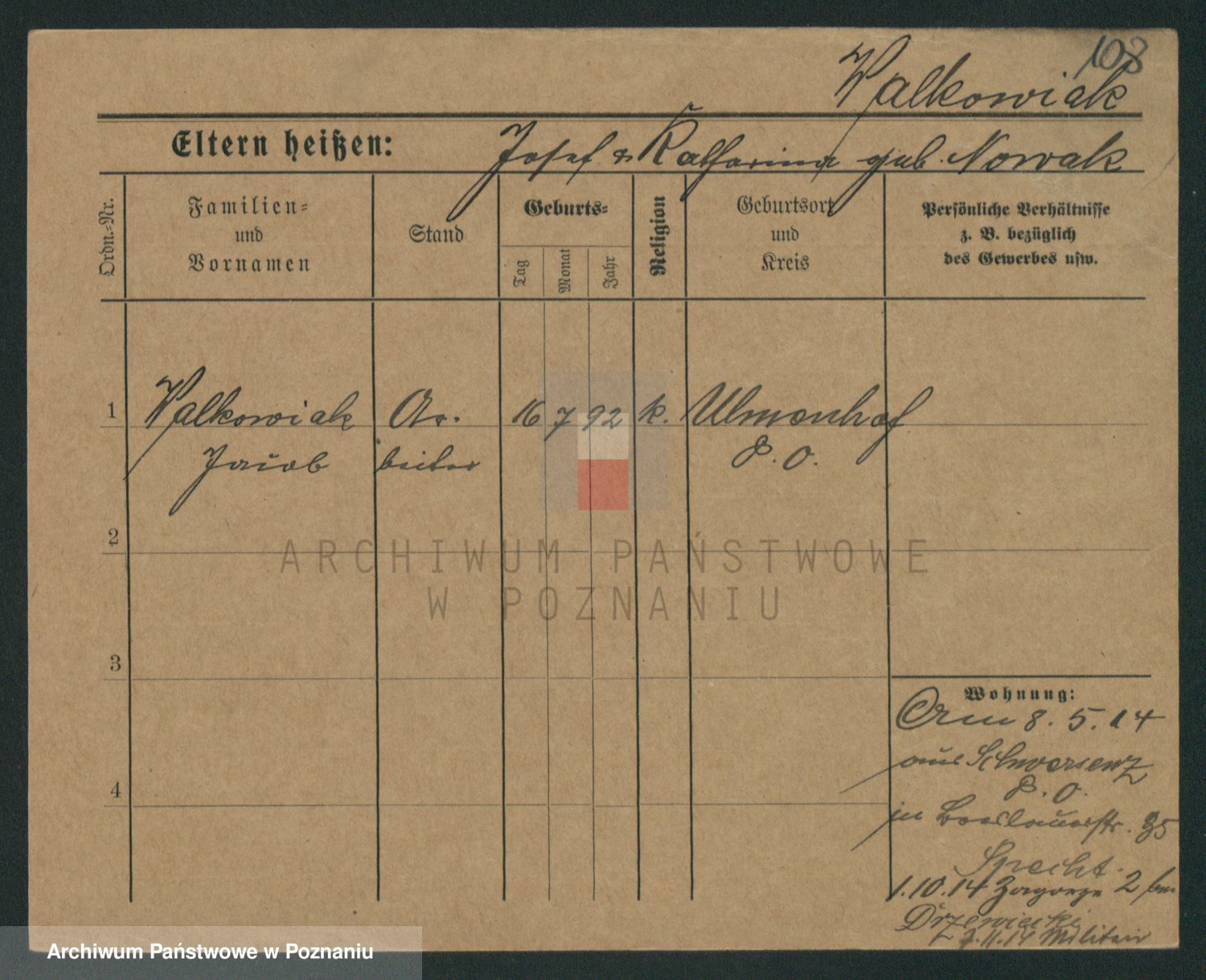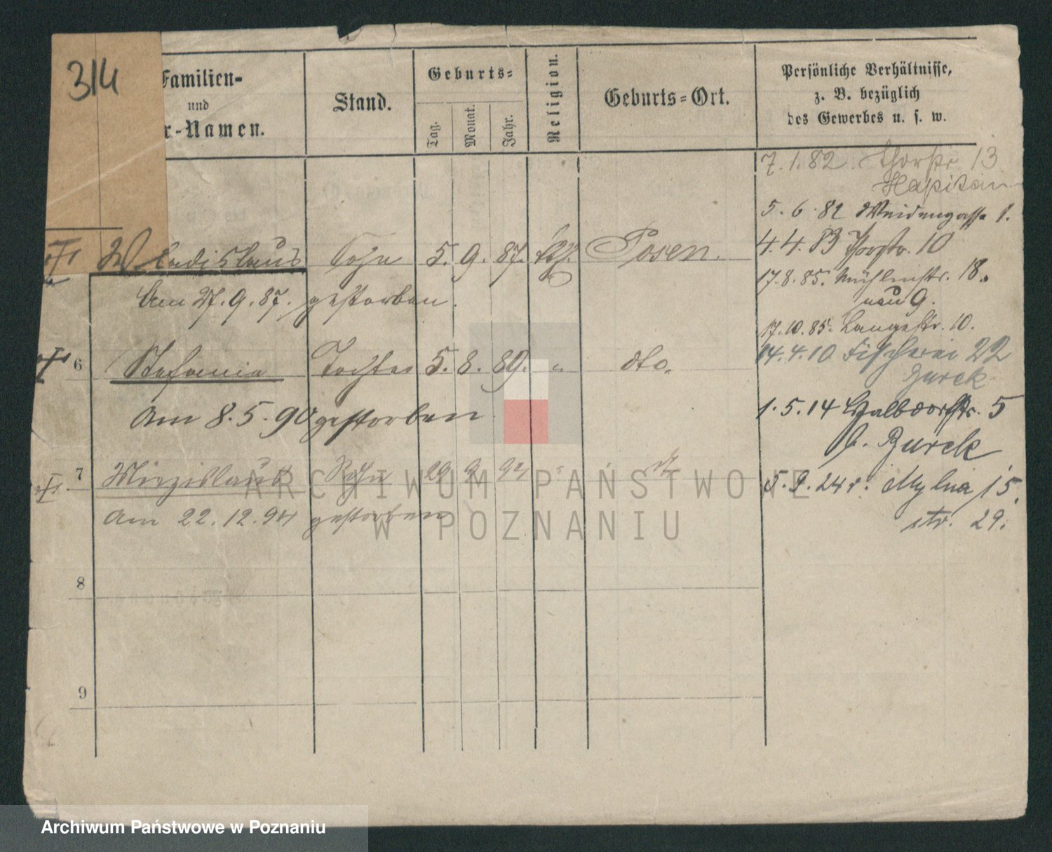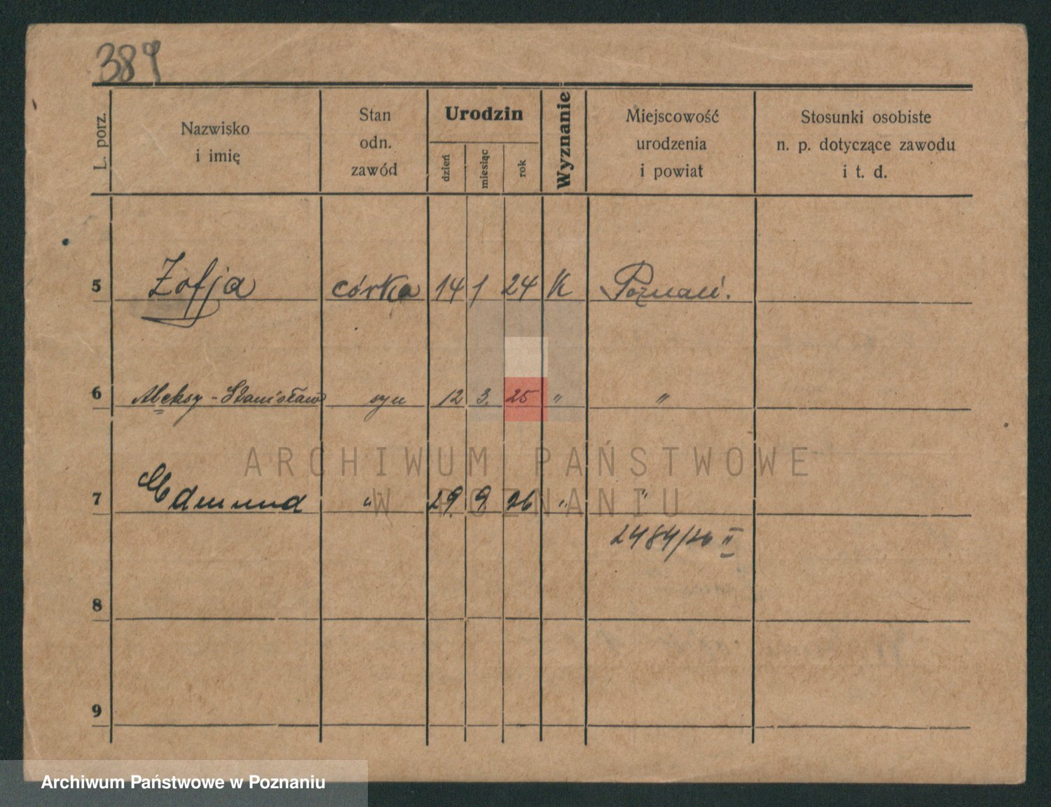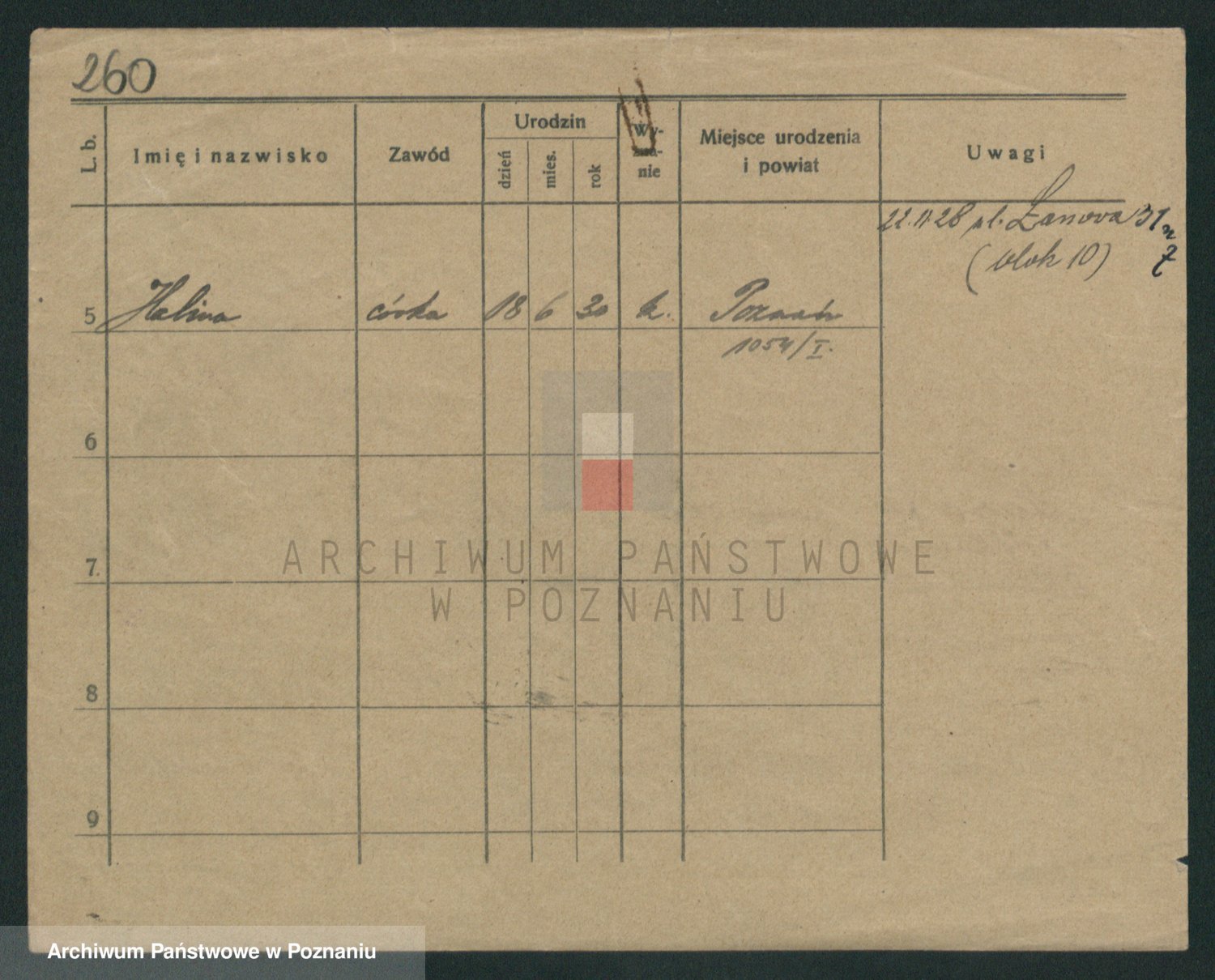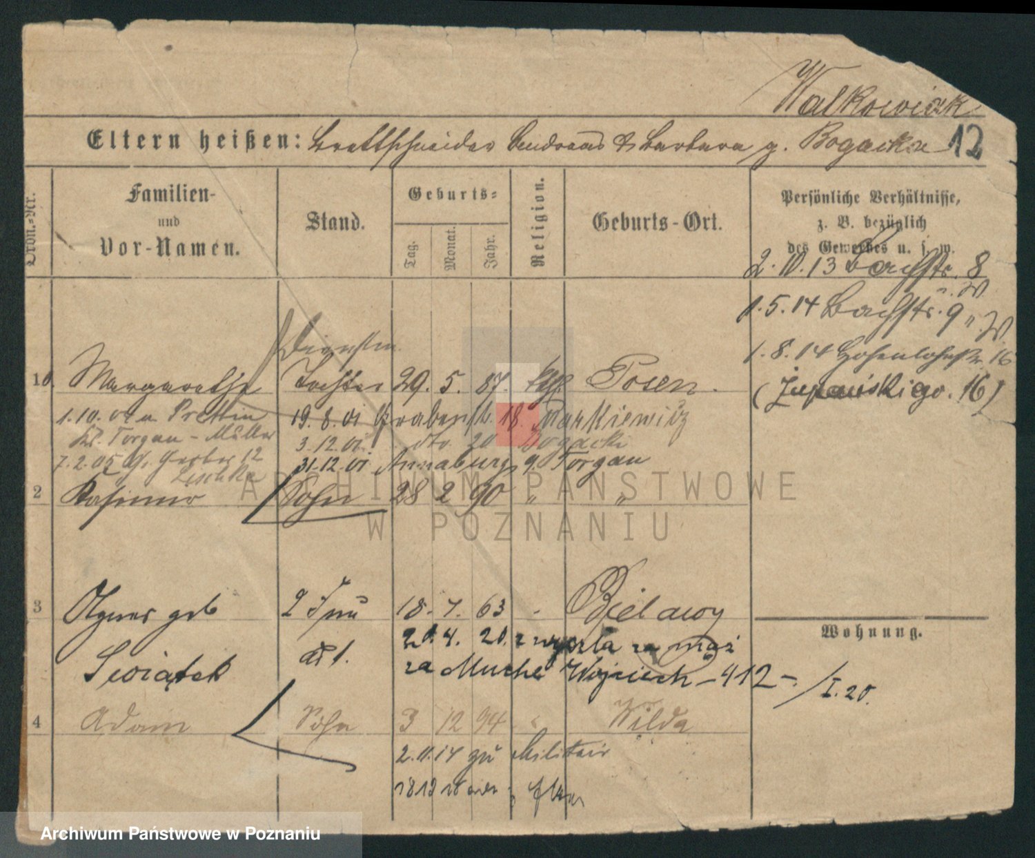 Podgląd karty osobowej dostępny jest po kliknięciu na nazwisko lub ikonkę karty. Można dokonywać powiększenia (ikony na górze) lub przechodzić między kolejnymi skanami (strzałki po bokach).