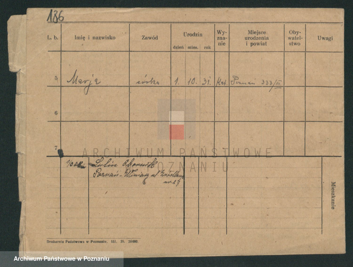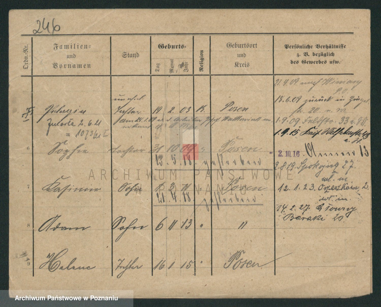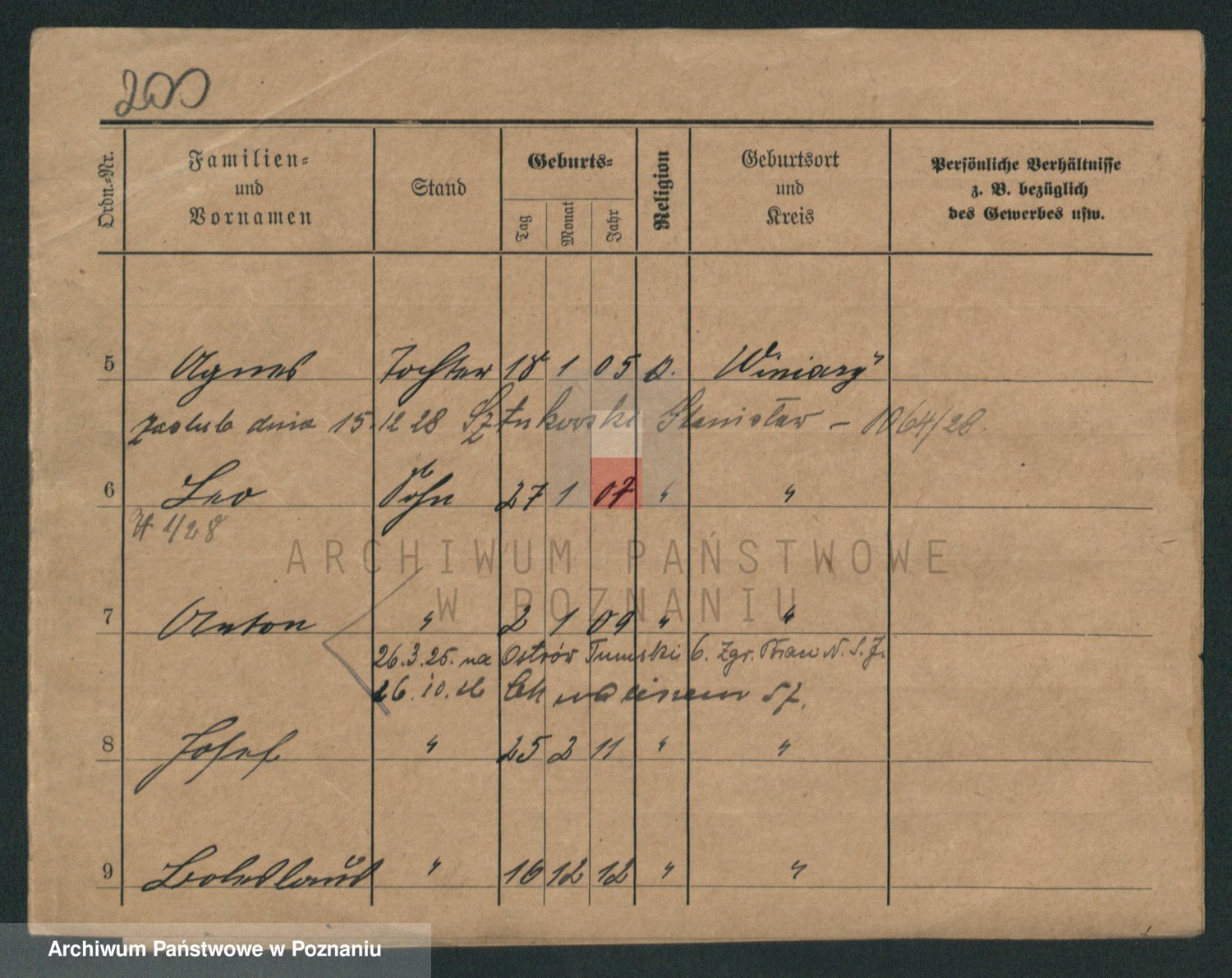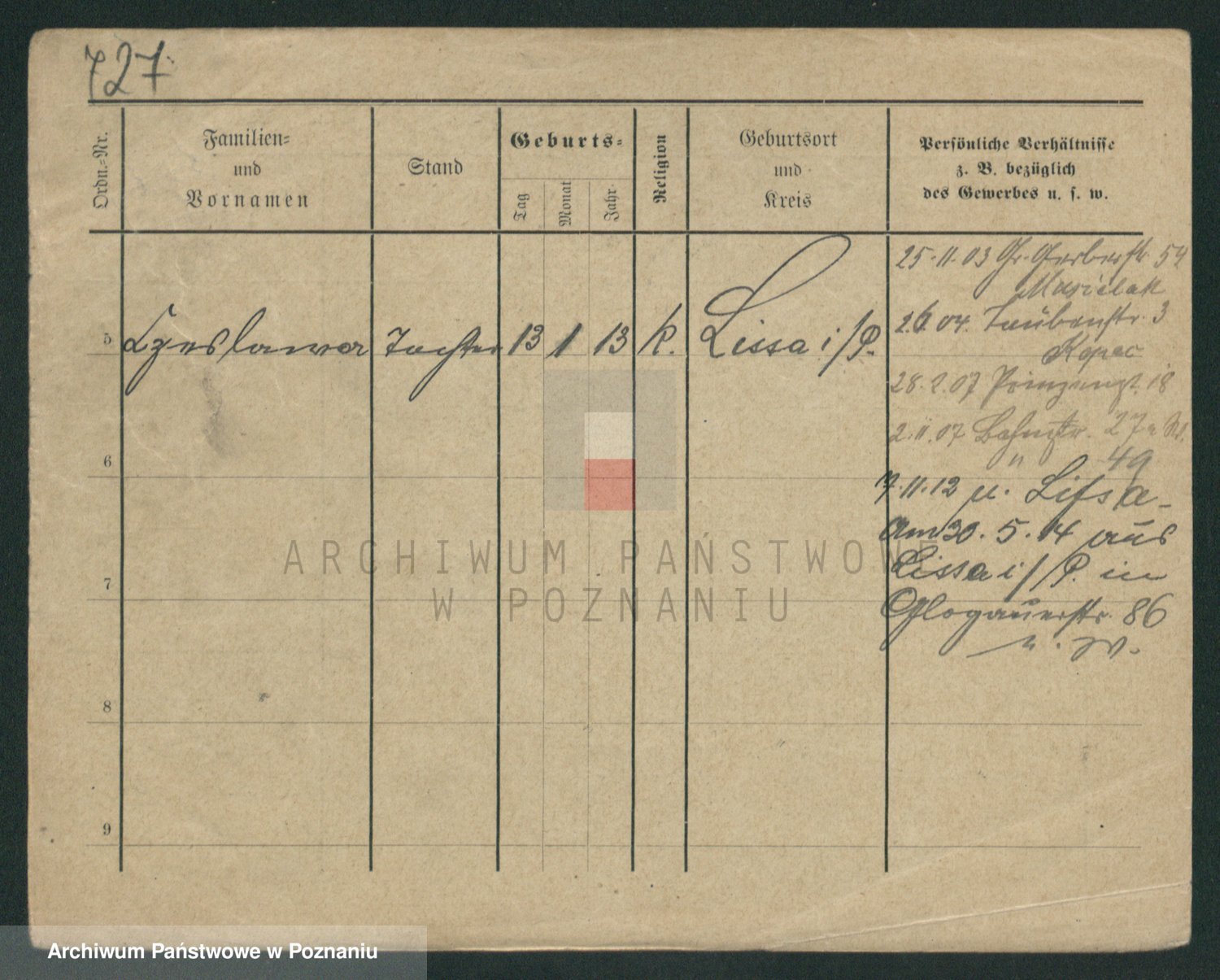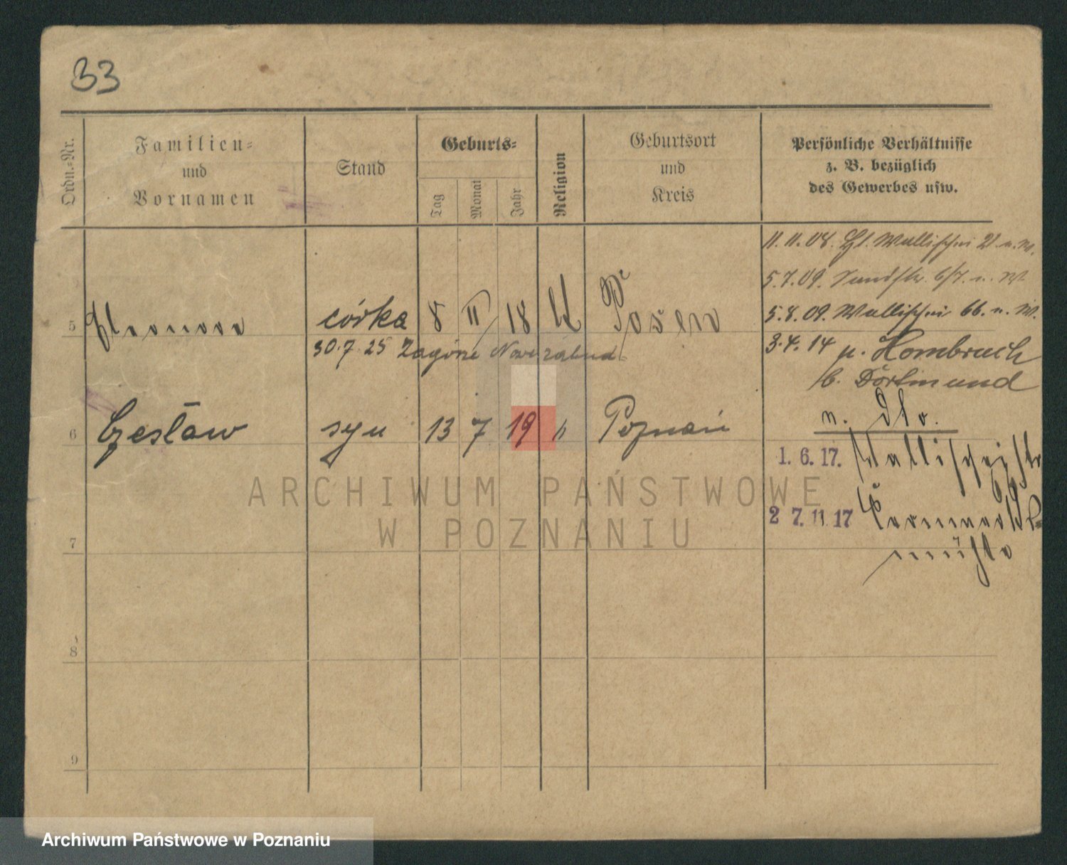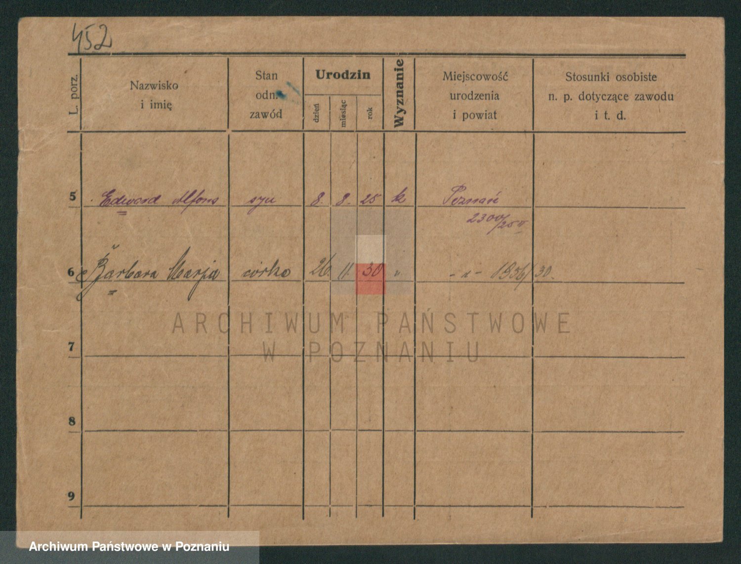 Podgląd karty osobowej dostępny jest po kliknięciu na nazwisko lub ikonkę karty. Można dokonywać powiększenia (ikony na górze) lub przechodzić między kolejnymi skanami (strzałki po bokach).
