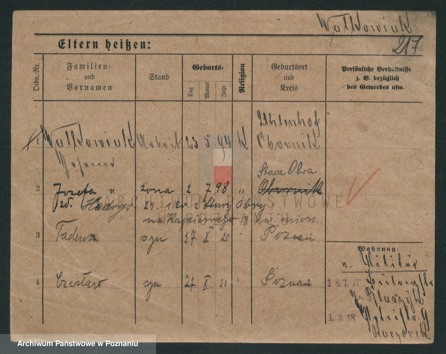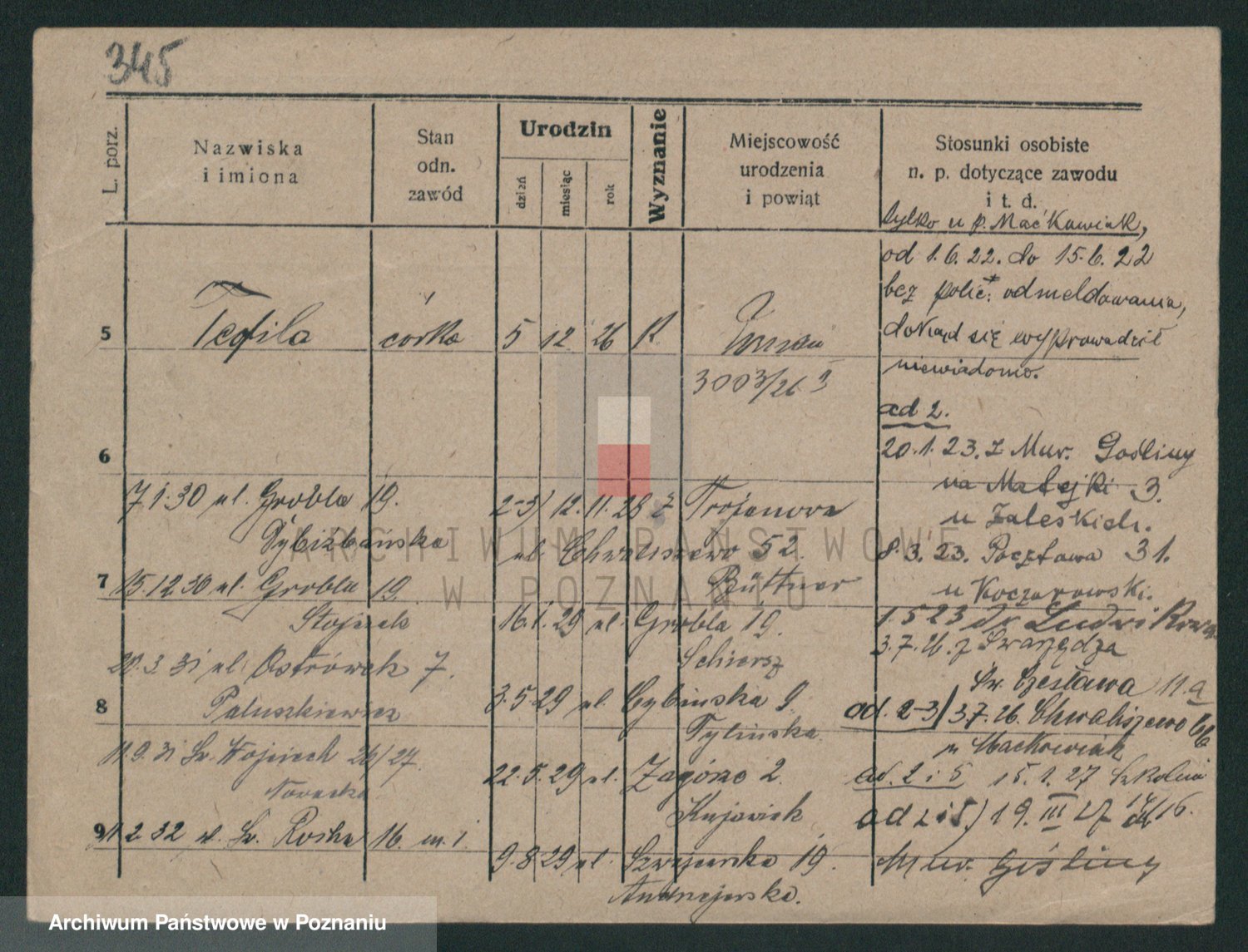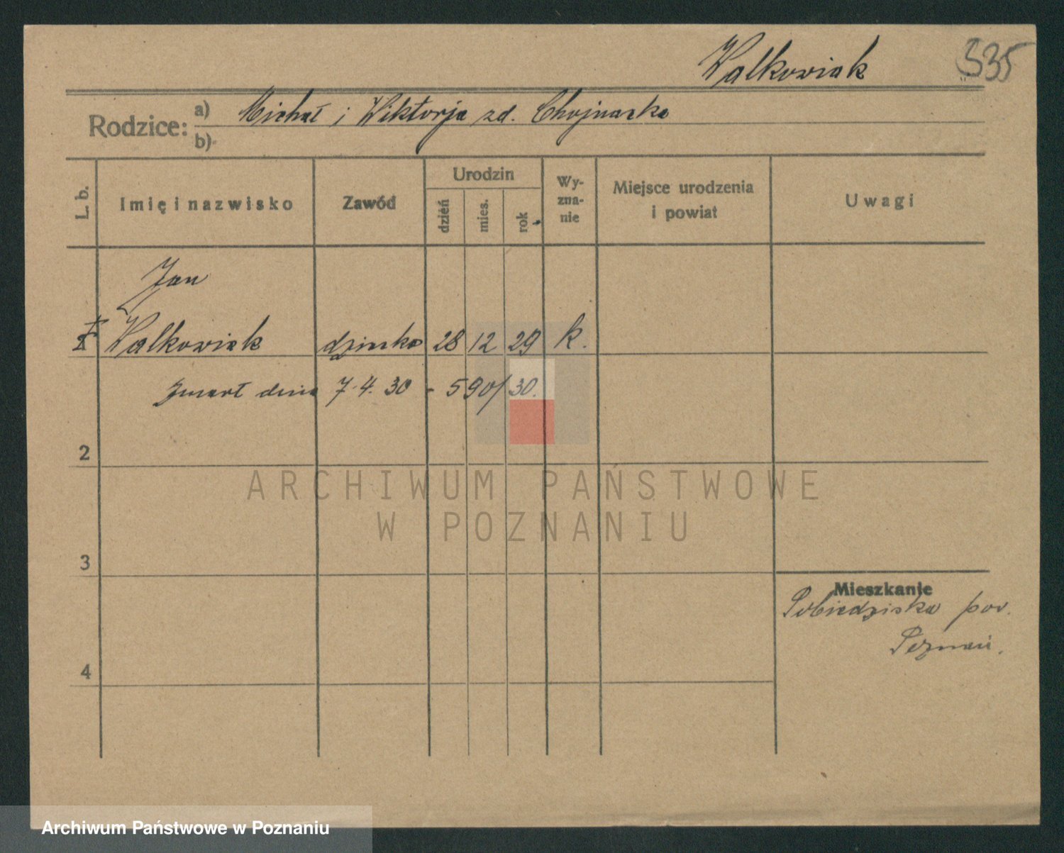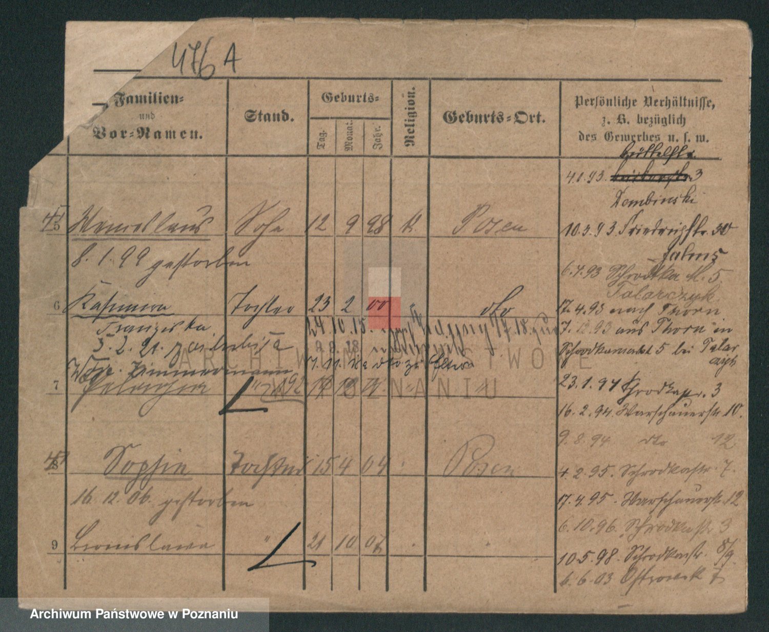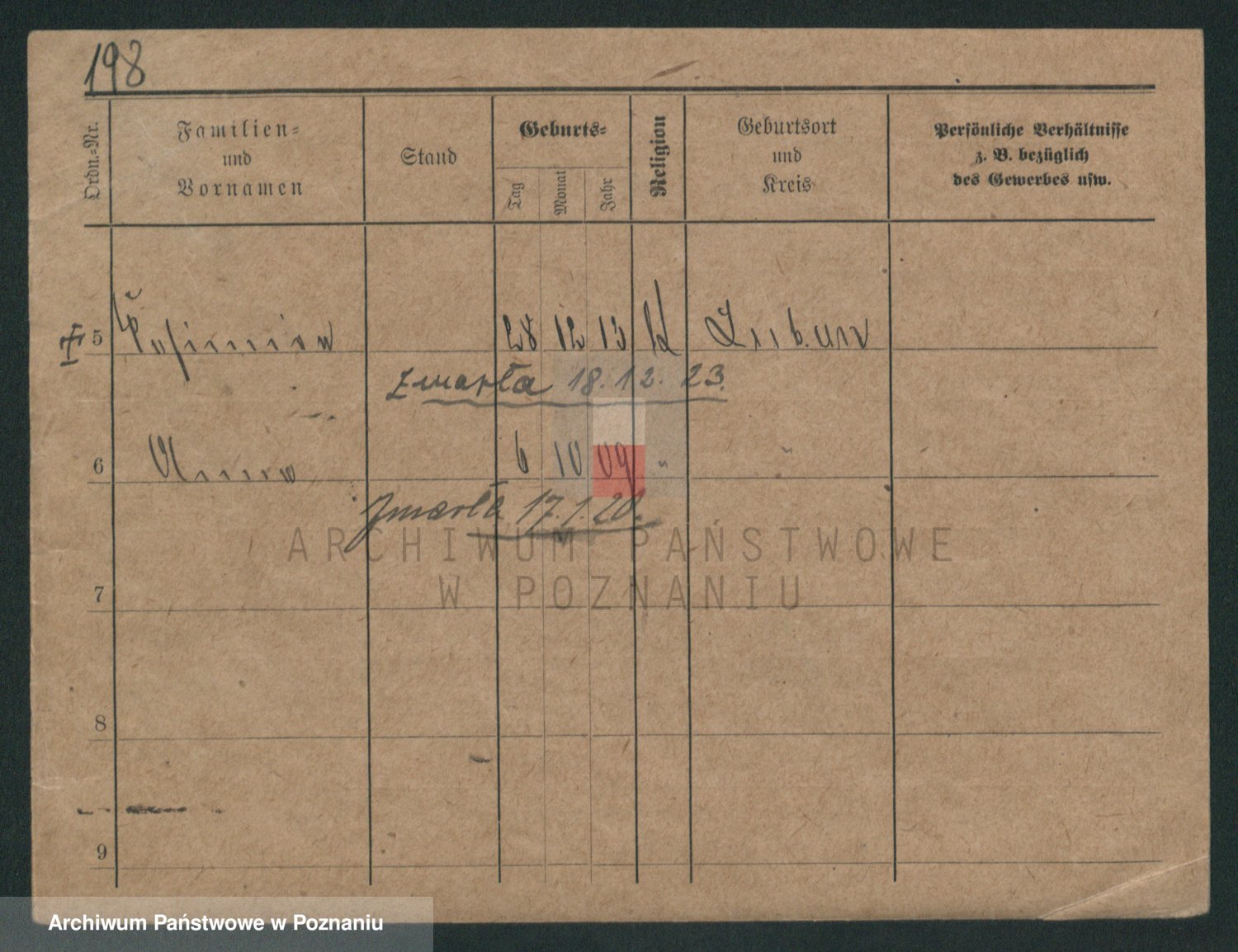 Podgląd karty osobowej dostępny jest po kliknięciu na nazwisko lub ikonkę karty. Można dokonywać powiększenia (ikony na górze) lub przechodzić między kolejnymi skanami (strzałki po bokach).