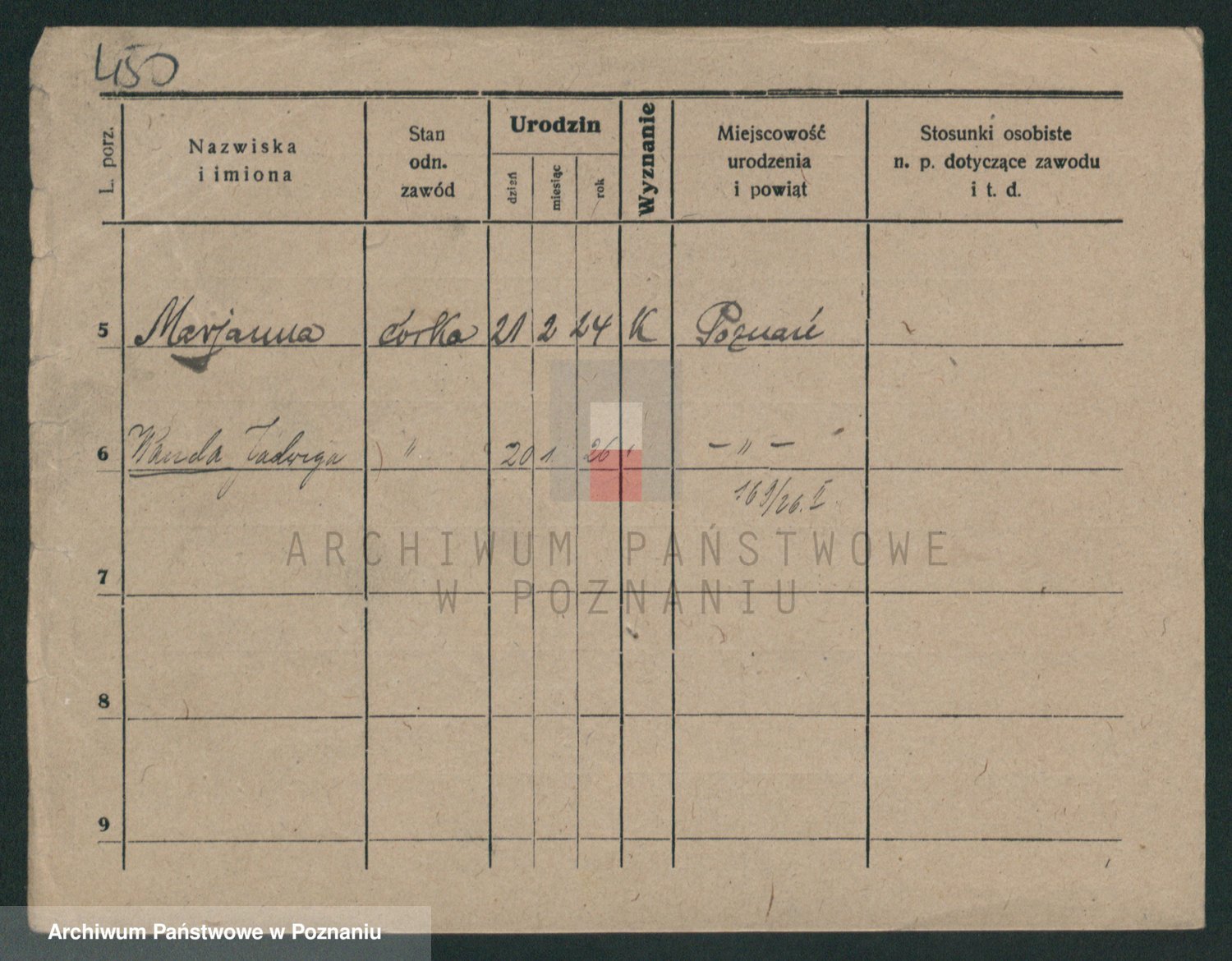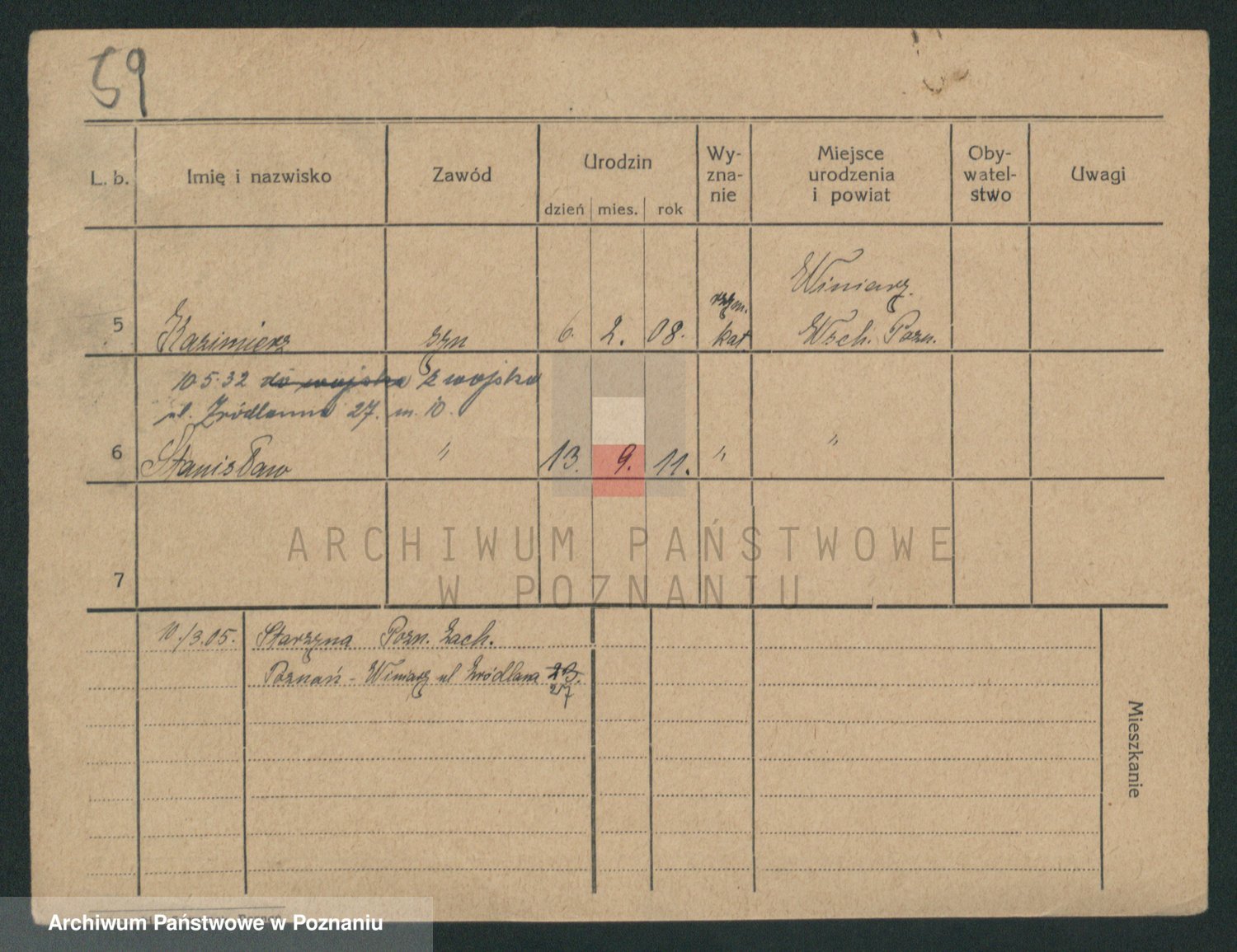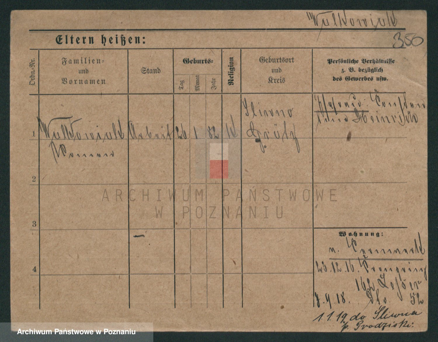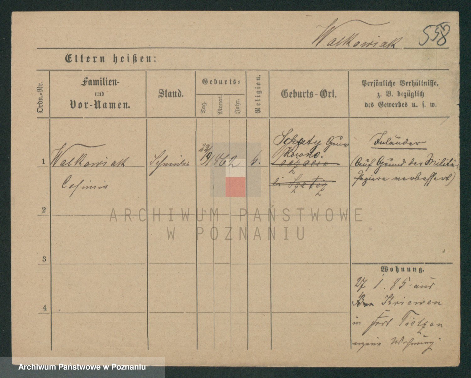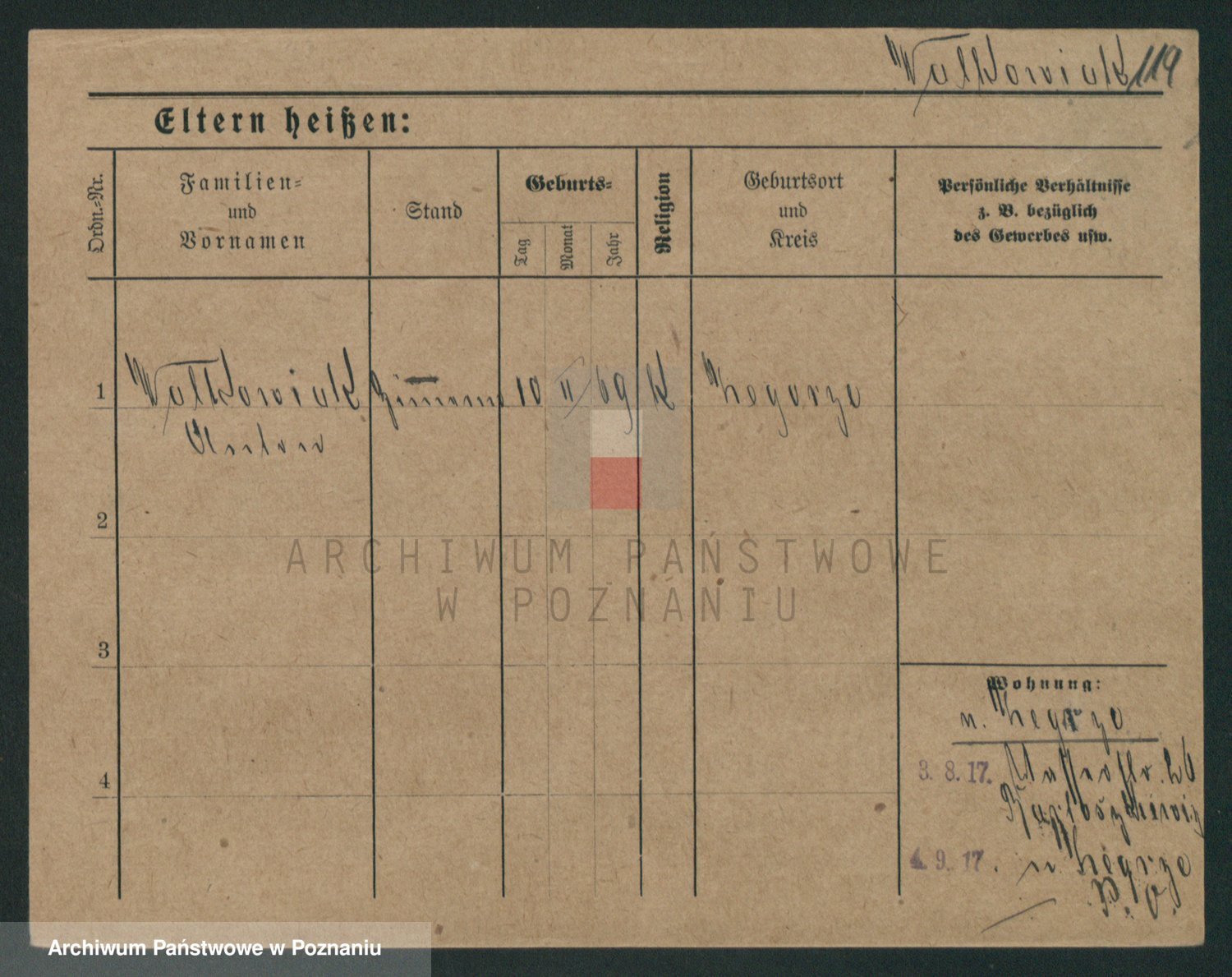 Podgląd karty osobowej dostępny jest po kliknięciu na nazwisko lub ikonkę karty. Można dokonywać powiększenia (ikony na górze) lub przechodzić między kolejnymi skanami (strzałki po bokach).
