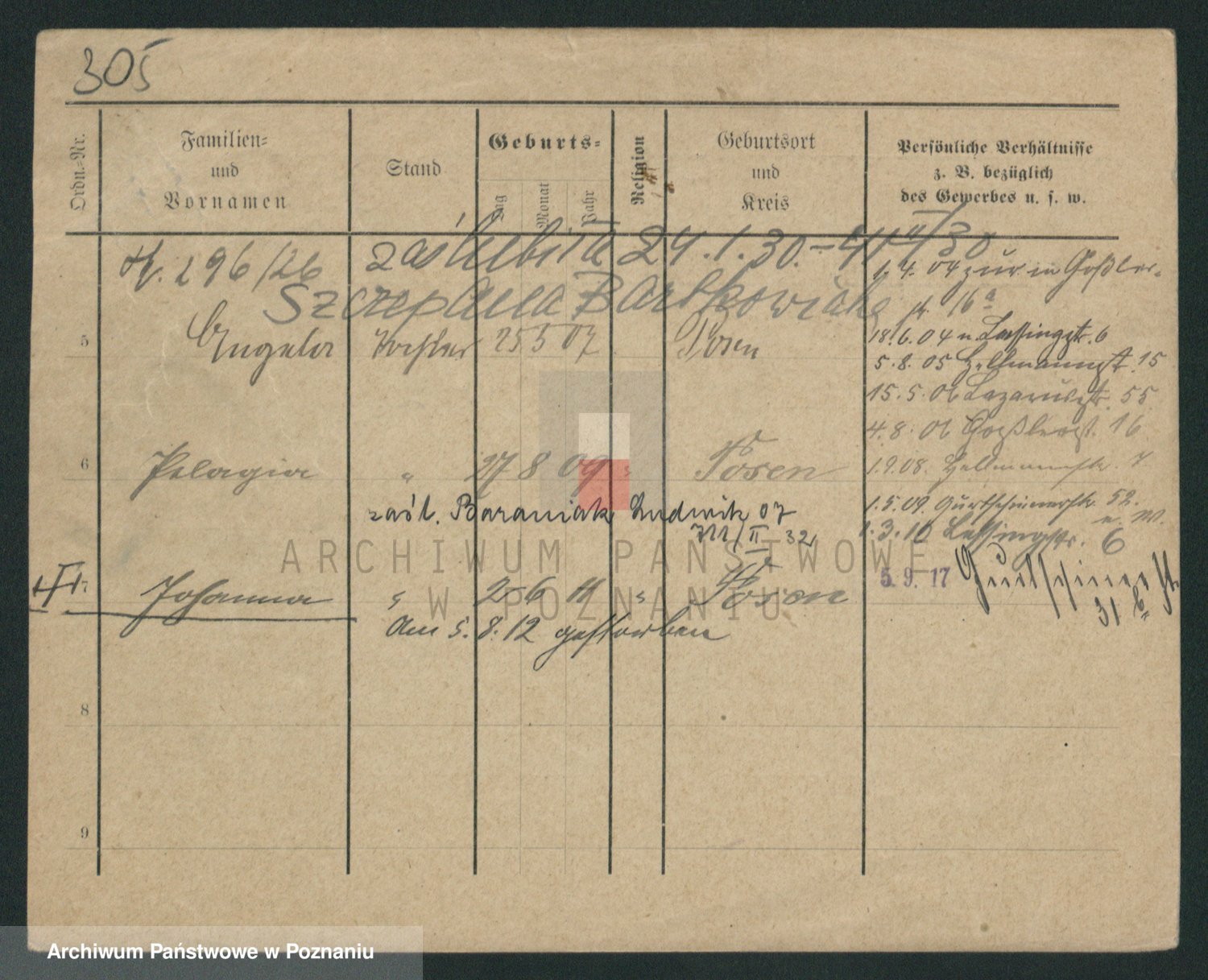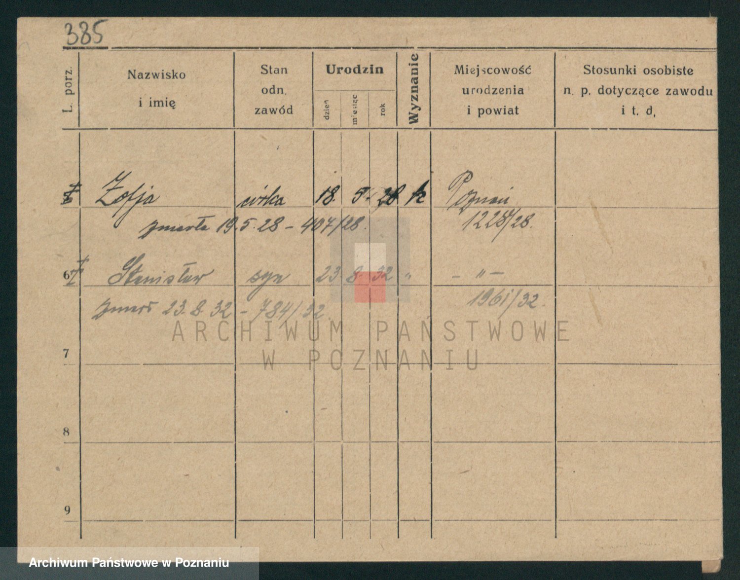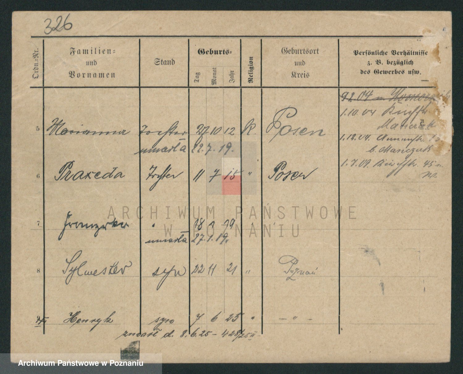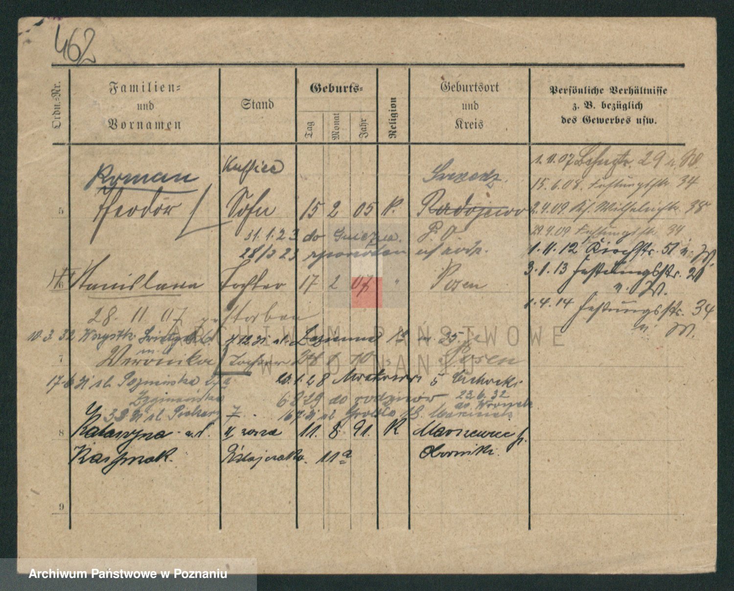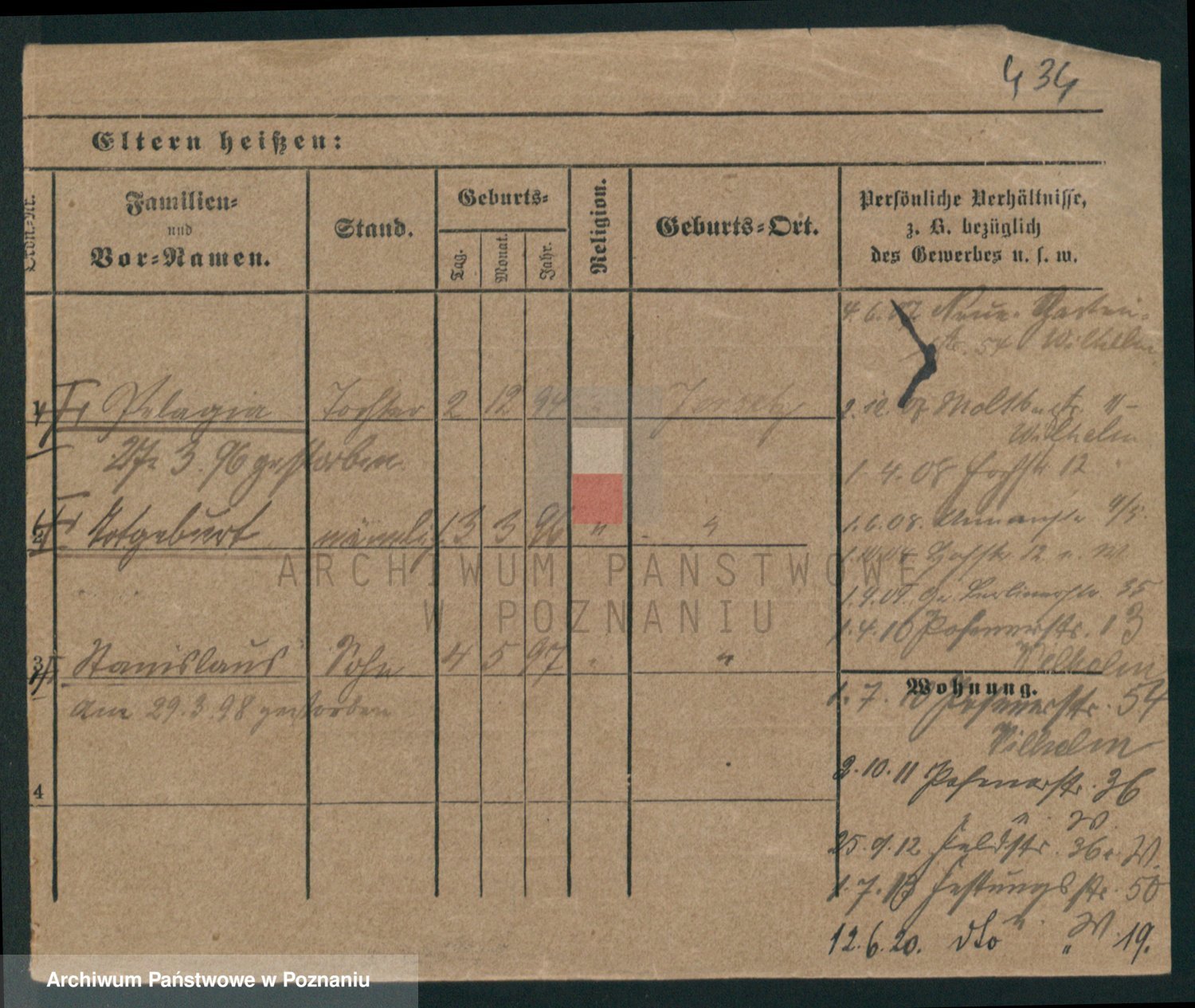 Podgląd karty osobowej dostępny jest po kliknięciu na nazwisko lub ikonkę karty. Można dokonywać powiększenia (ikony na górze) lub przechodzić między kolejnymi skanami (strzałki po bokach).