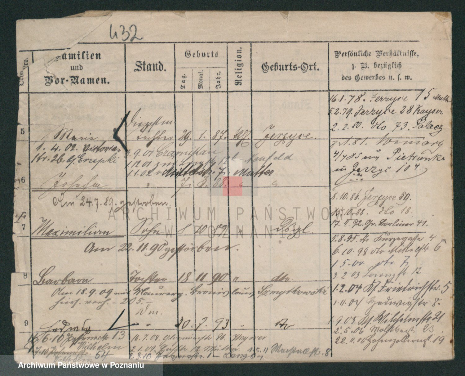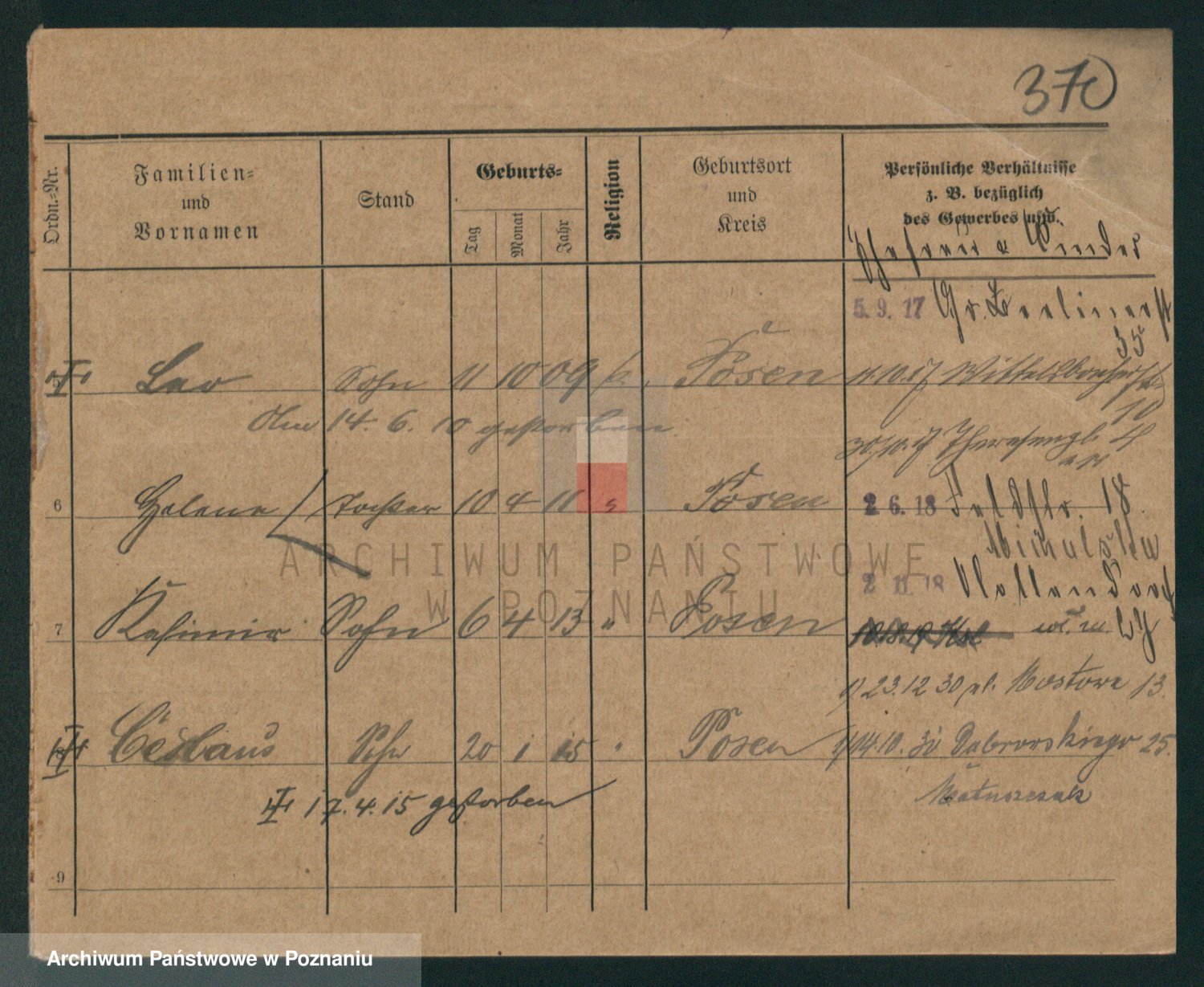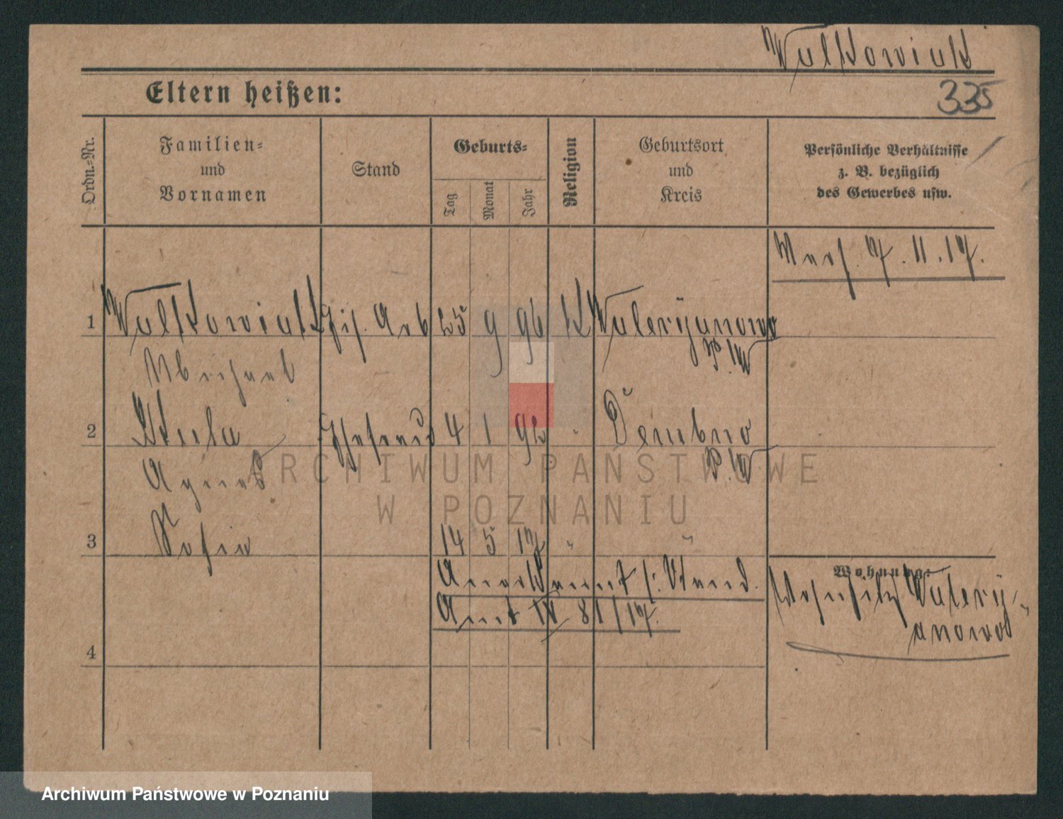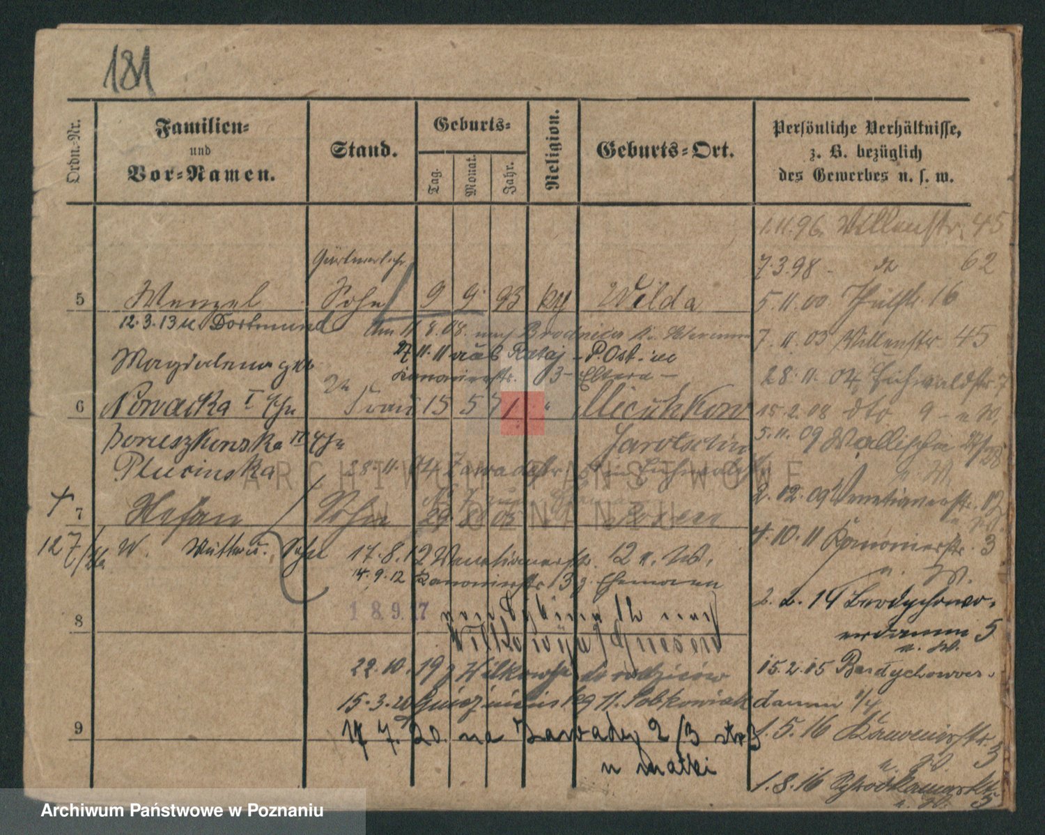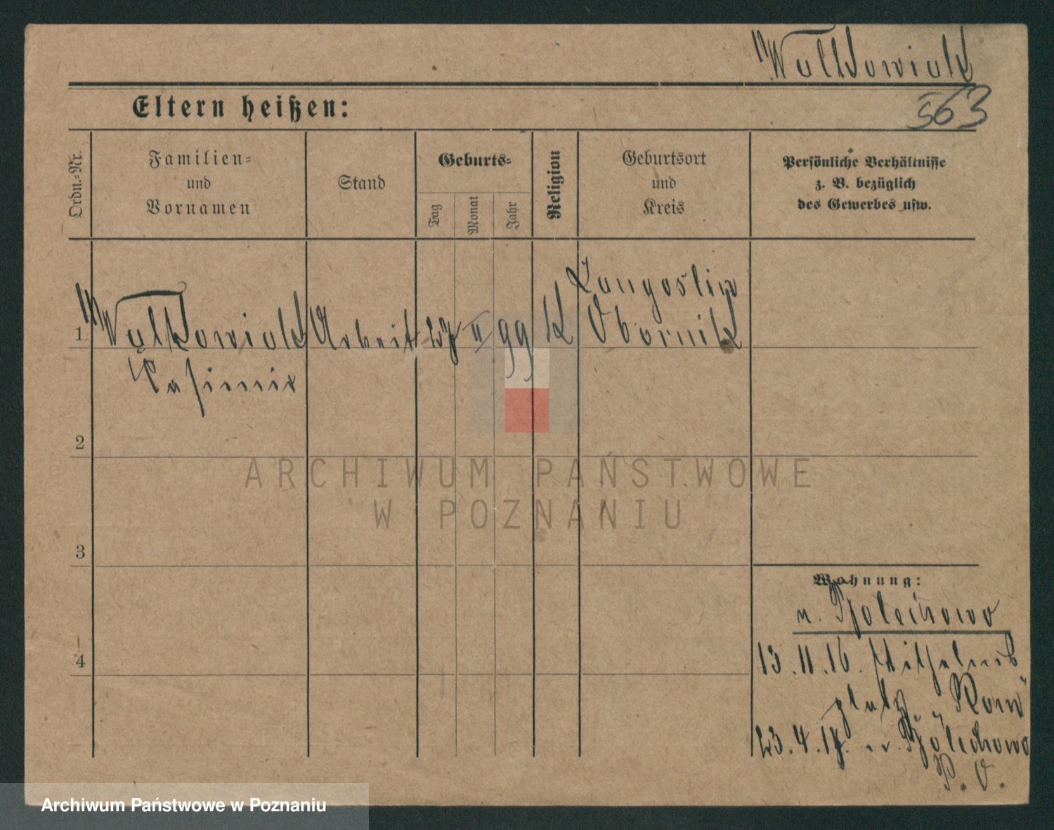 Podgląd karty osobowej dostępny jest po kliknięciu na nazwisko lub ikonkę karty. Można dokonywać powiększenia (ikony na górze) lub przechodzić między kolejnymi skanami (strzałki po bokach).