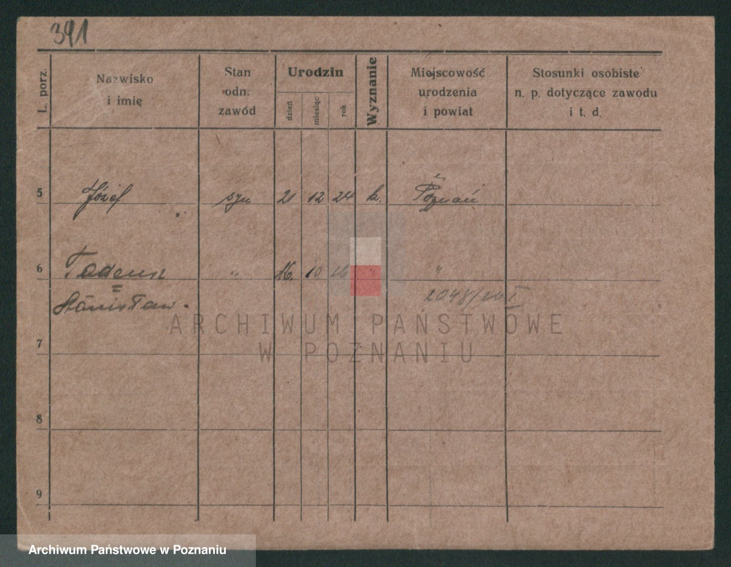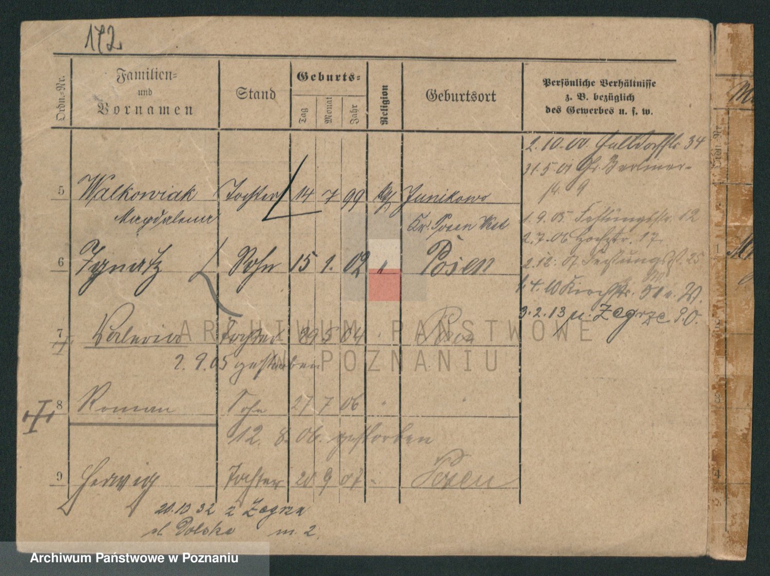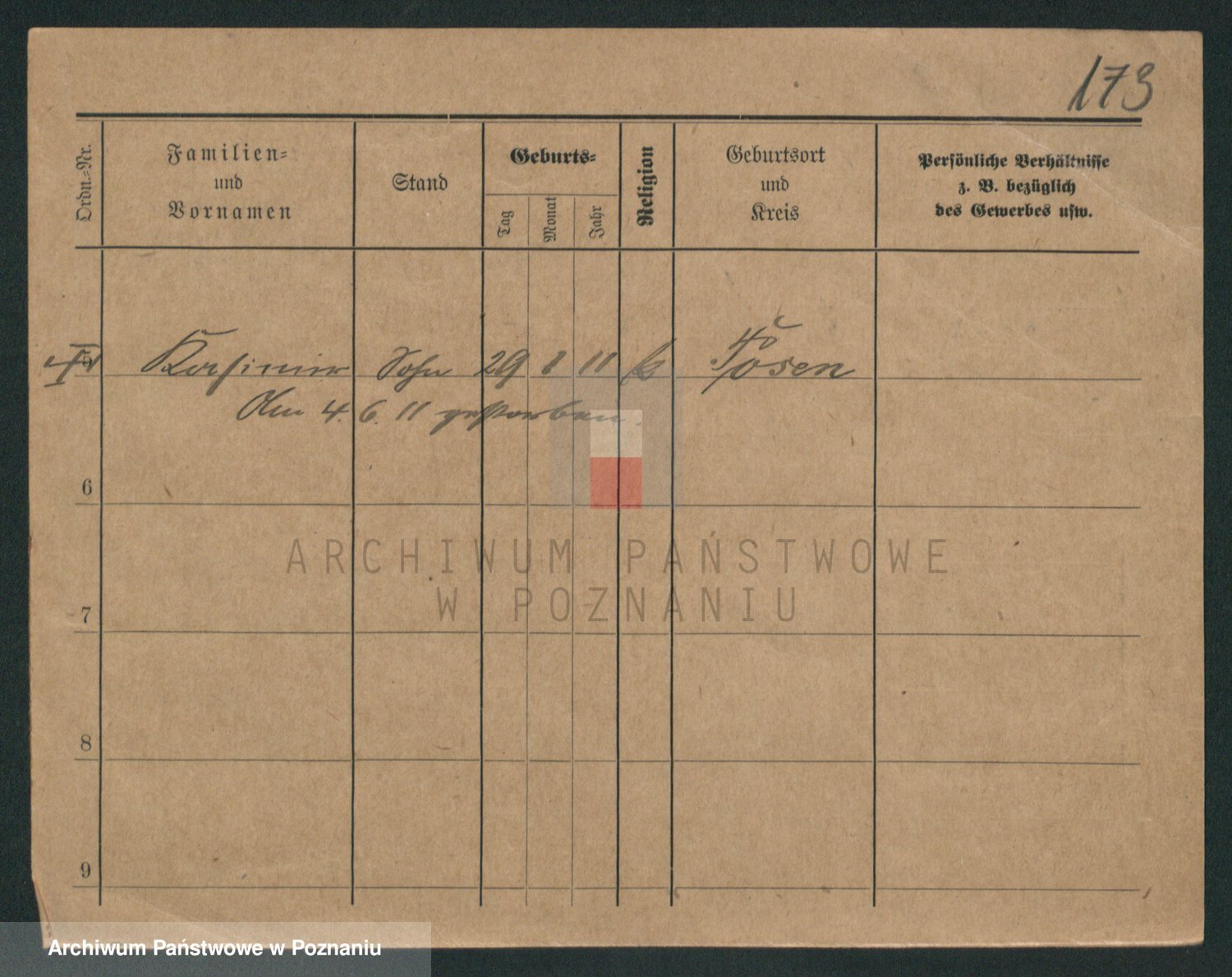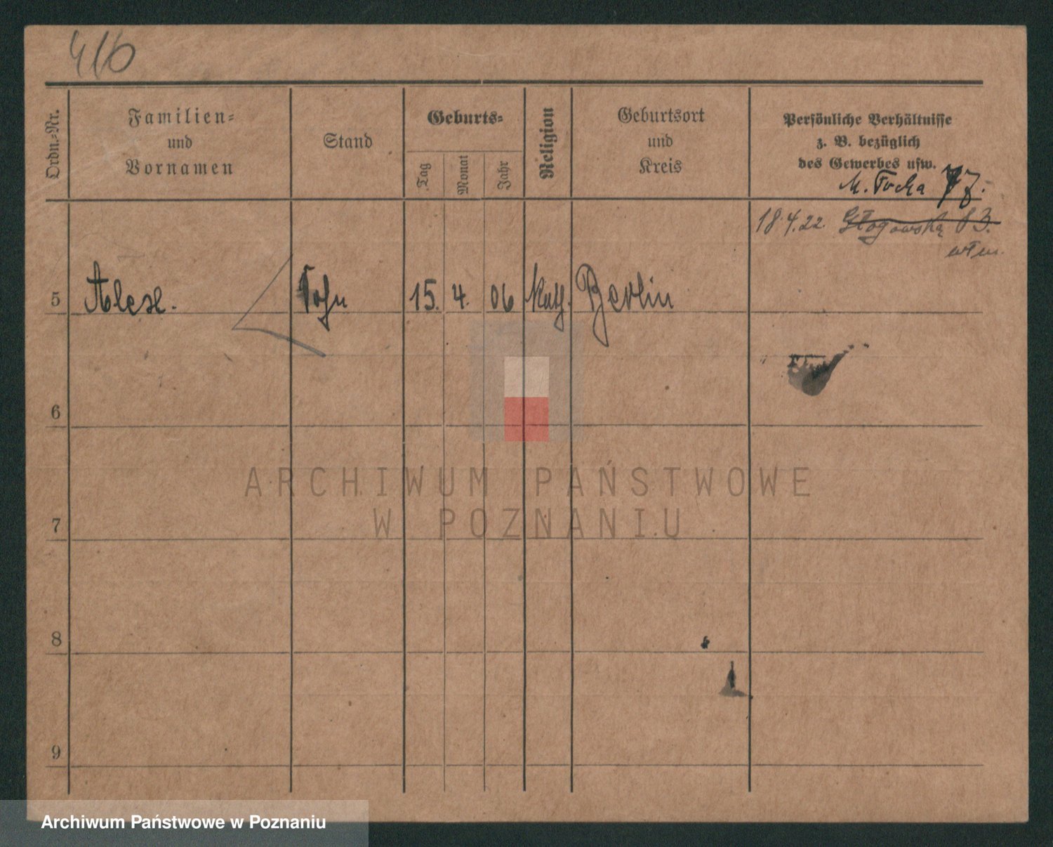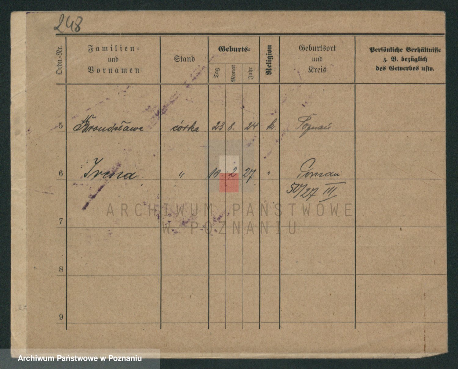 Podgląd karty osobowej dostępny jest po kliknięciu na nazwisko lub ikonkę karty. Można dokonywać powiększenia (ikony na górze) lub przechodzić między kolejnymi skanami (strzałki po bokach).