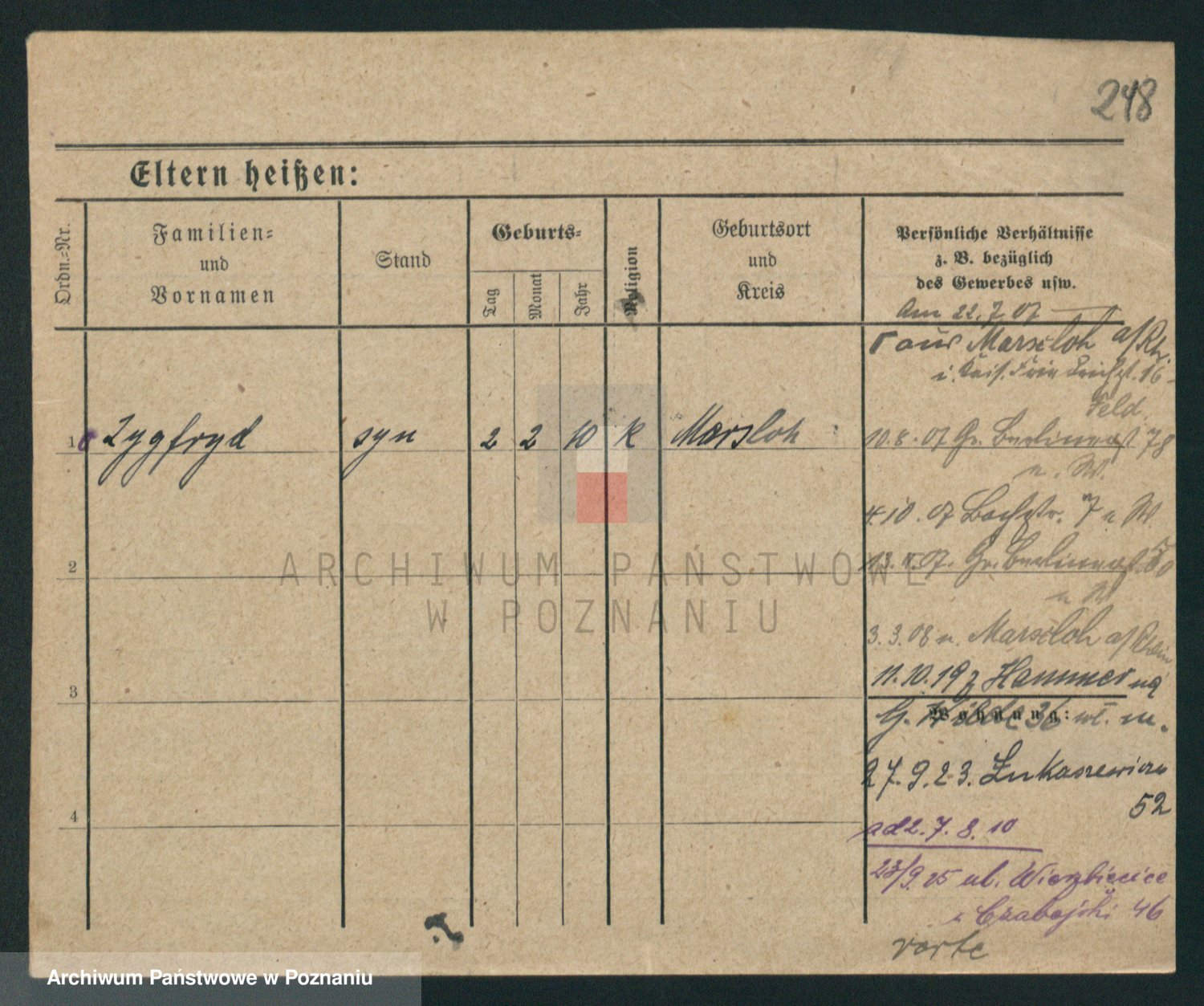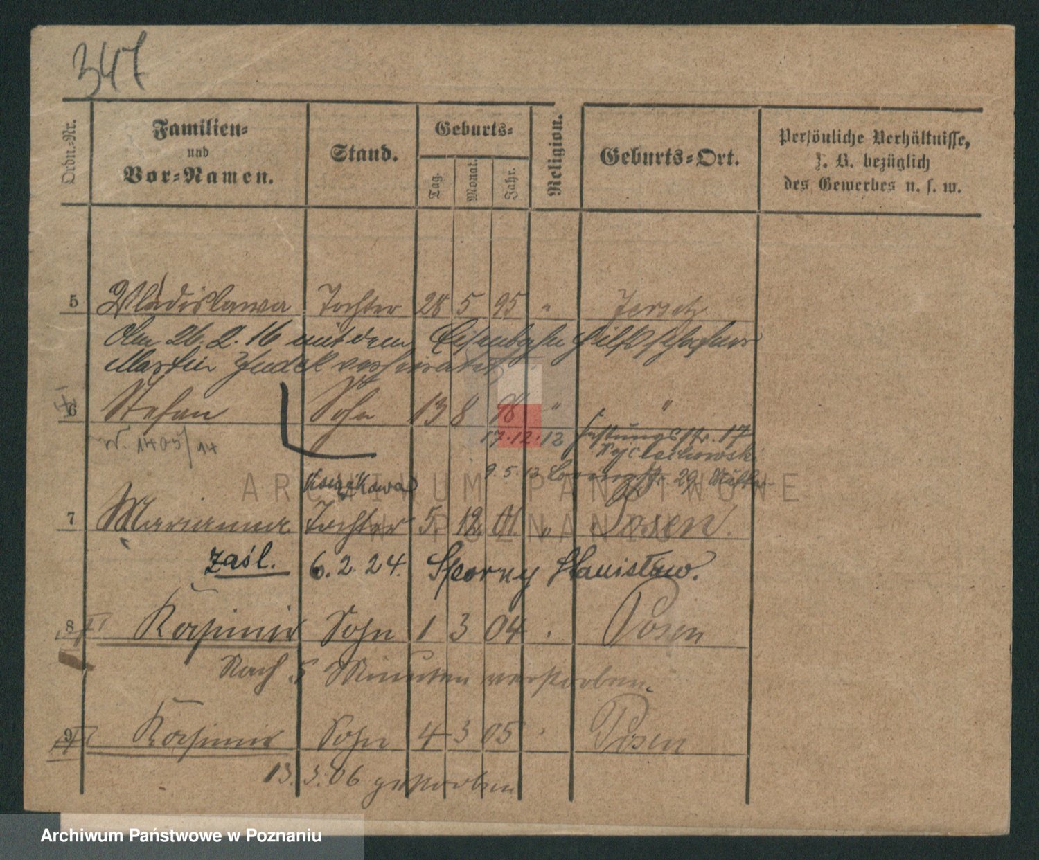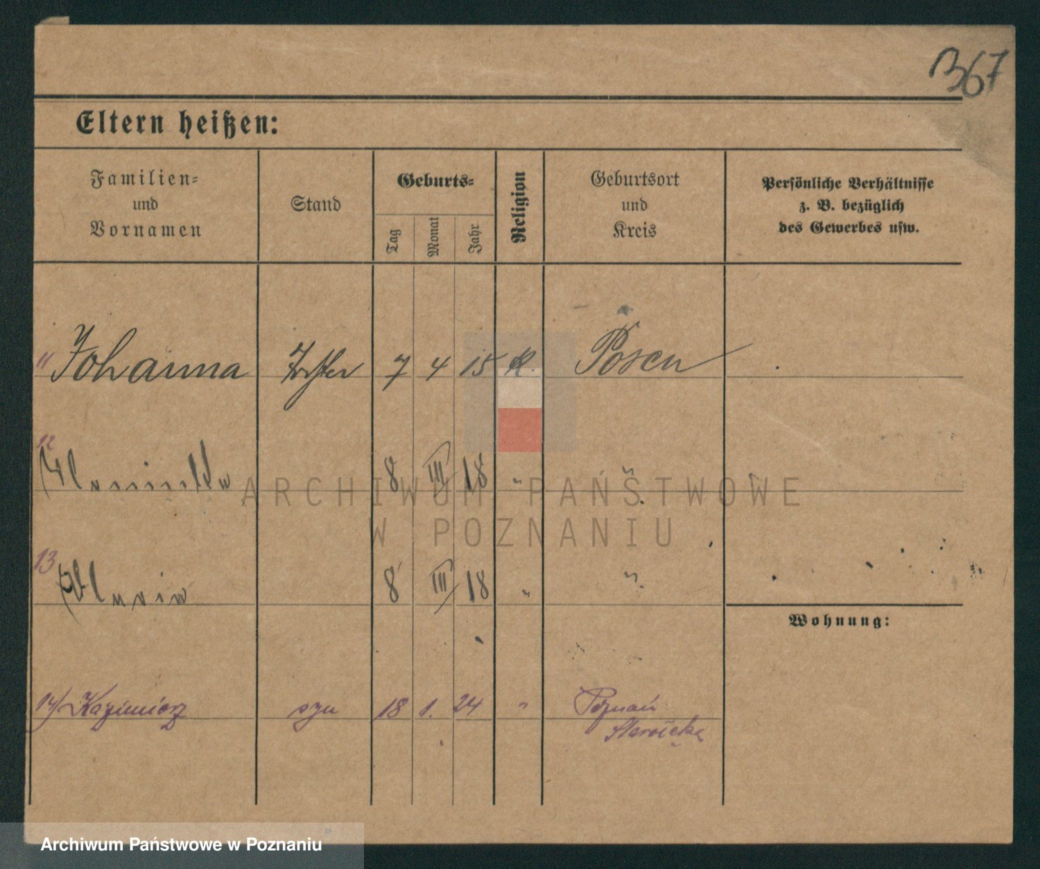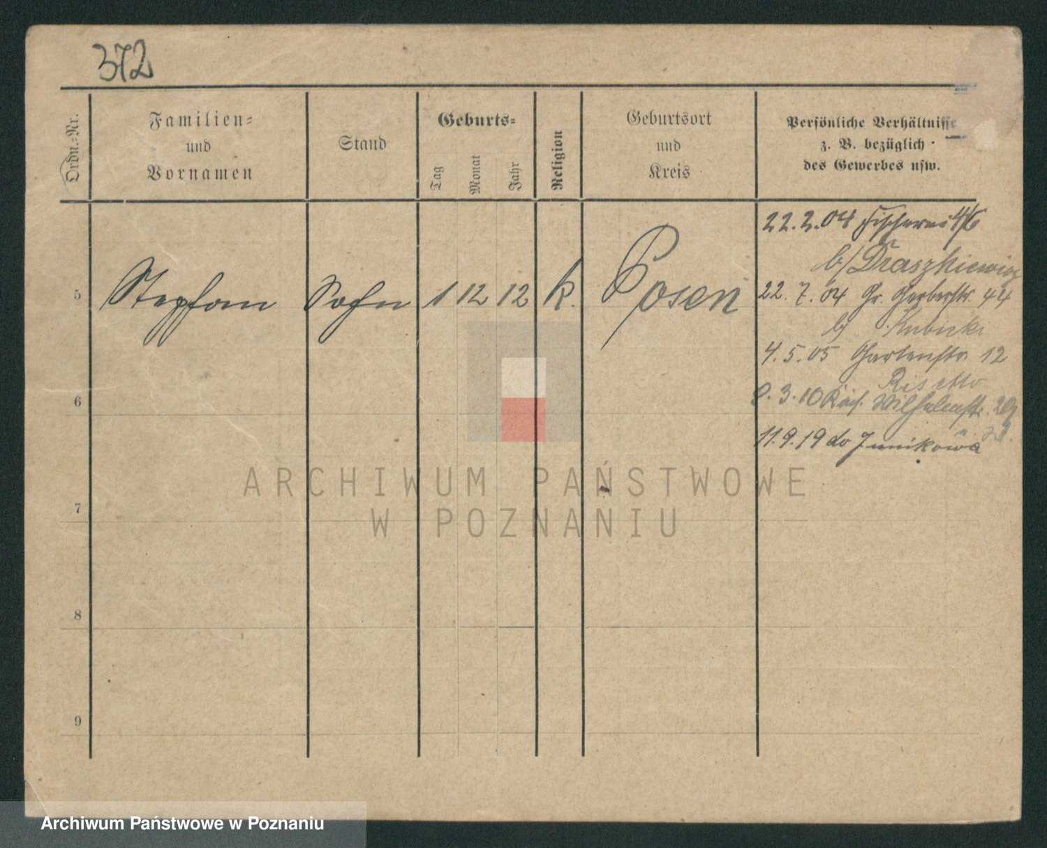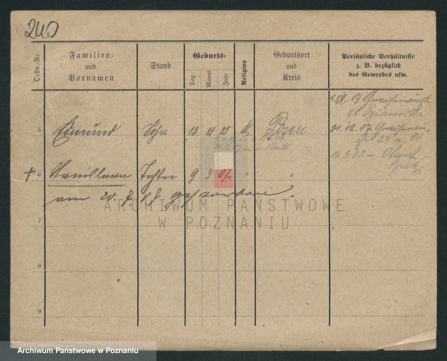 Podgląd karty osobowej dostępny jest po kliknięciu na nazwisko lub ikonkę karty. Można dokonywać powiększenia (ikony na górze) lub przechodzić między kolejnymi skanami (strzałki po bokach).