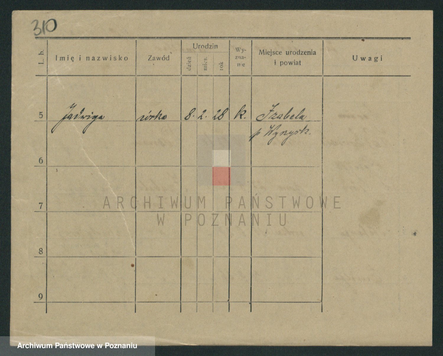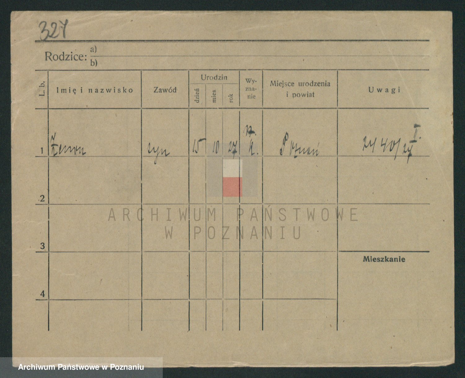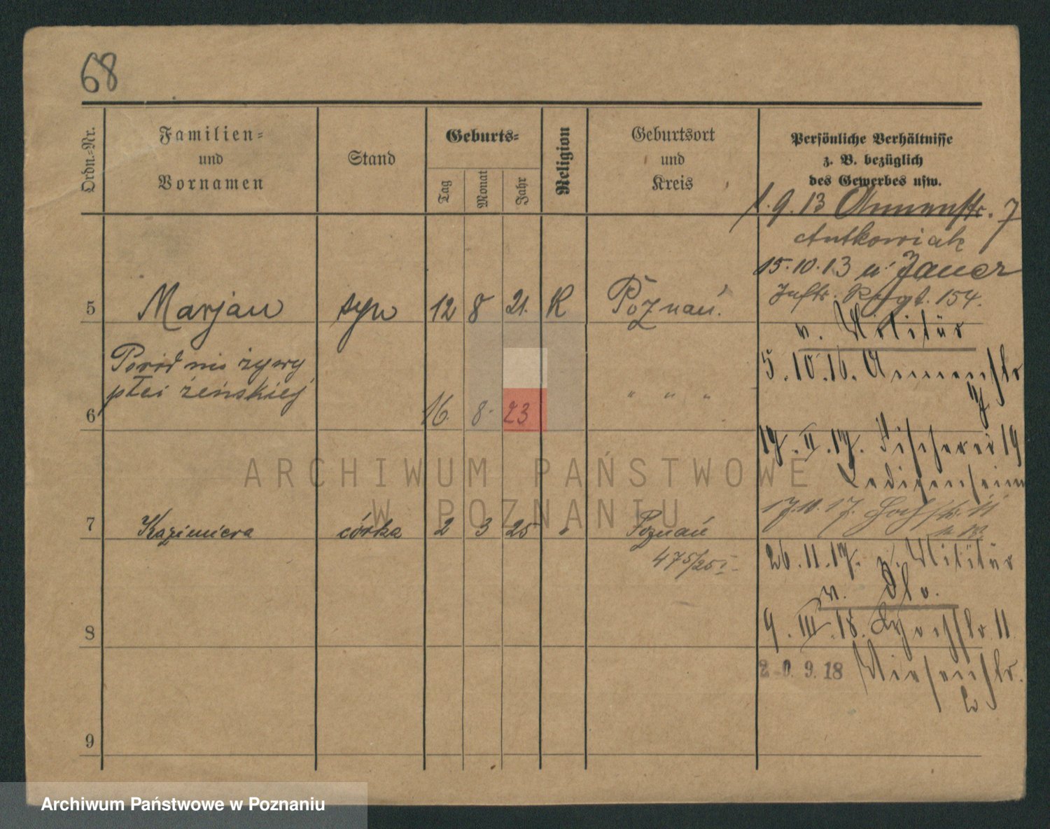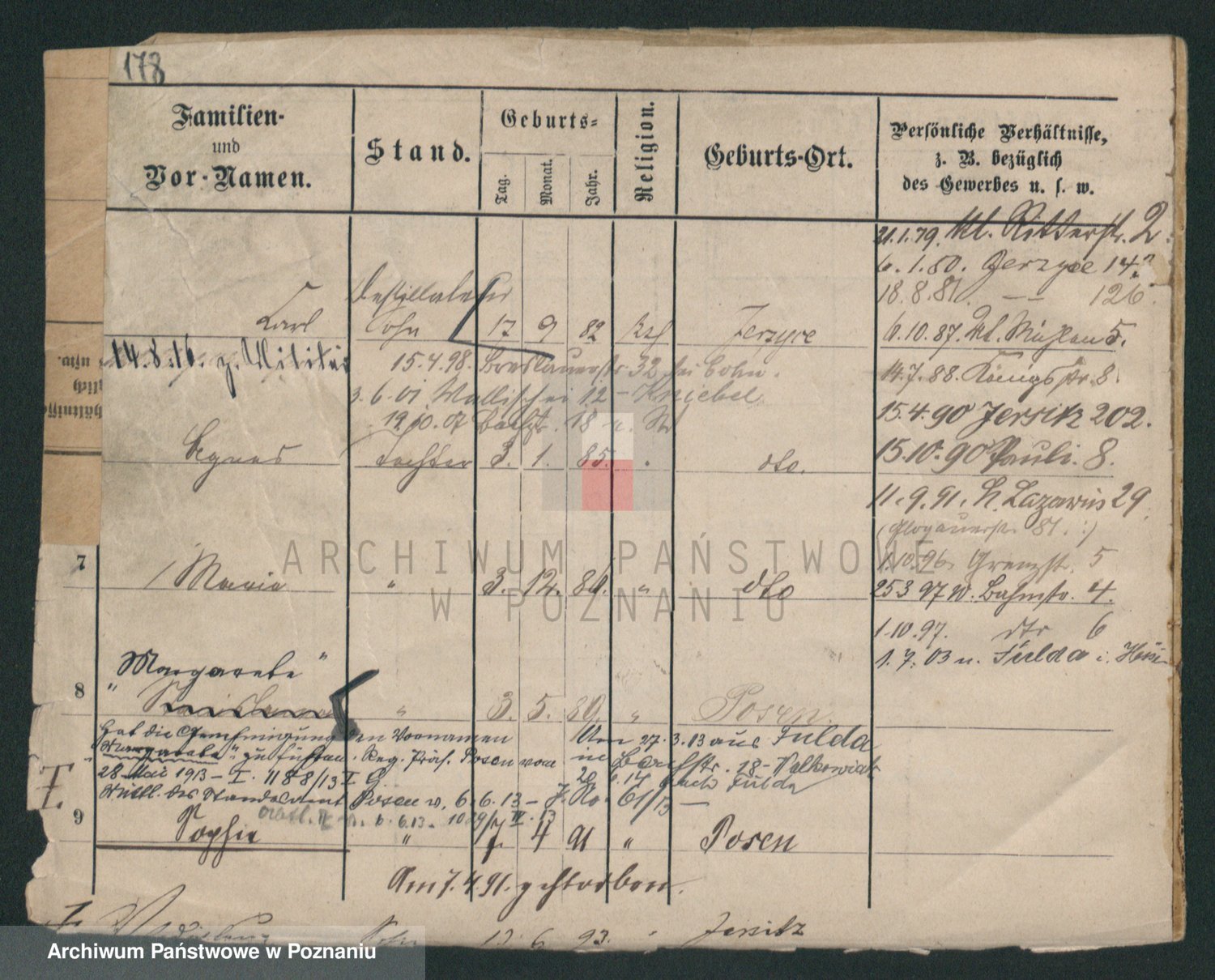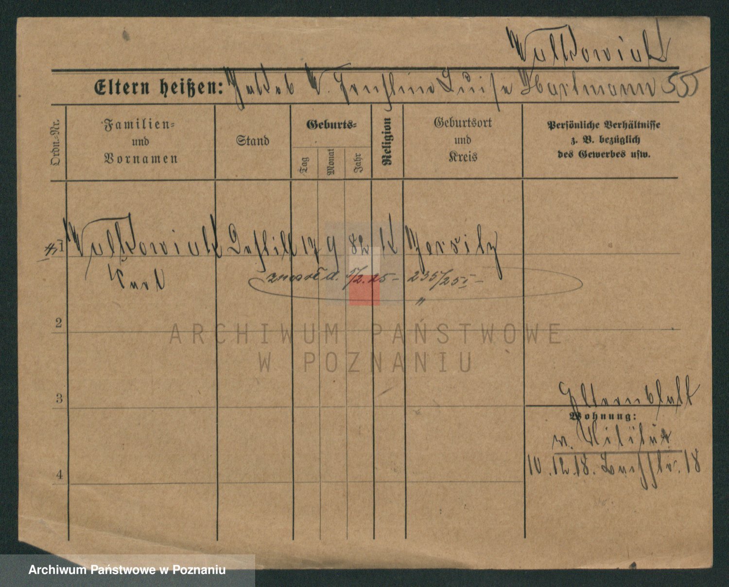 Podgląd karty osobowej dostępny jest po kliknięciu na nazwisko lub ikonkę karty. Można dokonywać powiększenia (ikony na górze) lub przechodzić między kolejnymi skanami (strzałki po bokach).