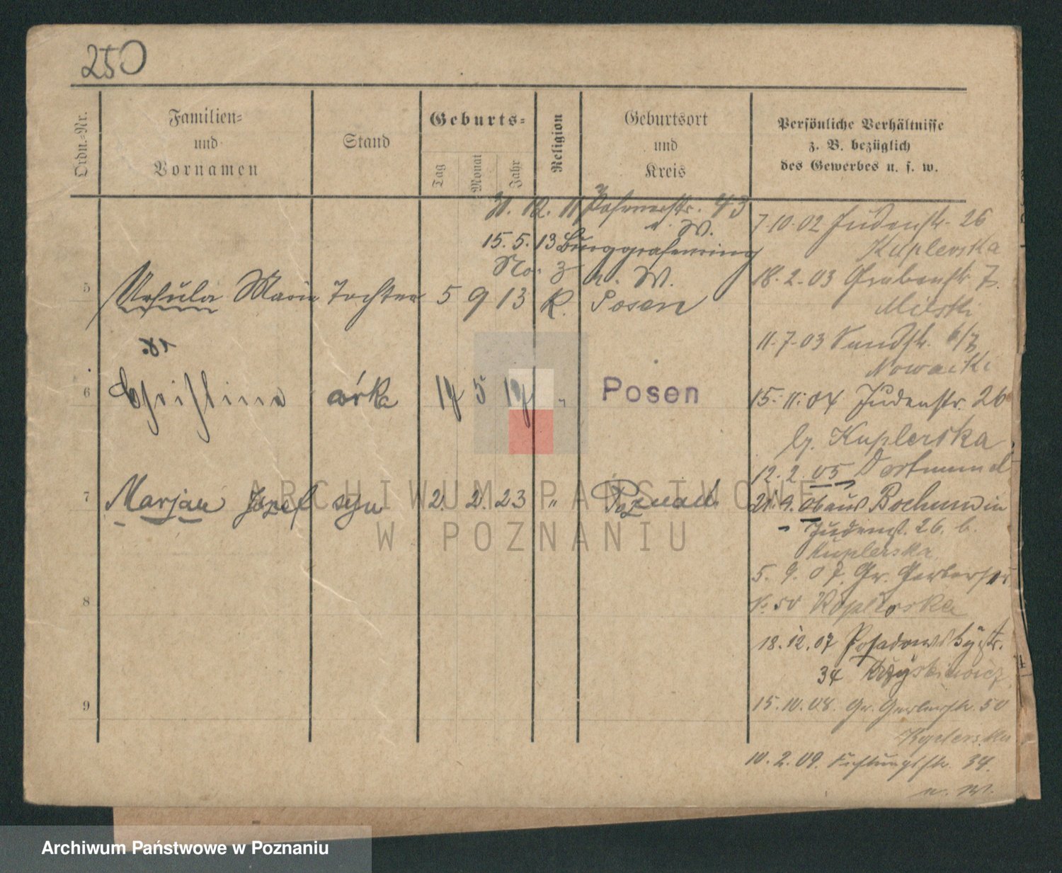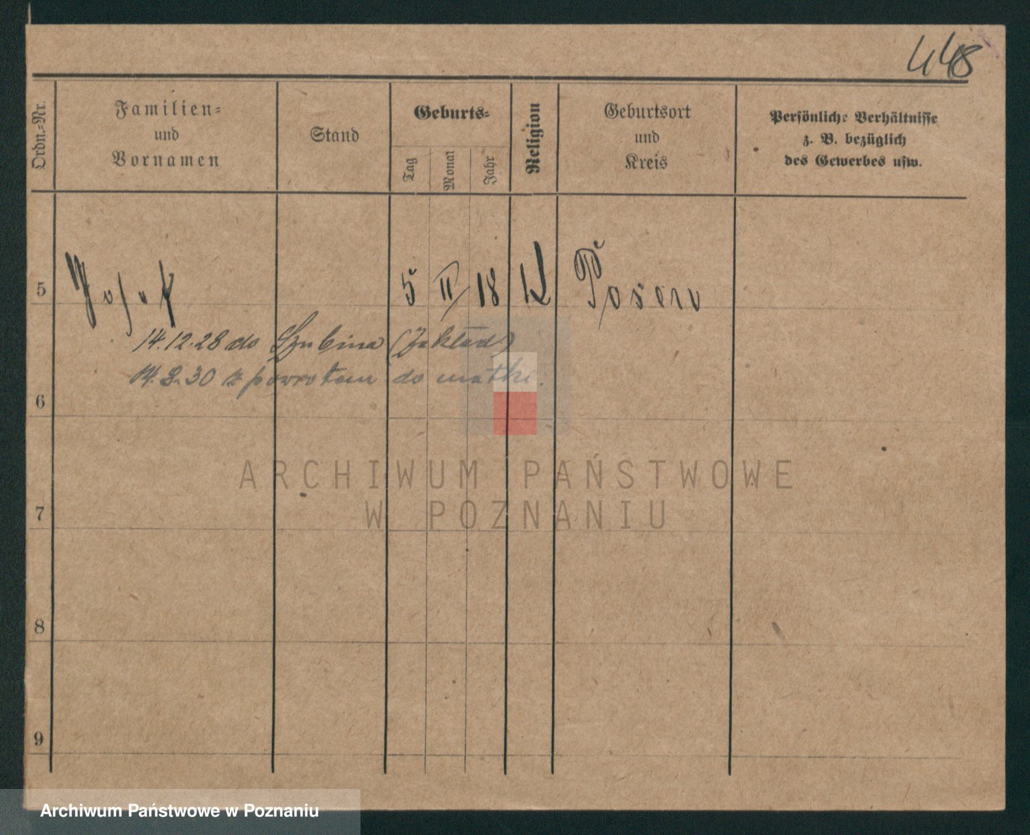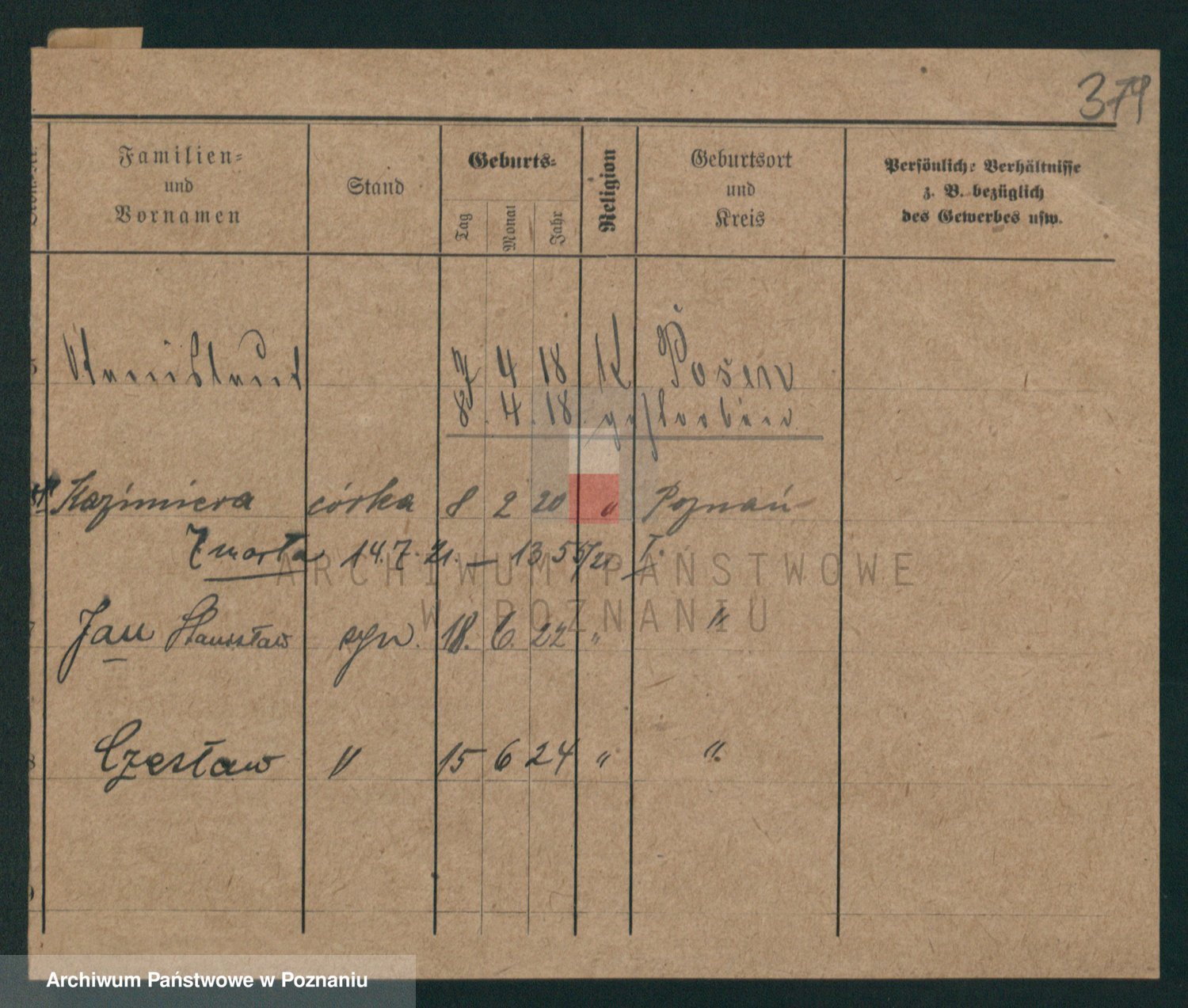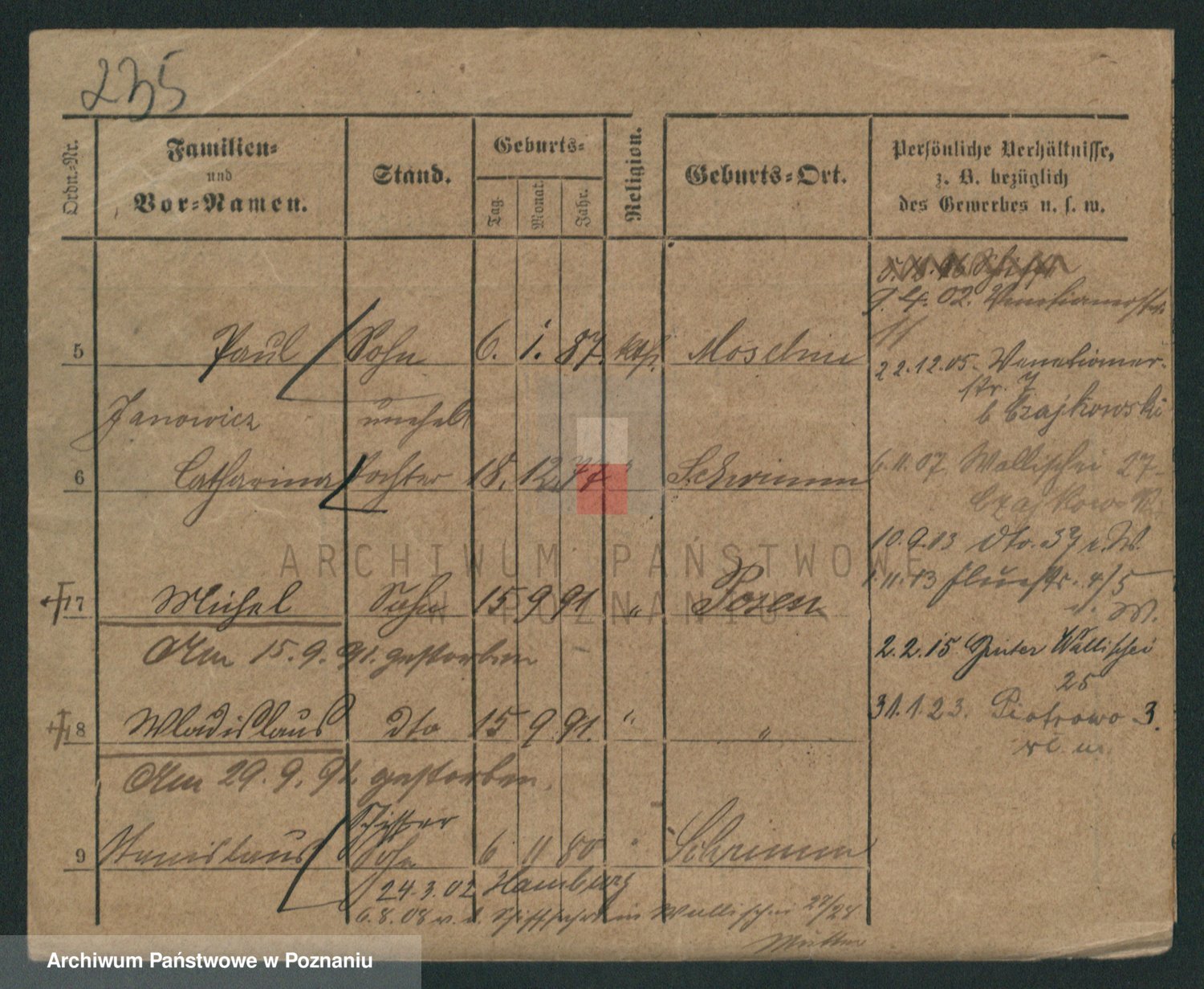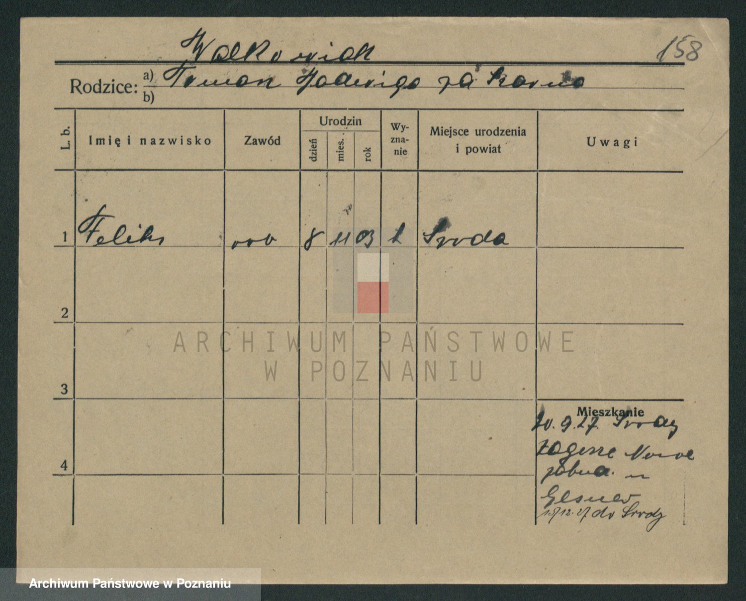 Podgląd karty osobowej dostępny jest po kliknięciu na nazwisko lub ikonkę karty. Można dokonywać powiększenia (ikony na górze) lub przechodzić między kolejnymi skanami (strzałki po bokach).