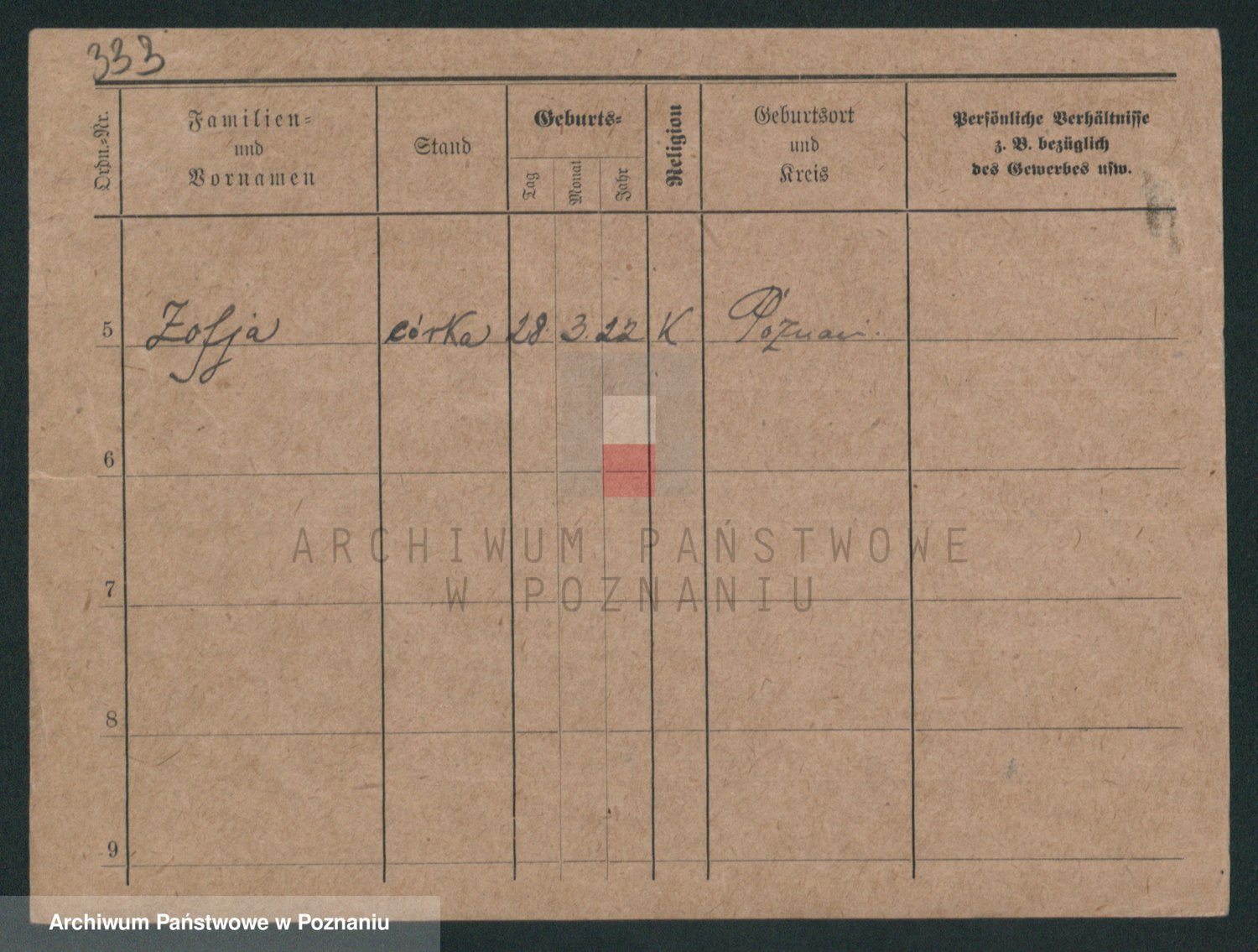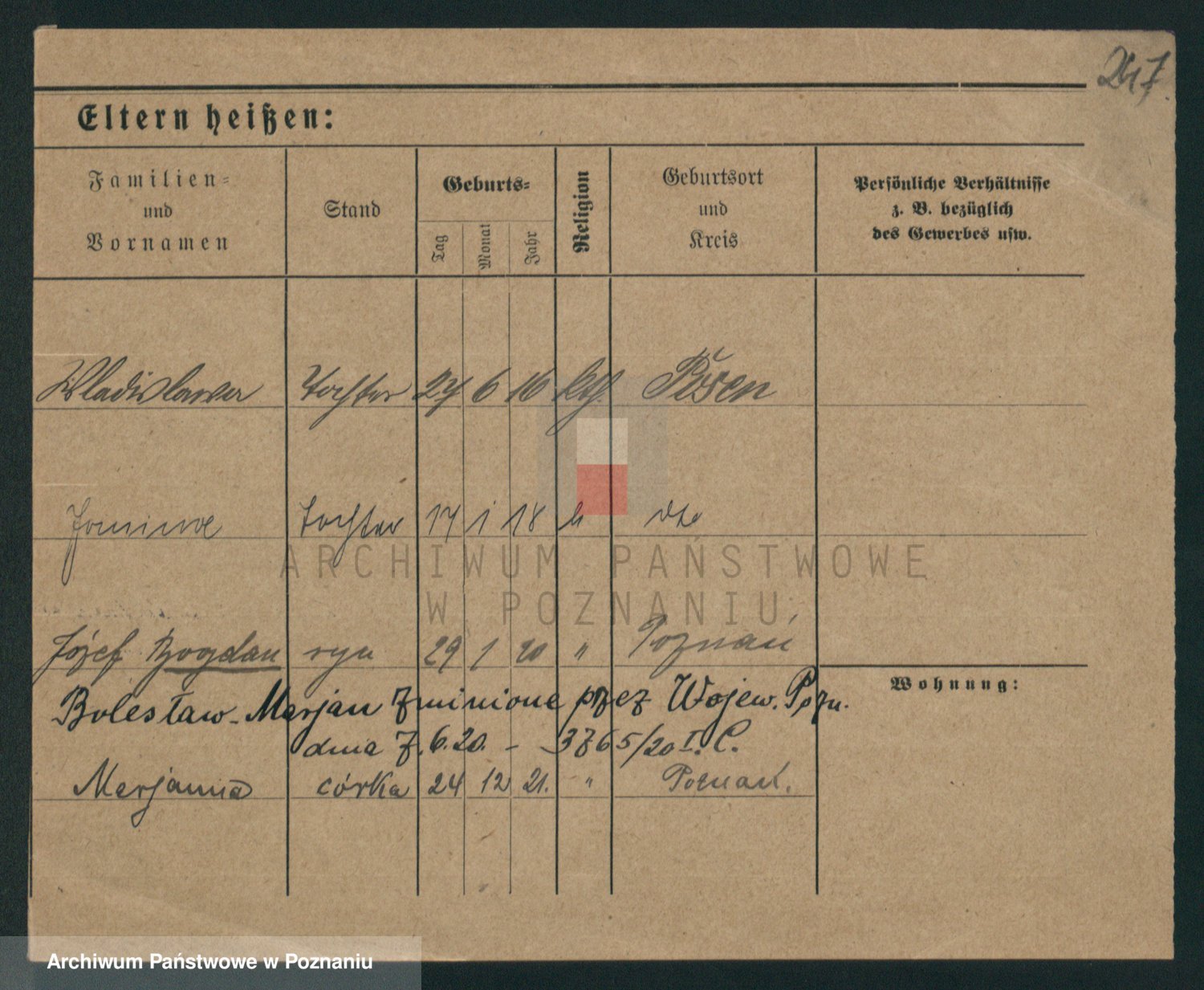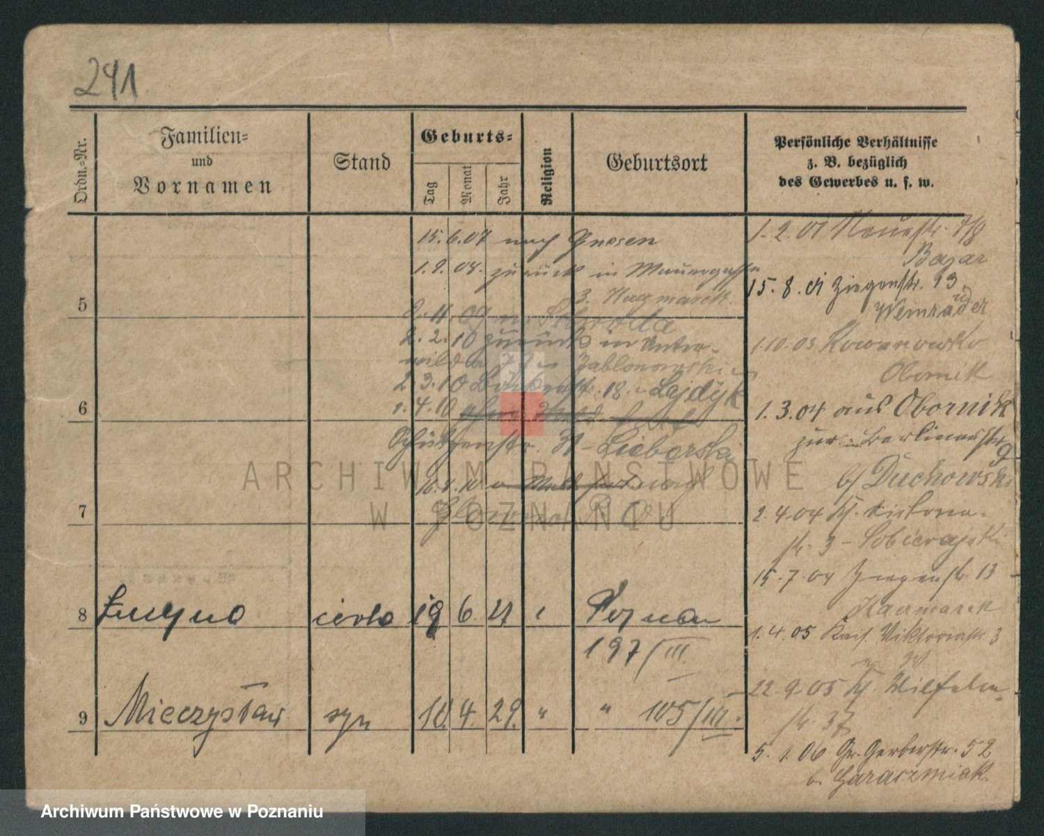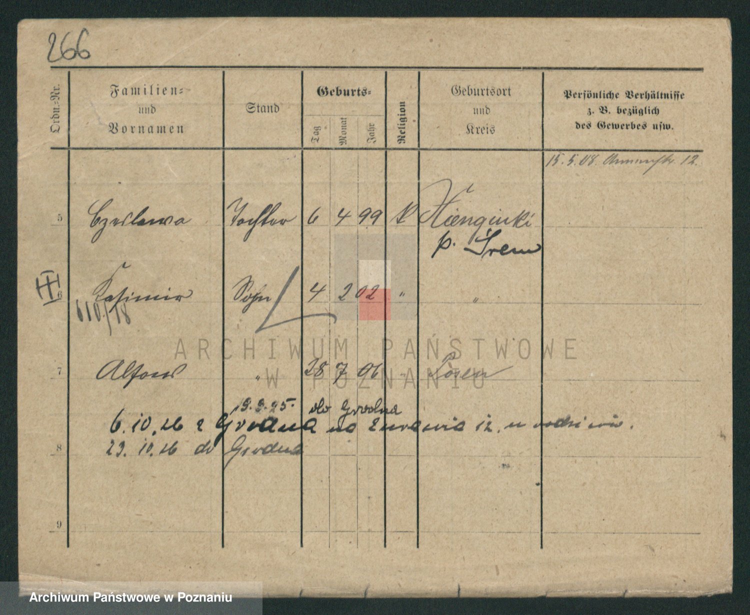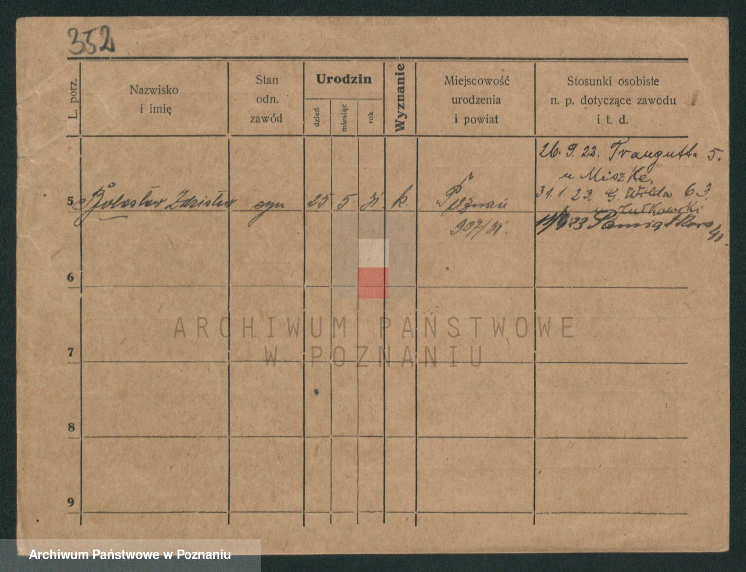 Podgląd karty osobowej dostępny jest po kliknięciu na nazwisko lub ikonkę karty. Można dokonywać powiększenia (ikony na górze) lub przechodzić między kolejnymi skanami (strzałki po bokach).