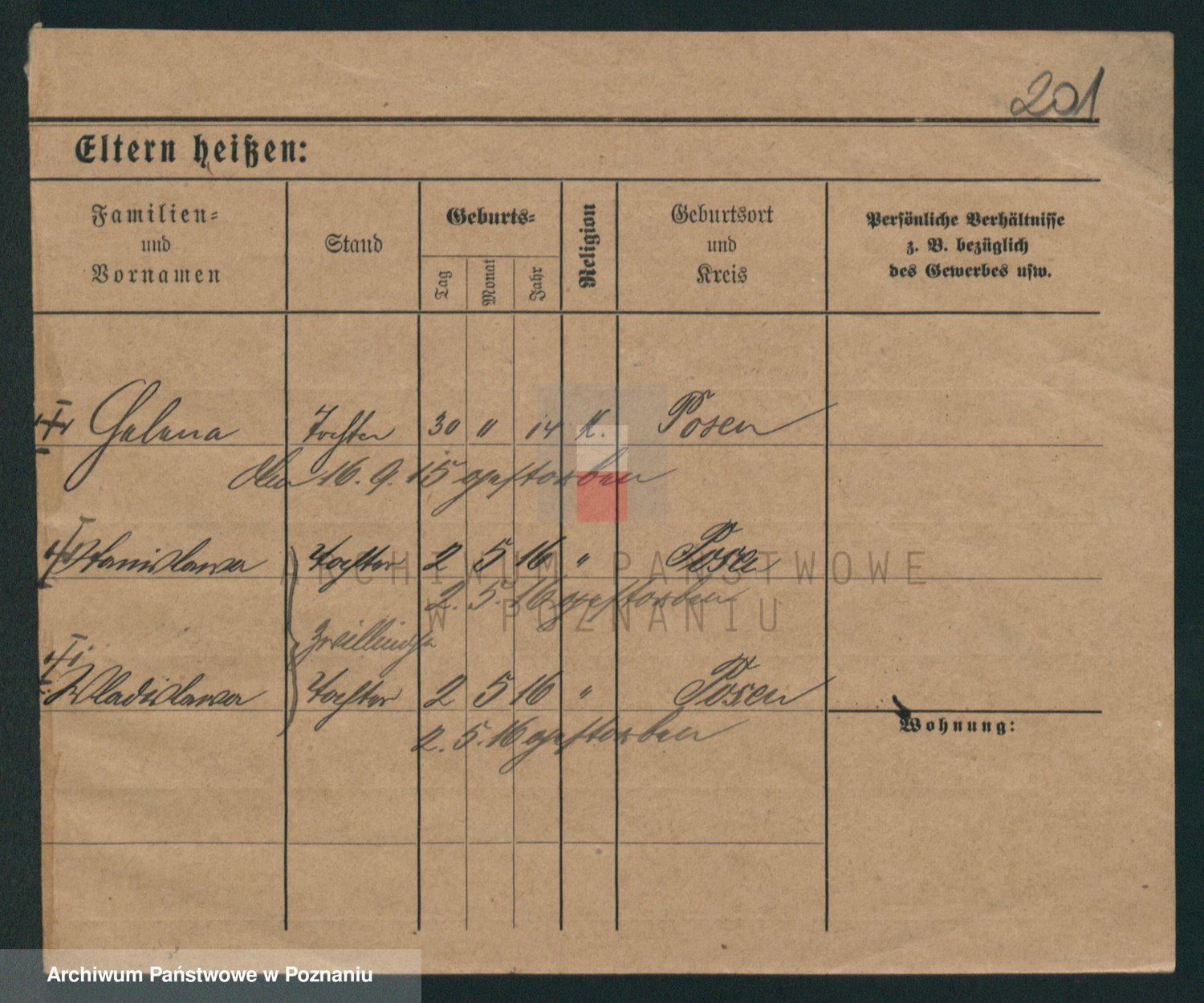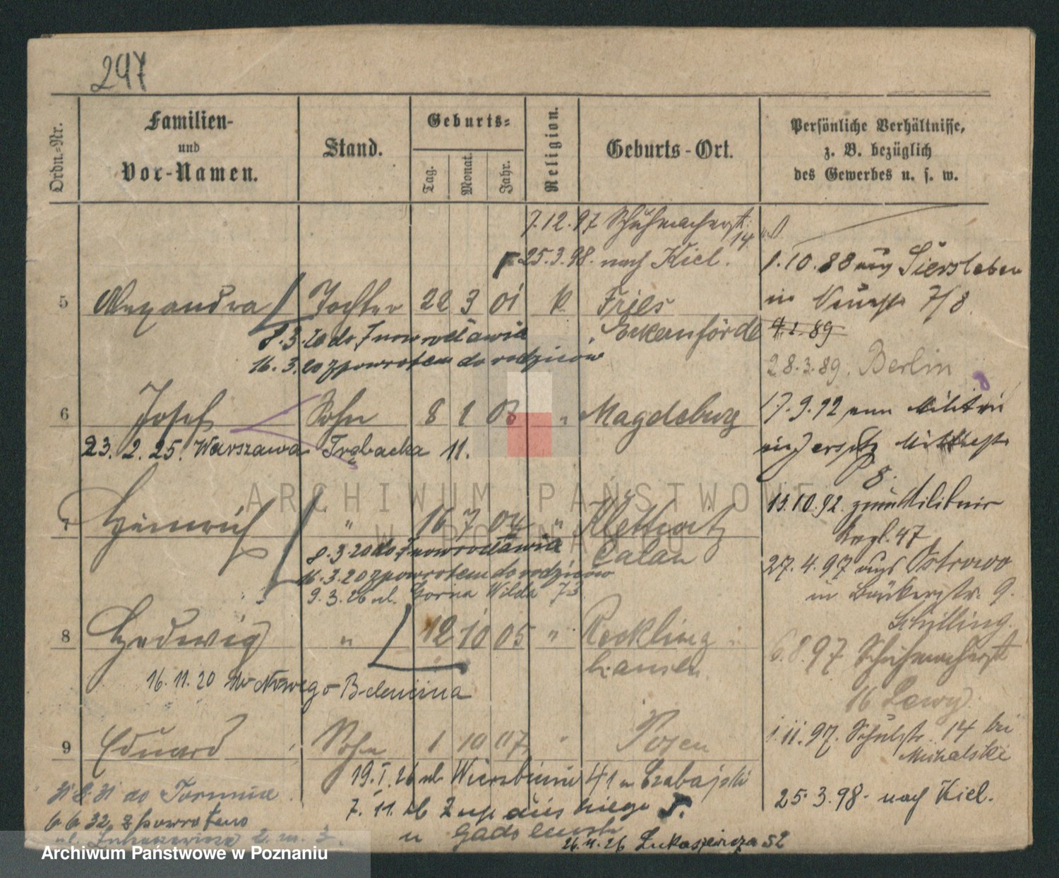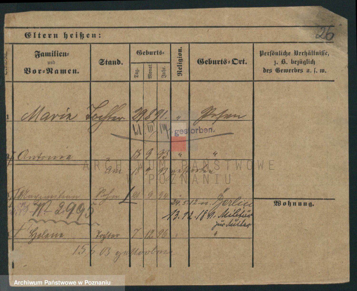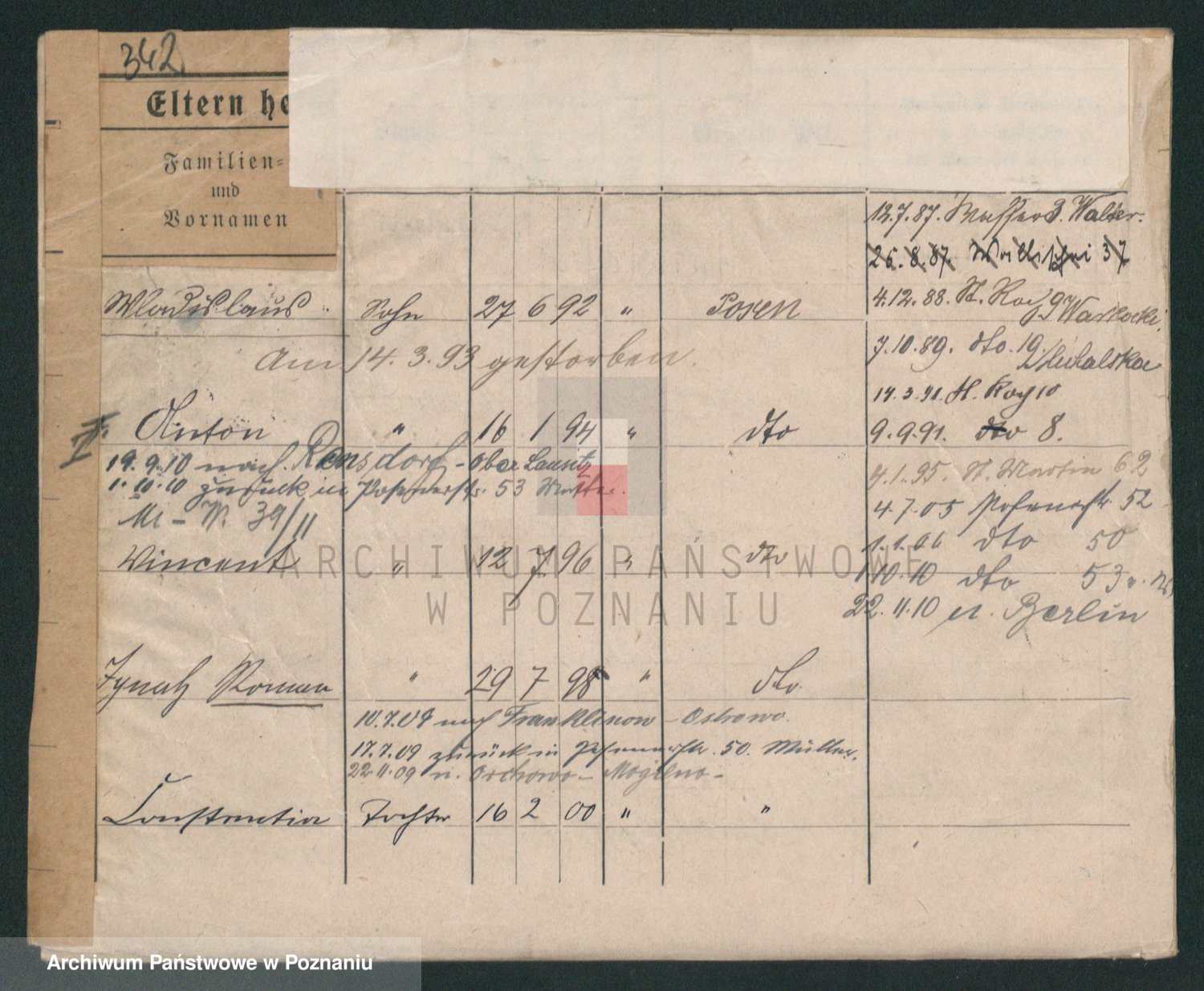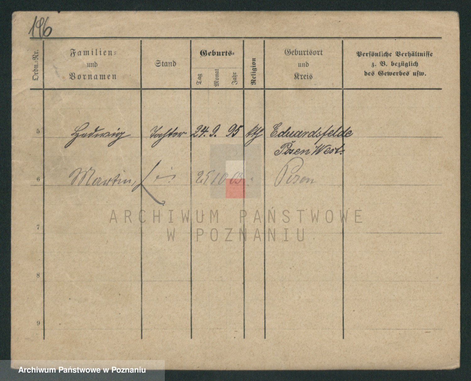 Podgląd karty osobowej dostępny jest po kliknięciu na nazwisko lub ikonkę karty. Można dokonywać powiększenia (ikony na górze) lub przechodzić między kolejnymi skanami (strzałki po bokach).