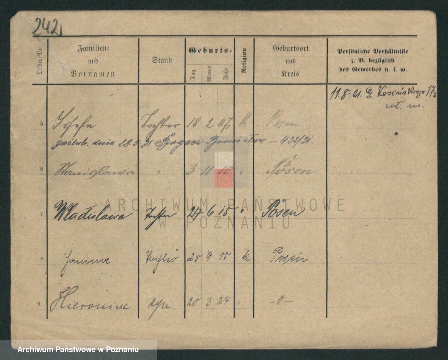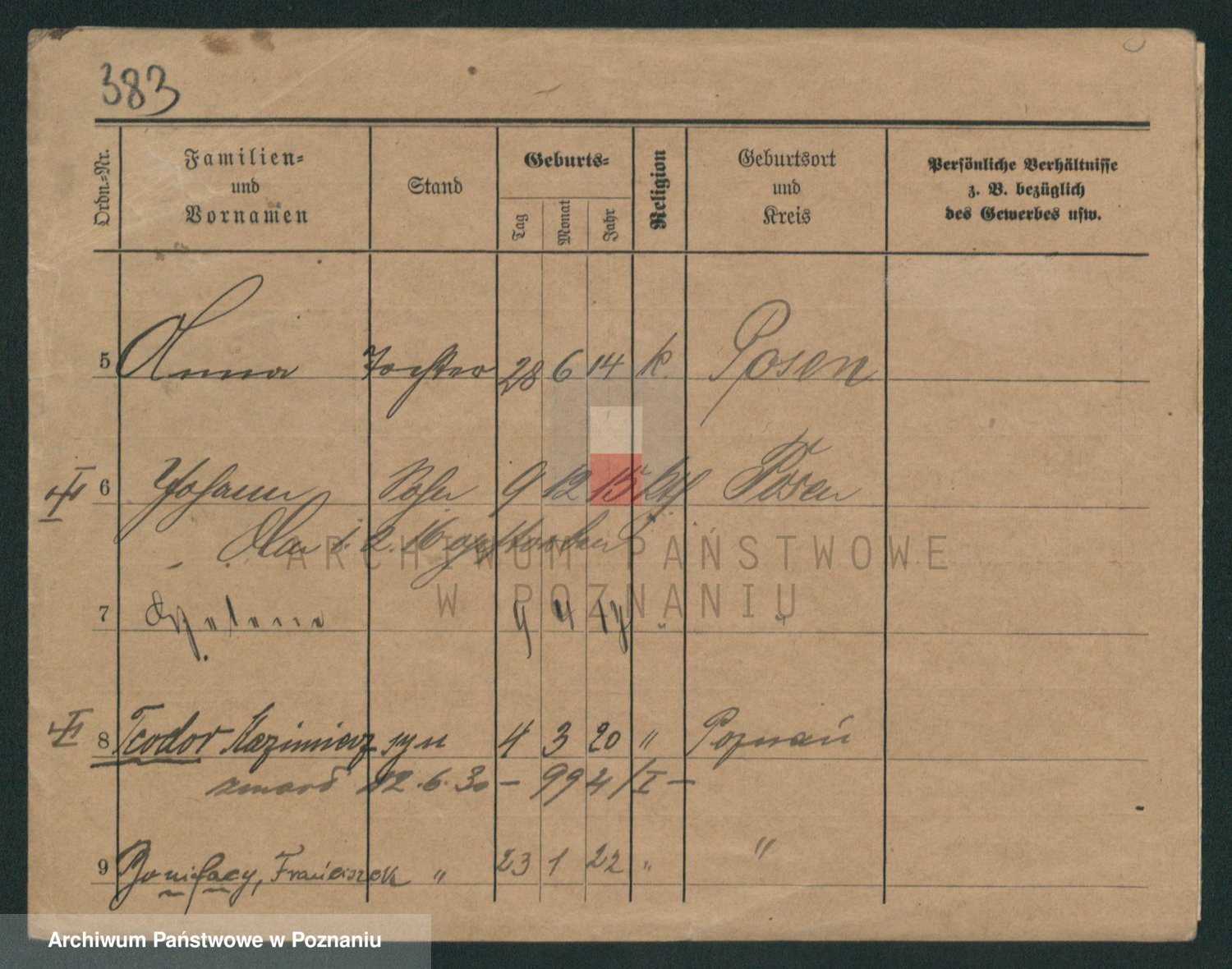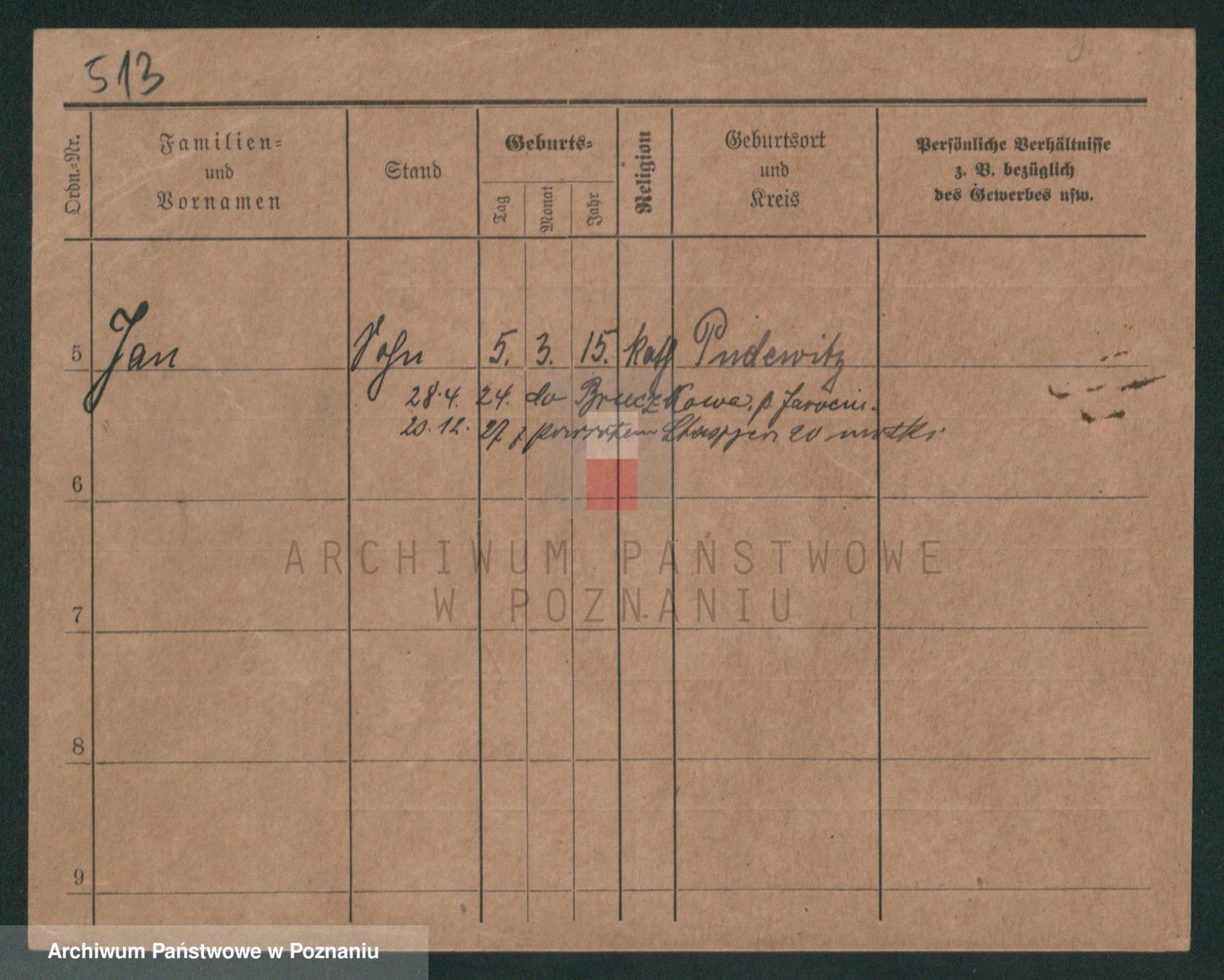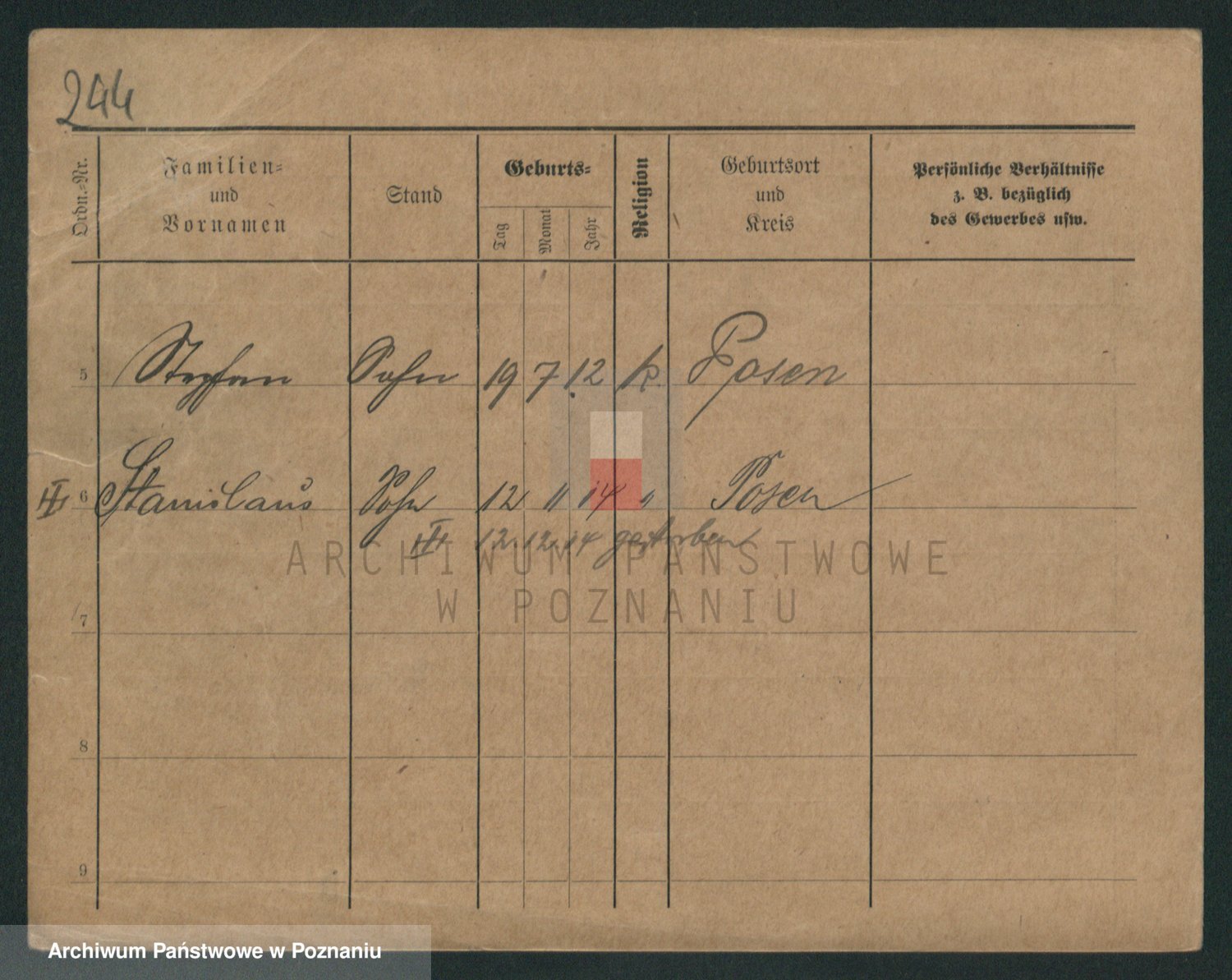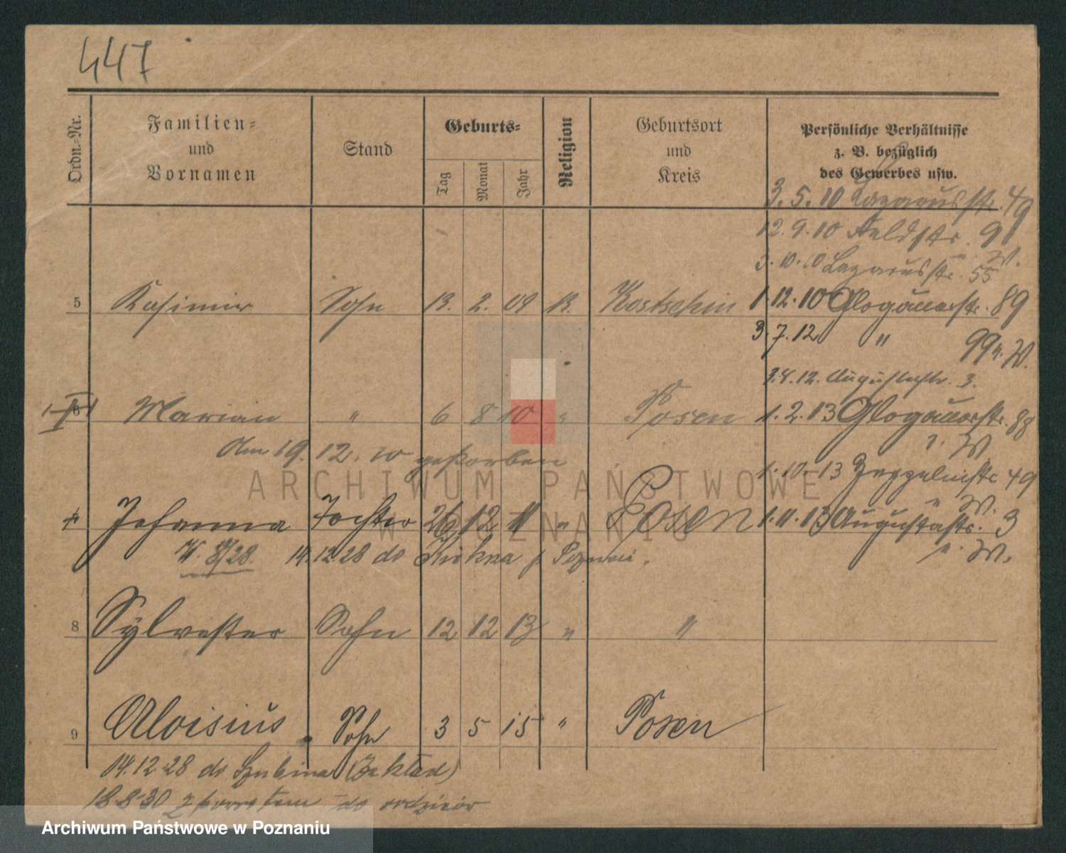 Podgląd karty osobowej dostępny jest po kliknięciu na nazwisko lub ikonkę karty. Można dokonywać powiększenia (ikony na górze) lub przechodzić między kolejnymi skanami (strzałki po bokach).