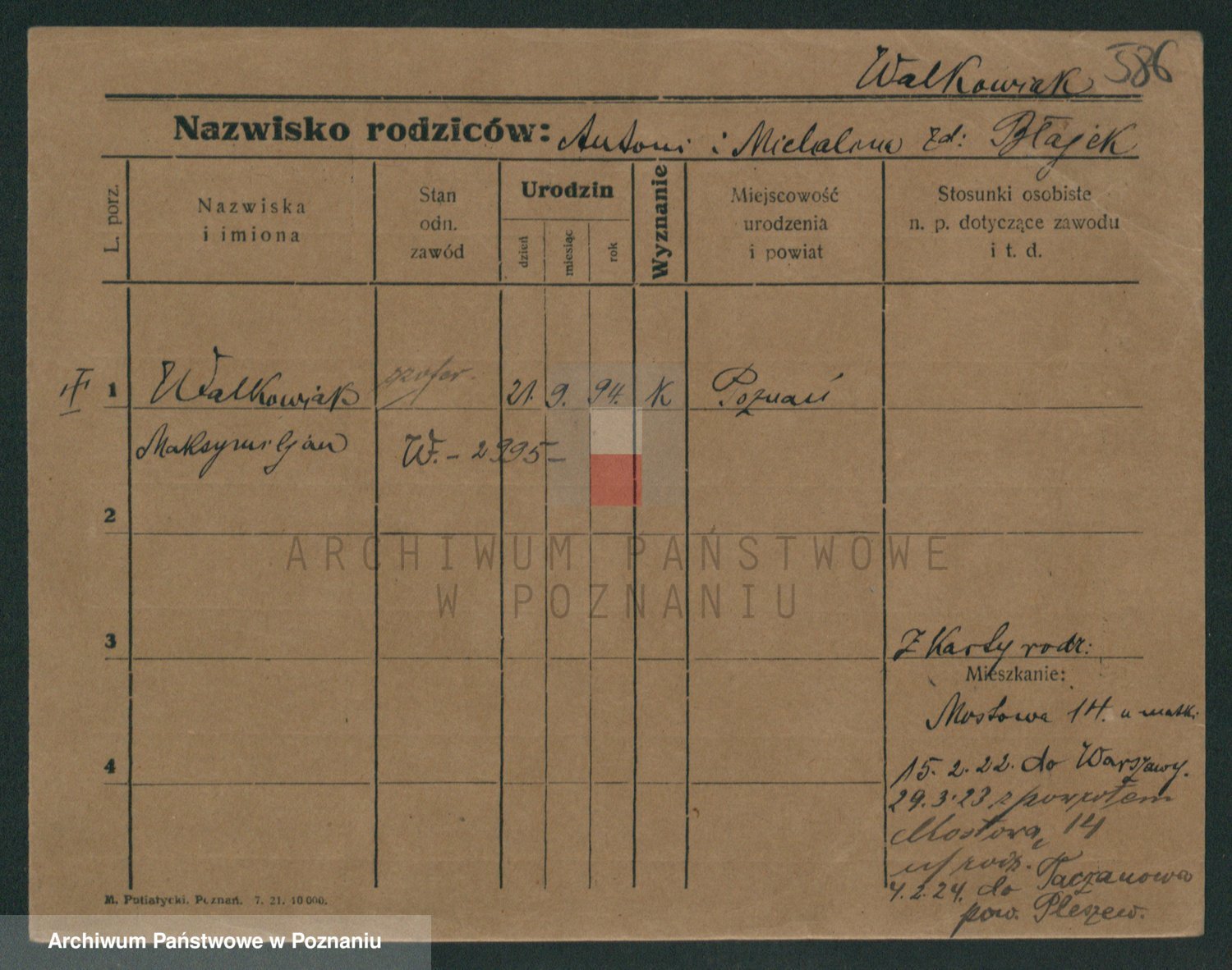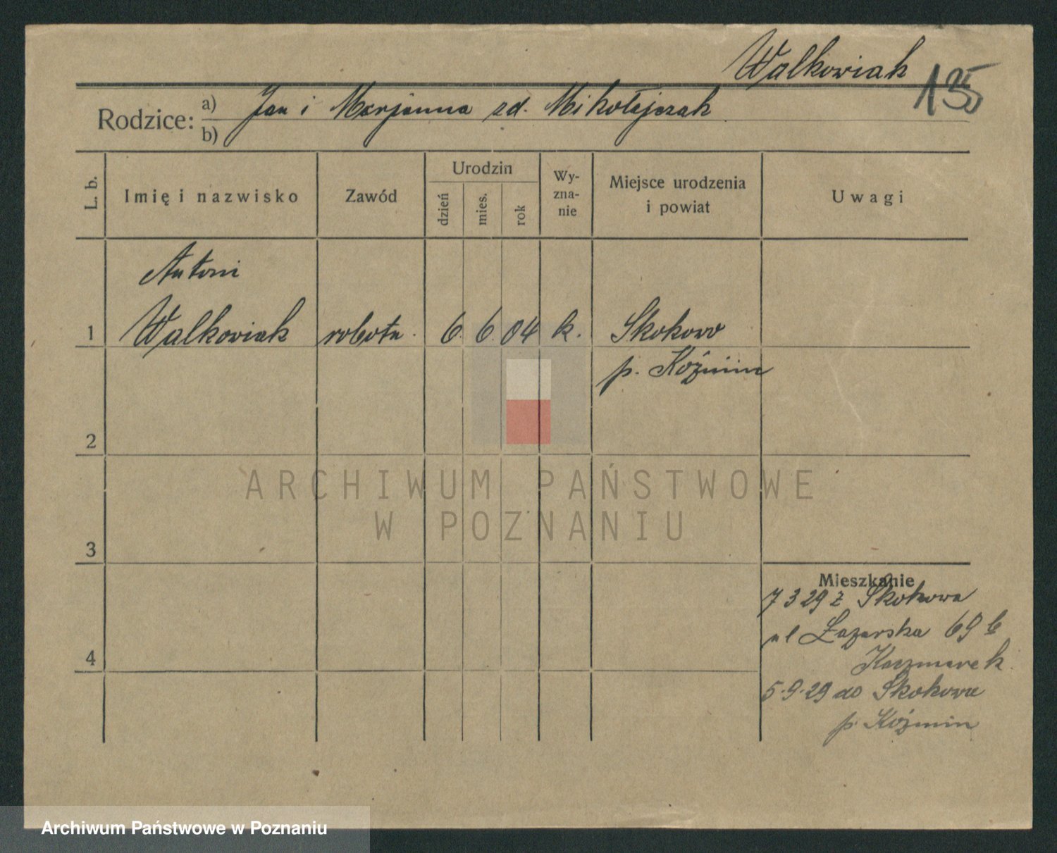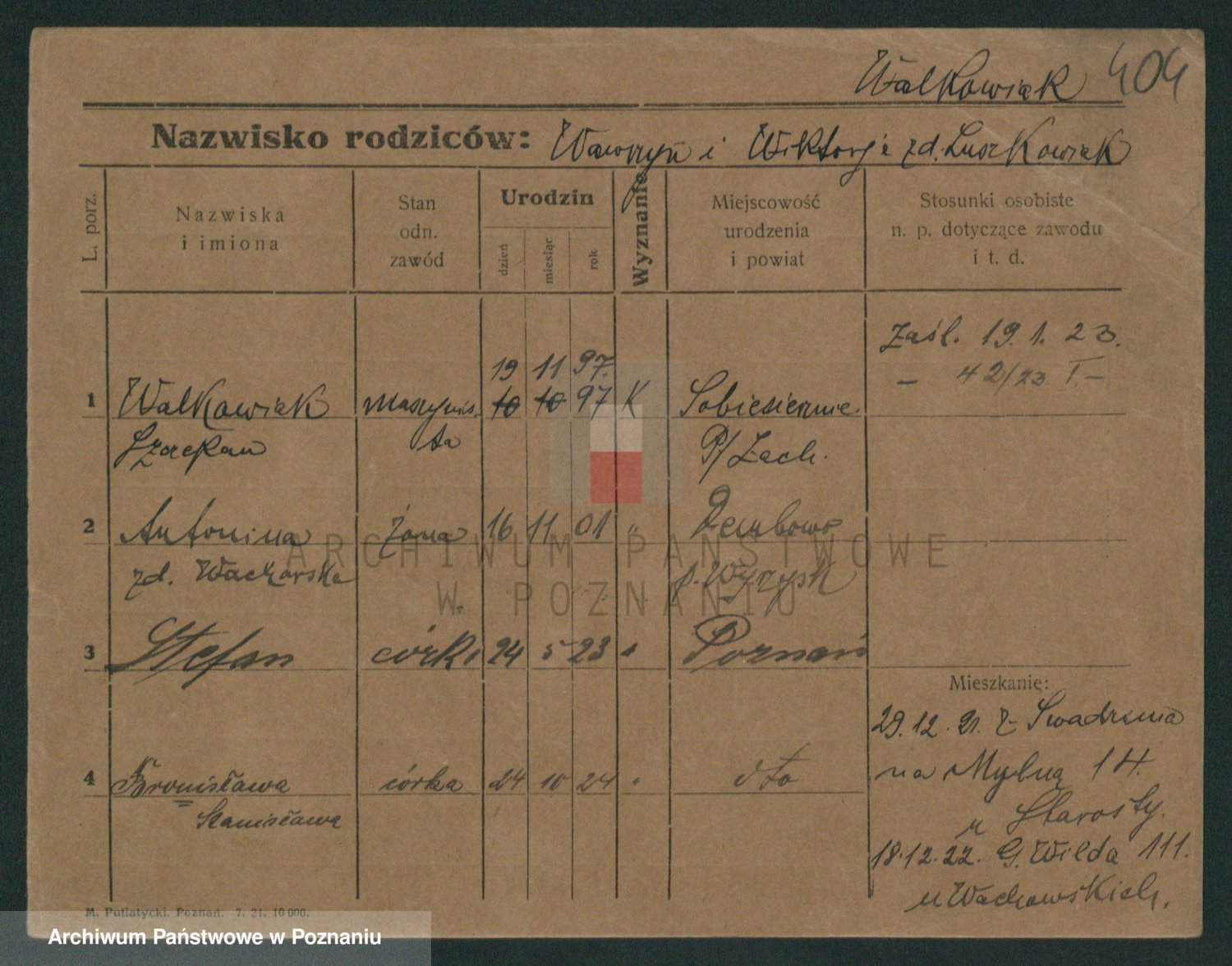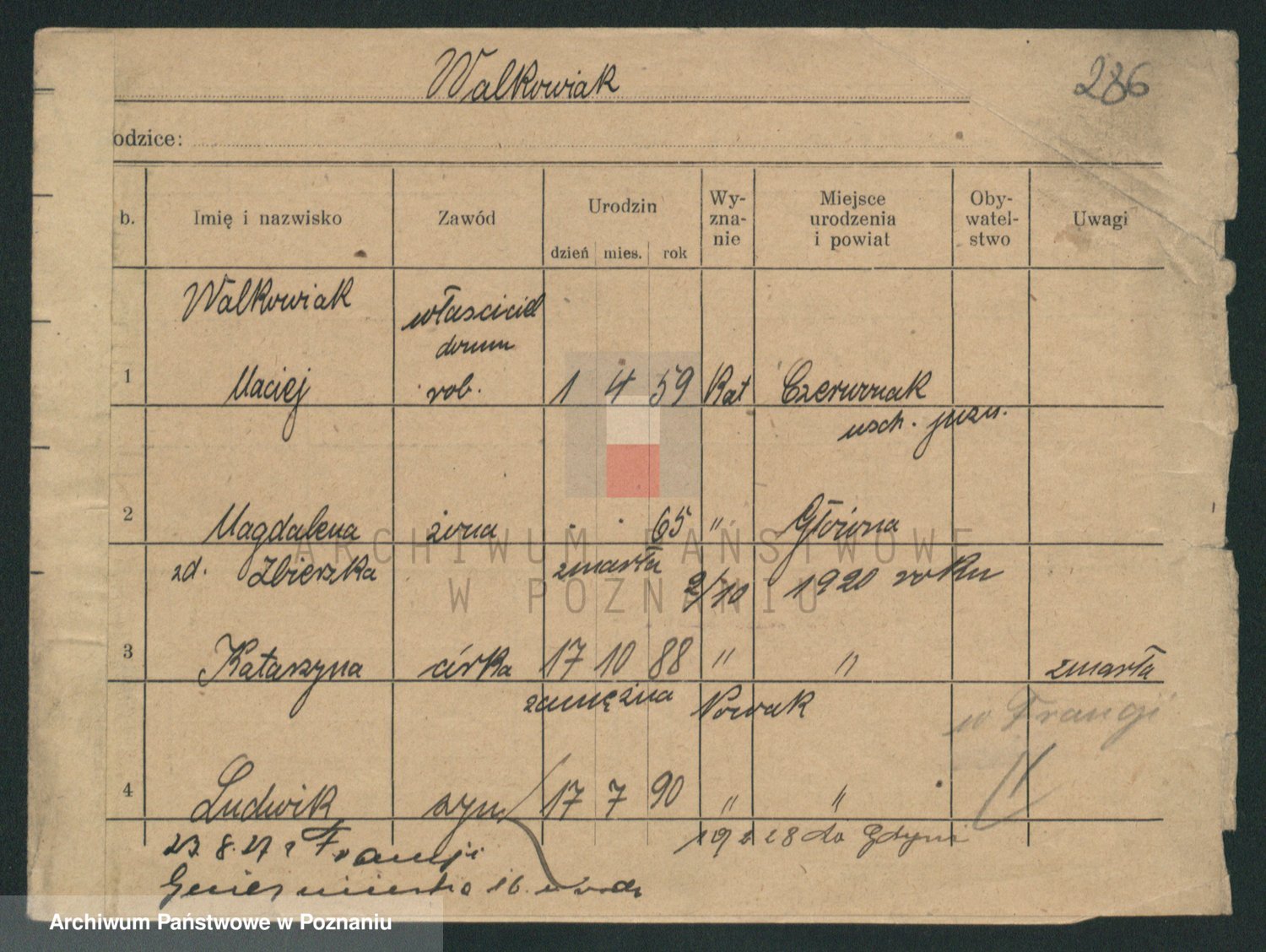 Walkowiak z d. Rychczynska, Antonie