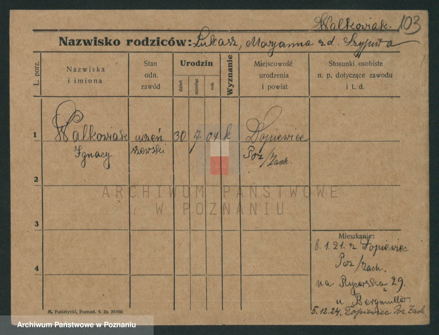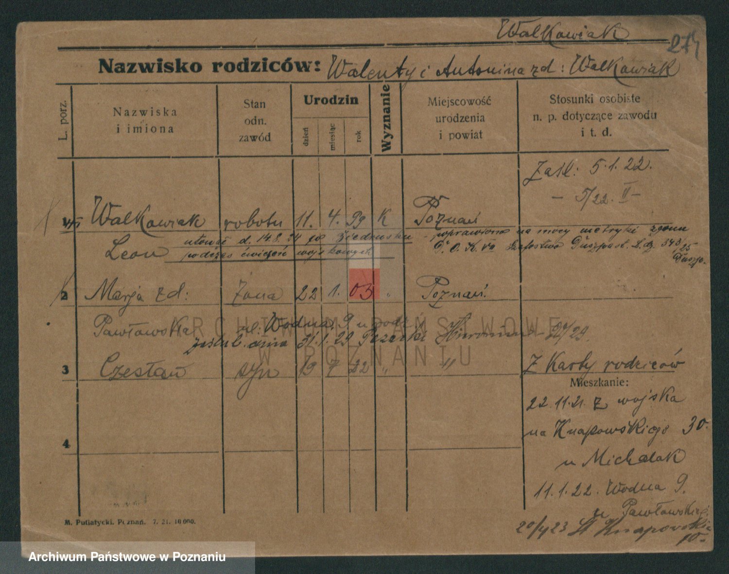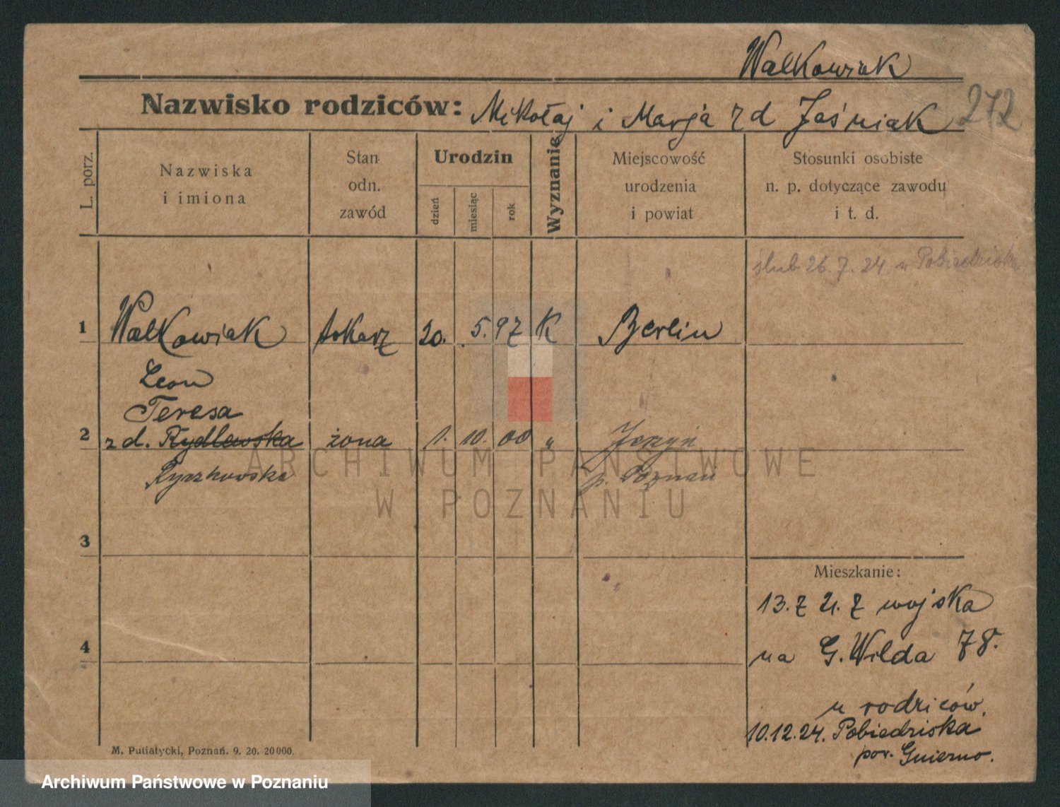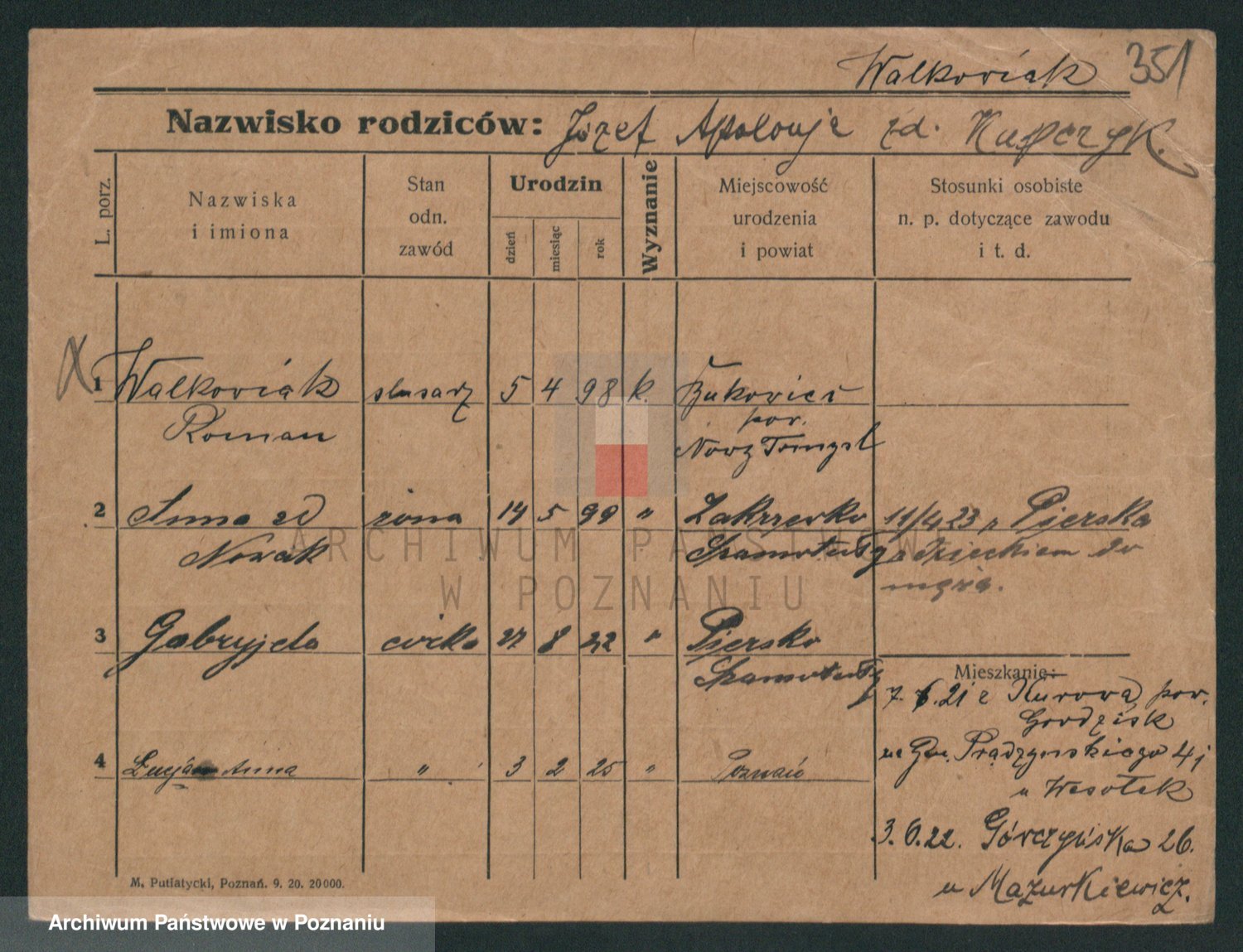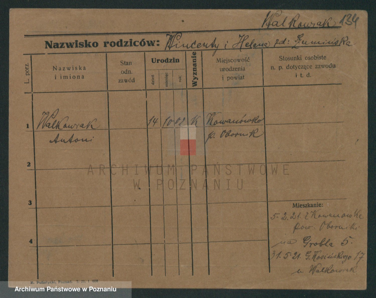 Walkowiak z d. Rychczynska, Antonie