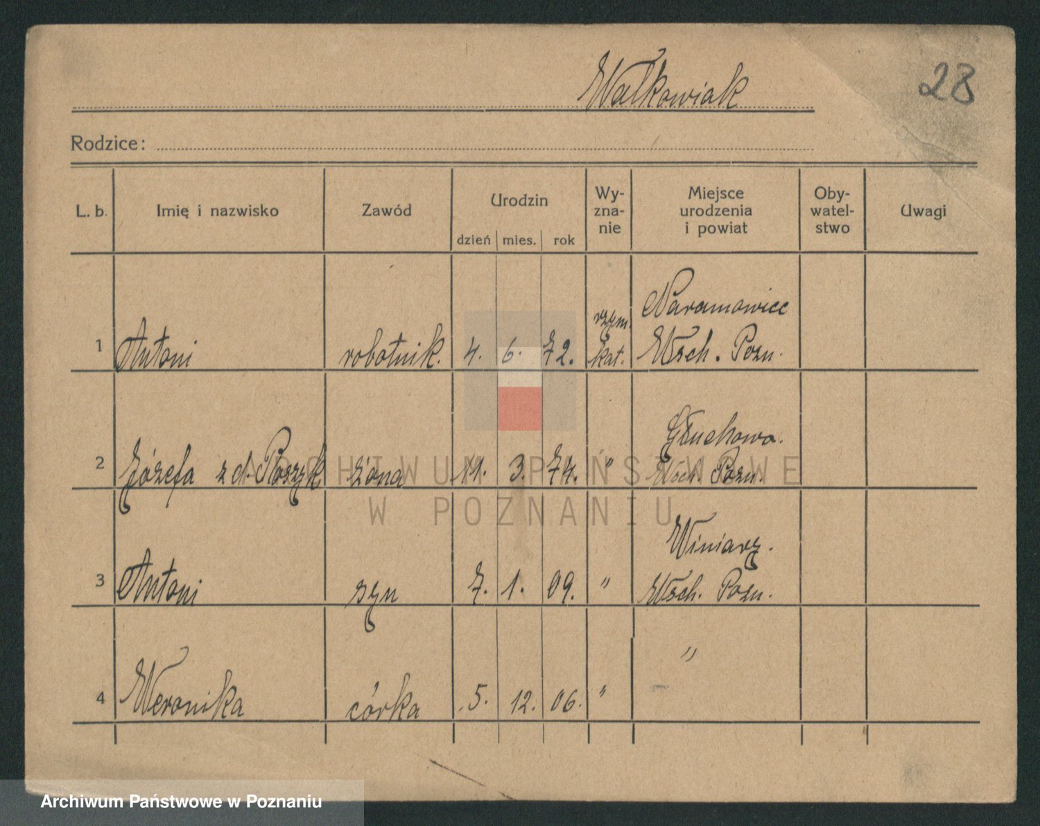 Walkowiak z d. Gorzelanczyk, Antonie