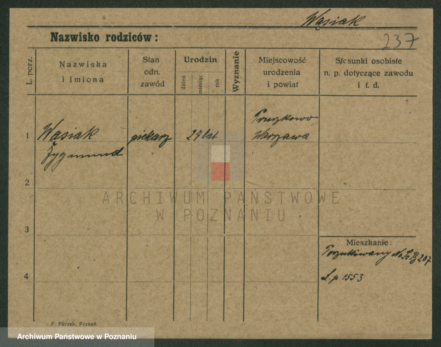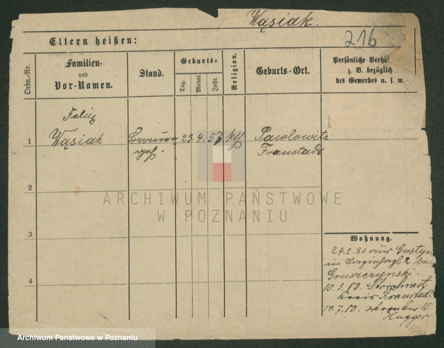 Wąs, Zygmunt Franciszek