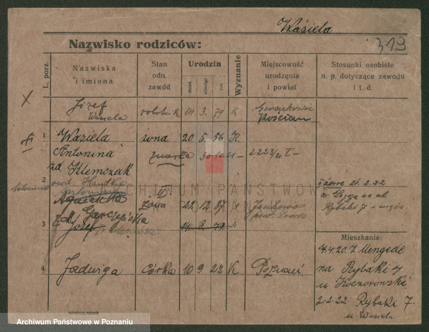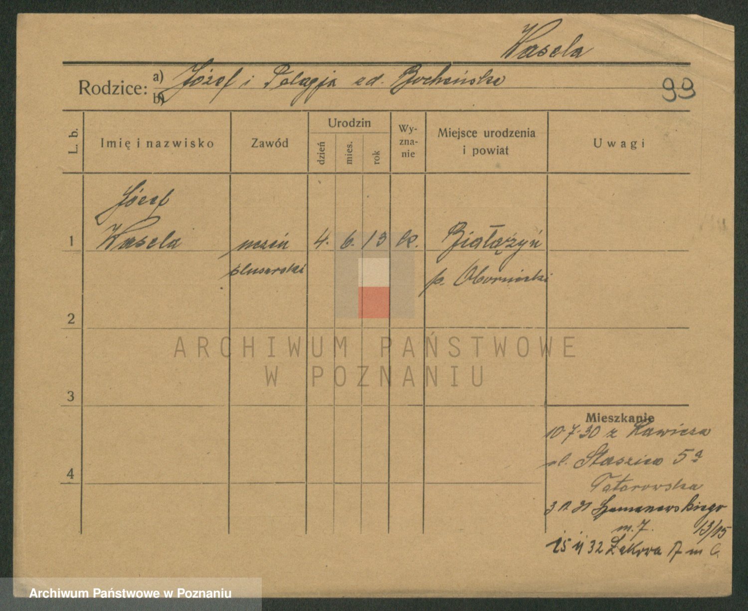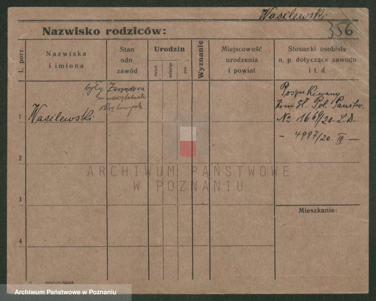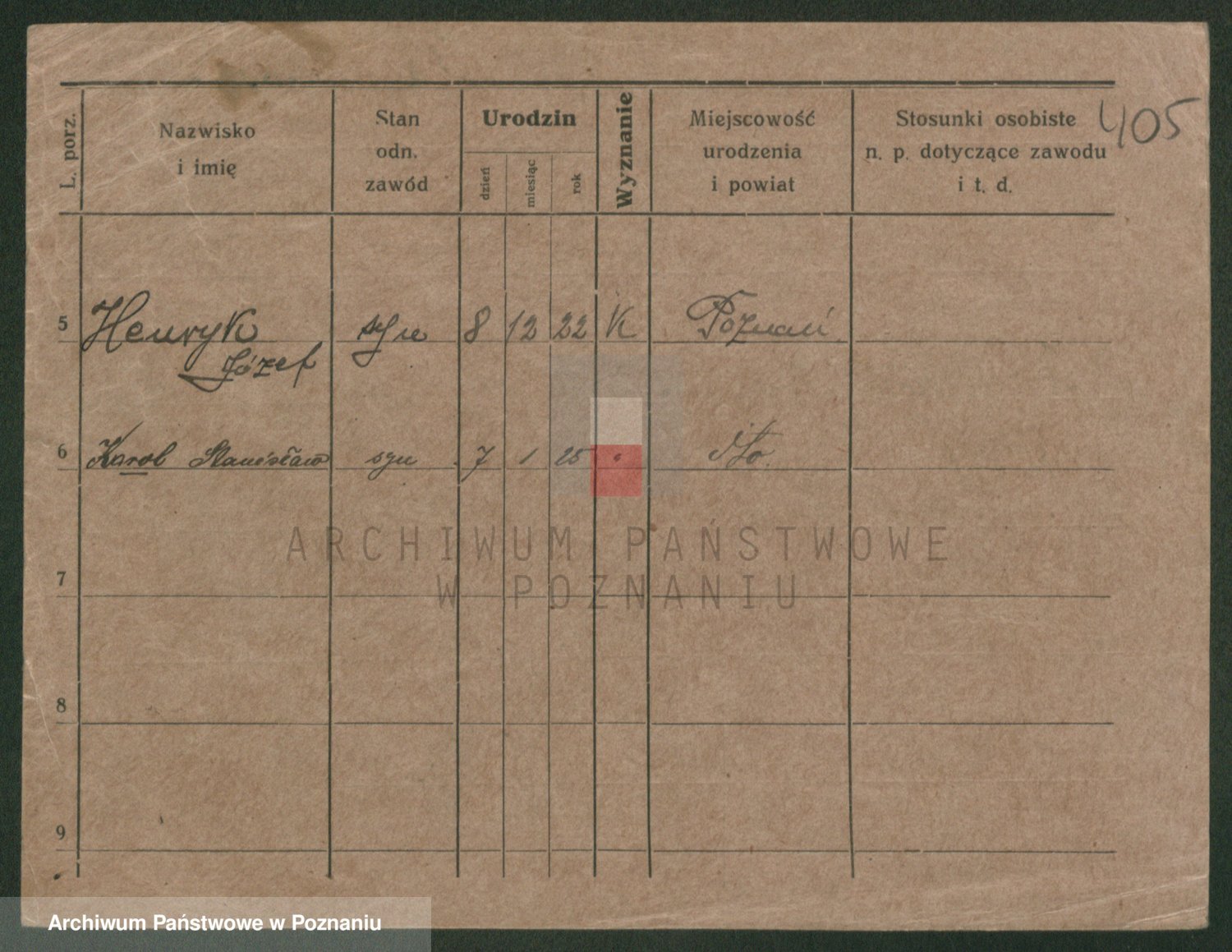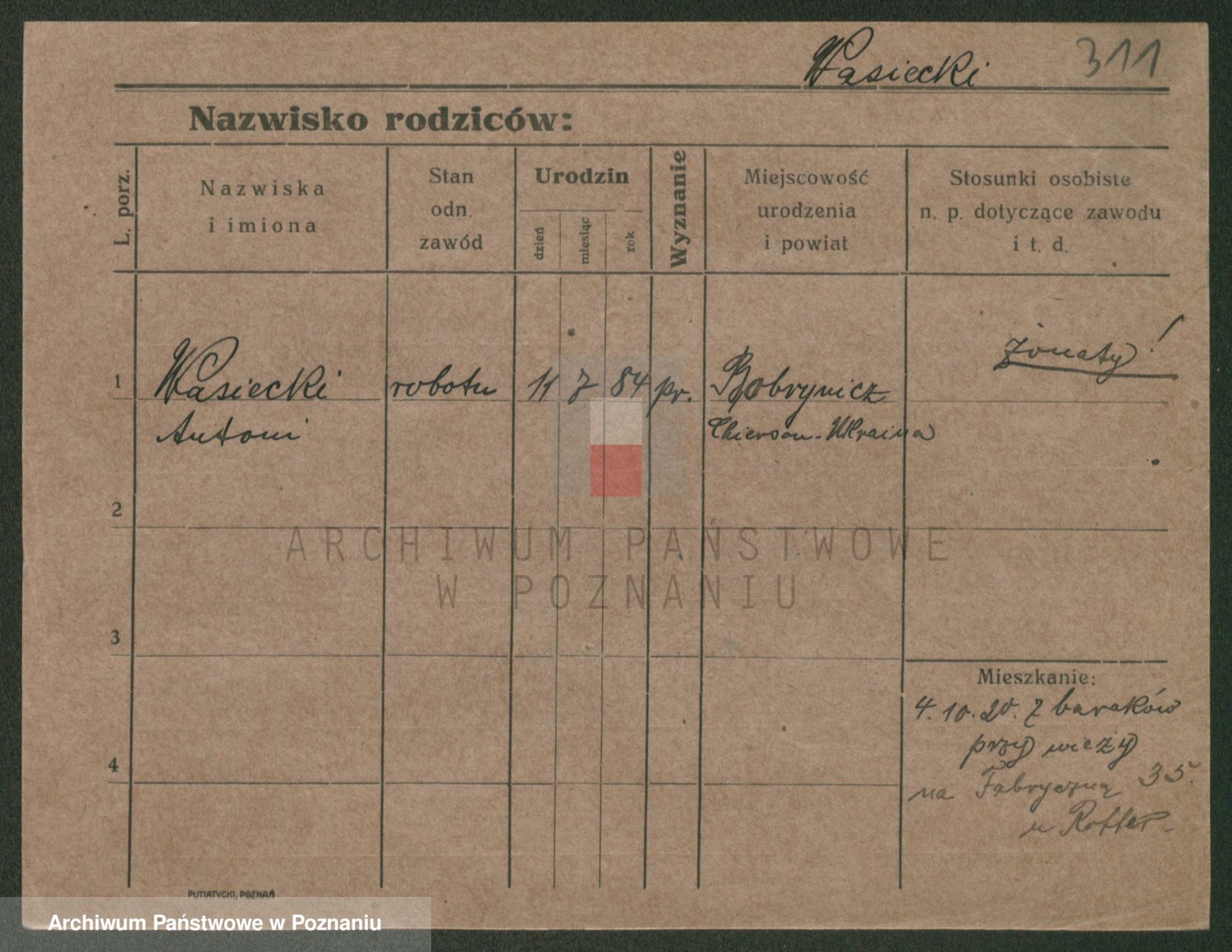 Podgląd karty osobowej dostępny jest po kliknięciu na nazwisko lub ikonkę karty. Można dokonywać powiększenia (ikony na górze) lub przechodzić między kolejnymi skanami (strzałki po bokach).