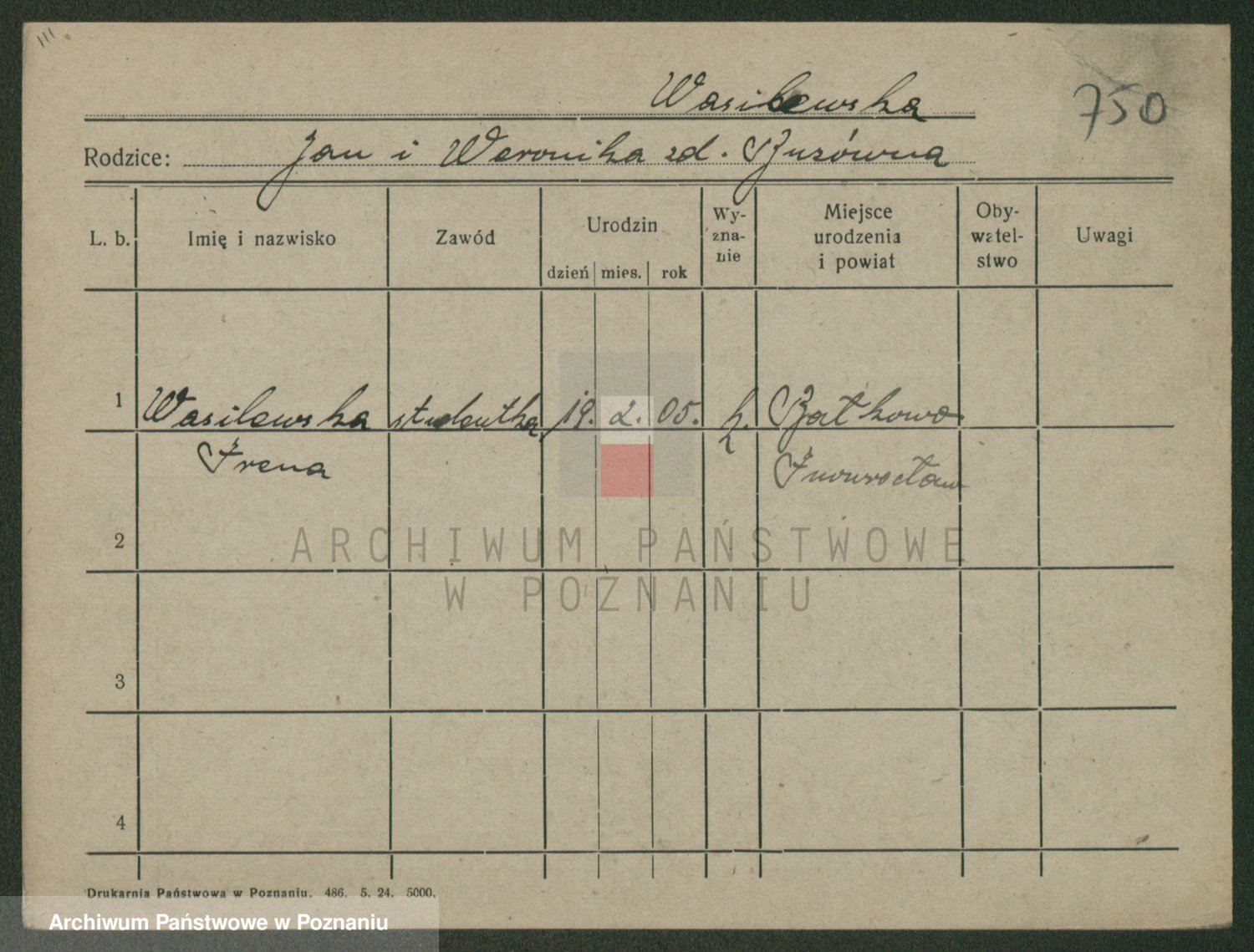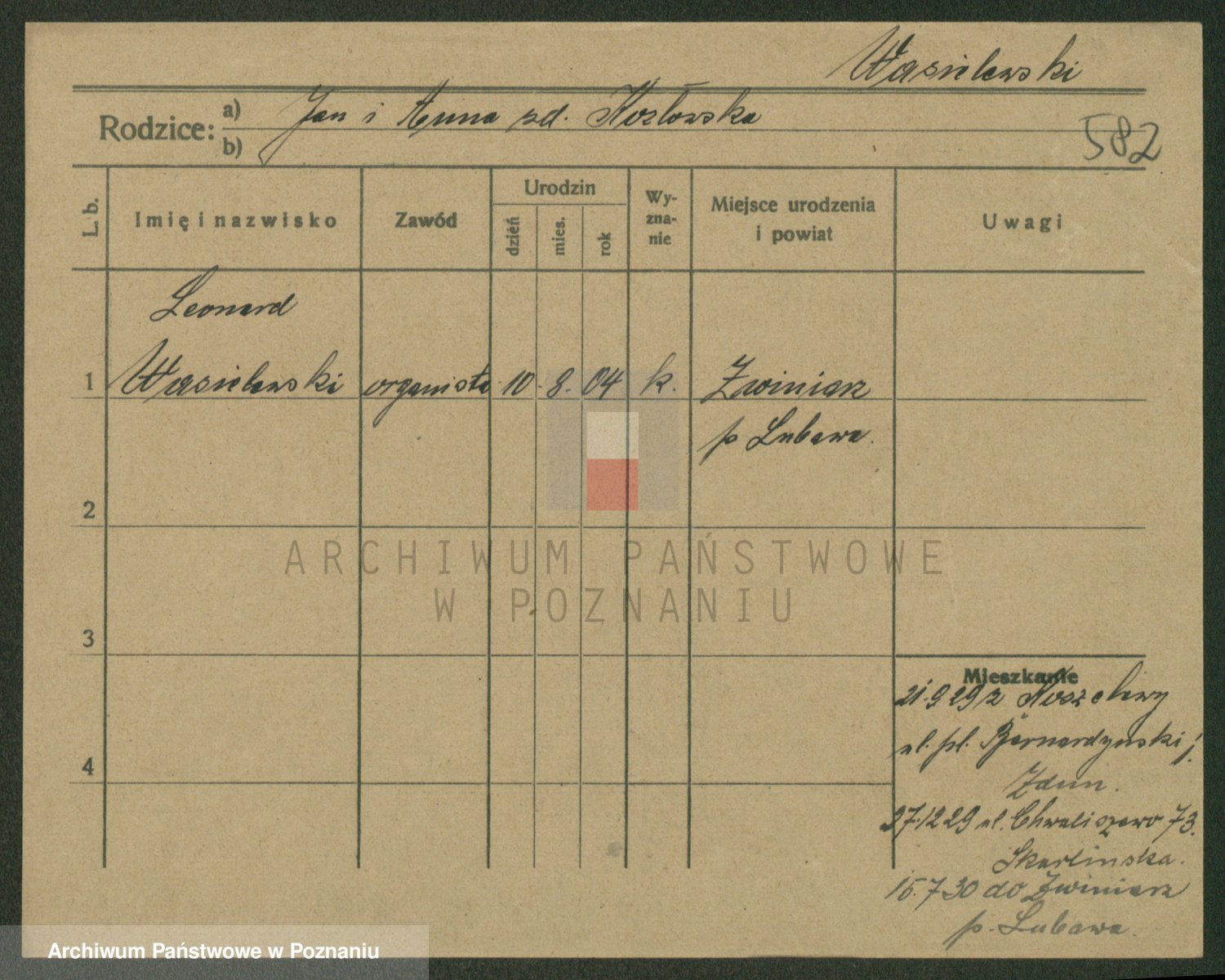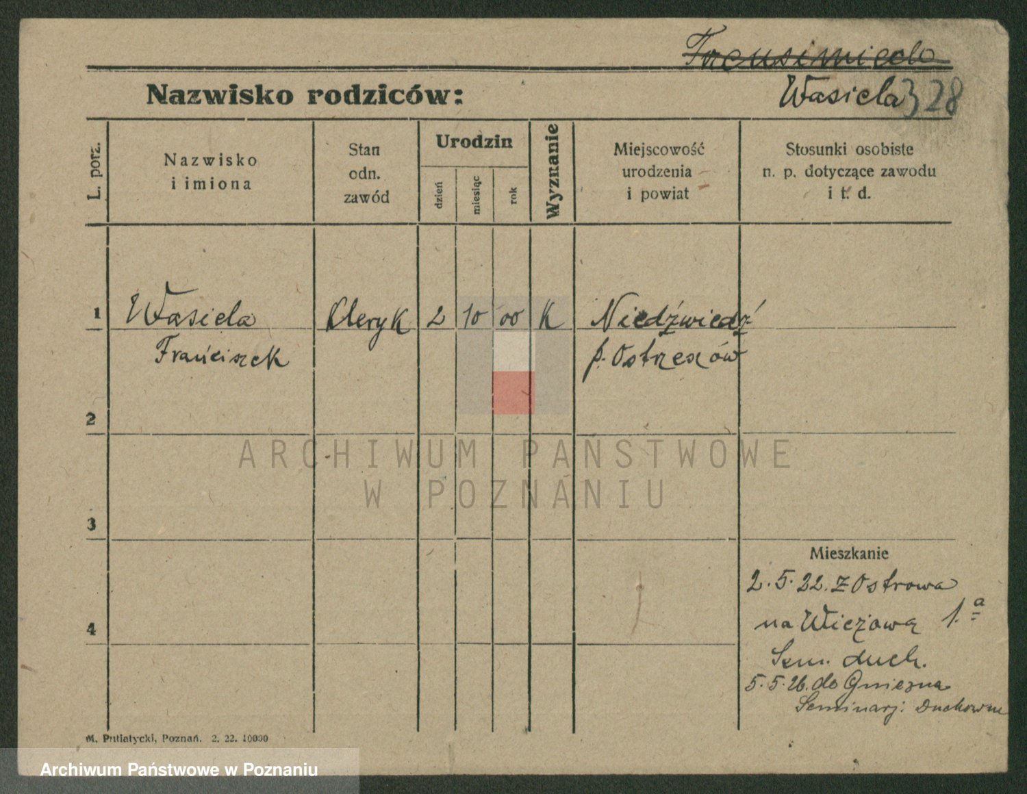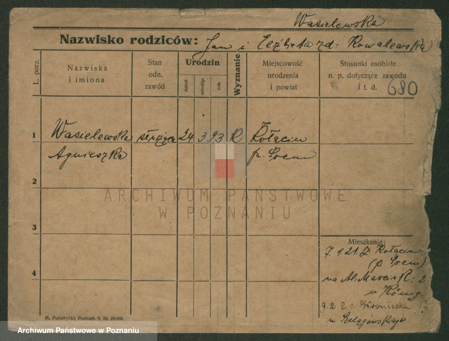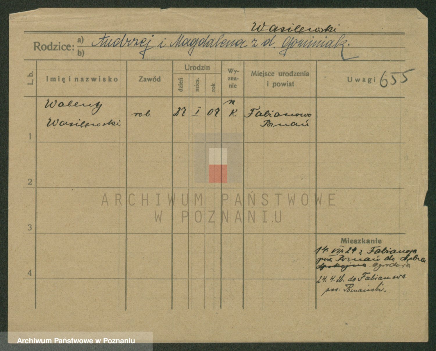 Podgląd karty osobowej dostępny jest po kliknięciu na nazwisko lub ikonkę karty. Można dokonywać powiększenia (ikony na górze) lub przechodzić między kolejnymi skanami (strzałki po bokach).