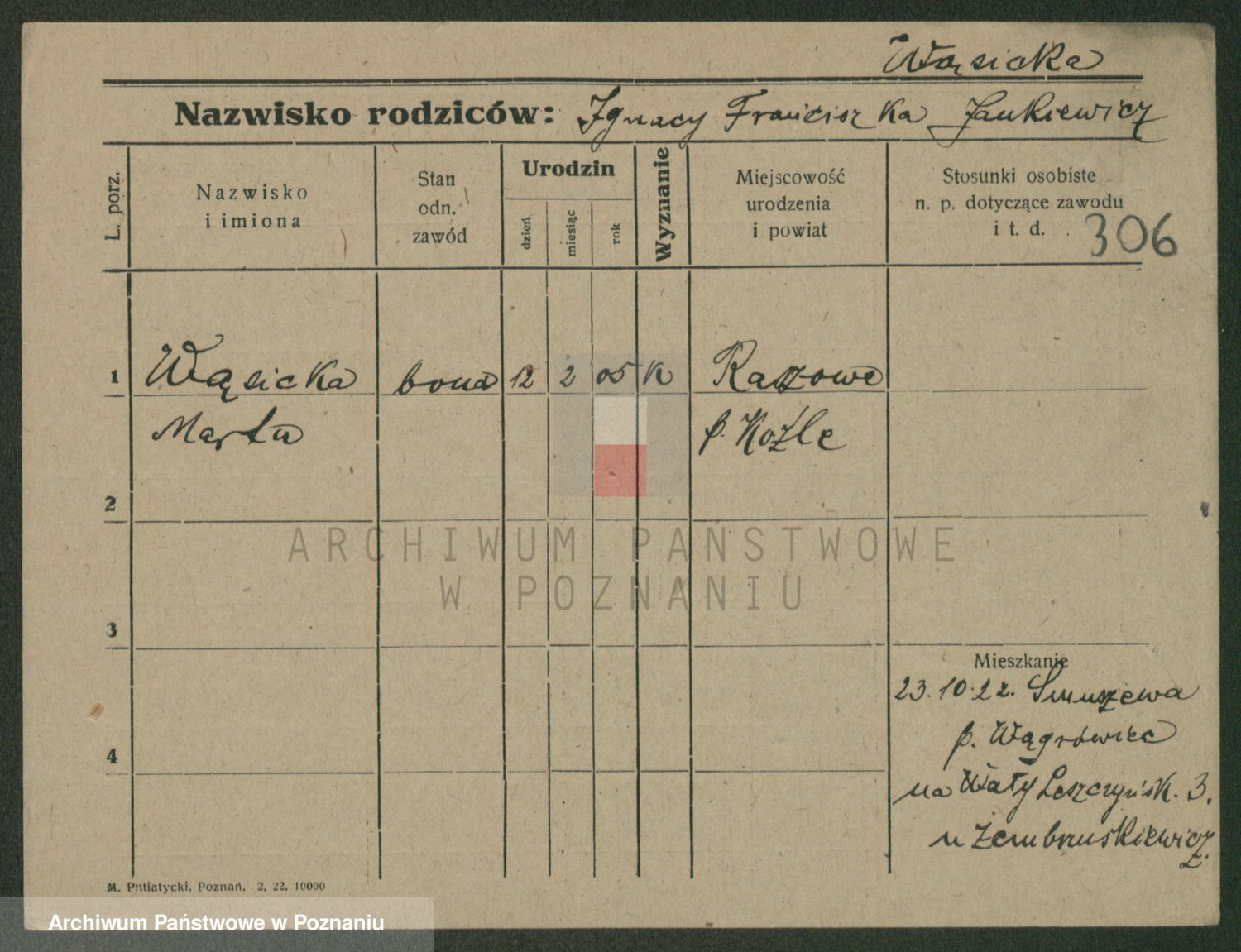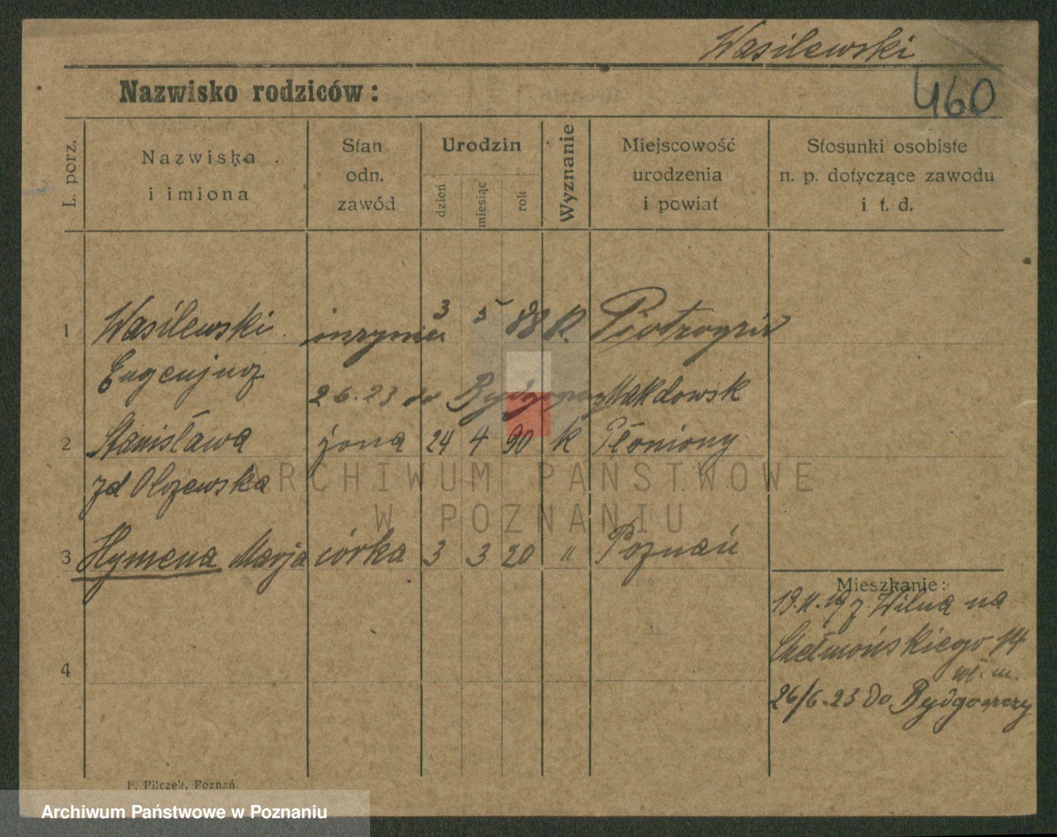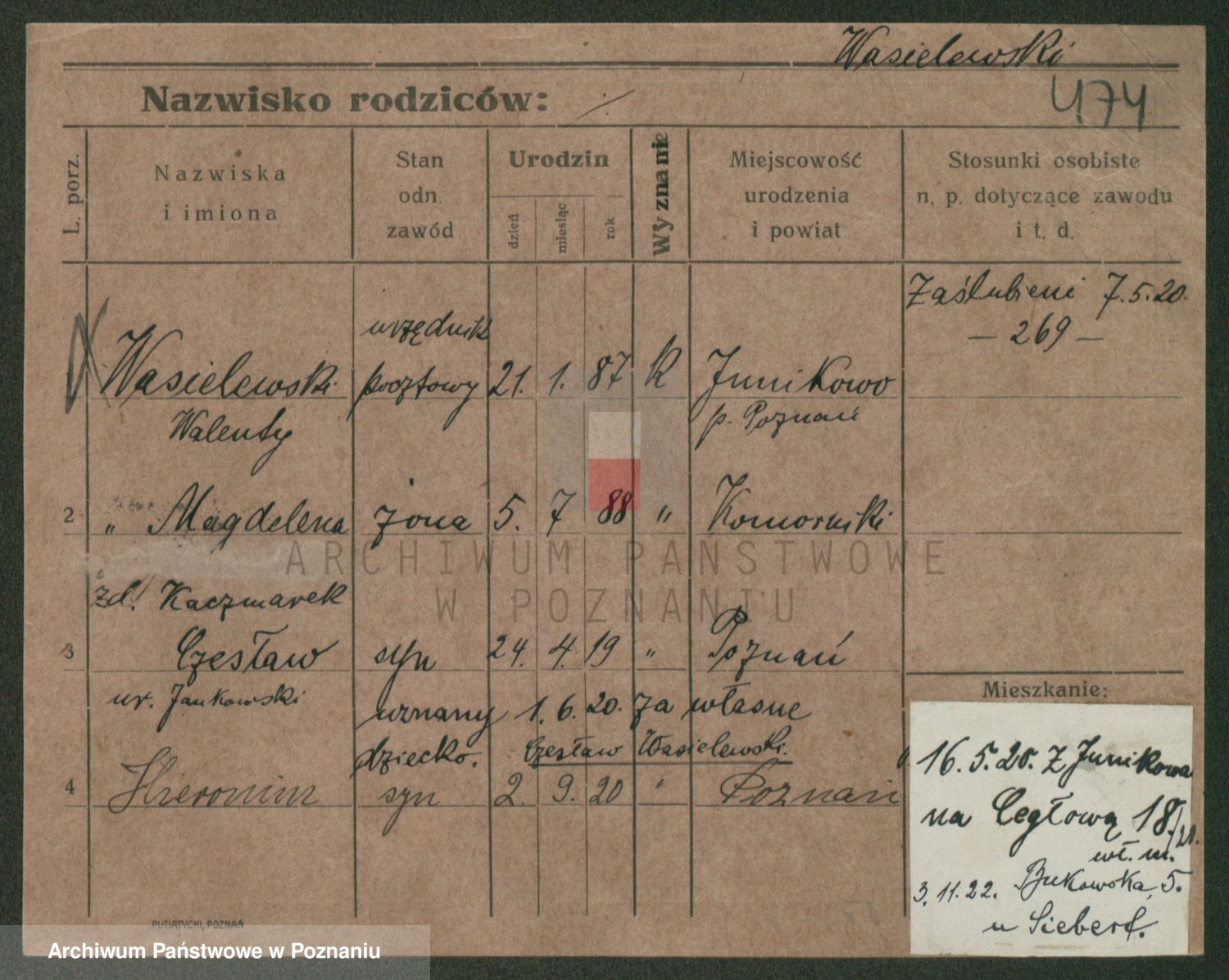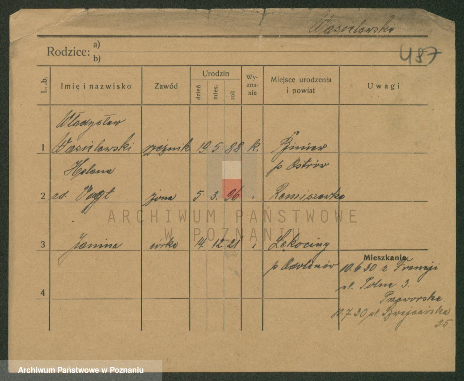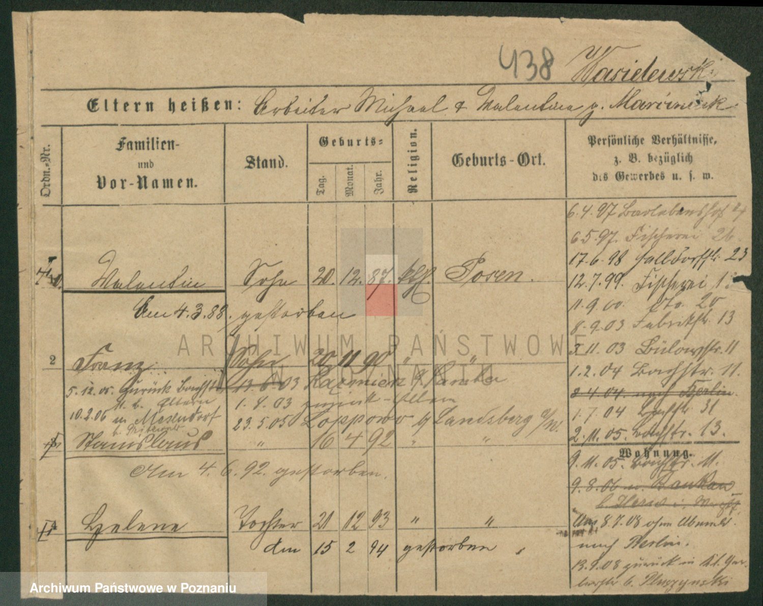Podgląd karty osobowej dostępny jest po kliknięciu na nazwisko lub ikonkę karty. Można dokonywać powiększenia (ikony na górze) lub przechodzić między kolejnymi skanami (strzałki po bokach).