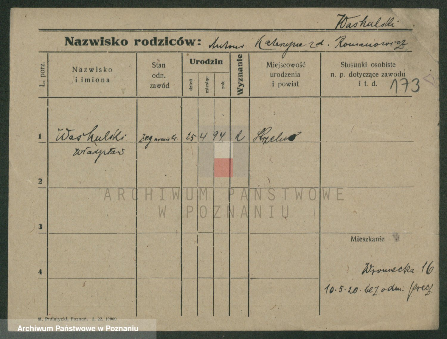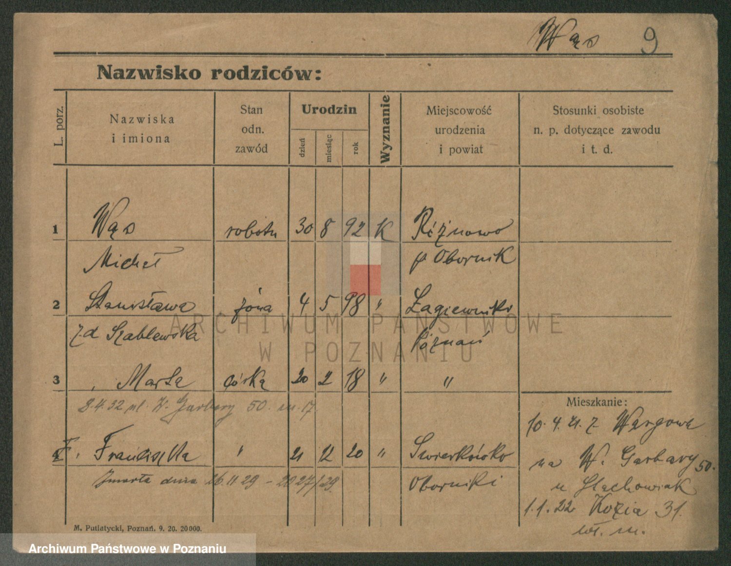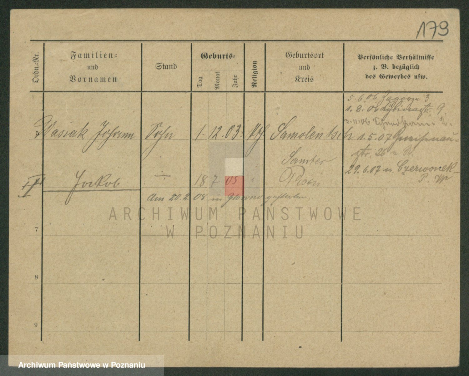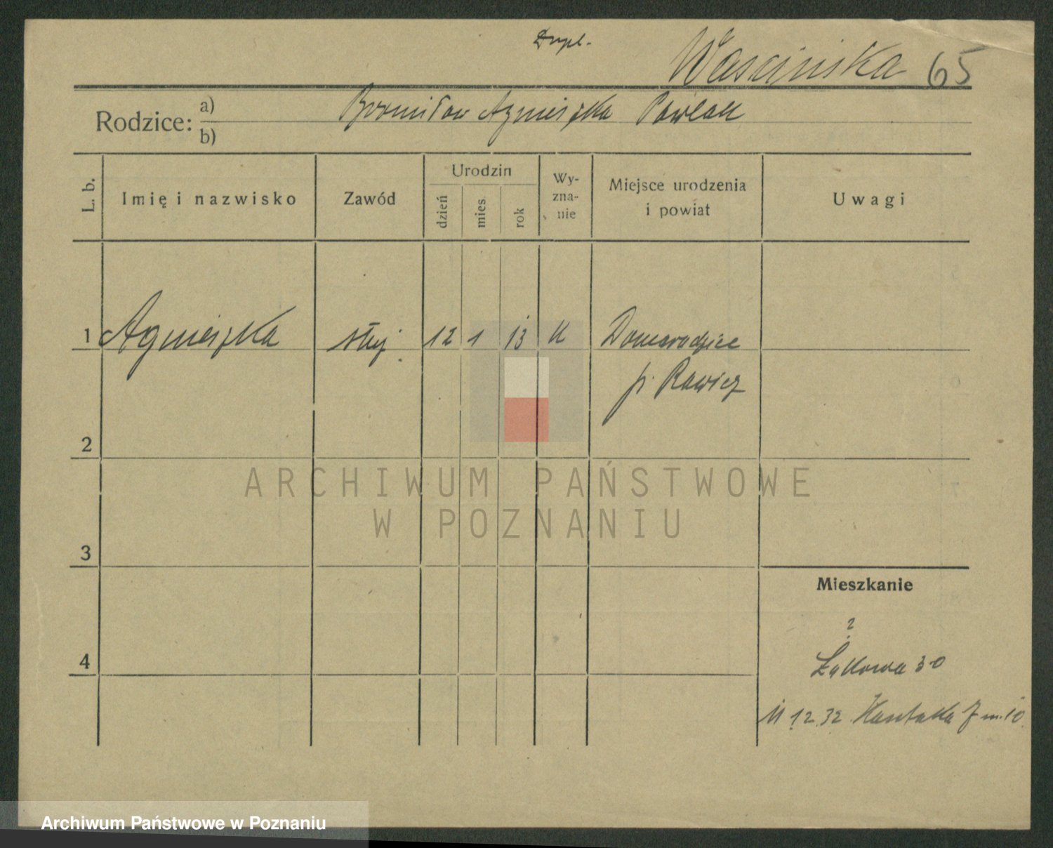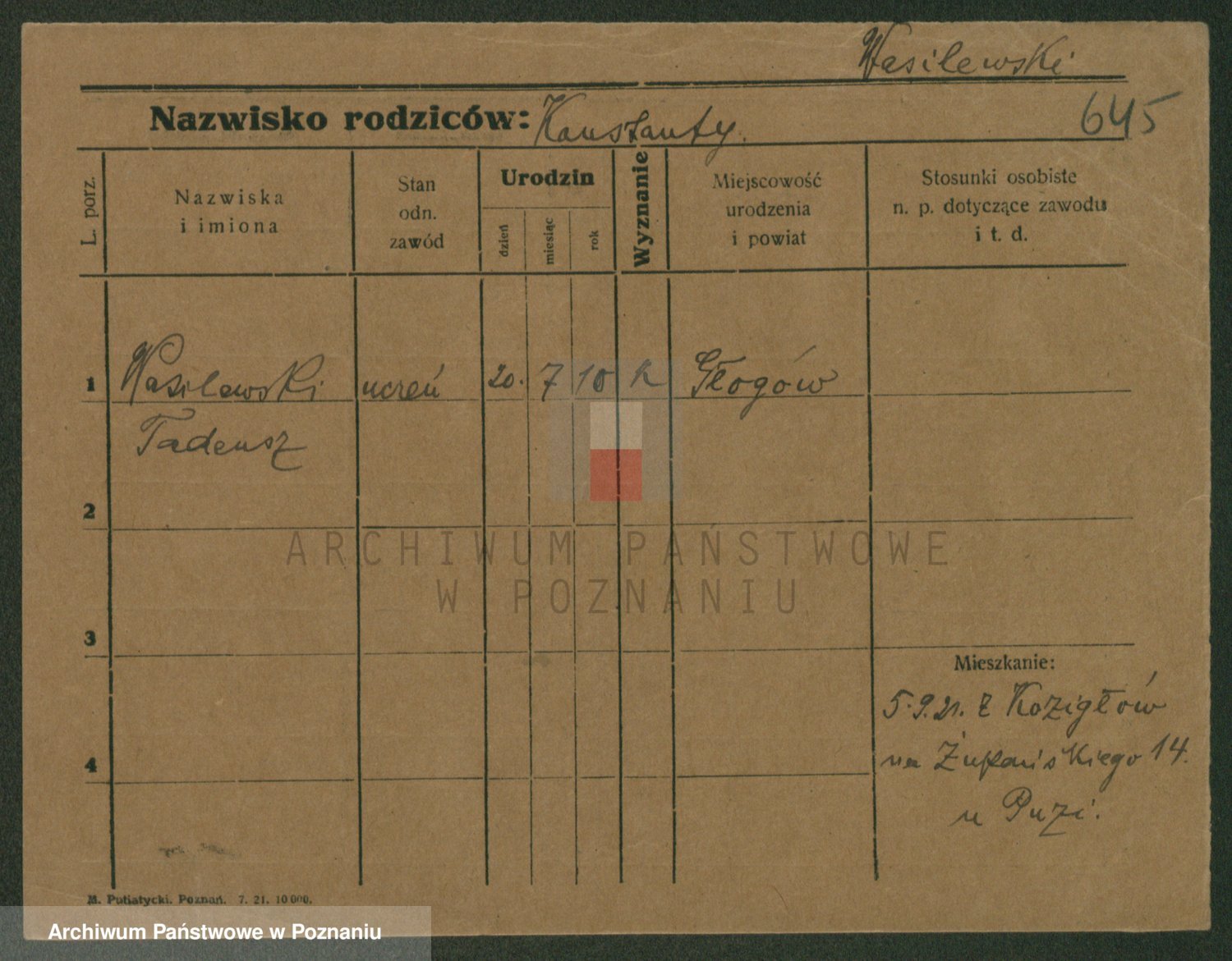 Podgląd karty osobowej dostępny jest po kliknięciu na nazwisko lub ikonkę karty. Można dokonywać powiększenia (ikony na górze) lub przechodzić między kolejnymi skanami (strzałki po bokach).