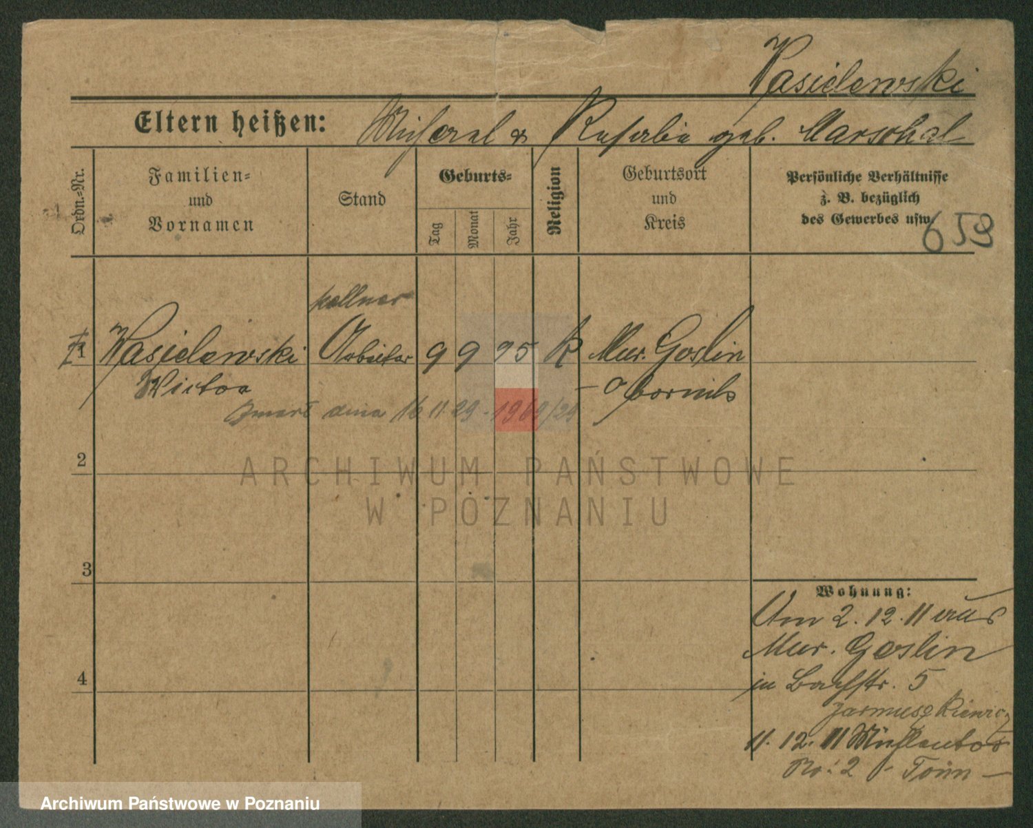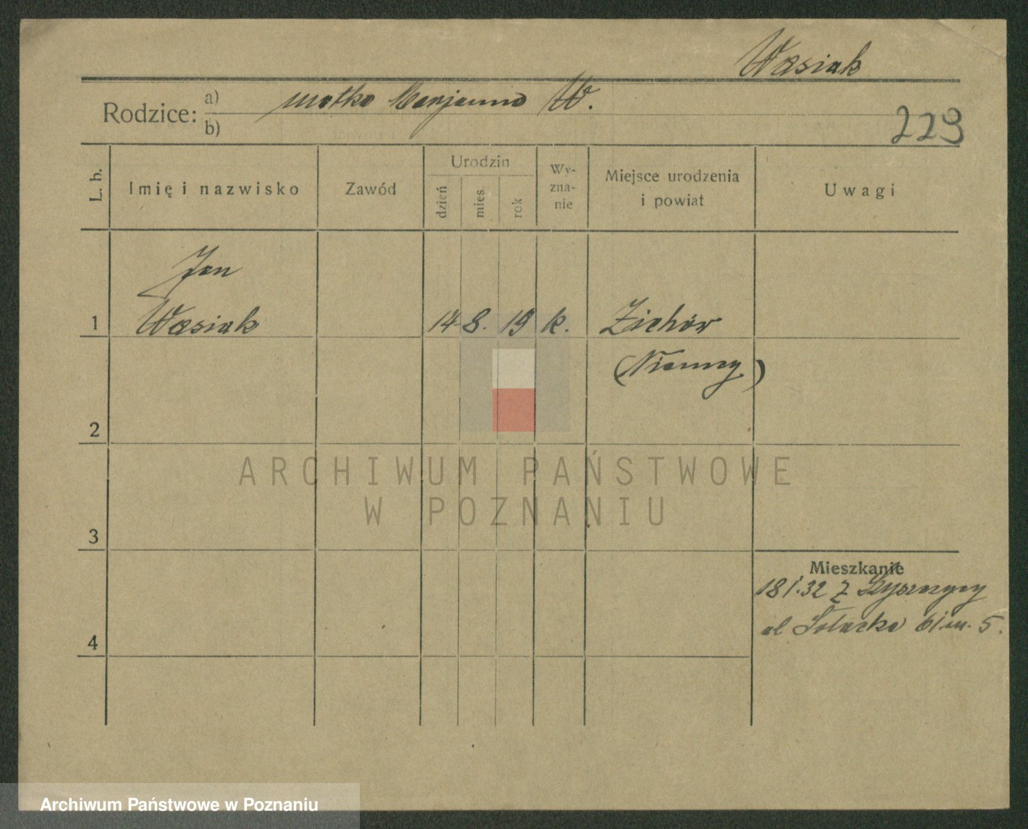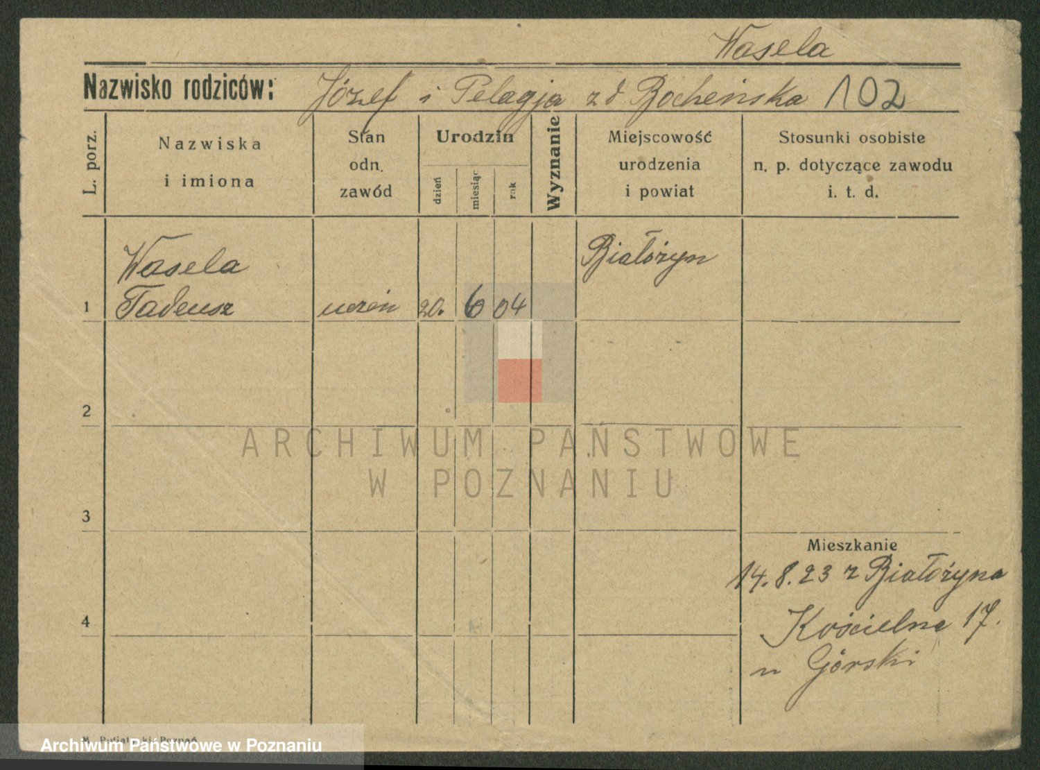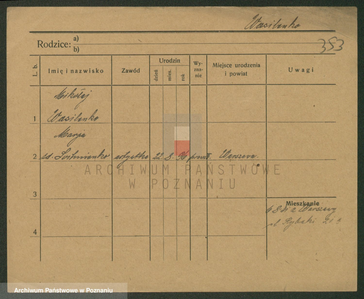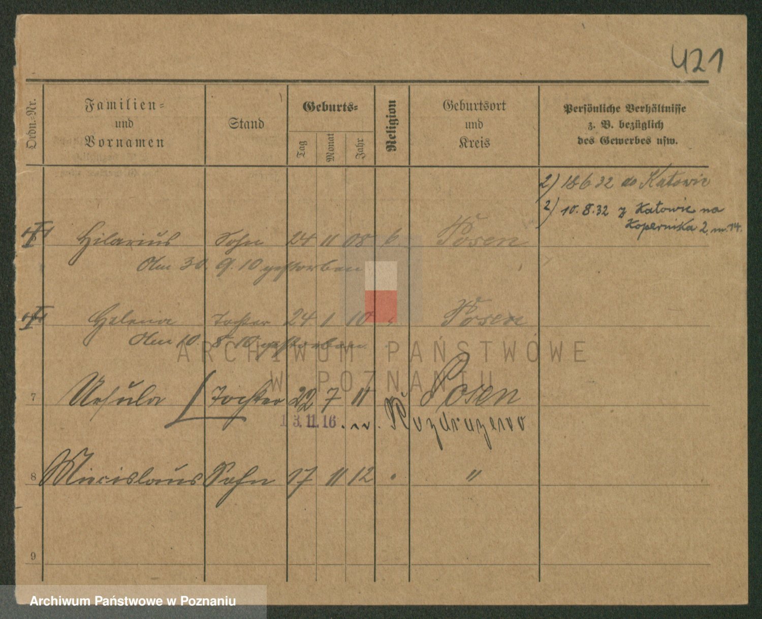 Podgląd karty osobowej dostępny jest po kliknięciu na nazwisko lub ikonkę karty. Można dokonywać powiększenia (ikony na górze) lub przechodzić między kolejnymi skanami (strzałki po bokach).