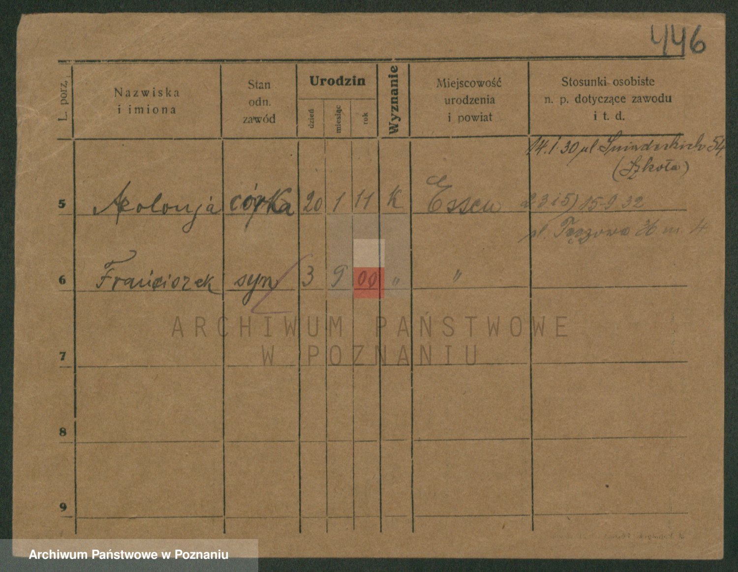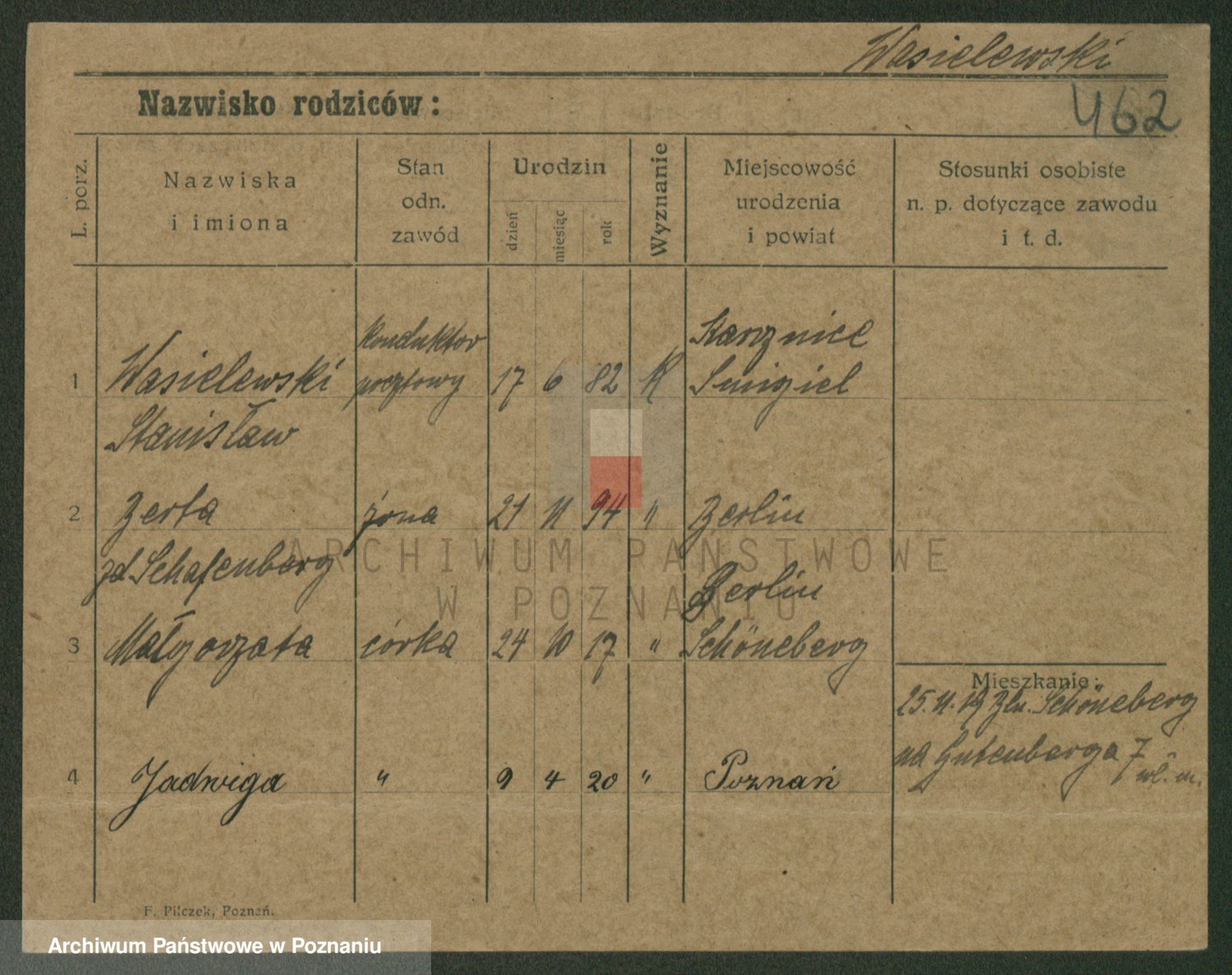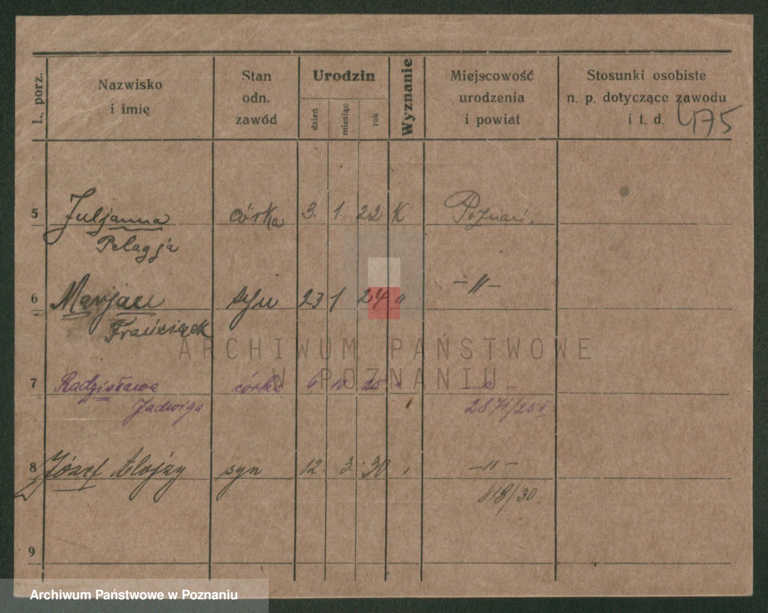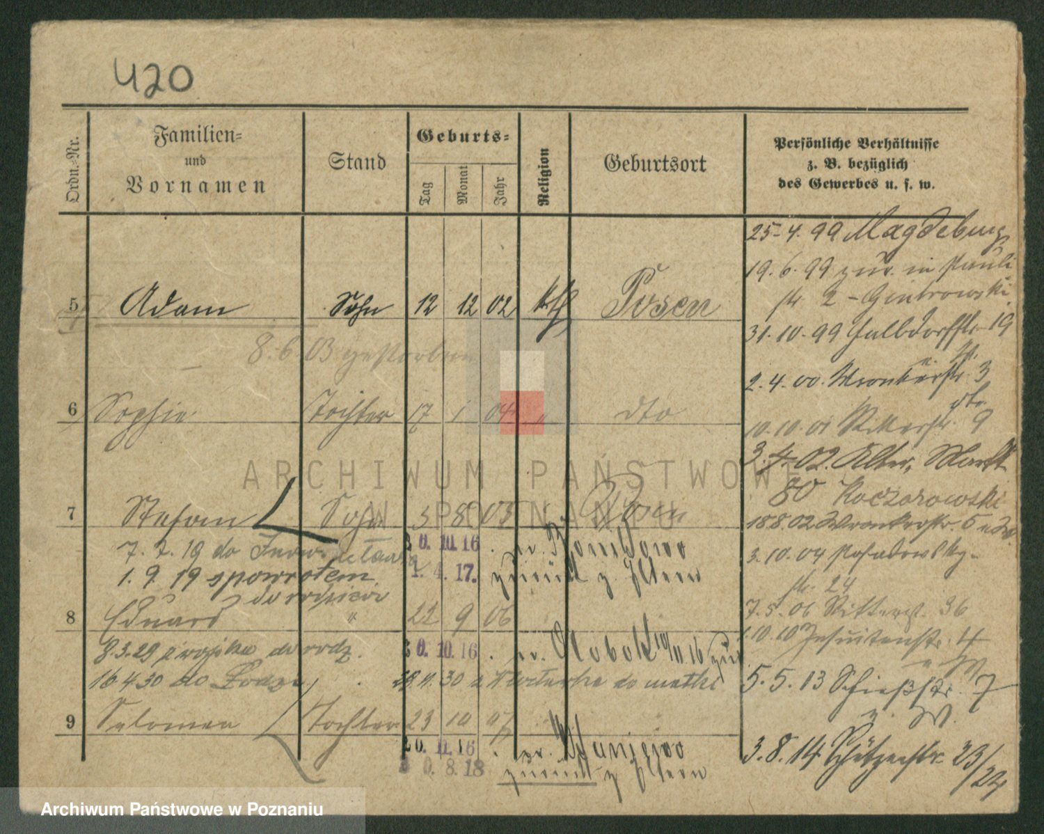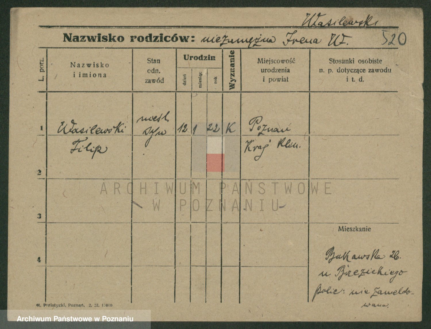 Podgląd karty osobowej dostępny jest po kliknięciu na nazwisko lub ikonkę karty. Można dokonywać powiększenia (ikony na górze) lub przechodzić między kolejnymi skanami (strzałki po bokach).