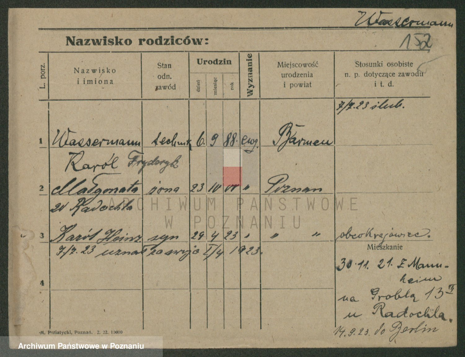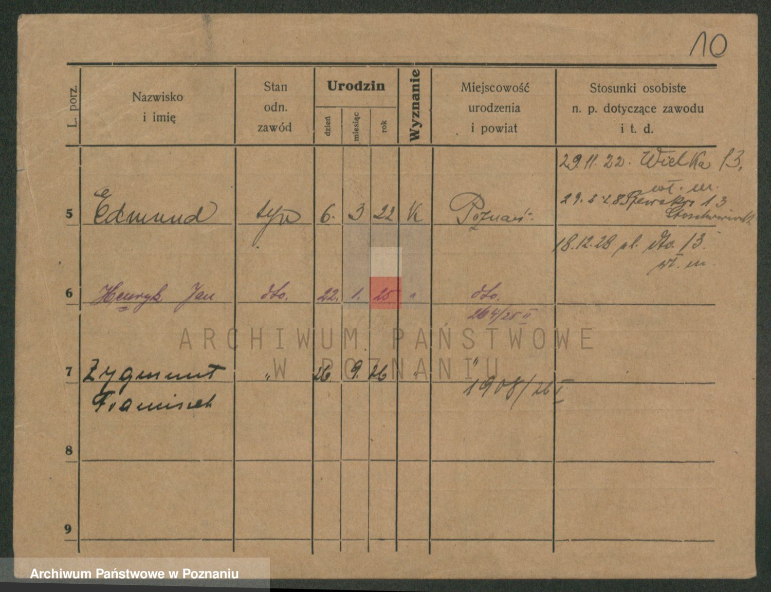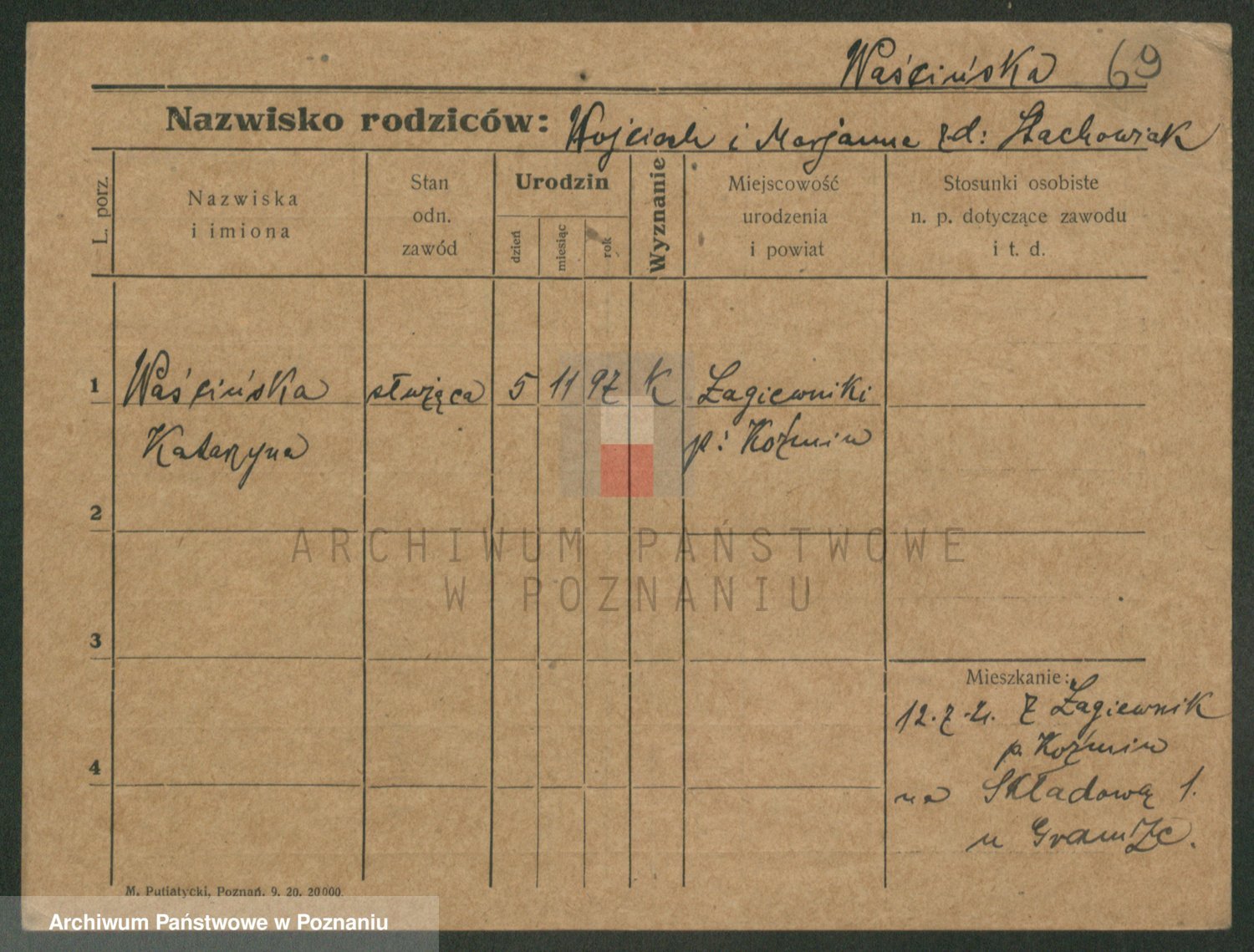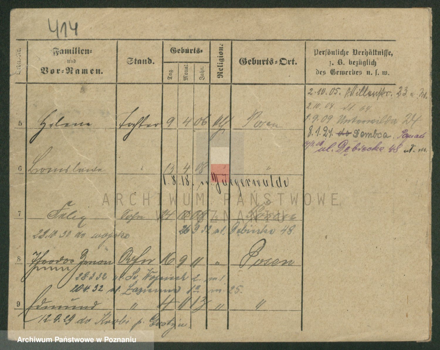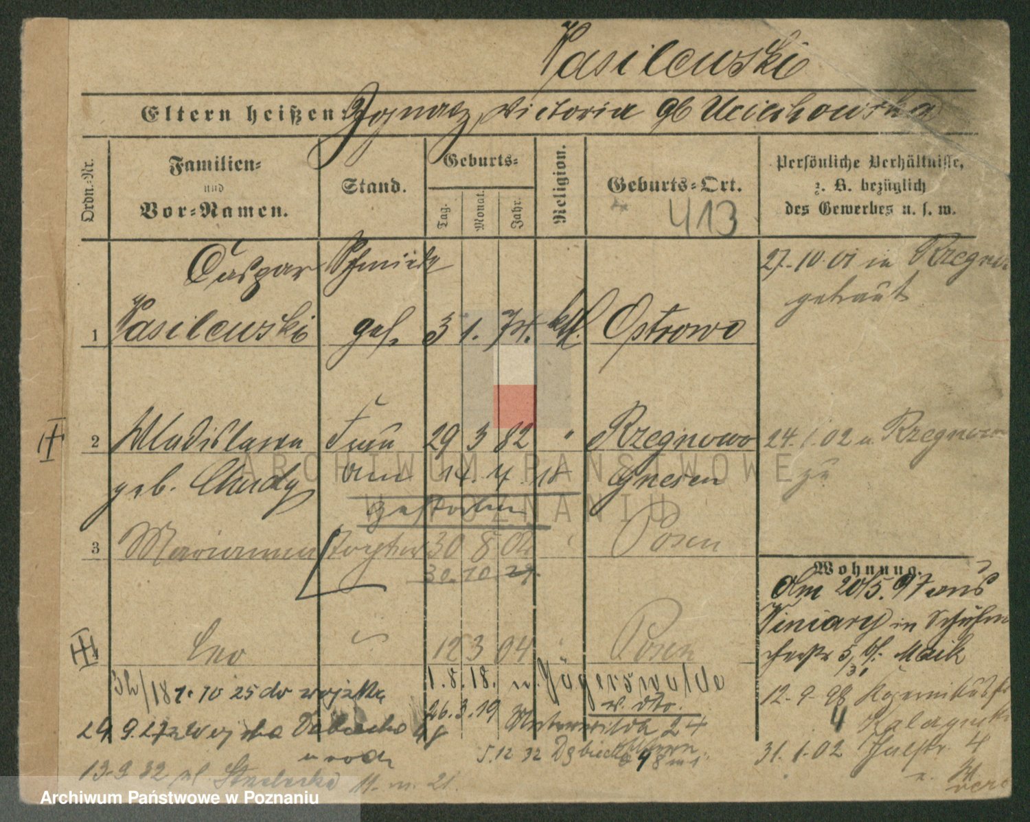 Podgląd karty osobowej dostępny jest po kliknięciu na nazwisko lub ikonkę karty. Można dokonywać powiększenia (ikony na górze) lub przechodzić między kolejnymi skanami (strzałki po bokach).