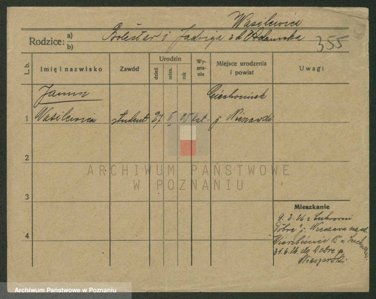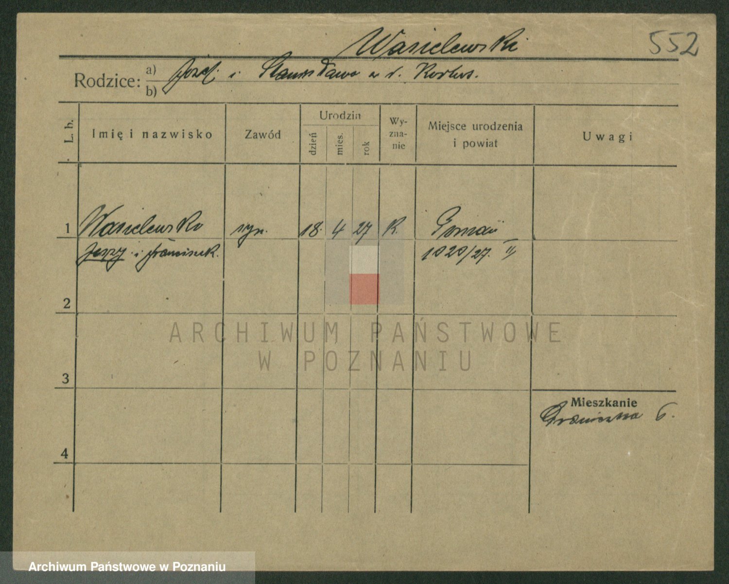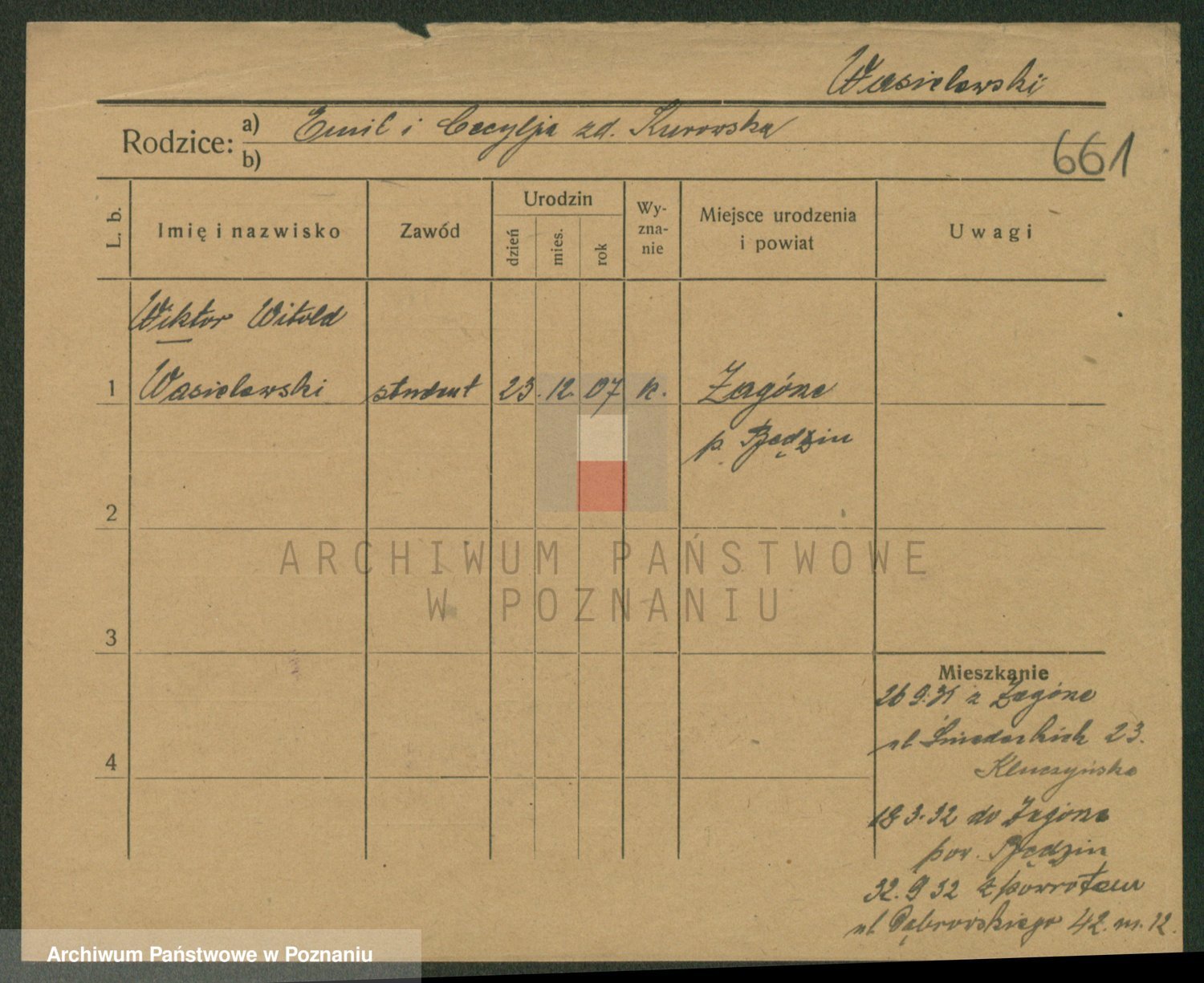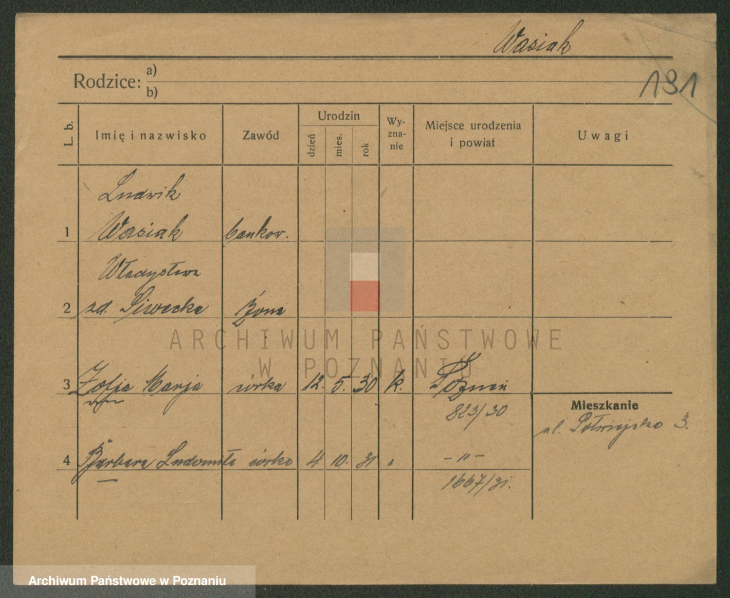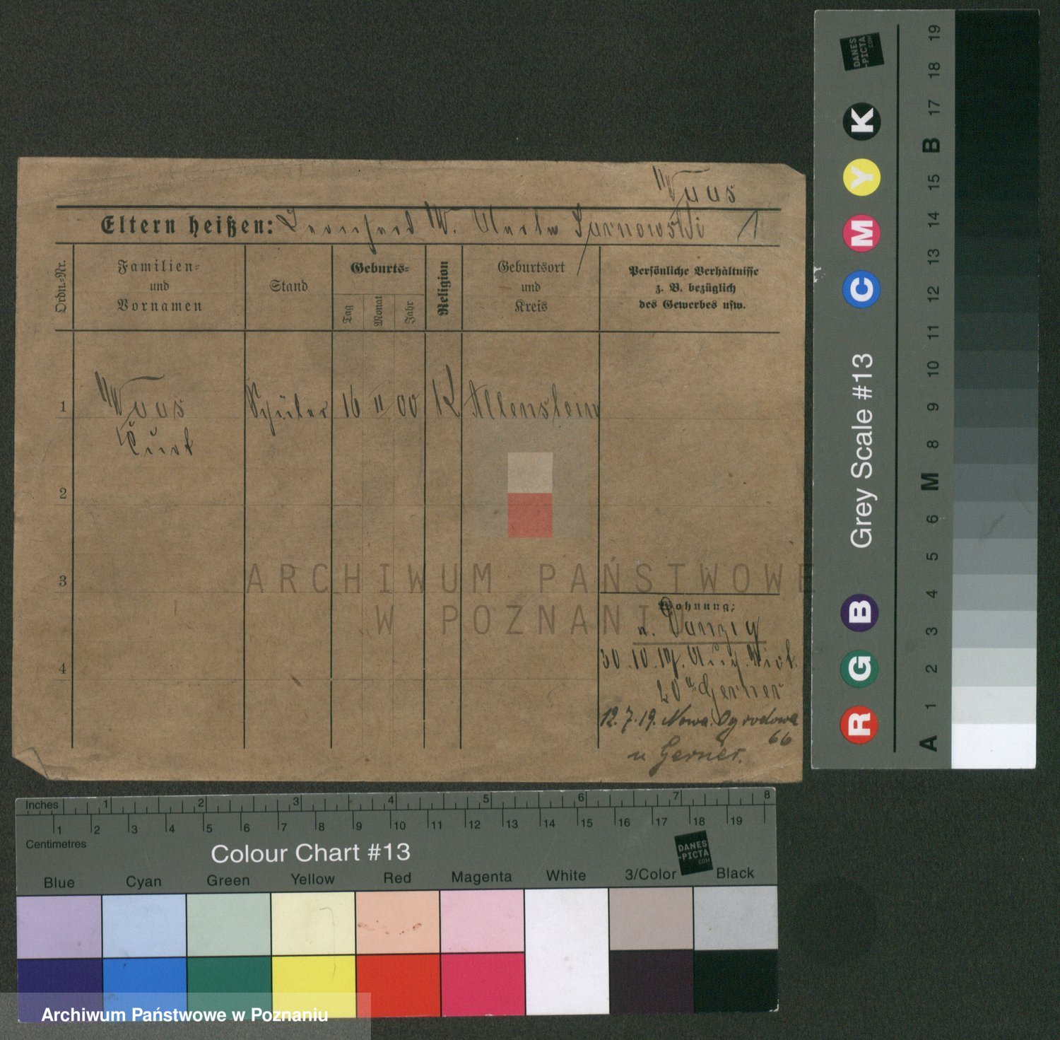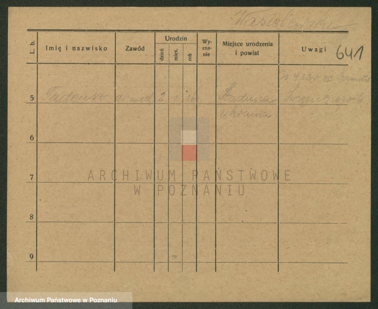 Podgląd karty osobowej dostępny jest po kliknięciu na nazwisko lub ikonkę karty. Można dokonywać powiększenia (ikony na górze) lub przechodzić między kolejnymi skanami (strzałki po bokach).