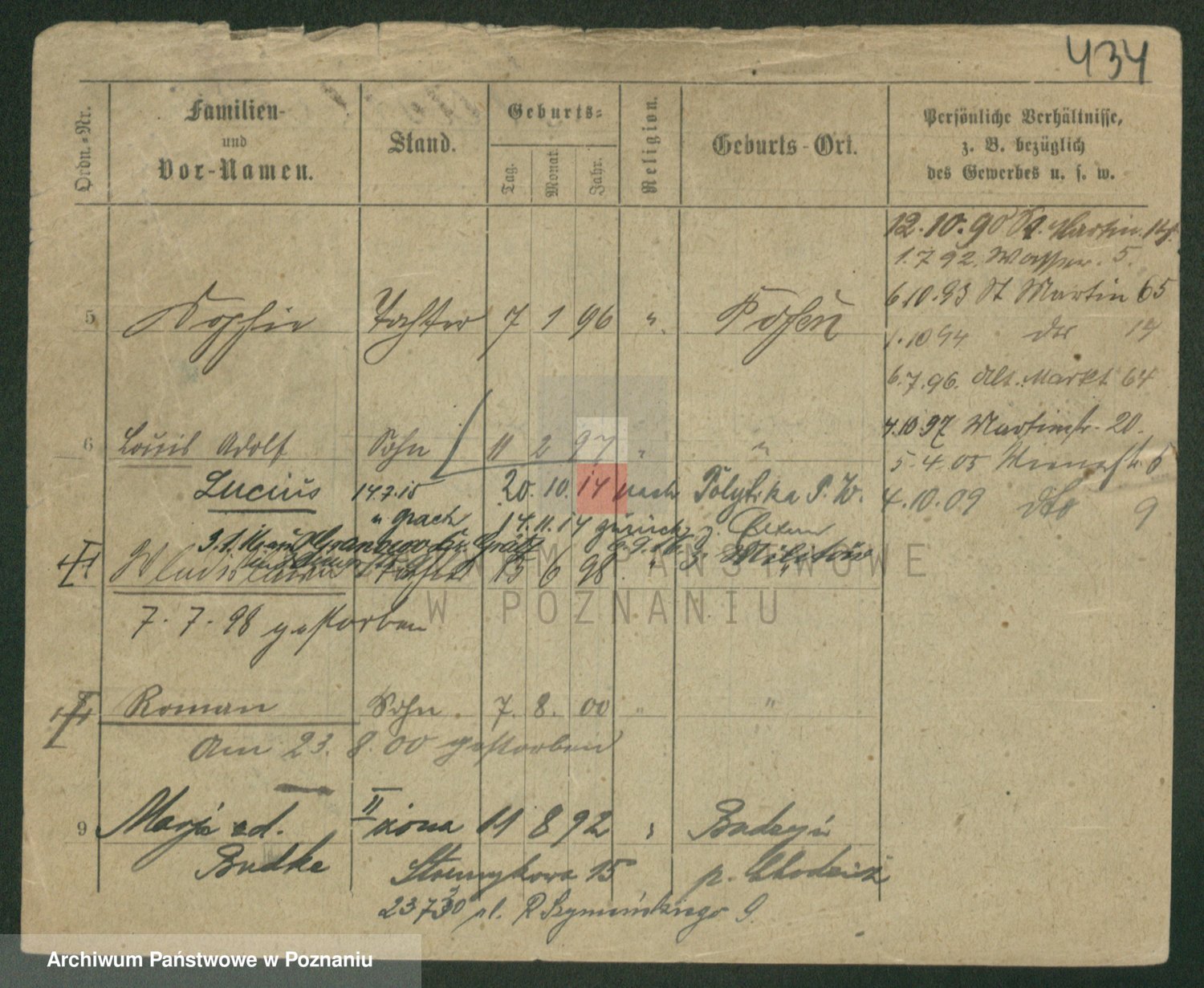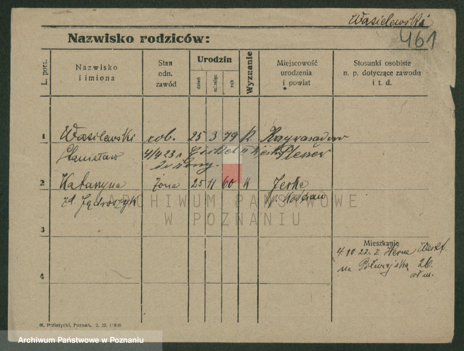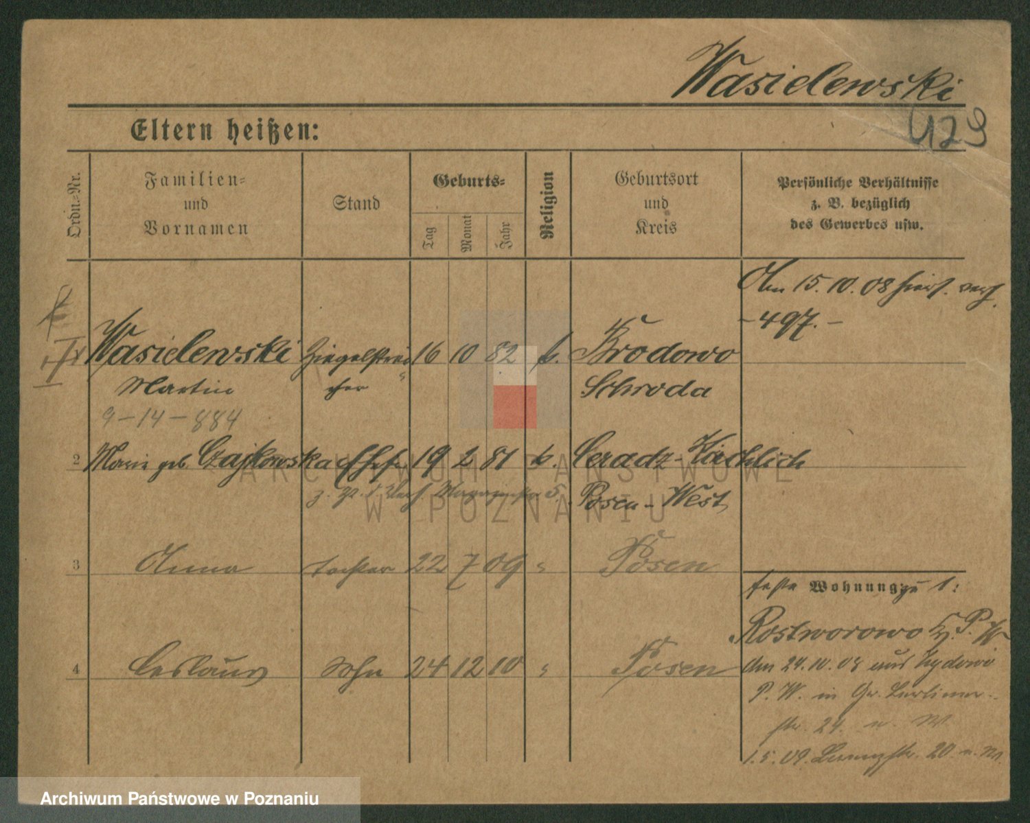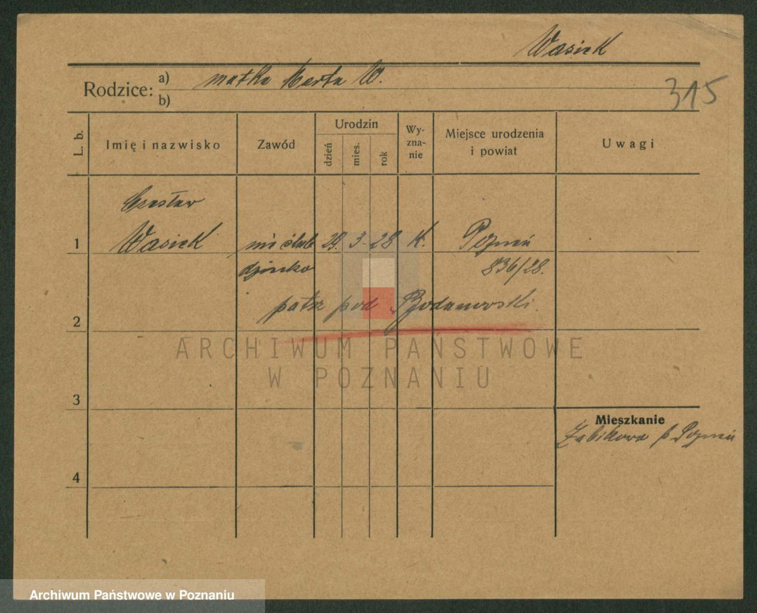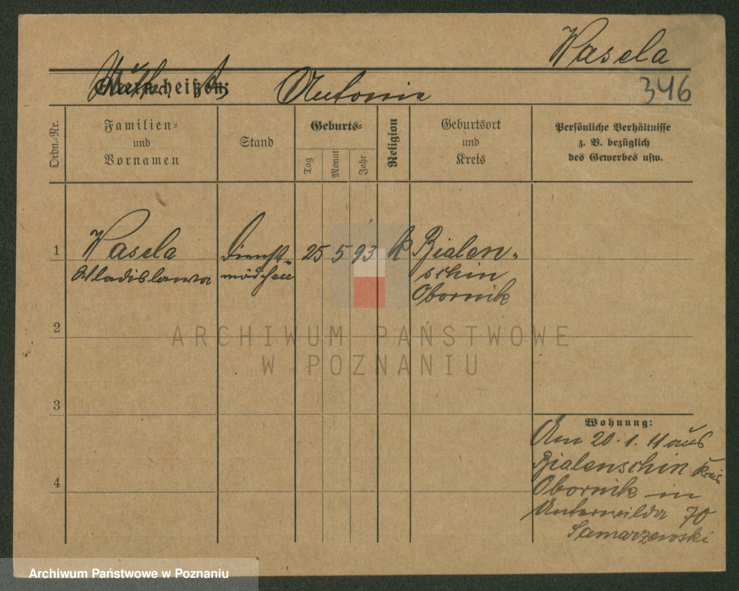 Podgląd karty osobowej dostępny jest po kliknięciu na nazwisko lub ikonkę karty. Można dokonywać powiększenia (ikony na górze) lub przechodzić między kolejnymi skanami (strzałki po bokach).