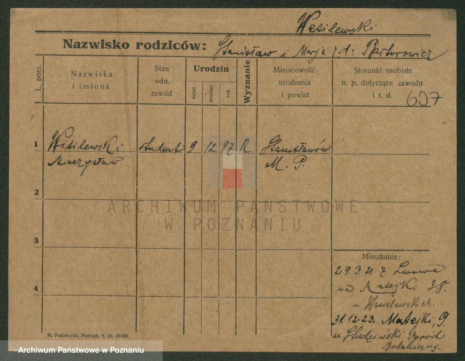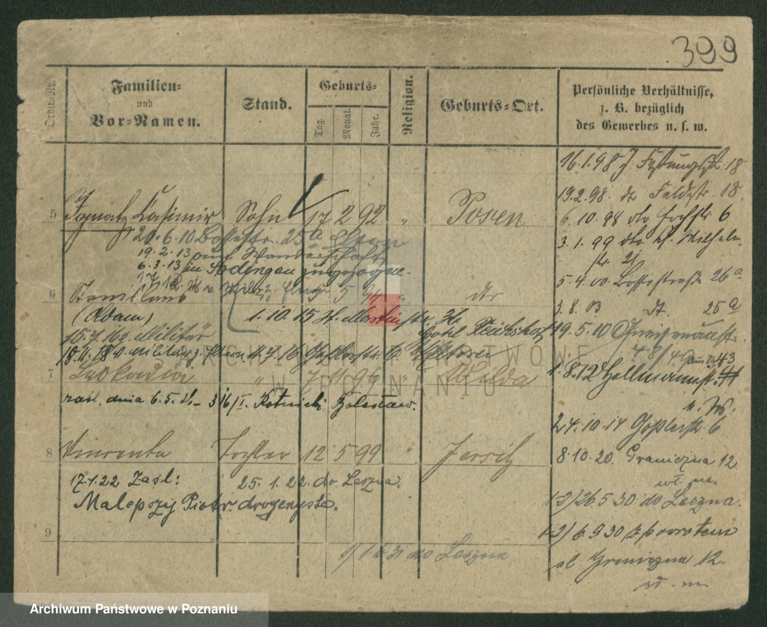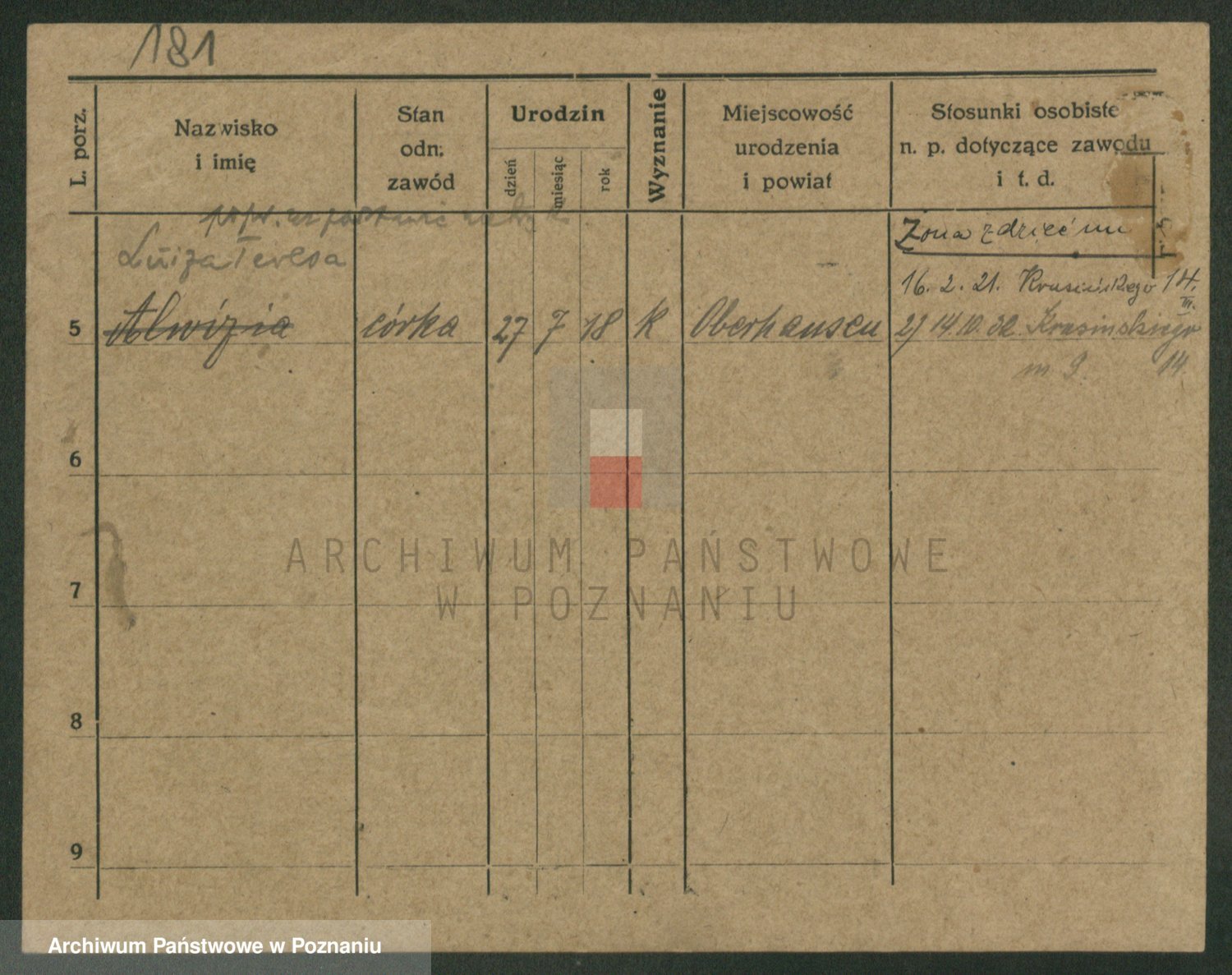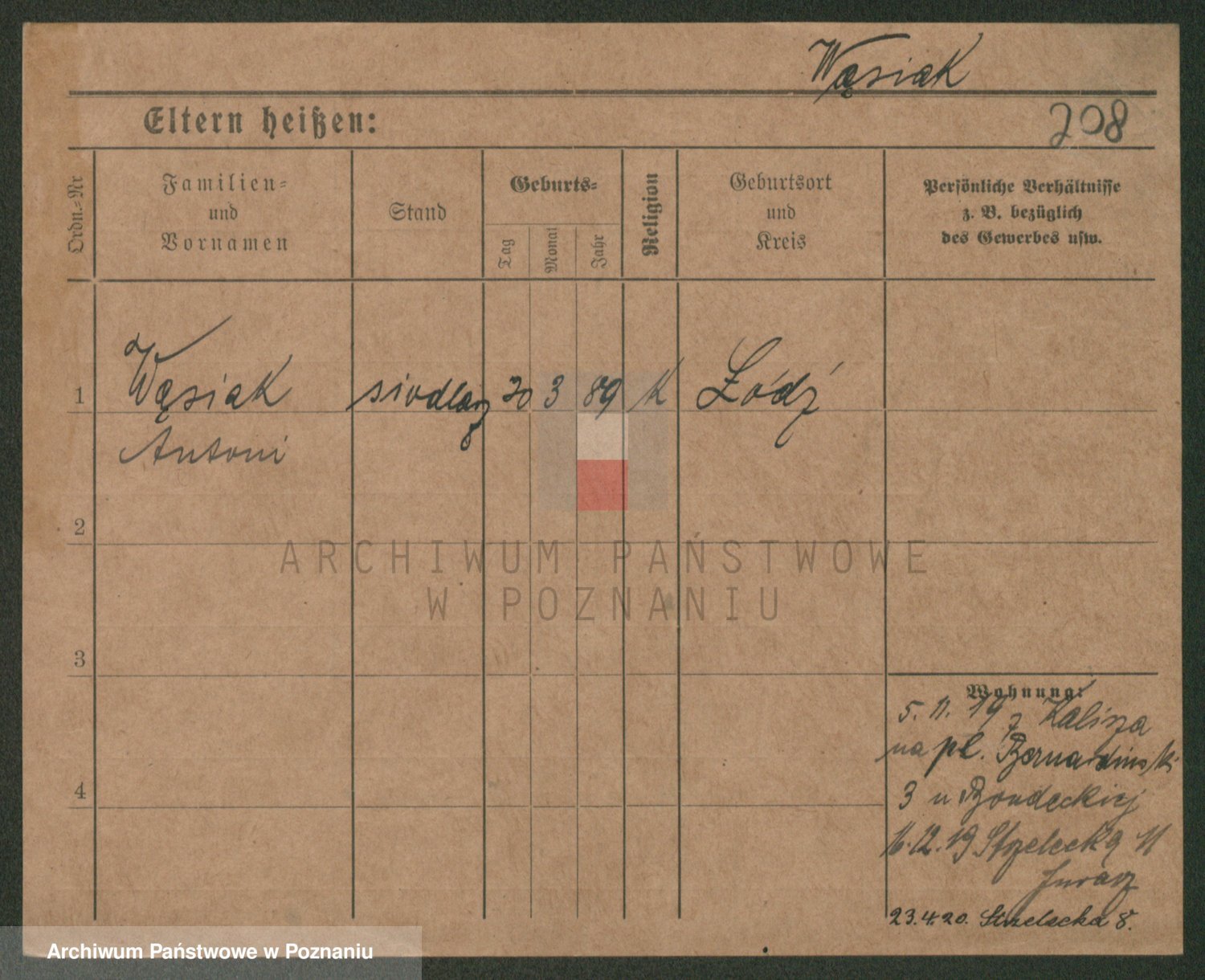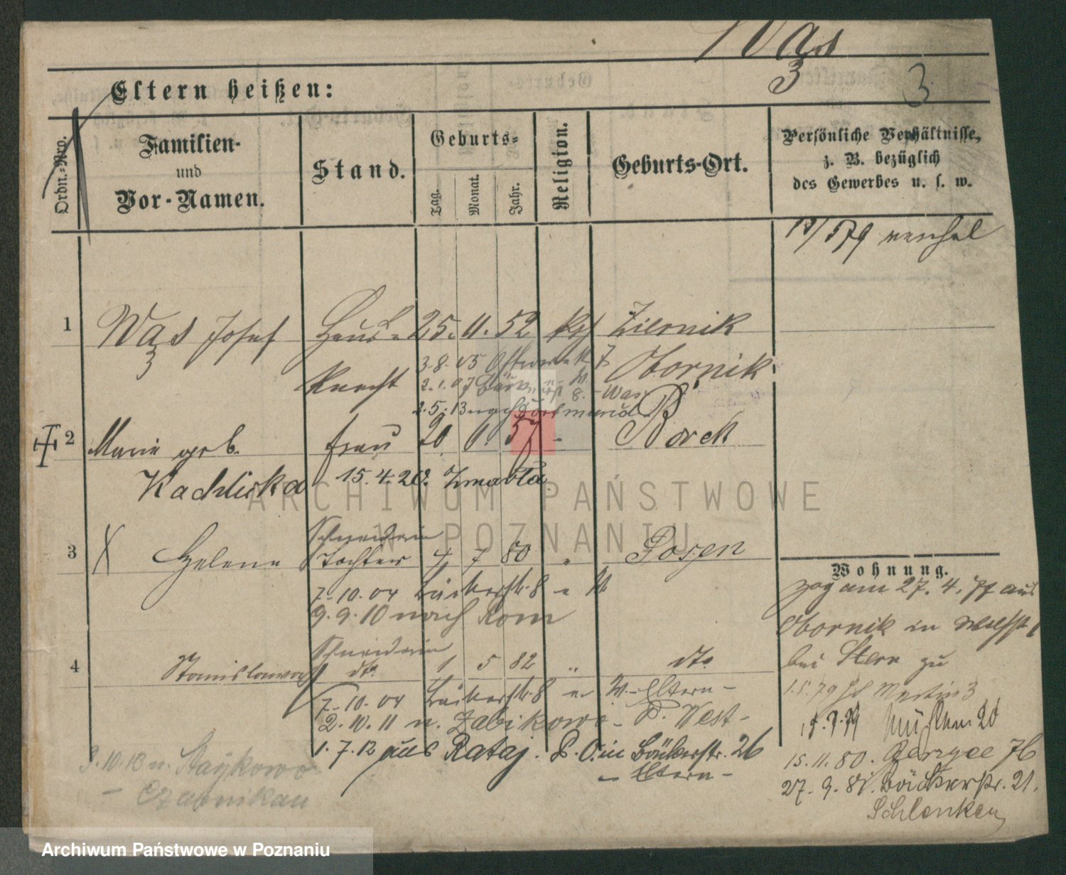 Podgląd karty osobowej dostępny jest po kliknięciu na nazwisko lub ikonkę karty. Można dokonywać powiększenia (ikony na górze) lub przechodzić między kolejnymi skanami (strzałki po bokach).