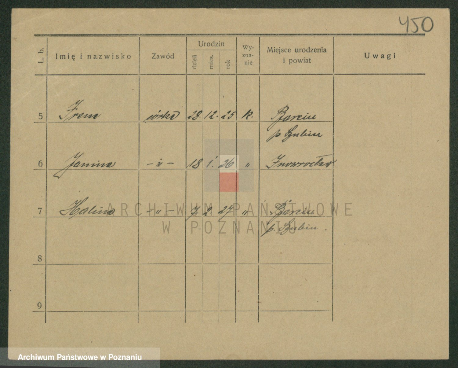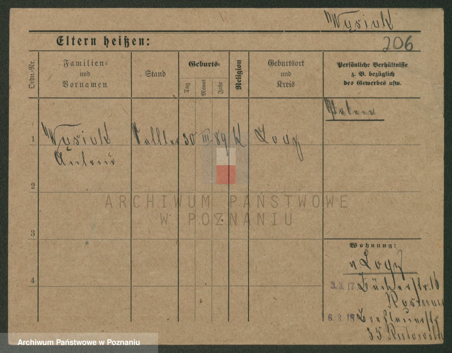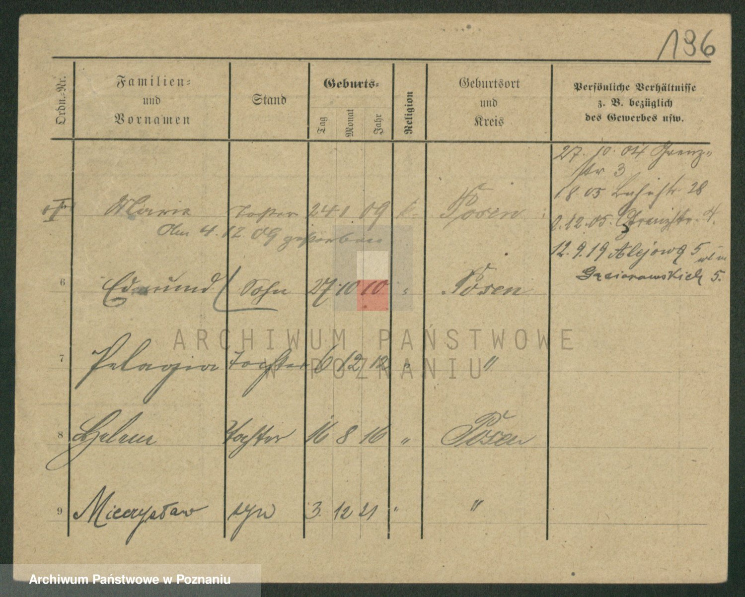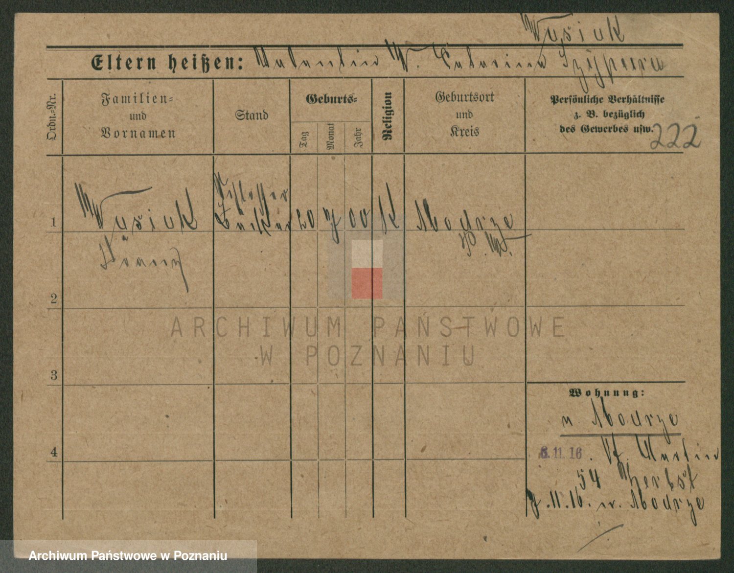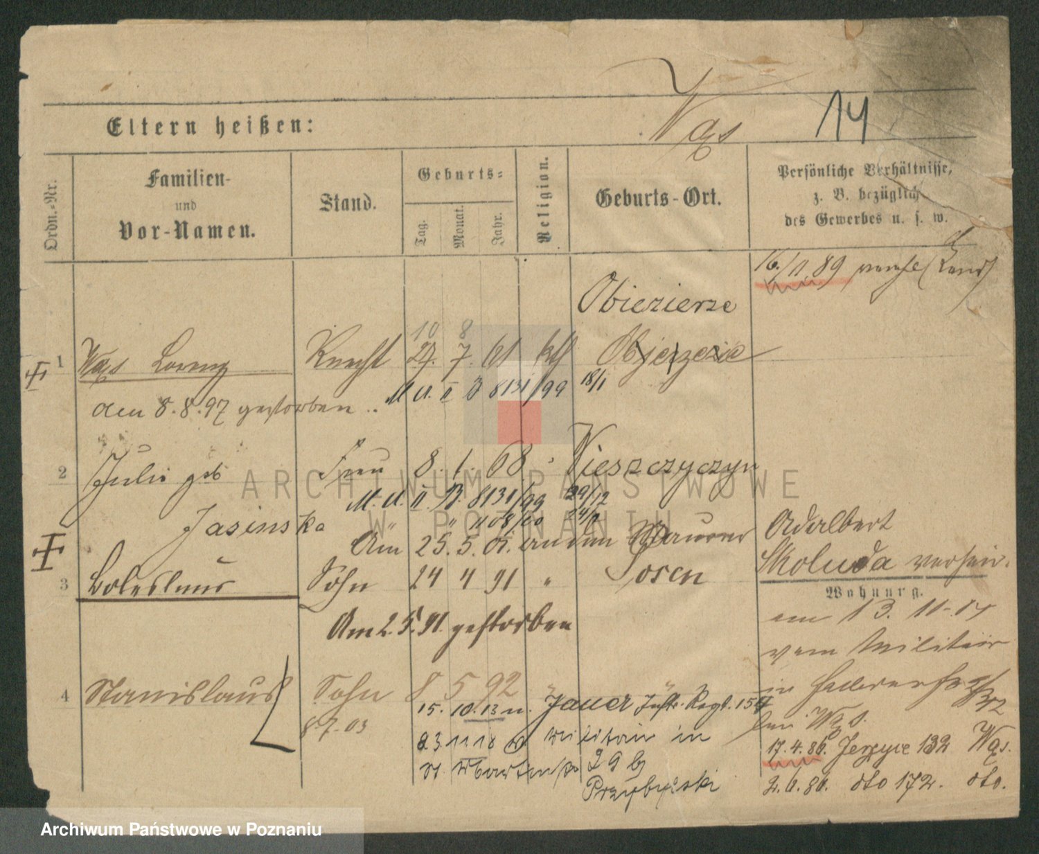 Podgląd karty osobowej dostępny jest po kliknięciu na nazwisko lub ikonkę karty. Można dokonywać powiększenia (ikony na górze) lub przechodzić między kolejnymi skanami (strzałki po bokach).
