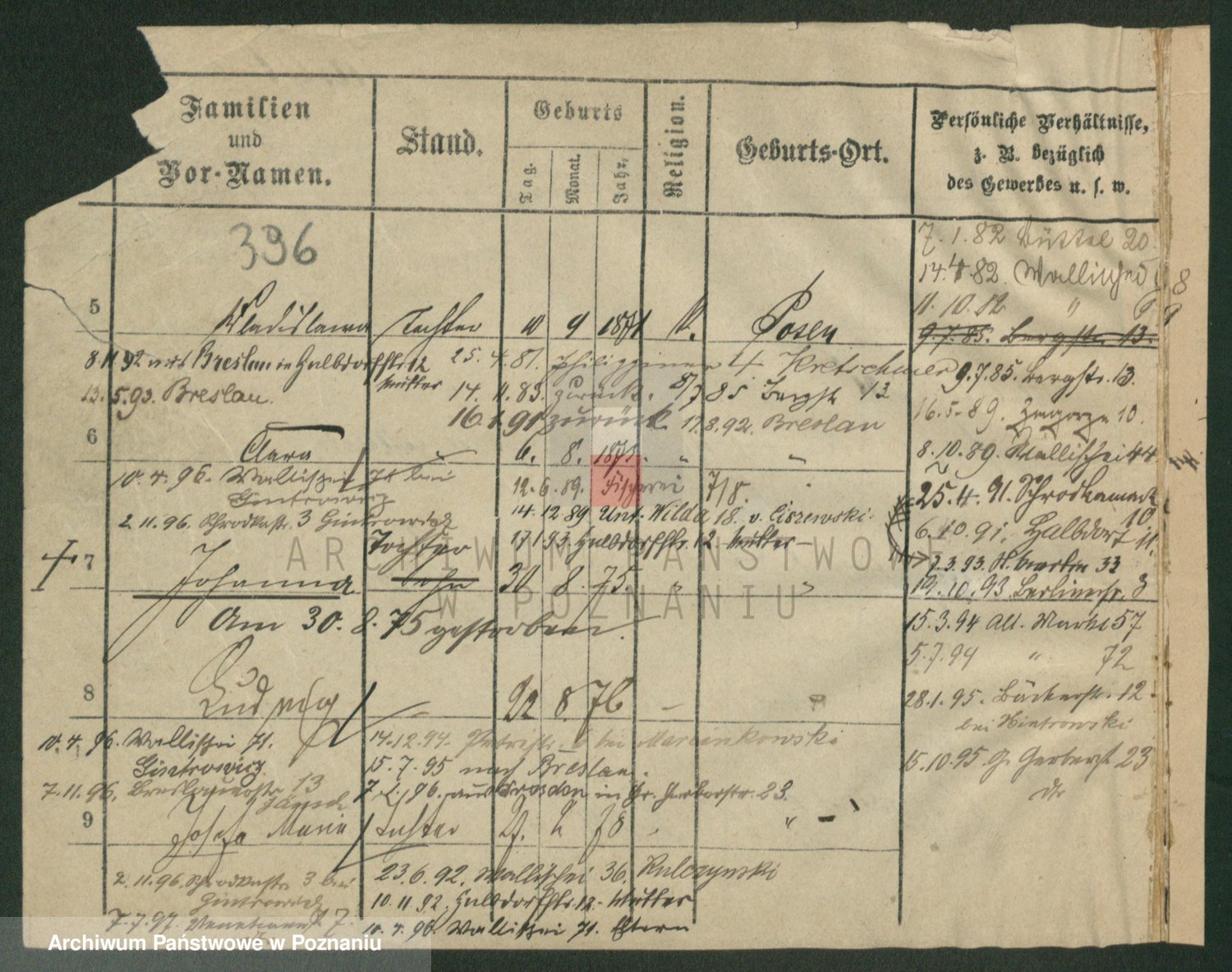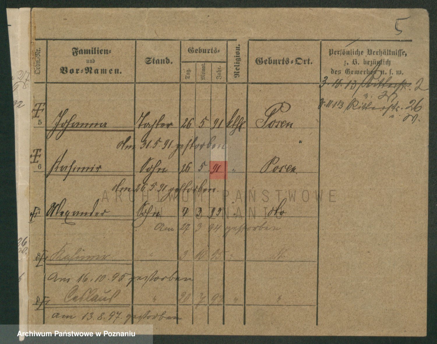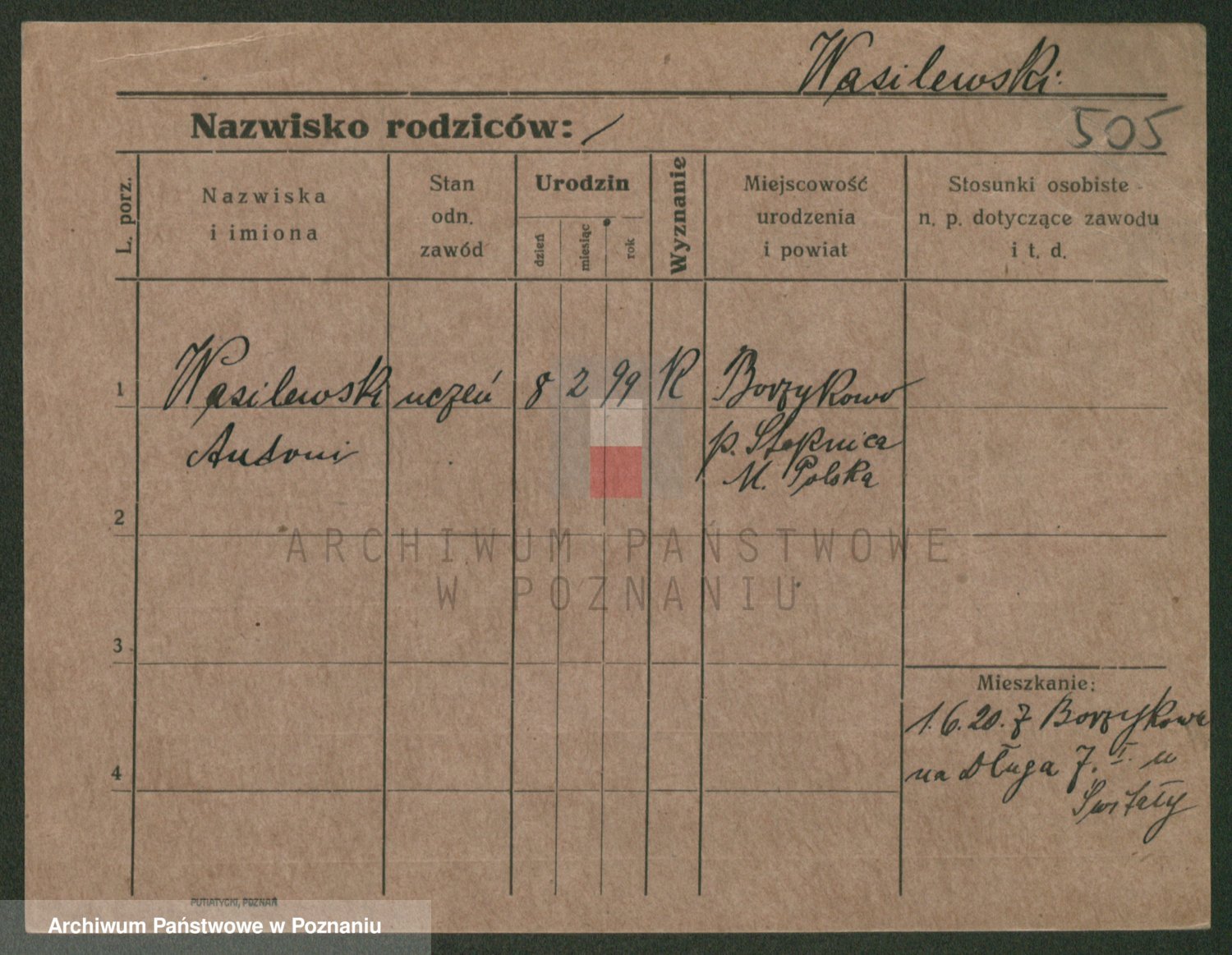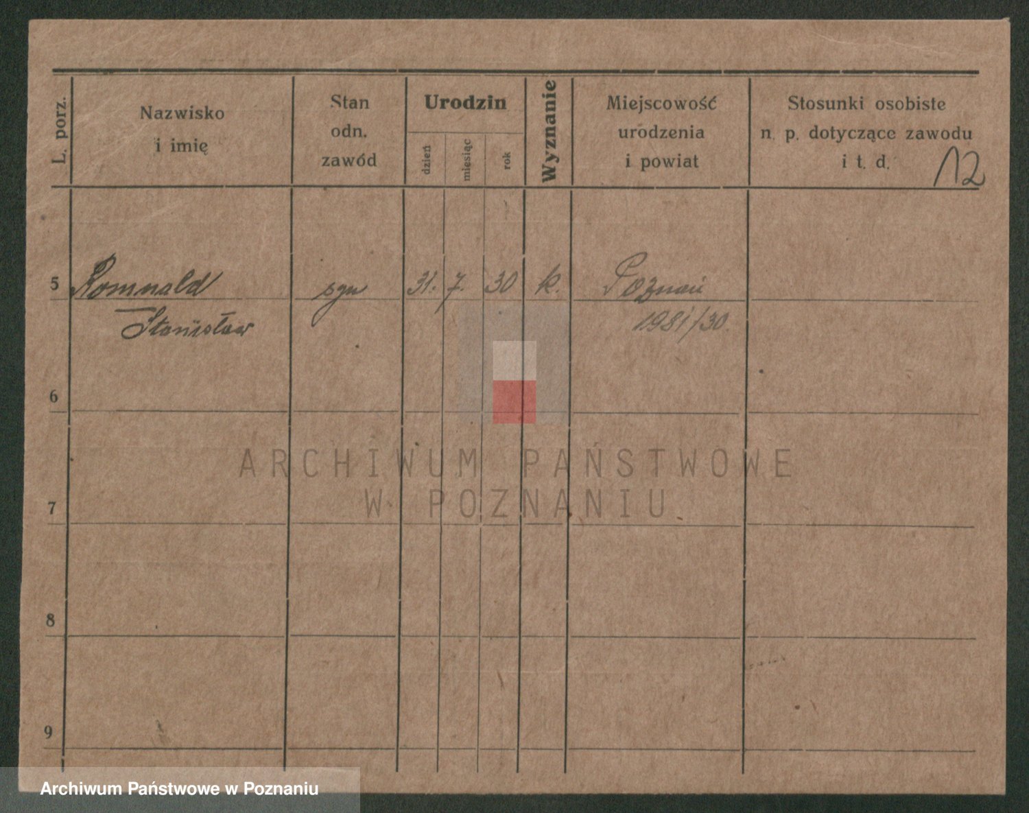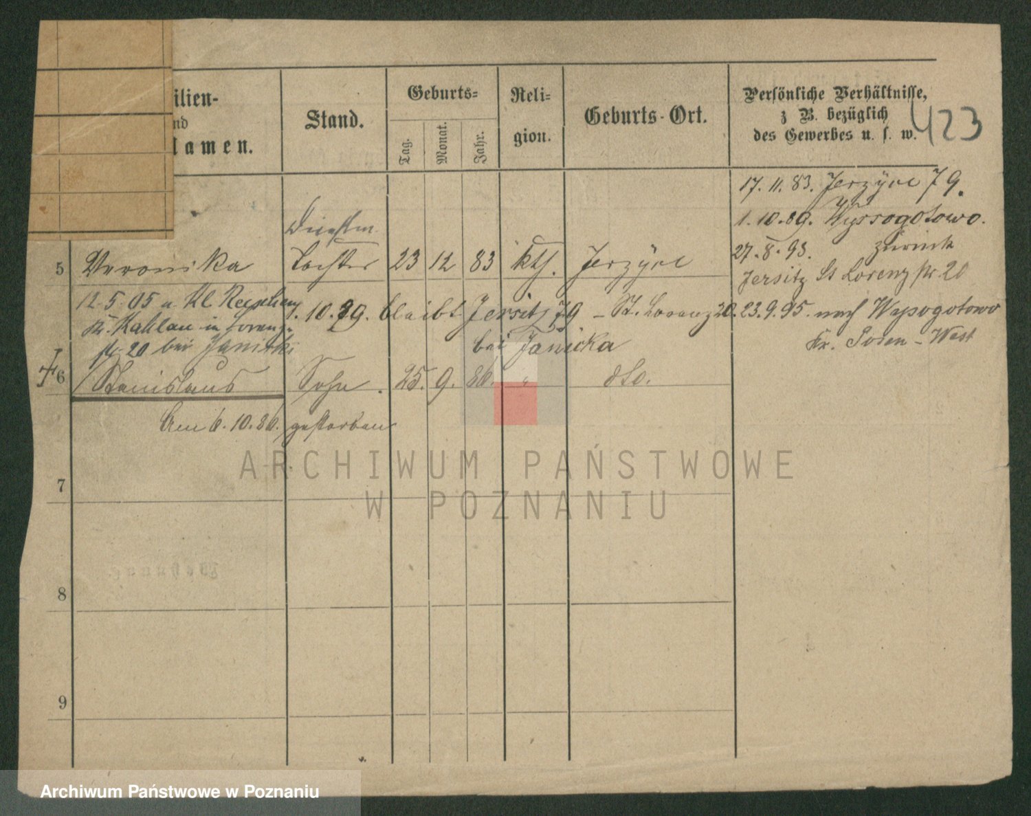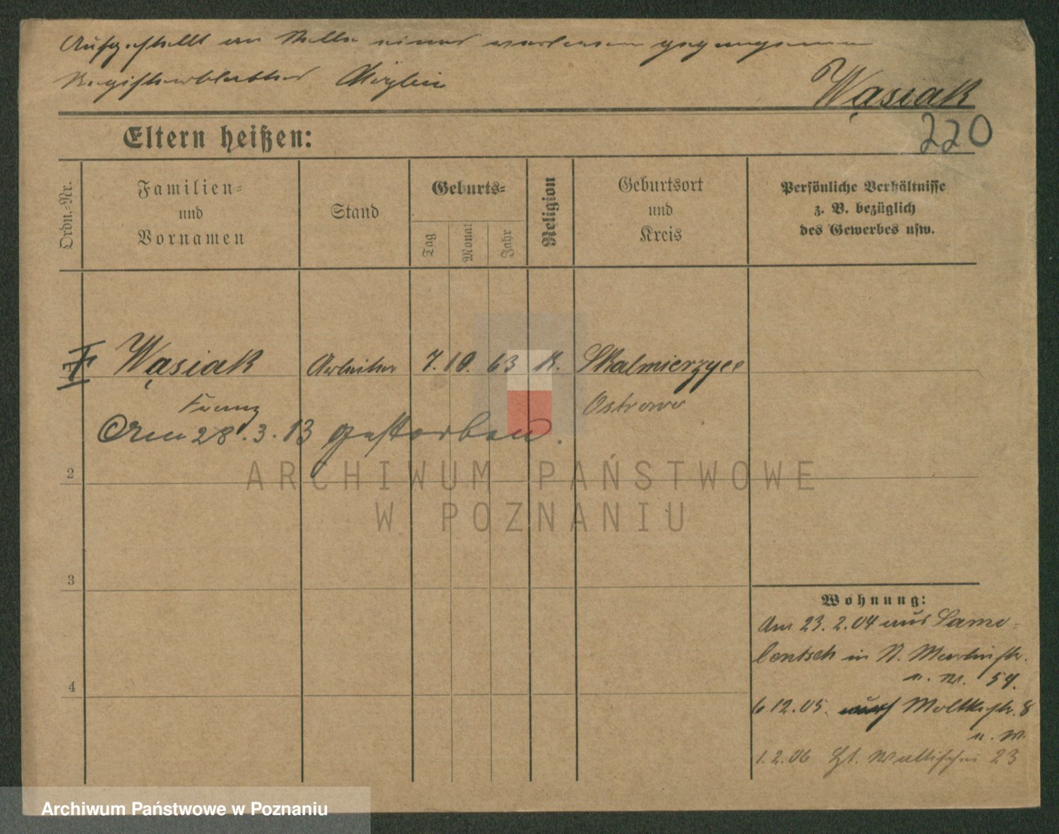 Podgląd karty osobowej dostępny jest po kliknięciu na nazwisko lub ikonkę karty. Można dokonywać powiększenia (ikony na górze) lub przechodzić między kolejnymi skanami (strzałki po bokach).