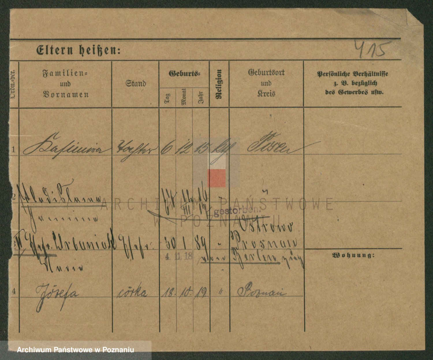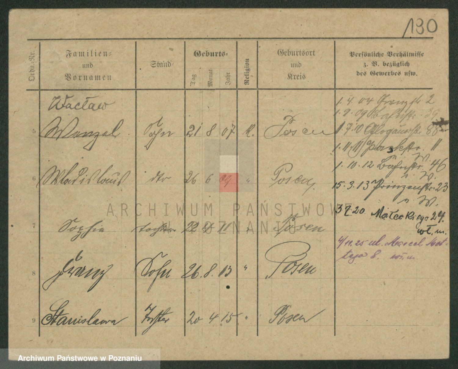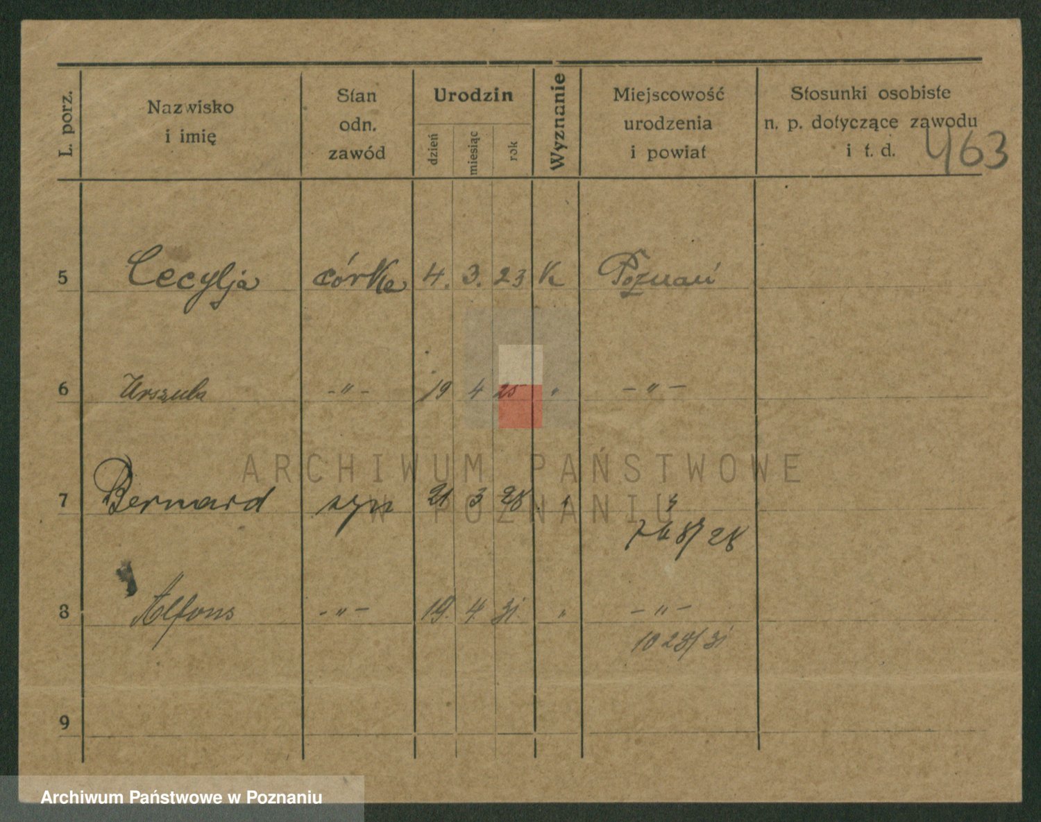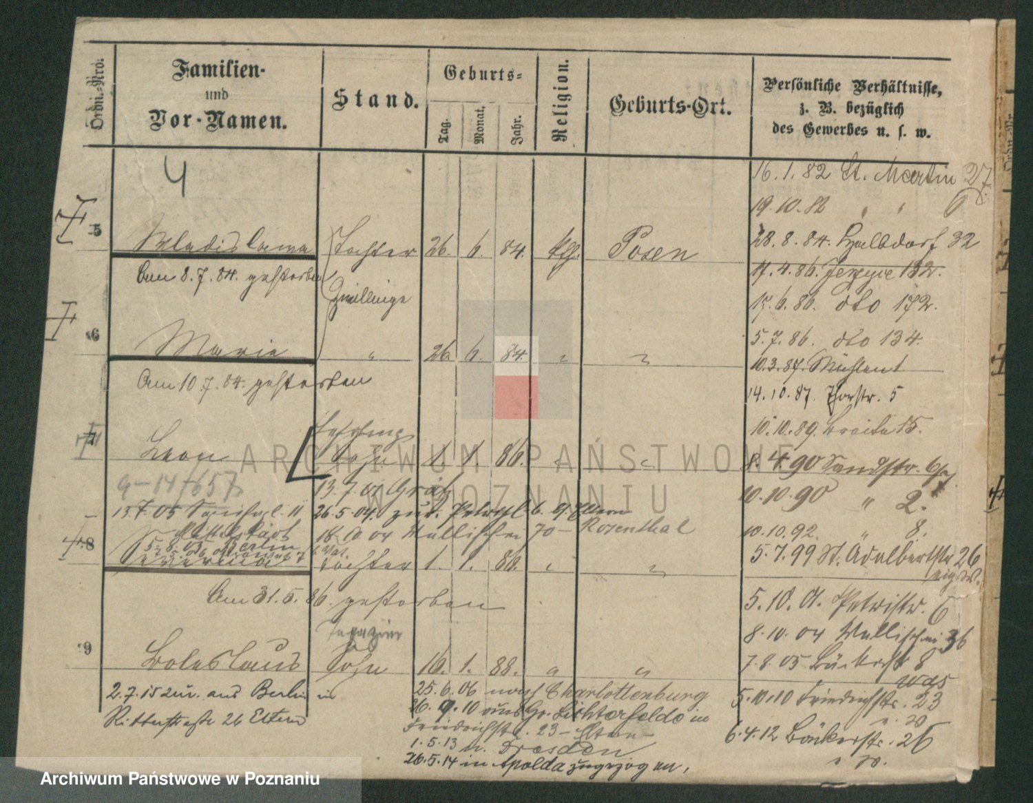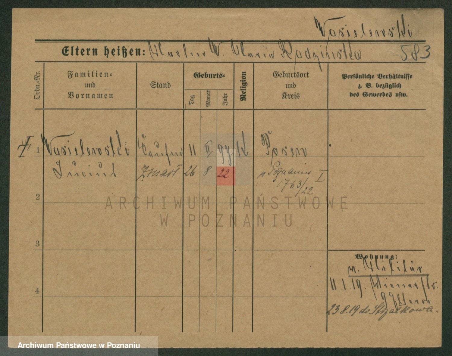 Podgląd karty osobowej dostępny jest po kliknięciu na nazwisko lub ikonkę karty. Można dokonywać powiększenia (ikony na górze) lub przechodzić między kolejnymi skanami (strzałki po bokach).