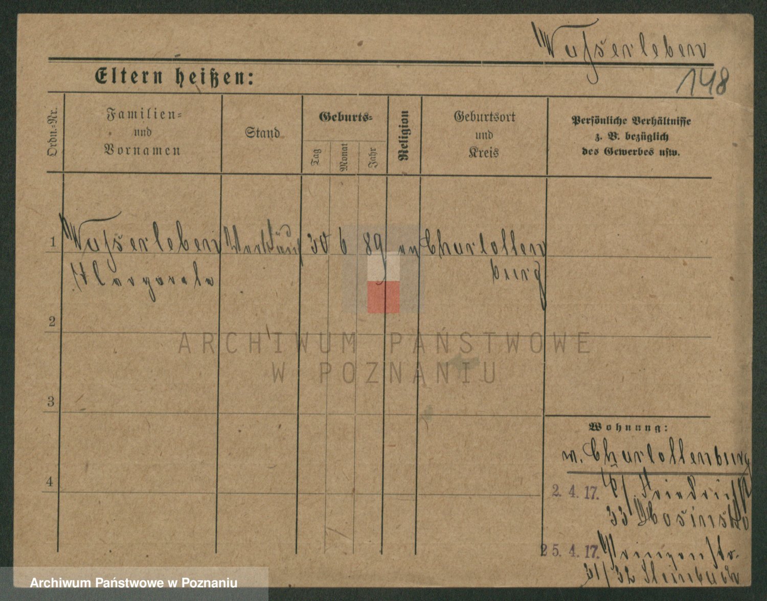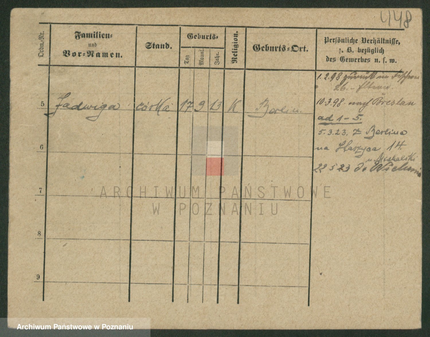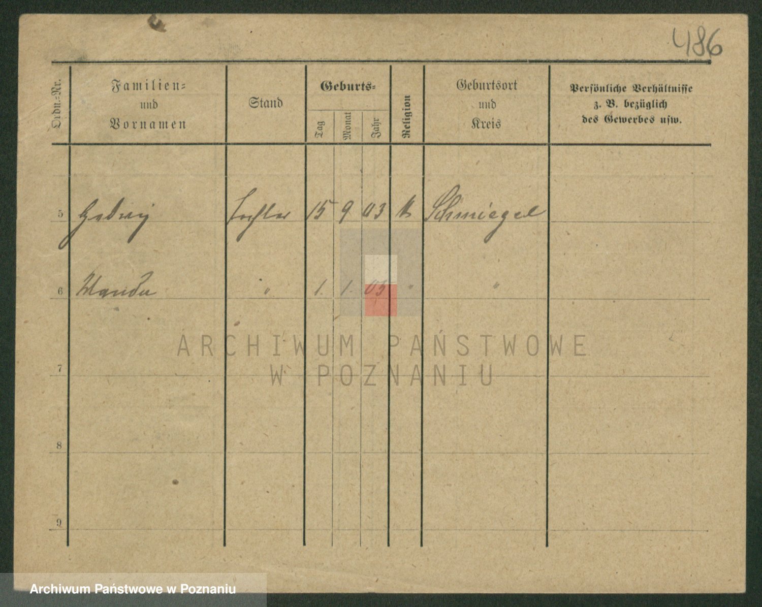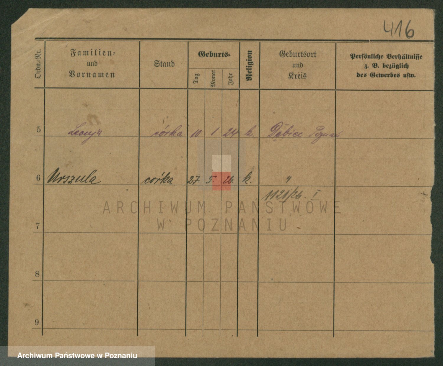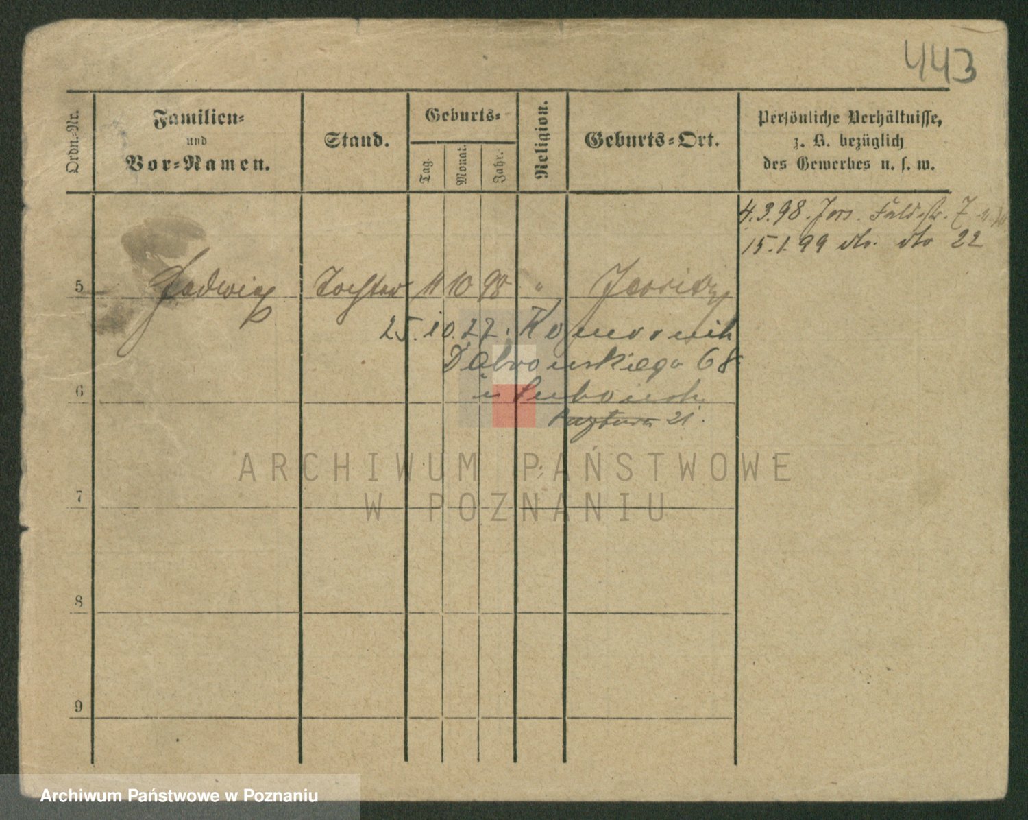 Podgląd karty osobowej dostępny jest po kliknięciu na nazwisko lub ikonkę karty. Można dokonywać powiększenia (ikony na górze) lub przechodzić między kolejnymi skanami (strzałki po bokach).
