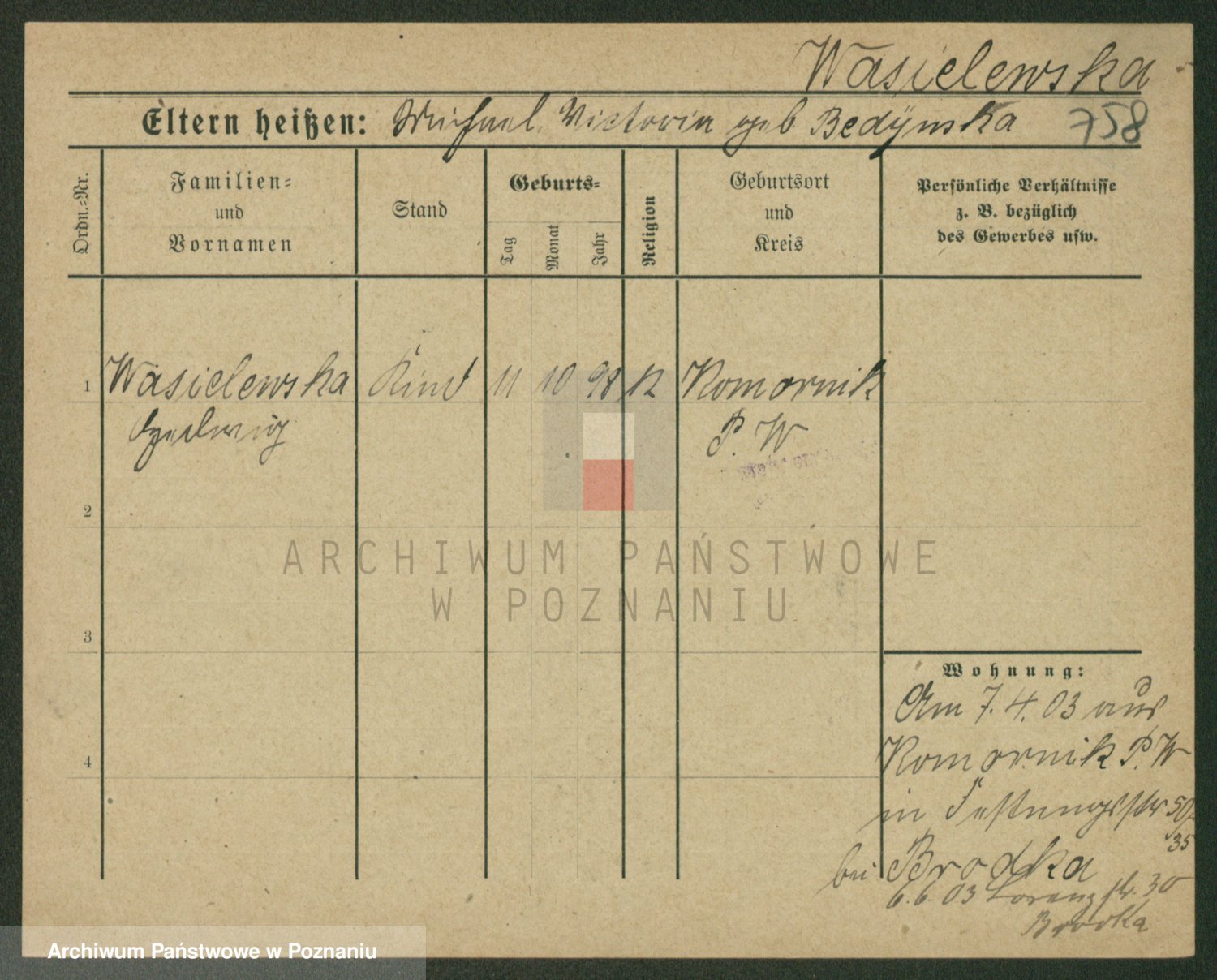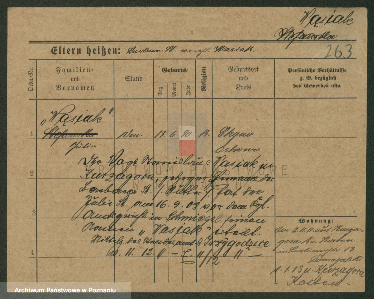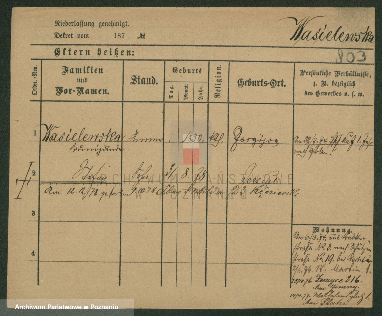 Wąs z.d. Jasinska, Julie