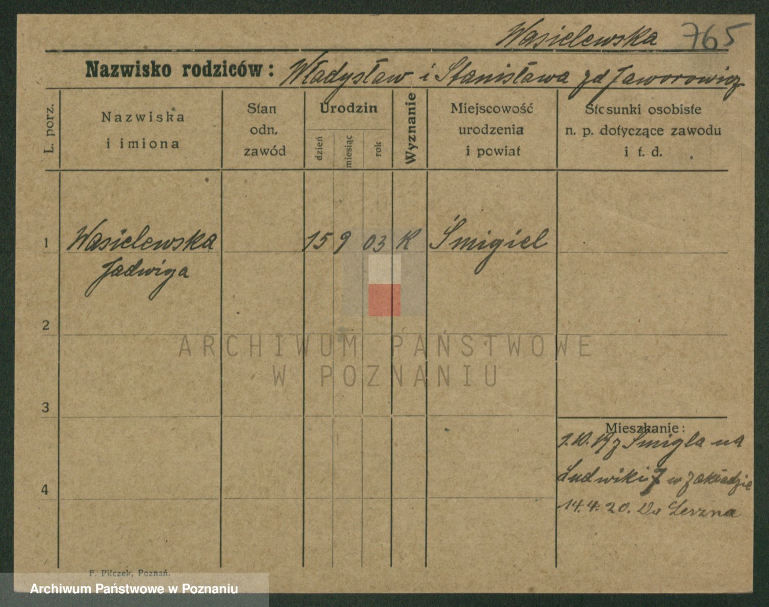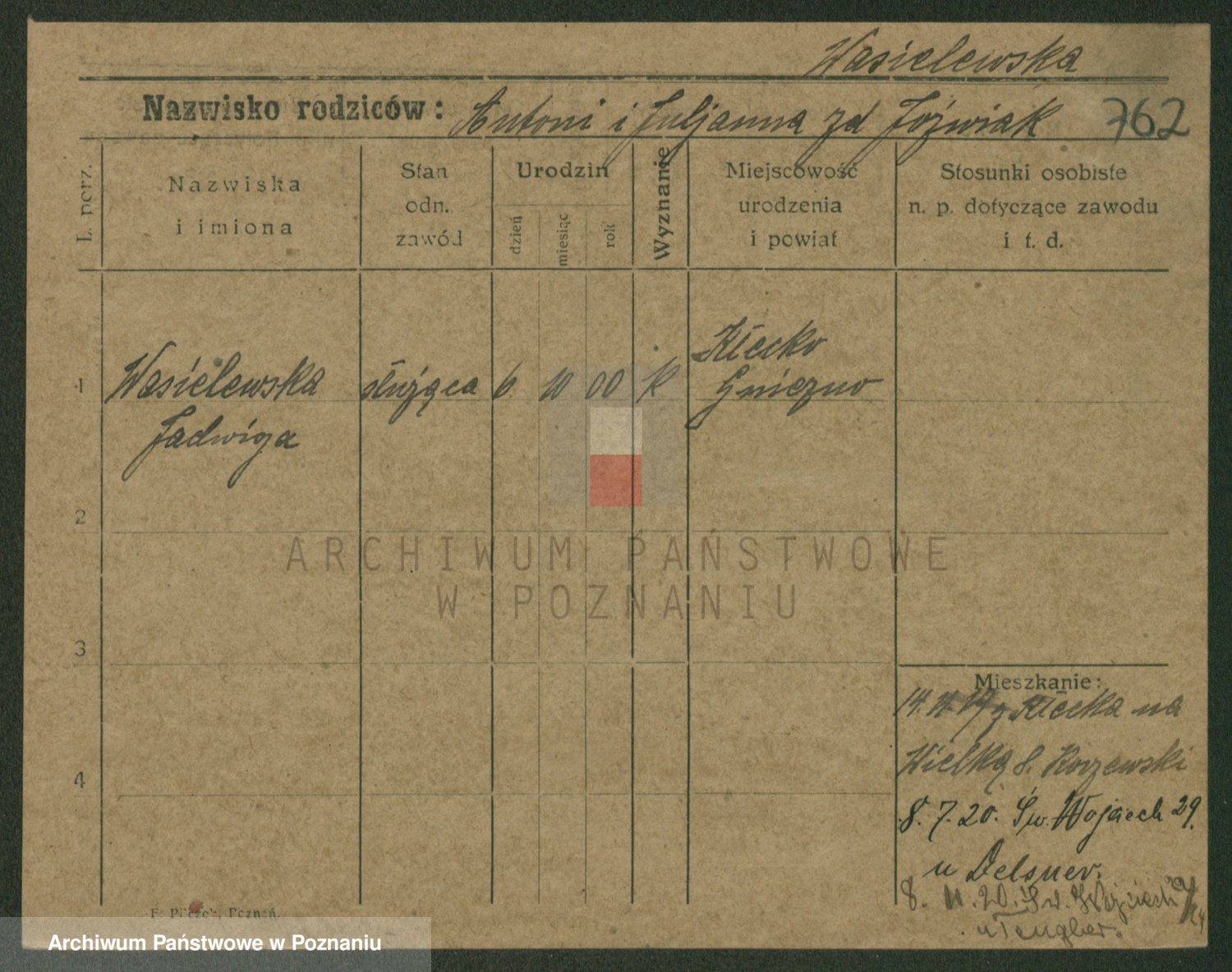 Wąs z.d. Matecka, Jadwiga