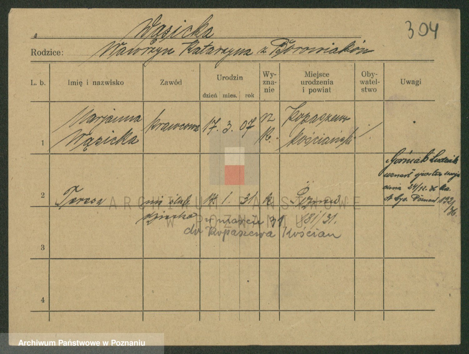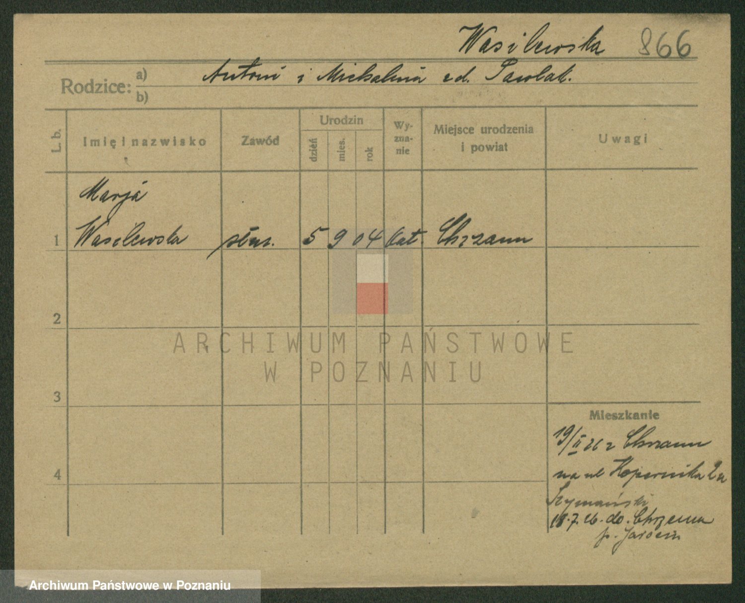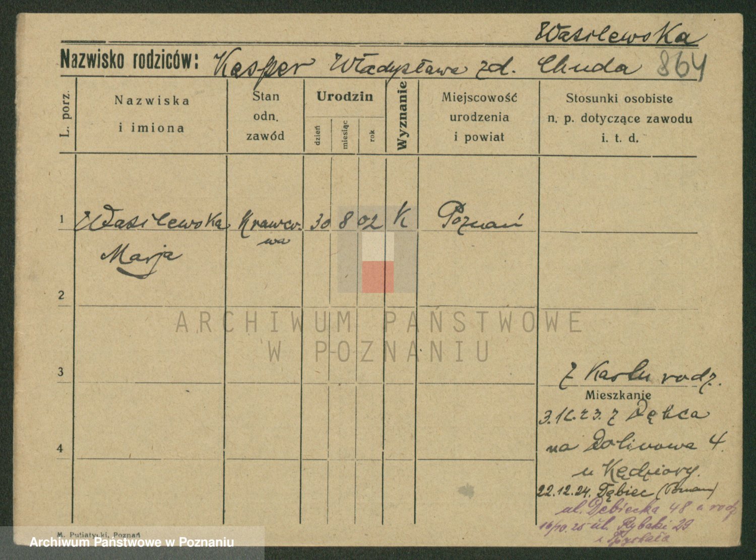 Wąs z.d.Kachlicka, Maria