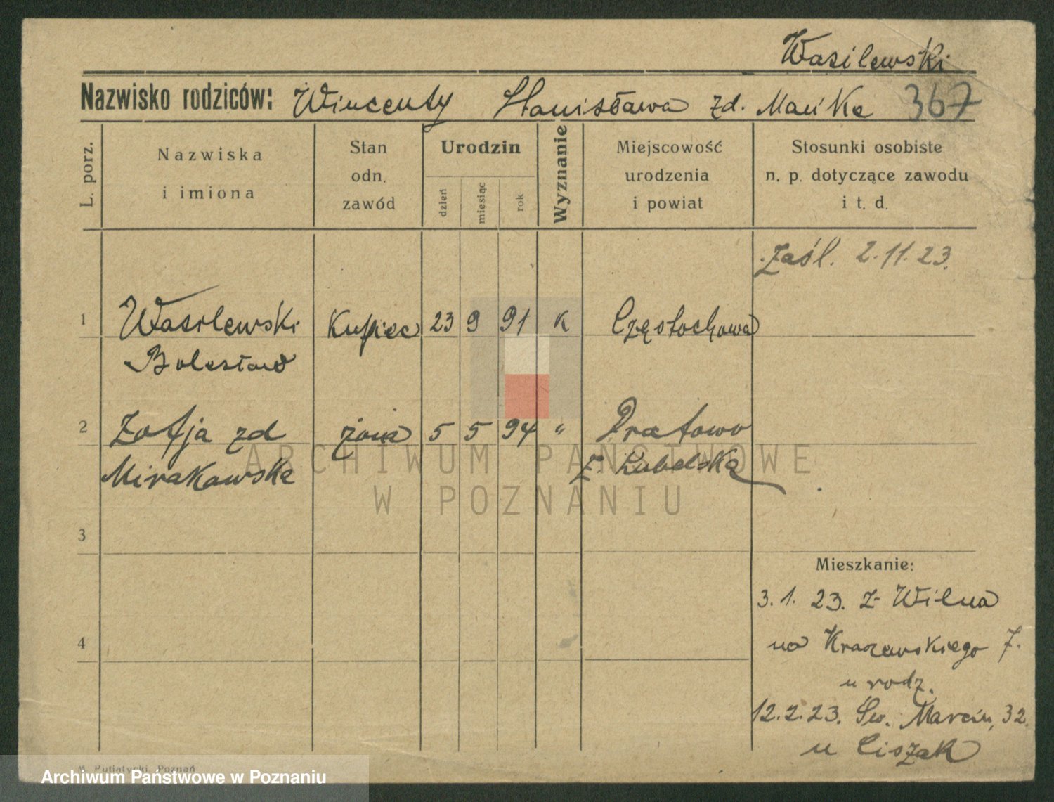 Wąs z.d. Szablewska, Stanisława