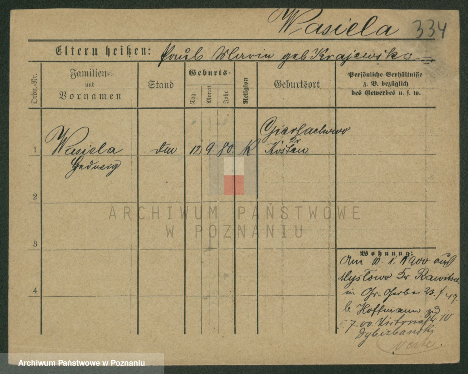 Wąs z.d. Gierek, Władysława