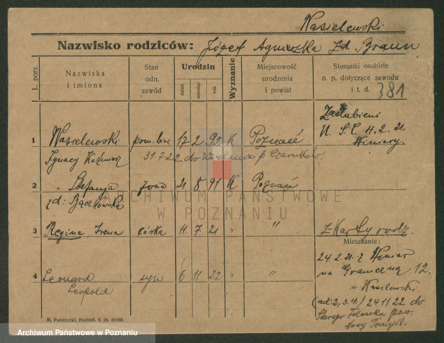 Wasielewska, Henryk Józef