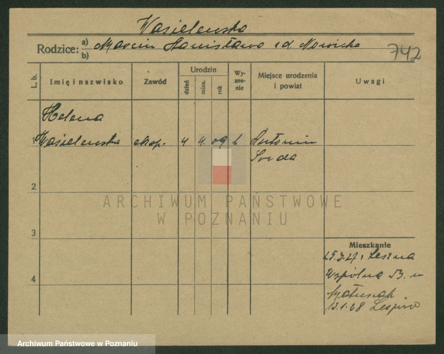 Wąs, Helena