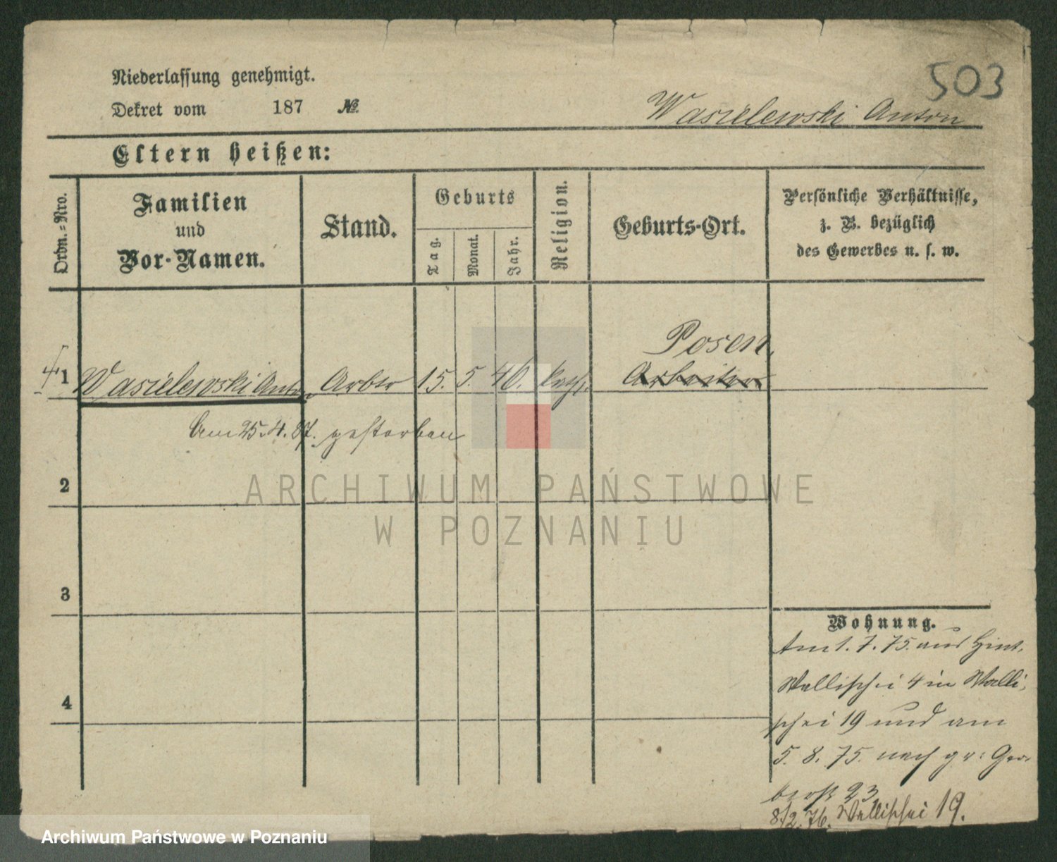 Wąs, Stanislaus