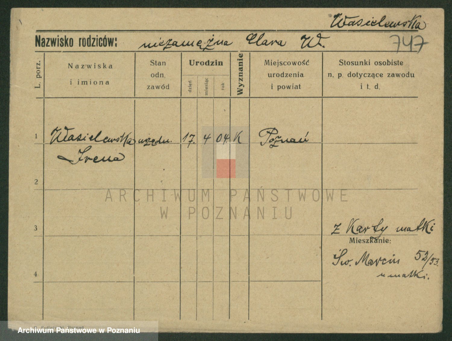Wąs, Irena Marja