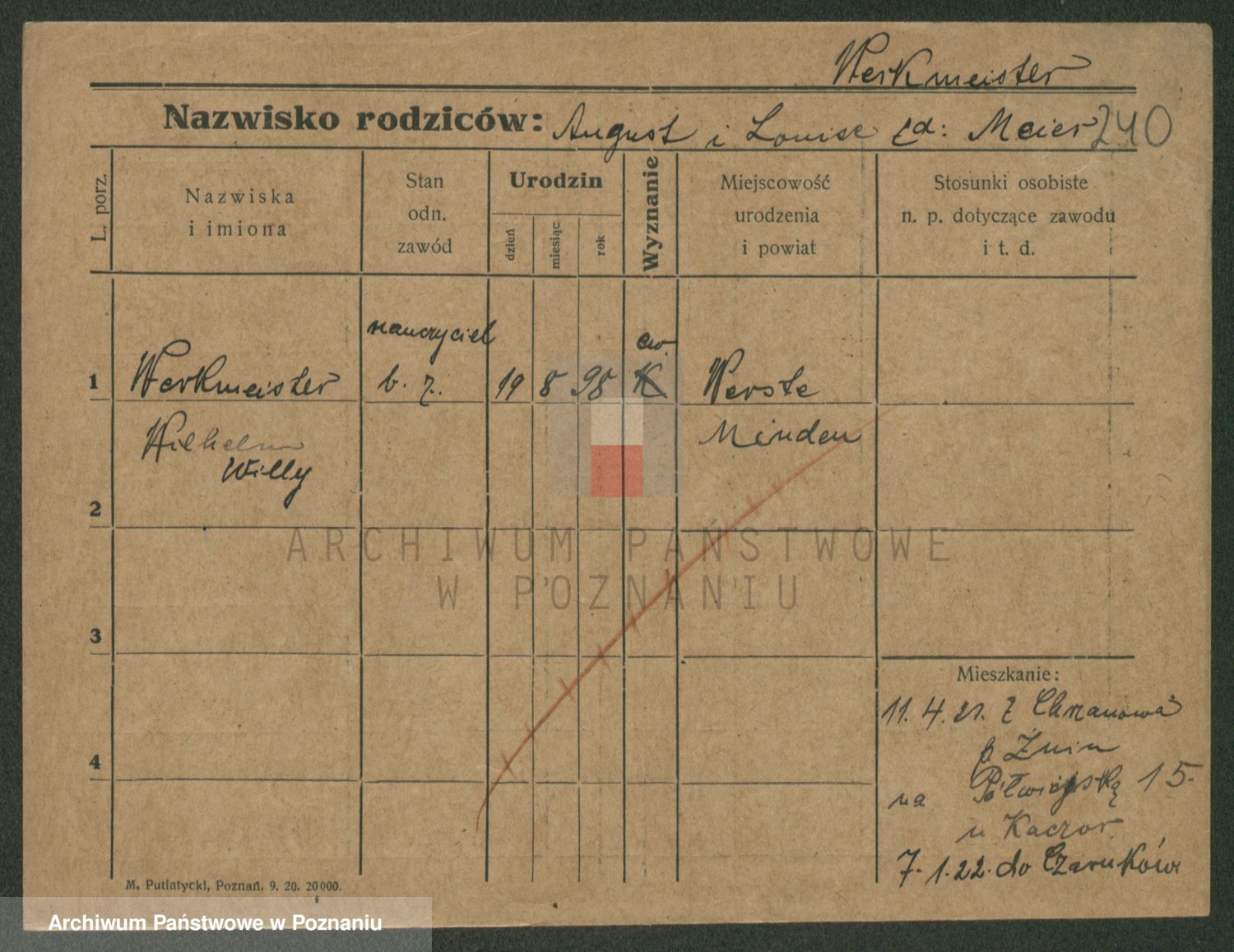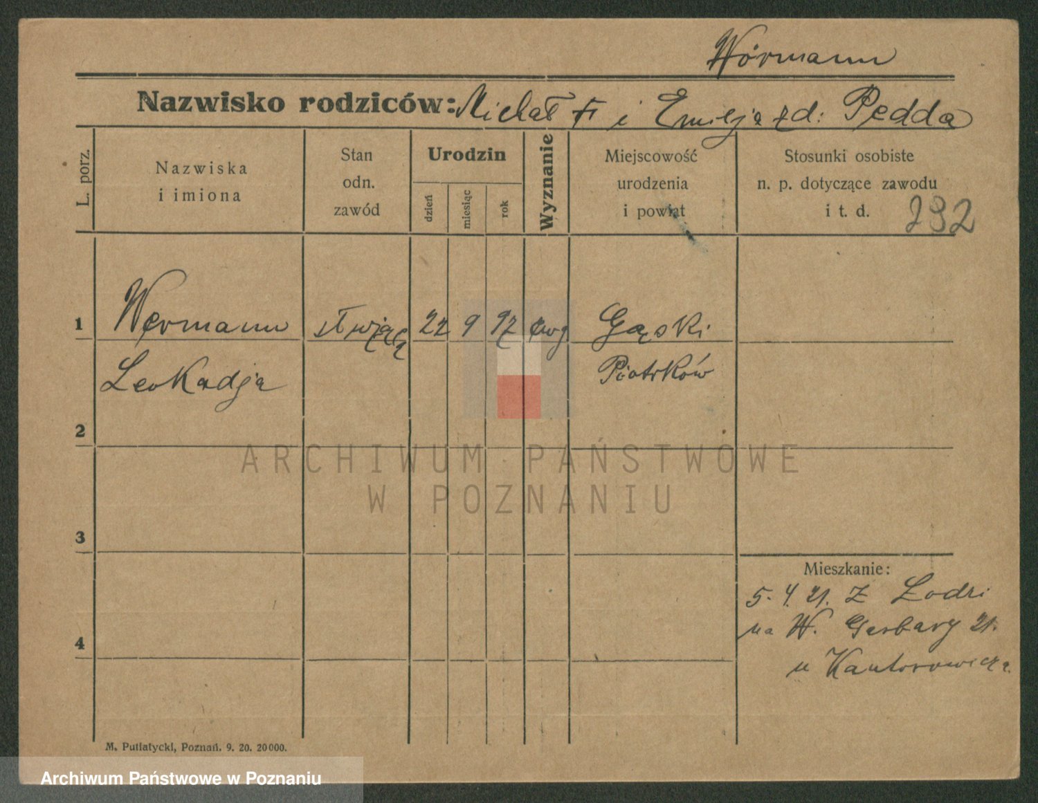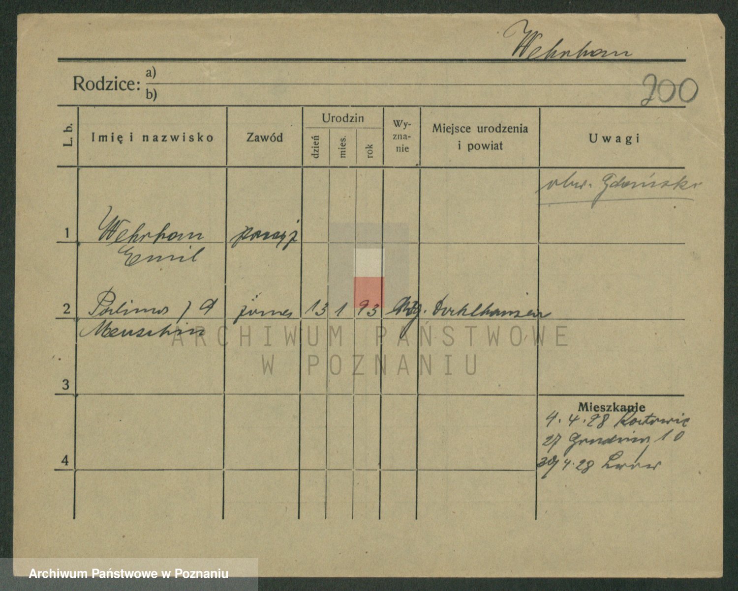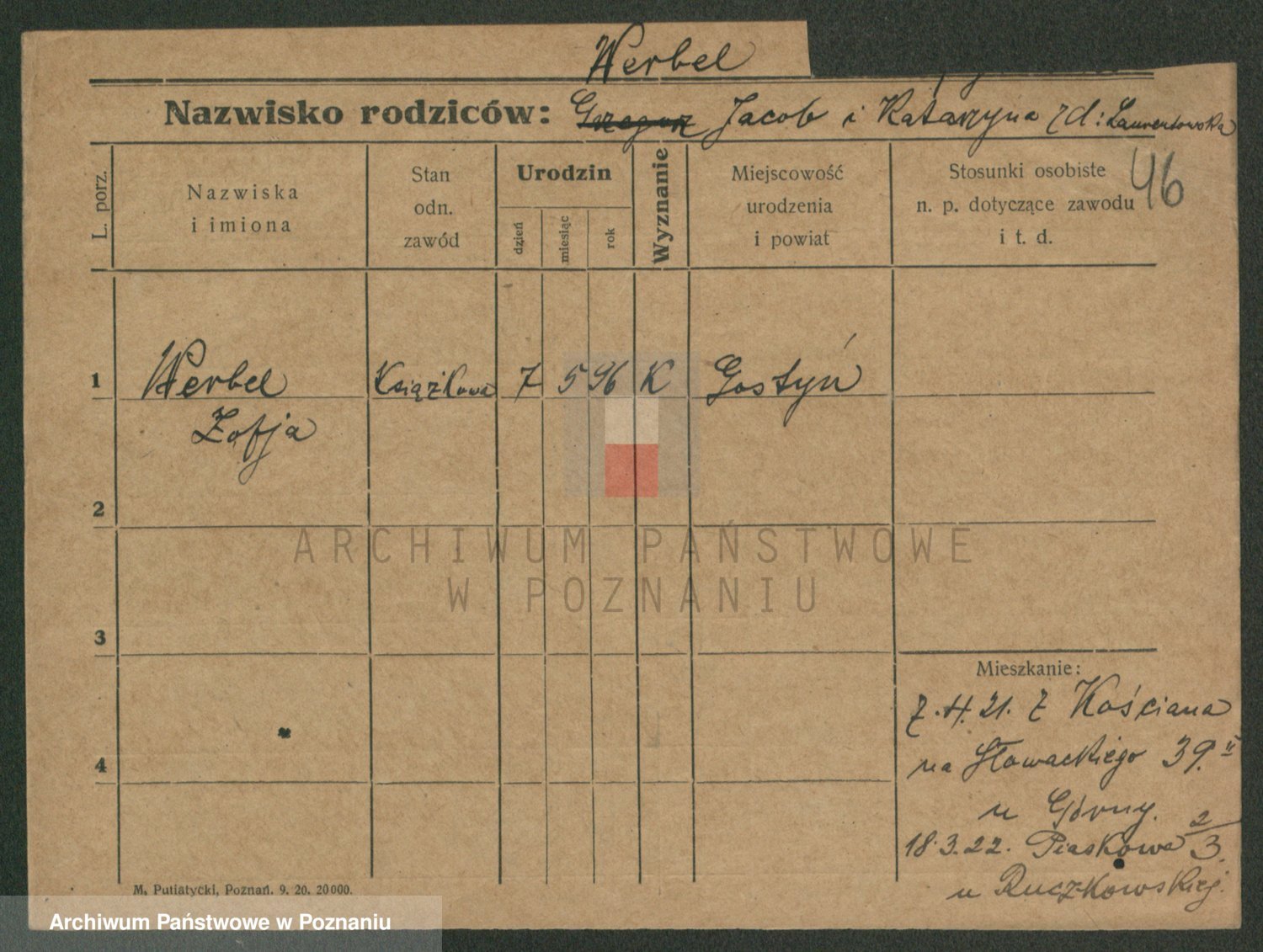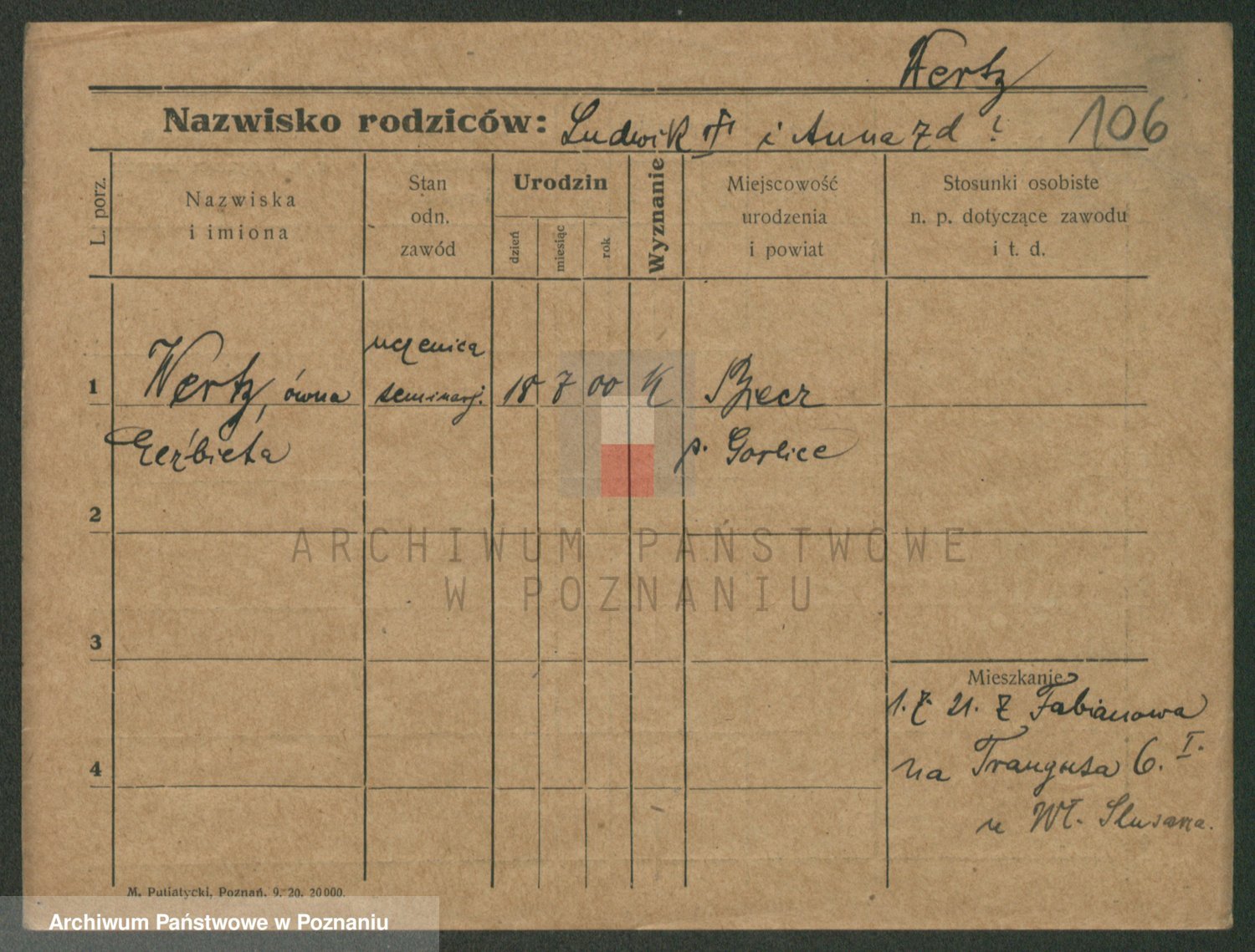 Podgląd karty osobowej dostępny jest po kliknięciu na nazwisko lub ikonkę karty. Można dokonywać powiększenia (ikony na górze) lub przechodzić między kolejnymi skanami (strzałki po bokach).