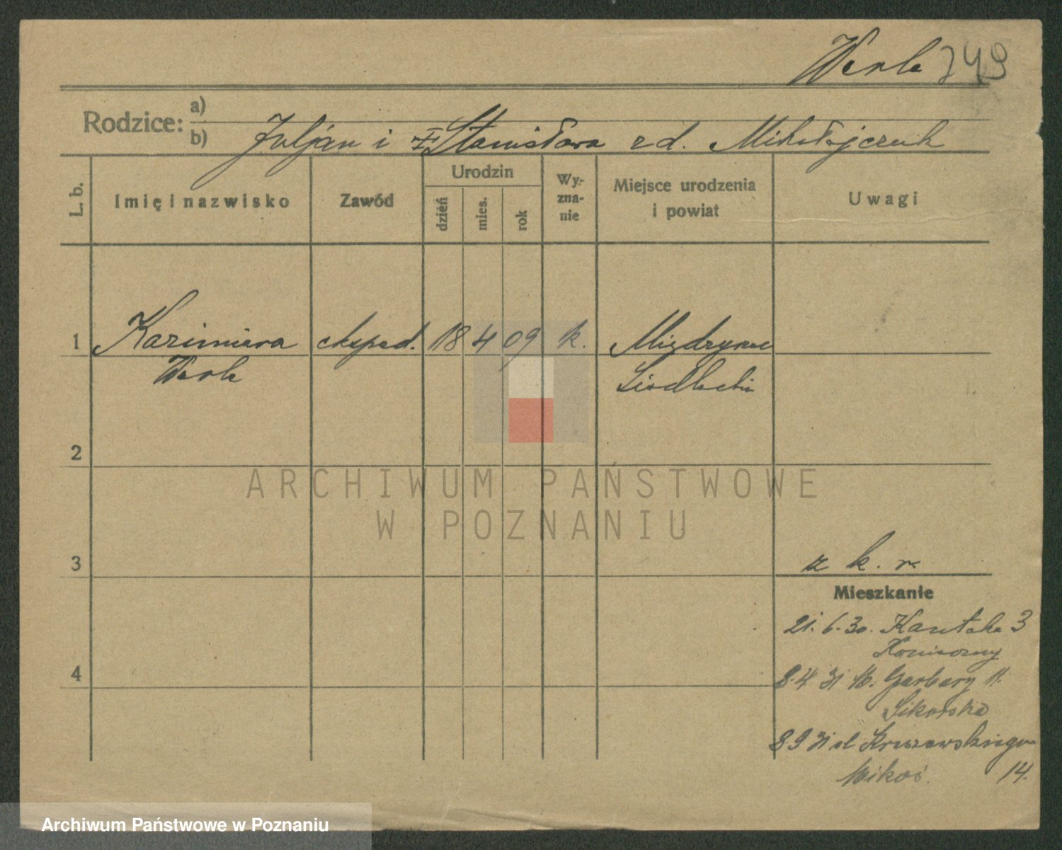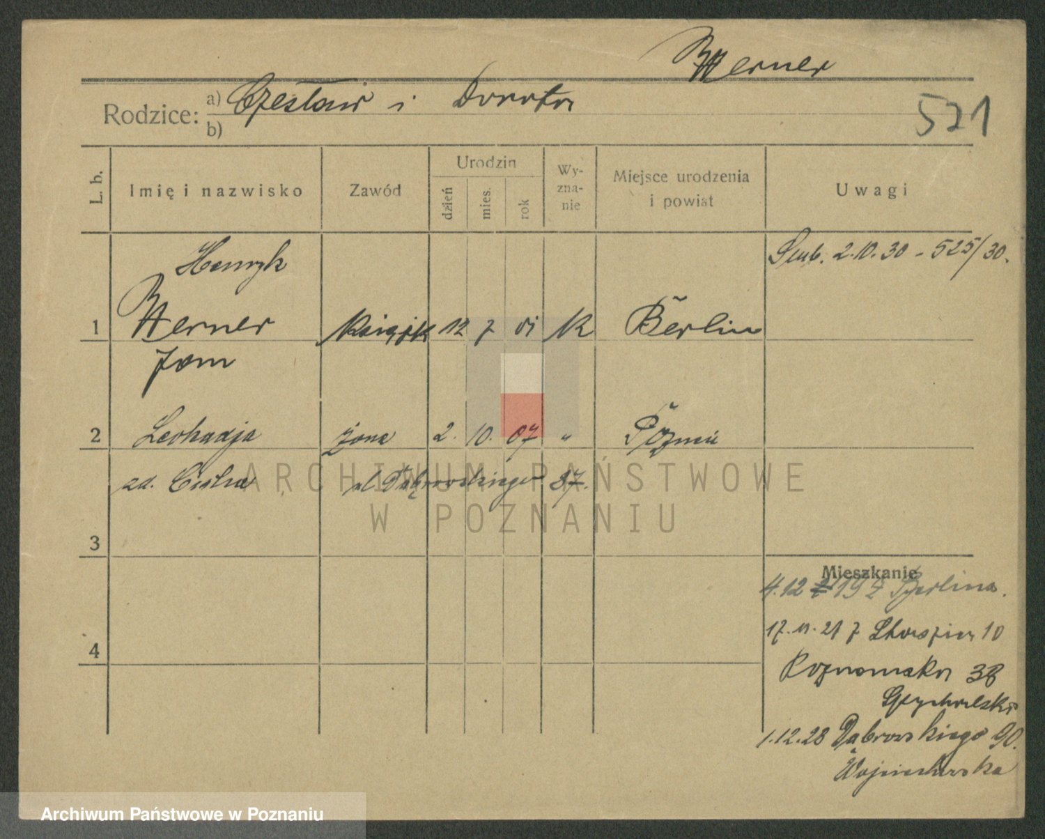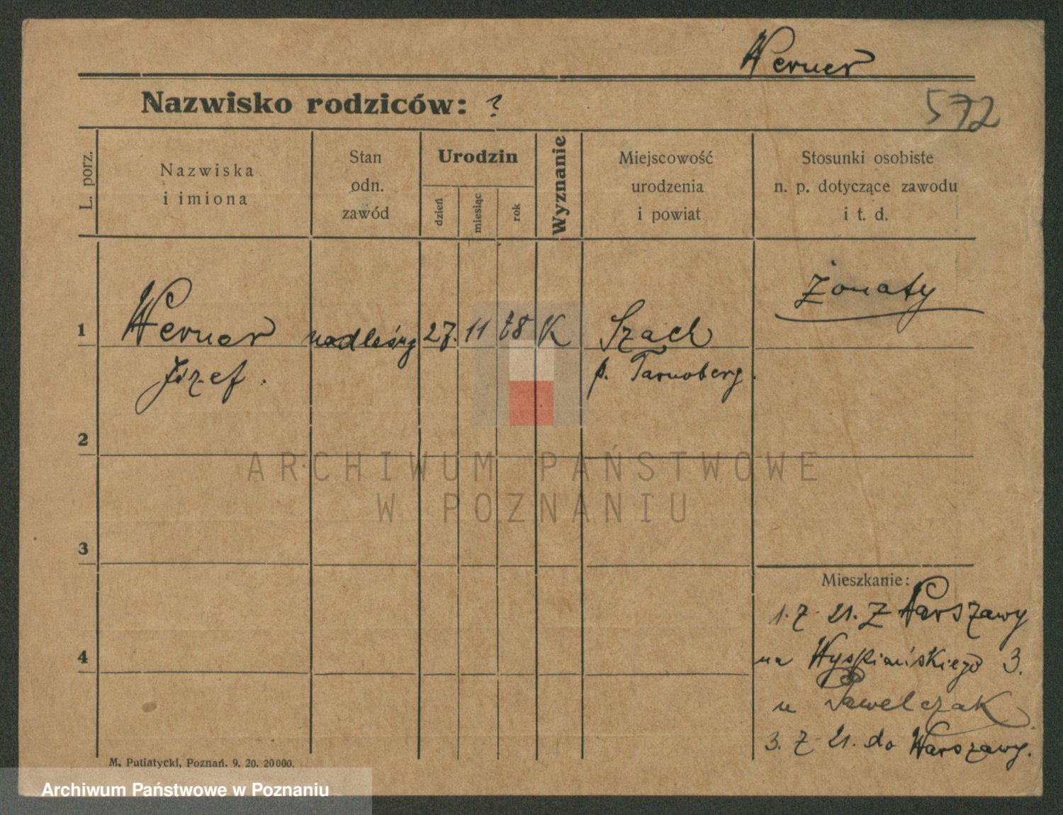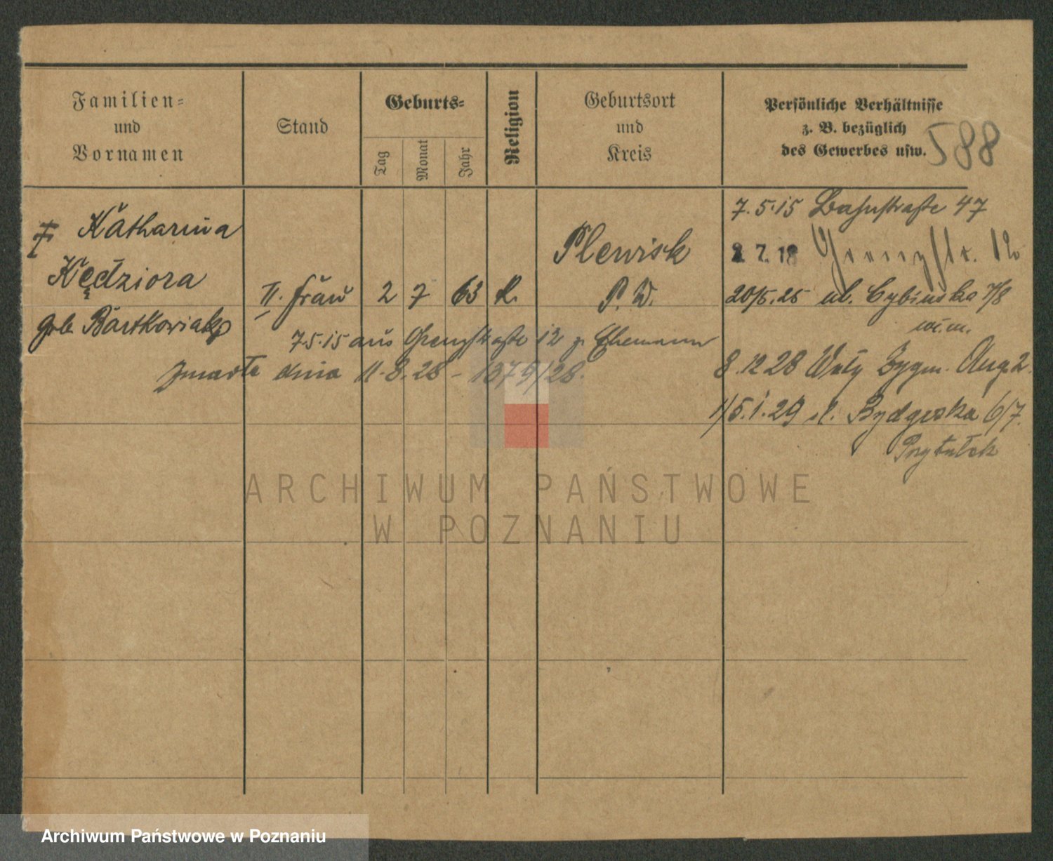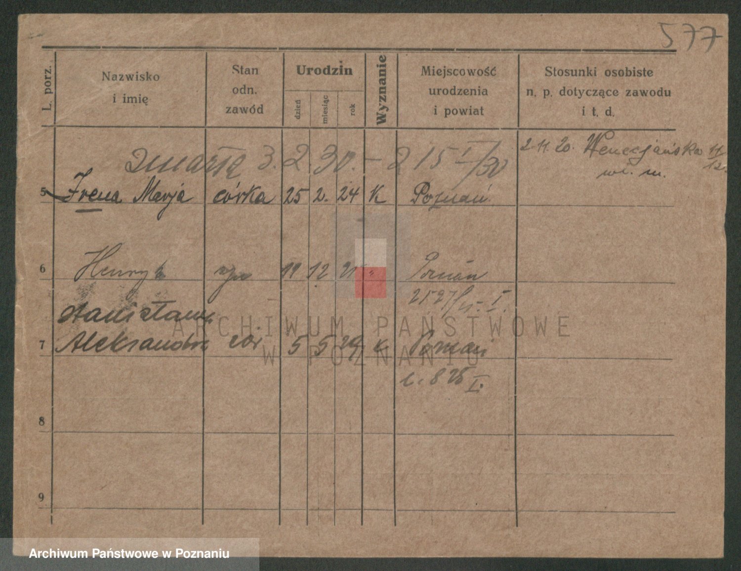 Podgląd karty osobowej dostępny jest po kliknięciu na nazwisko lub ikonkę karty. Można dokonywać powiększenia (ikony na górze) lub przechodzić między kolejnymi skanami (strzałki po bokach).