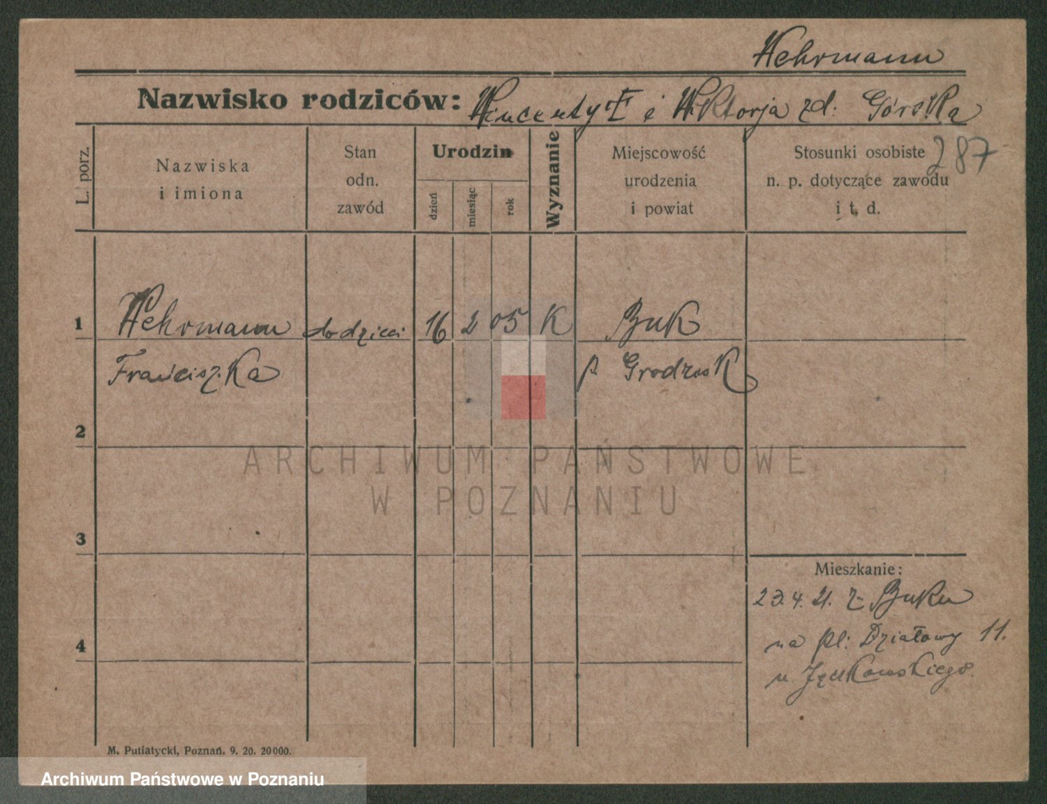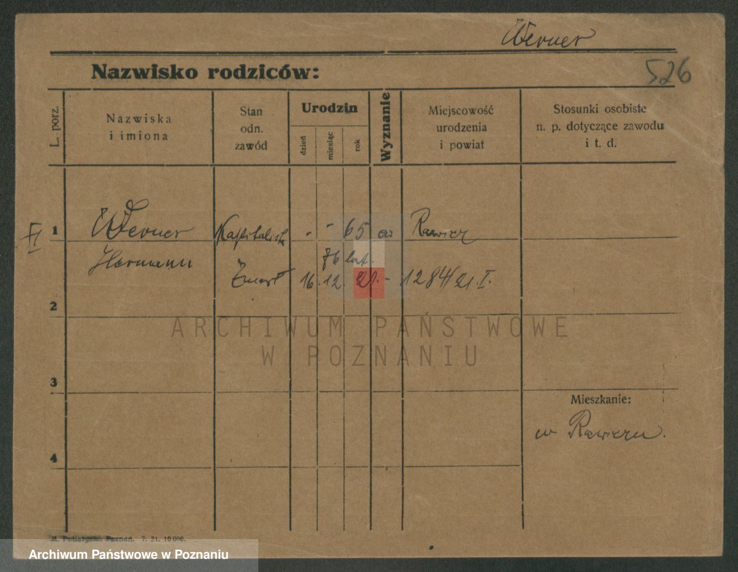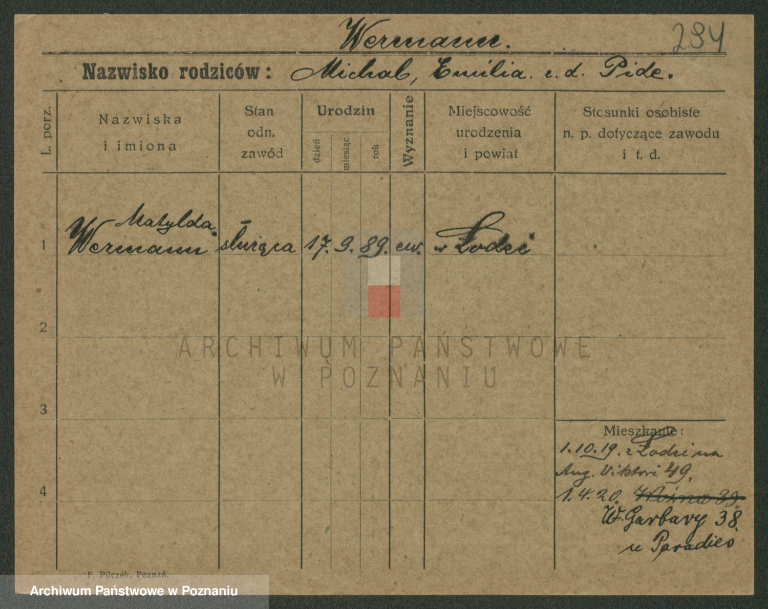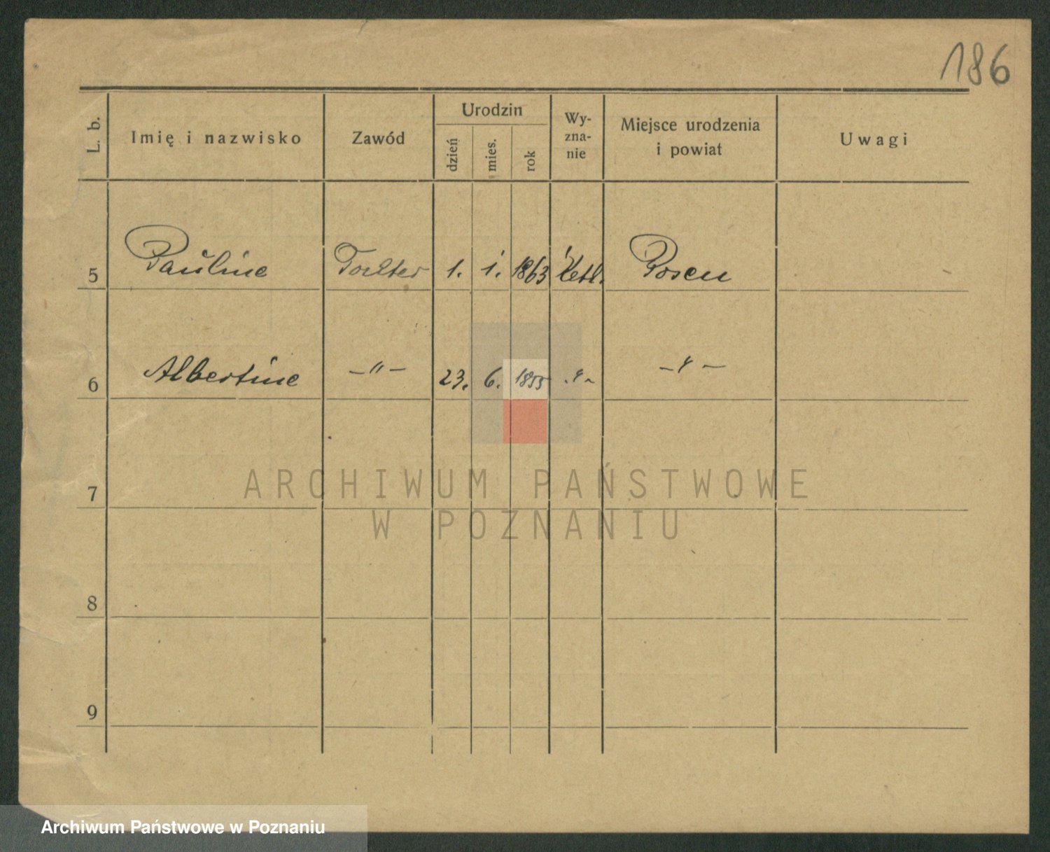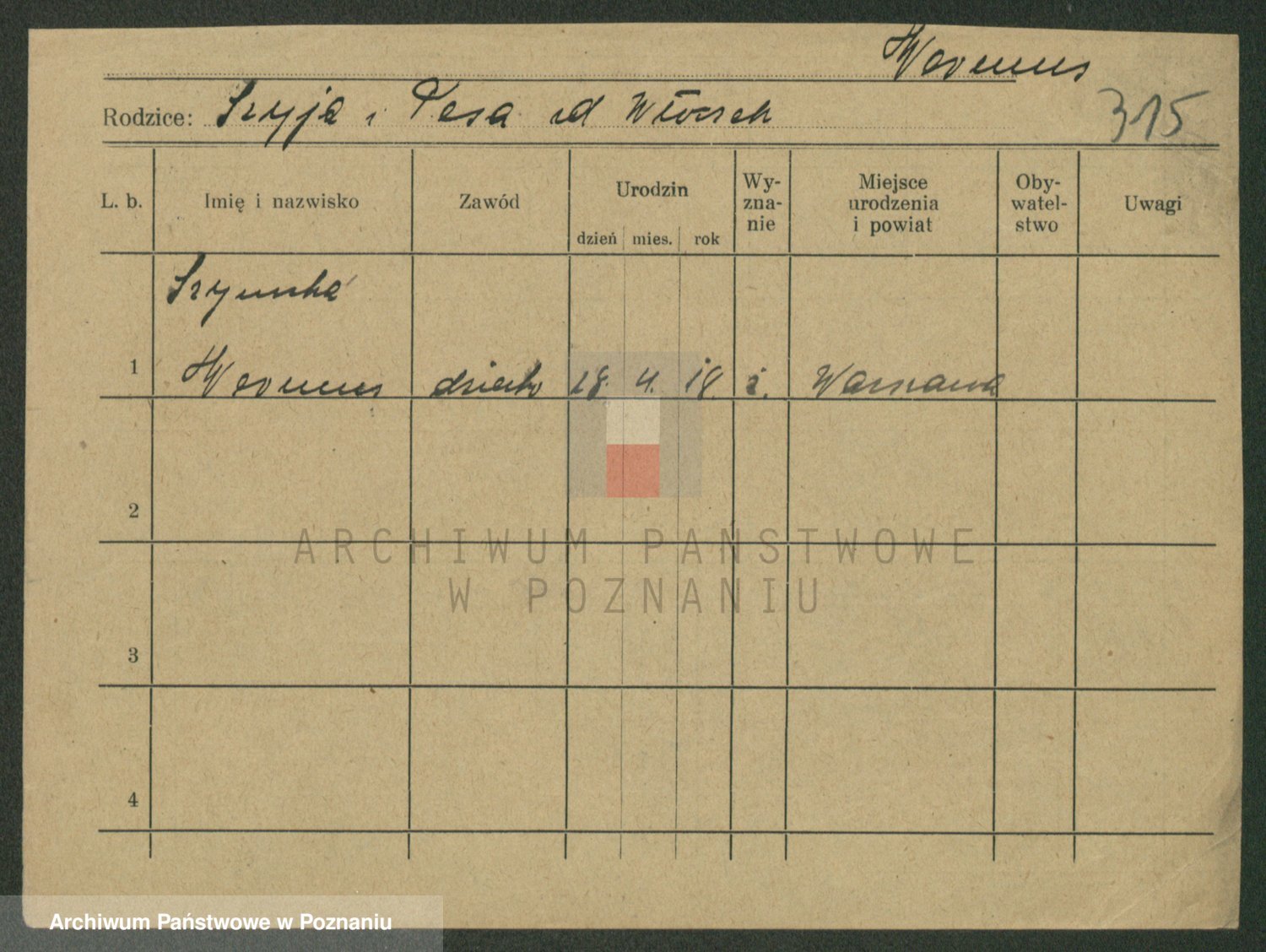 Podgląd karty osobowej dostępny jest po kliknięciu na nazwisko lub ikonkę karty. Można dokonywać powiększenia (ikony na górze) lub przechodzić między kolejnymi skanami (strzałki po bokach).