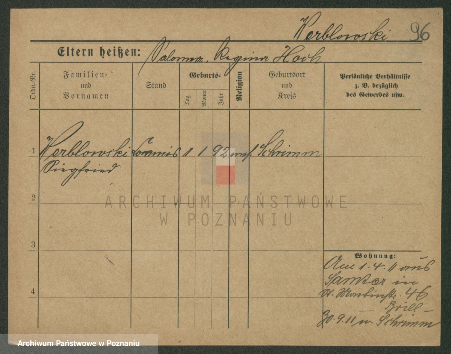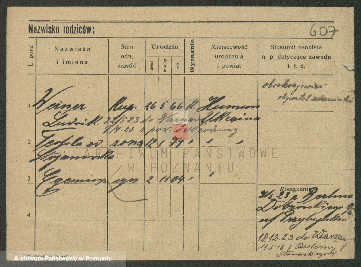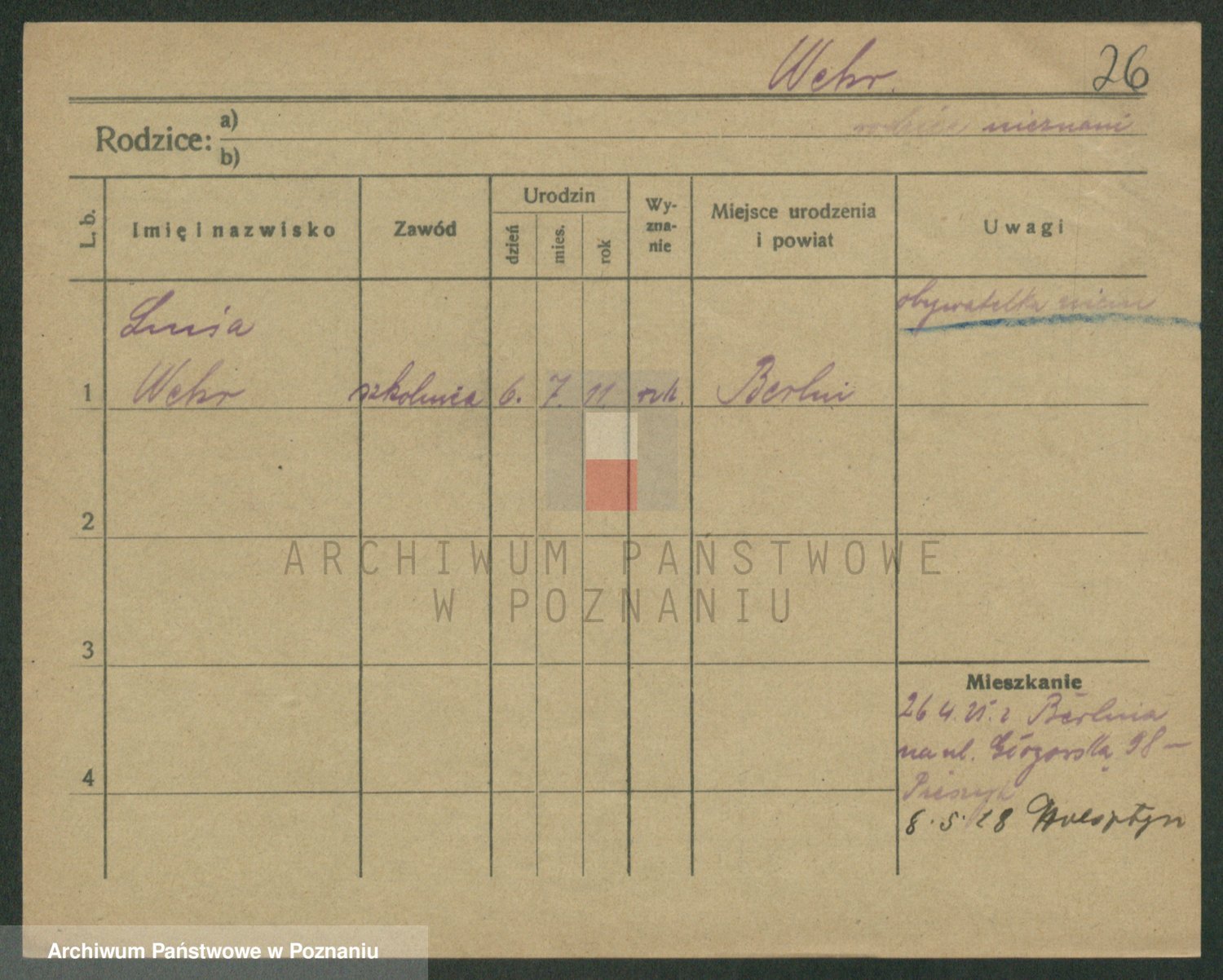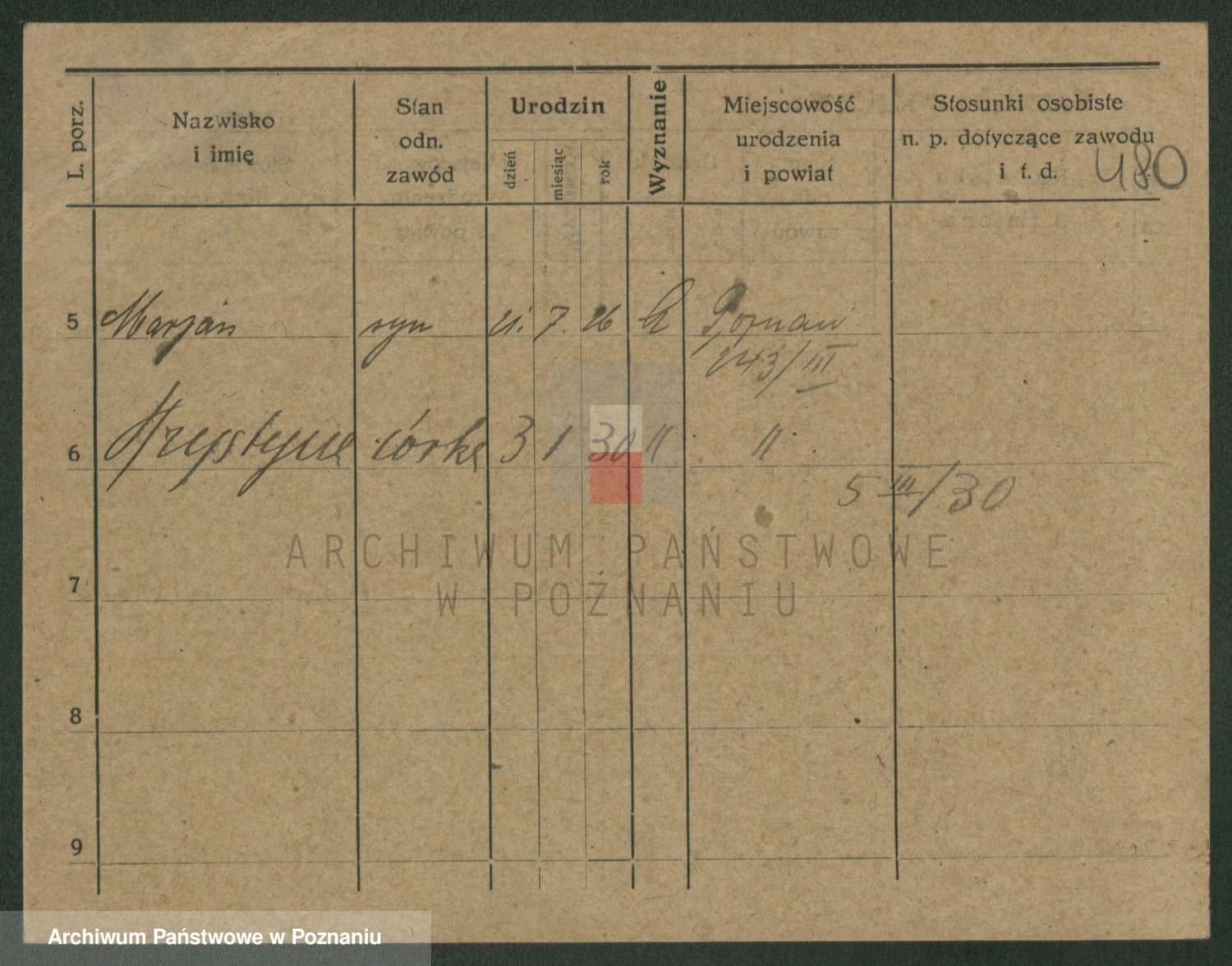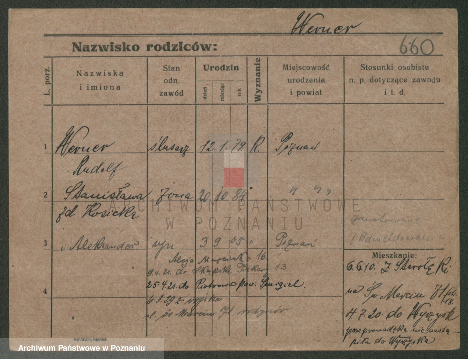 Podgląd karty osobowej dostępny jest po kliknięciu na nazwisko lub ikonkę karty. Można dokonywać powiększenia (ikony na górze) lub przechodzić między kolejnymi skanami (strzałki po bokach).