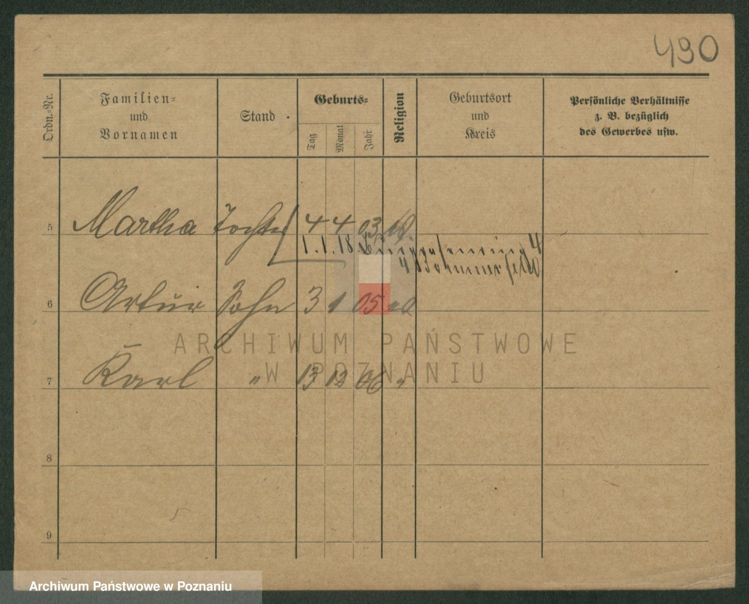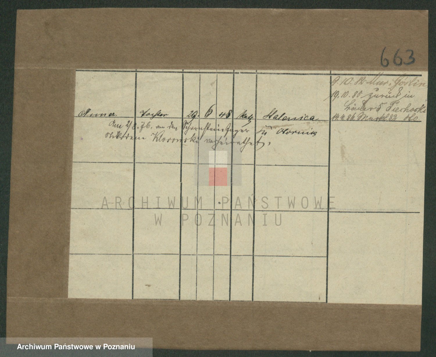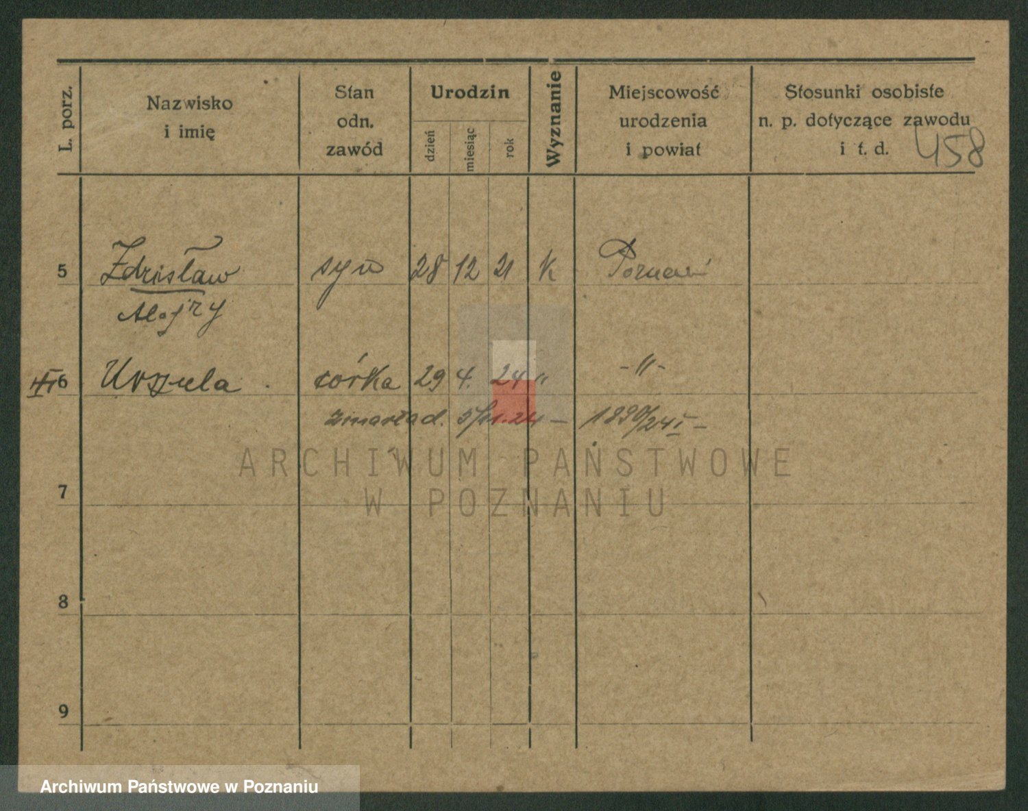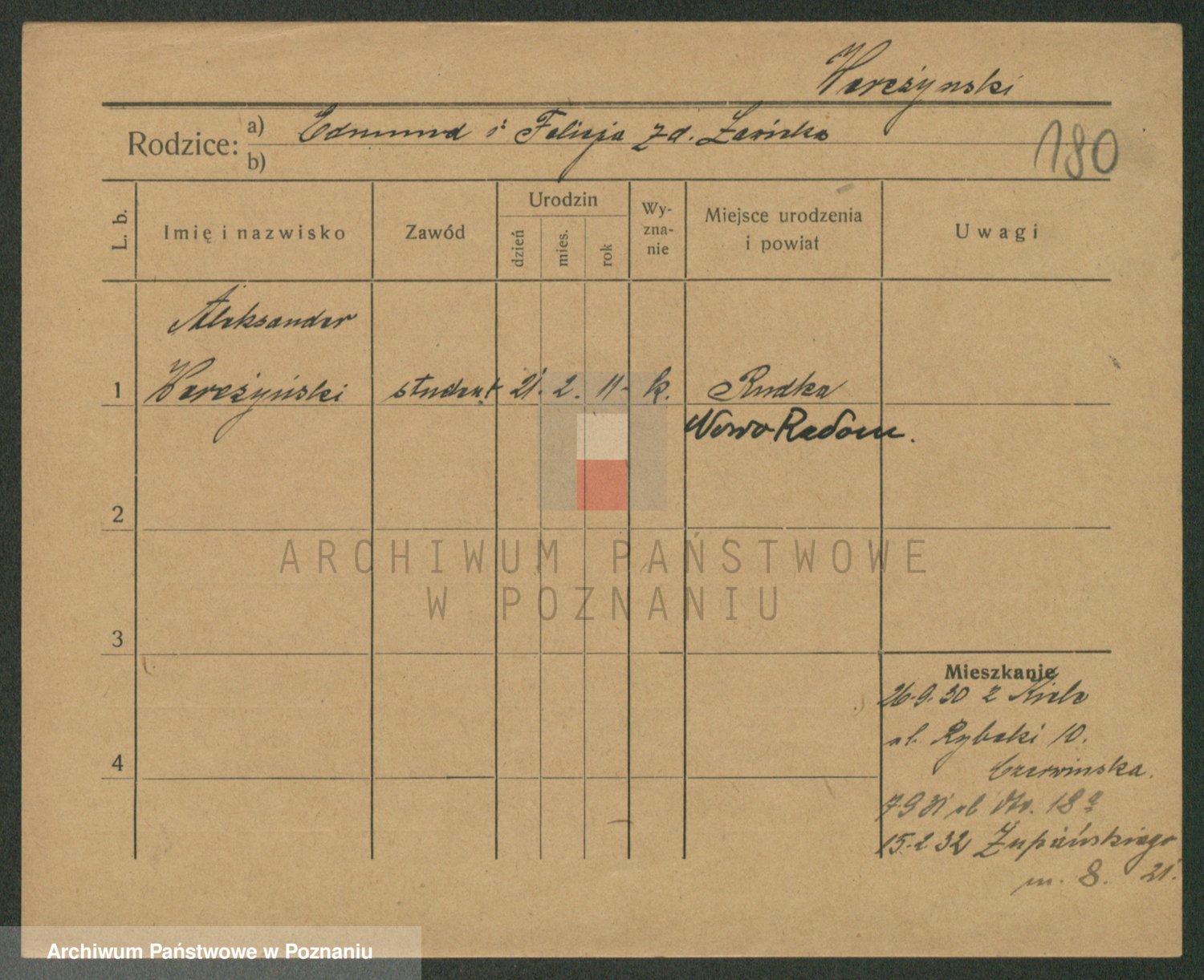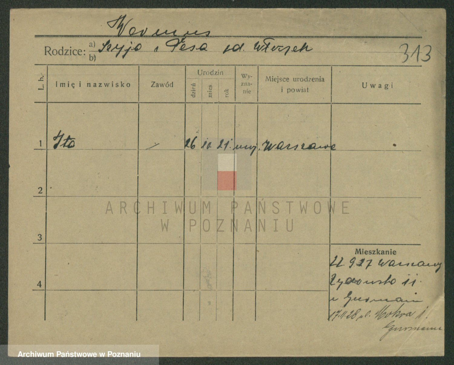 Podgląd karty osobowej dostępny jest po kliknięciu na nazwisko lub ikonkę karty. Można dokonywać powiększenia (ikony na górze) lub przechodzić między kolejnymi skanami (strzałki po bokach).