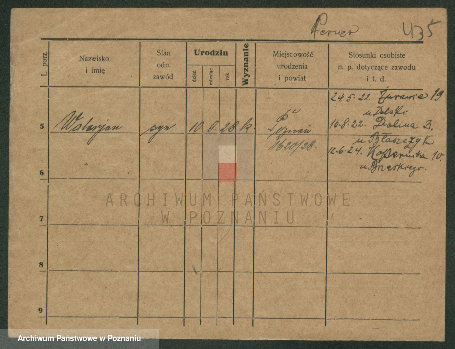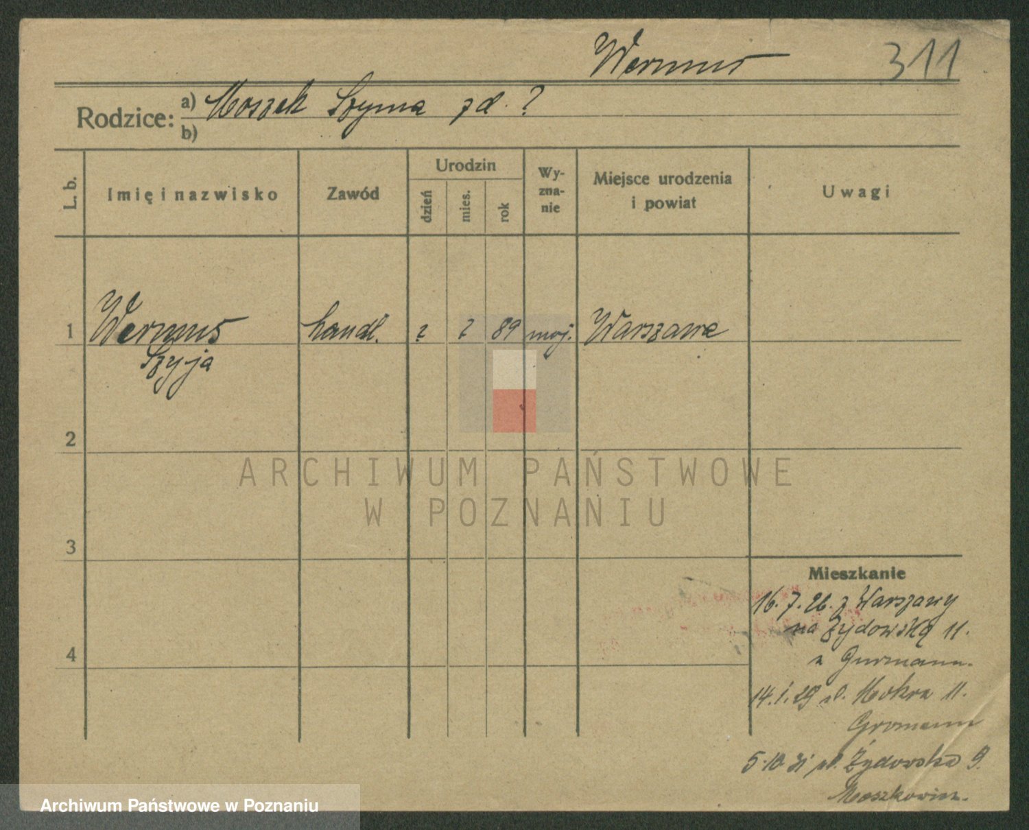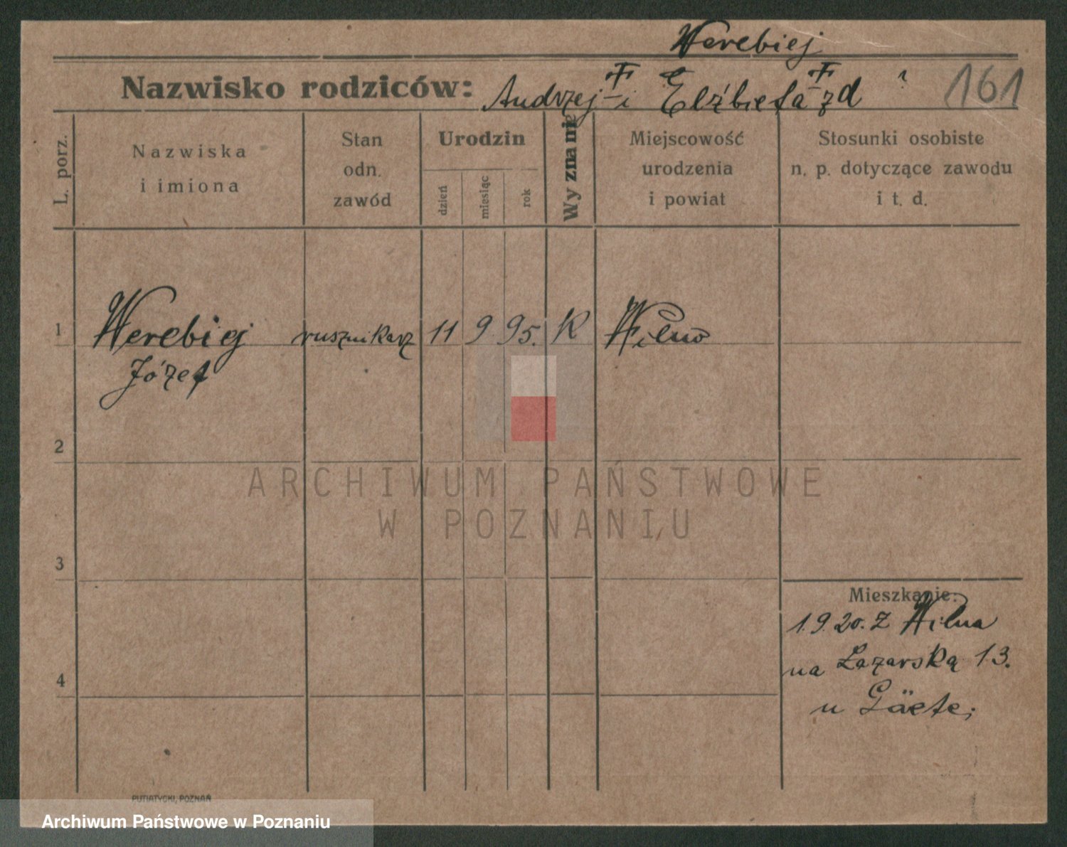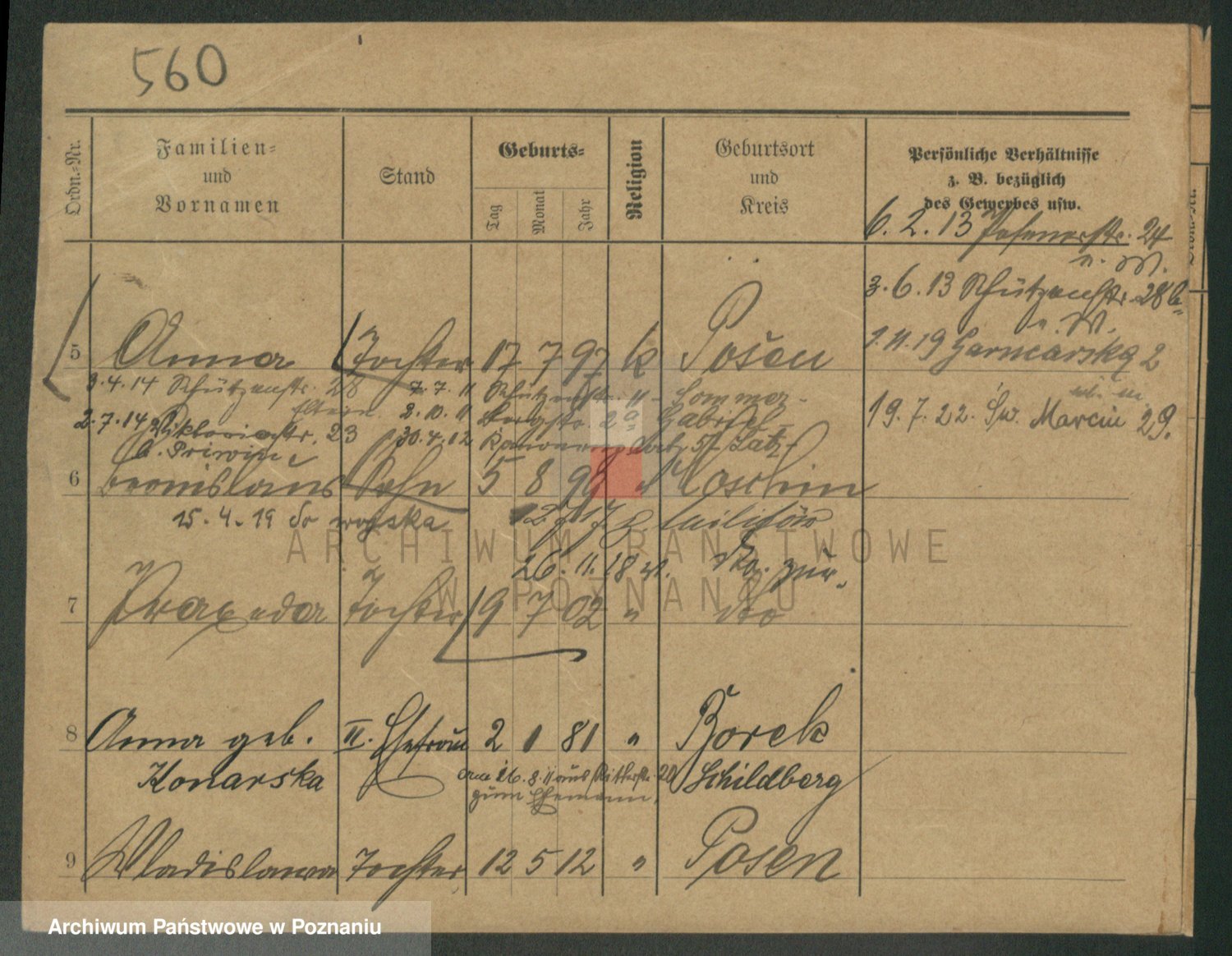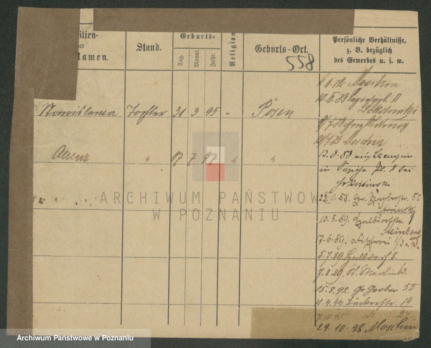 Podgląd karty osobowej dostępny jest po kliknięciu na nazwisko lub ikonkę karty. Można dokonywać powiększenia (ikony na górze) lub przechodzić między kolejnymi skanami (strzałki po bokach).